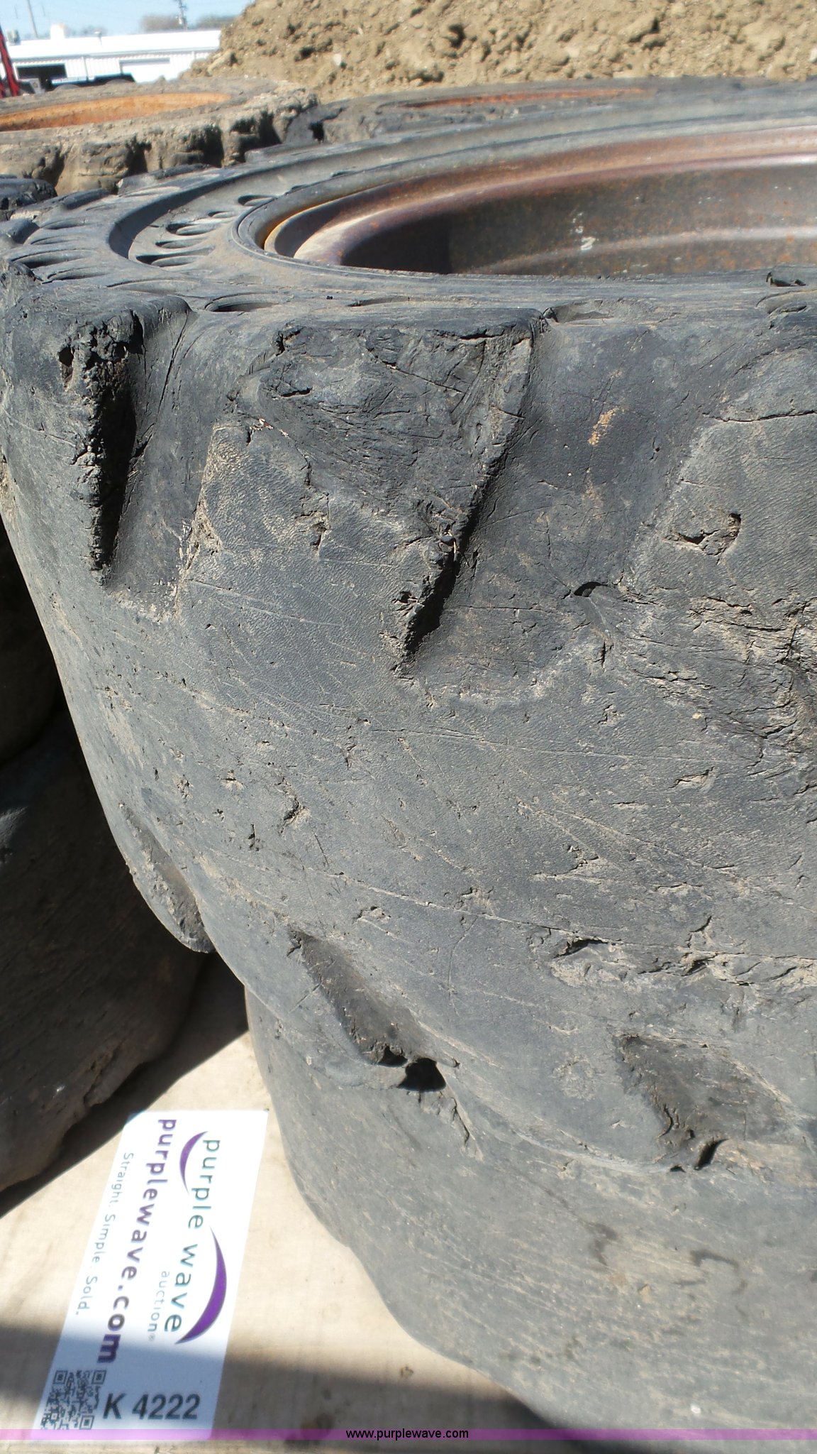 Purple Wave is selling a used Industrial Tires or Tracks in Missouri. This item is a (4) solid flex skid steer tires with the following: 33 x 12-16