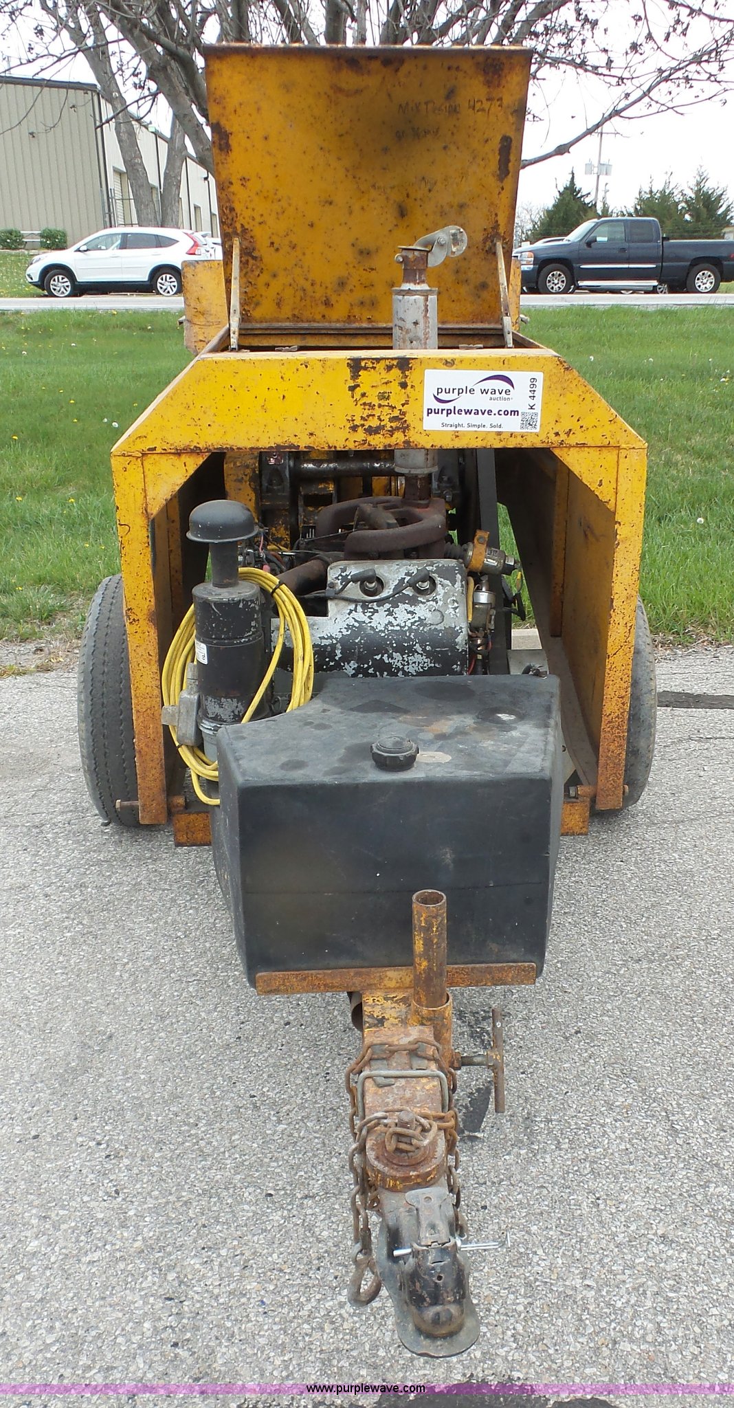 Purple Wave is selling a used Concrete Dispenser in Kansas. This item is a Mayco C-30HD concrete pump with the following: Wisconsin VH4D1 four cylinder gas engine, Corded remote, 2" ball hitch, 14" tires