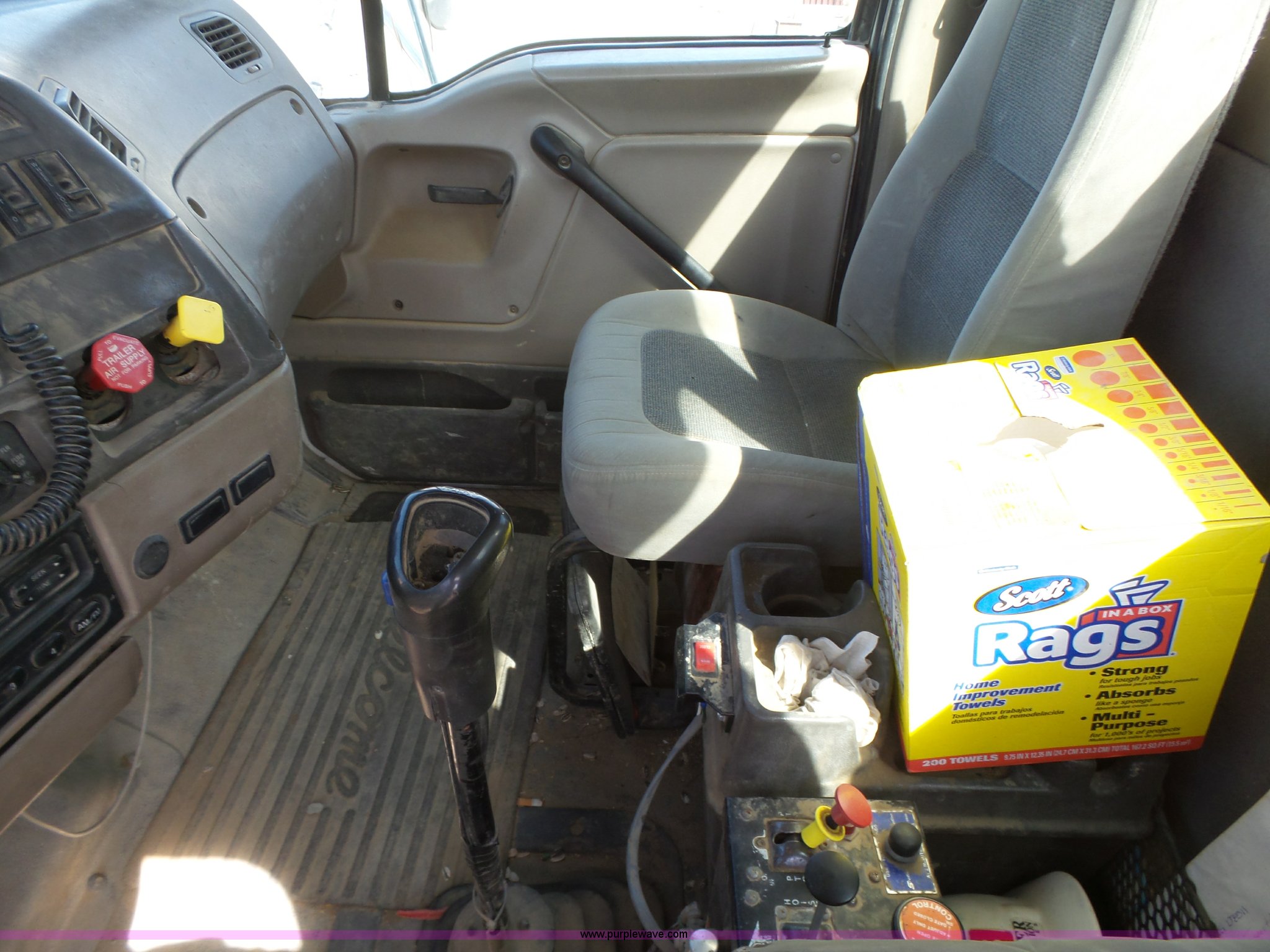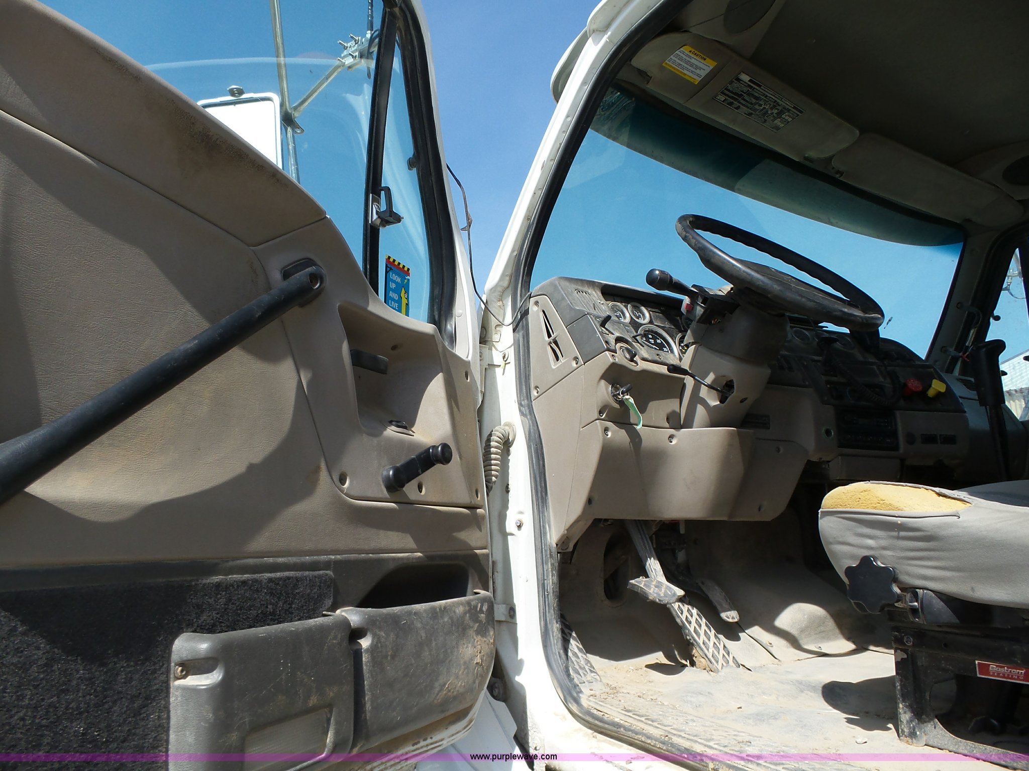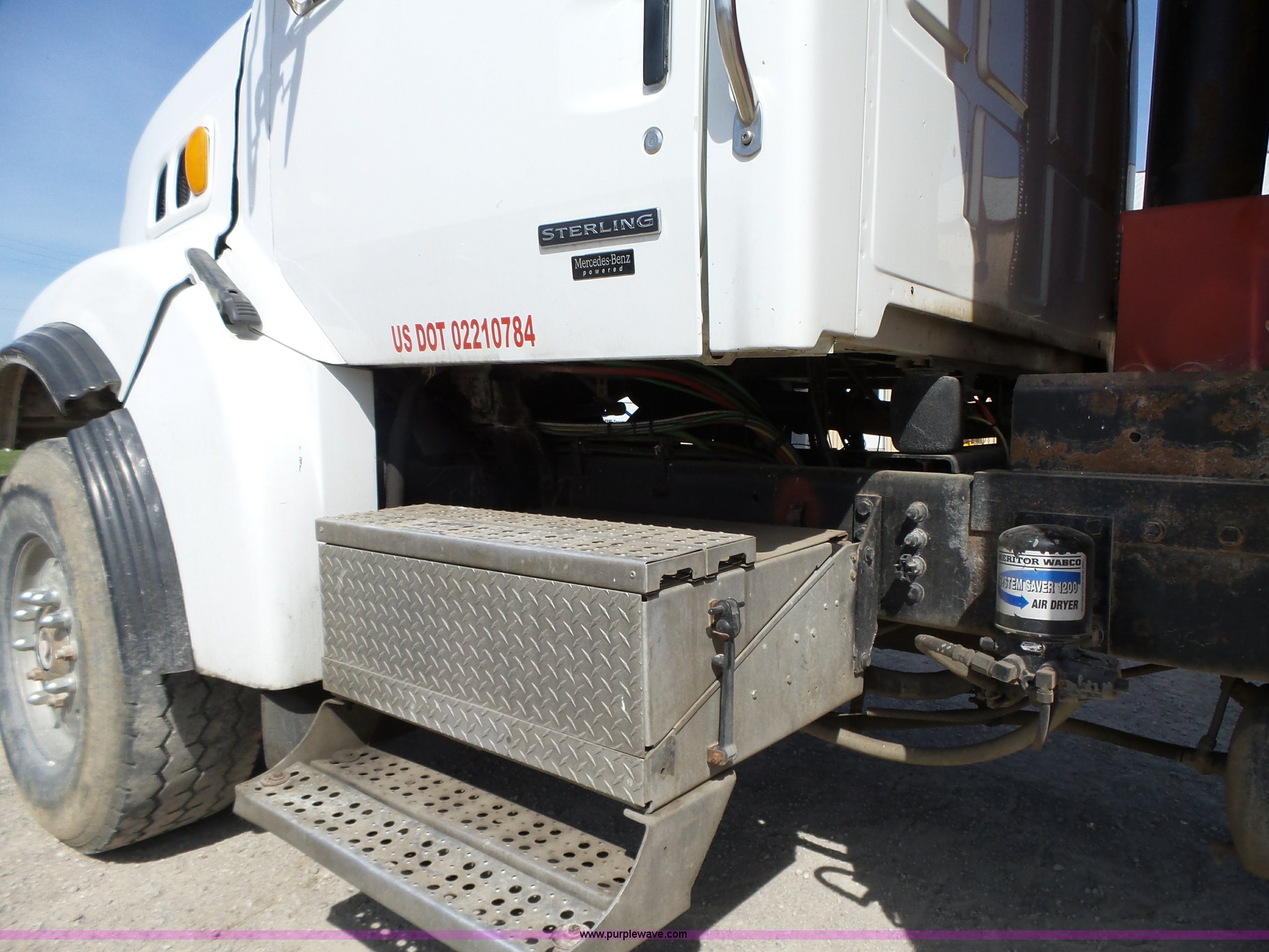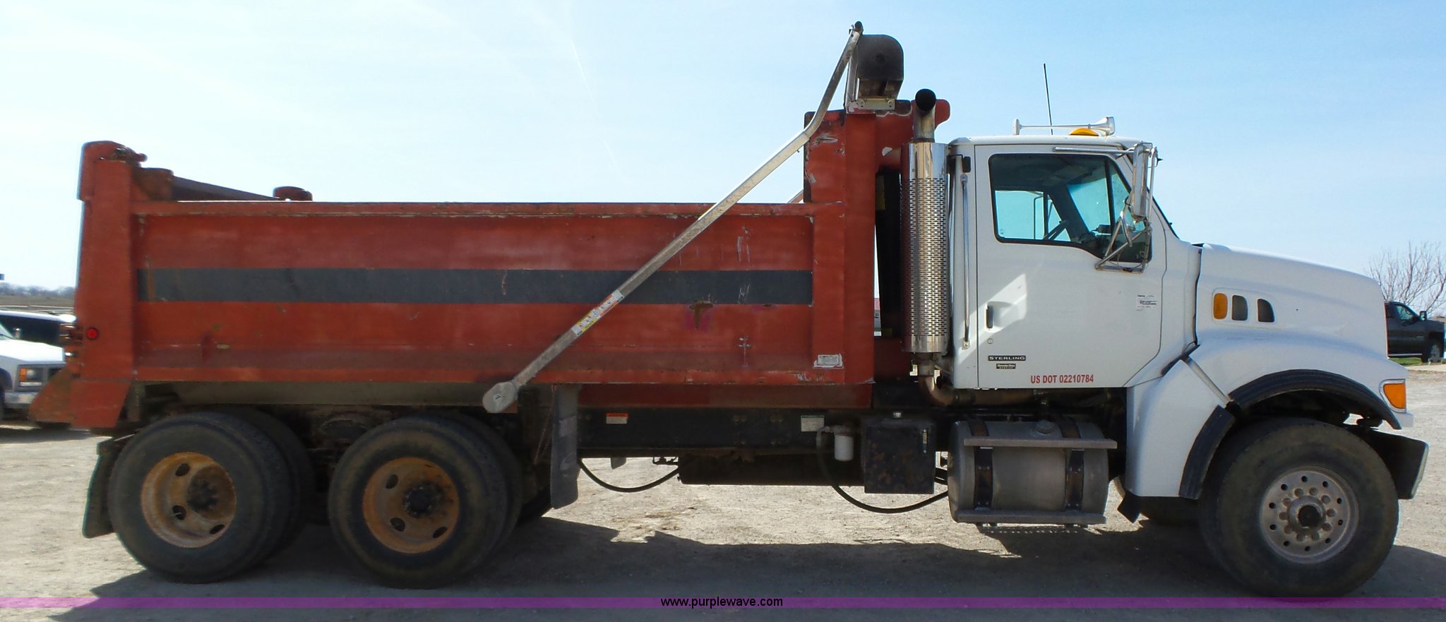 Purple Wave is selling a used Construction Dump Truck in Iowa. This item is a 2005 Sterling L8500 dump truck with the following: 233,212 miles on odometer, 12,871 hours on meter, Miles and hours may vary, vehicle is still in use, Mercedes-Benz MBE900 7.2L L6 turbo diesel engine, Eaton Fuller Road Ranger eight speed manual transmission, Inter-axle differential lock, Tandem axle, AC and heat, Tilt, Cruise, AM/FM, Power windows, Heated mirrors, Air suspension seat, Exterior visor, PTO, Beau-Roc DH245121-DA aluminum dump bed, 16'L x 96"W, 42" side height, 8" left side board height, Single ram hoist, Air operated end gate, Roll-over tarp, Single fuel tank, Receiver hitch, Trailer wiring, 246" wheelbase, Spring suspension, Air brakes, 425/65R22.5 front tires, 11R22.5 rear tires, GVWR 58,000 lbs, FAWR 18,000 lbs, IAWR 20,000 lbs, RAWR 20,000 lbs, Annual inspection completed August 2015, Two way radio is not included, Non-operational speedometer, Driver's door needs adjusted, Grill broken
