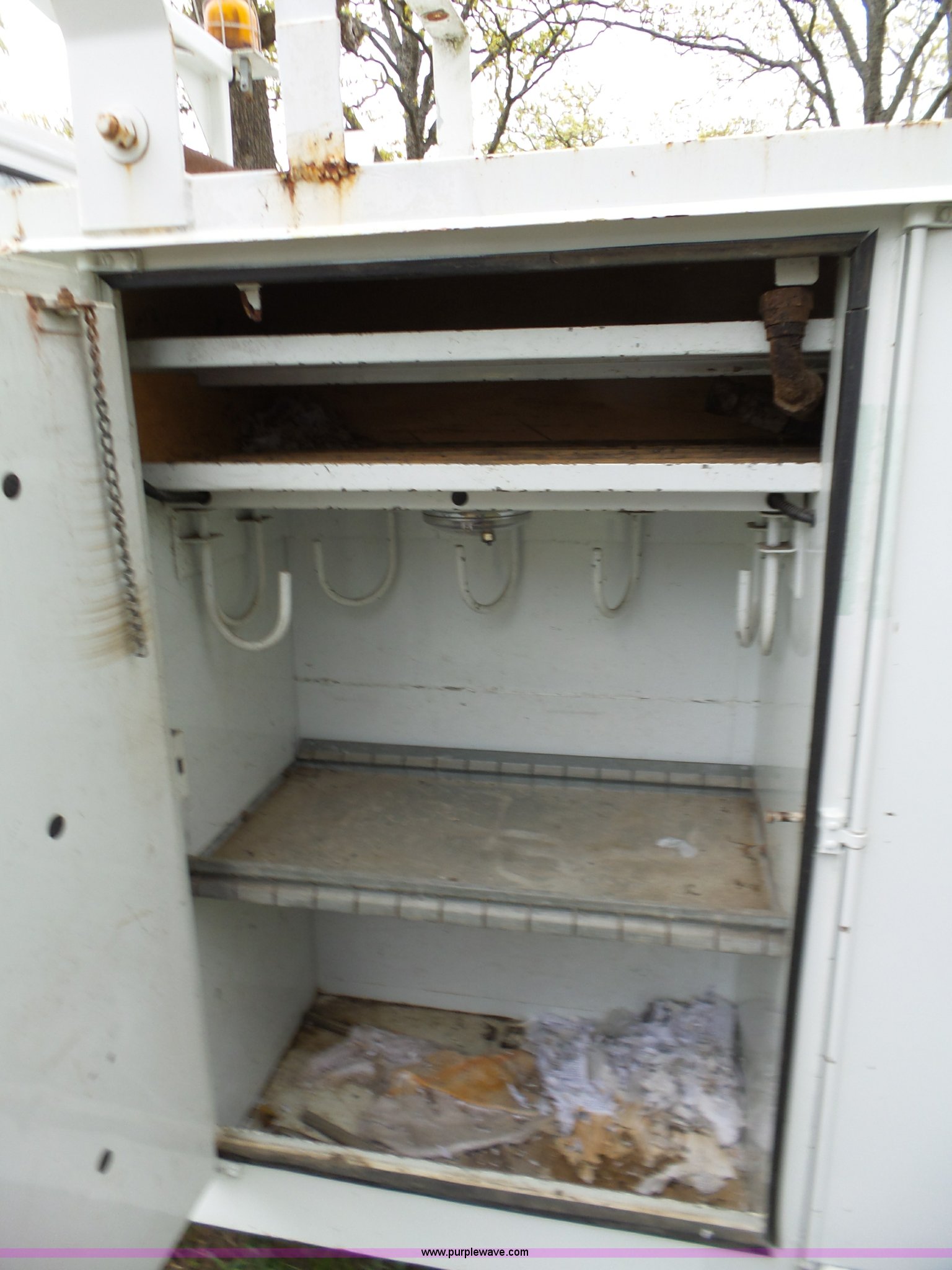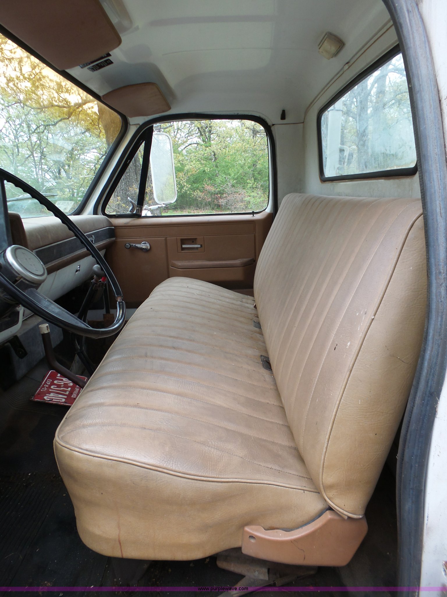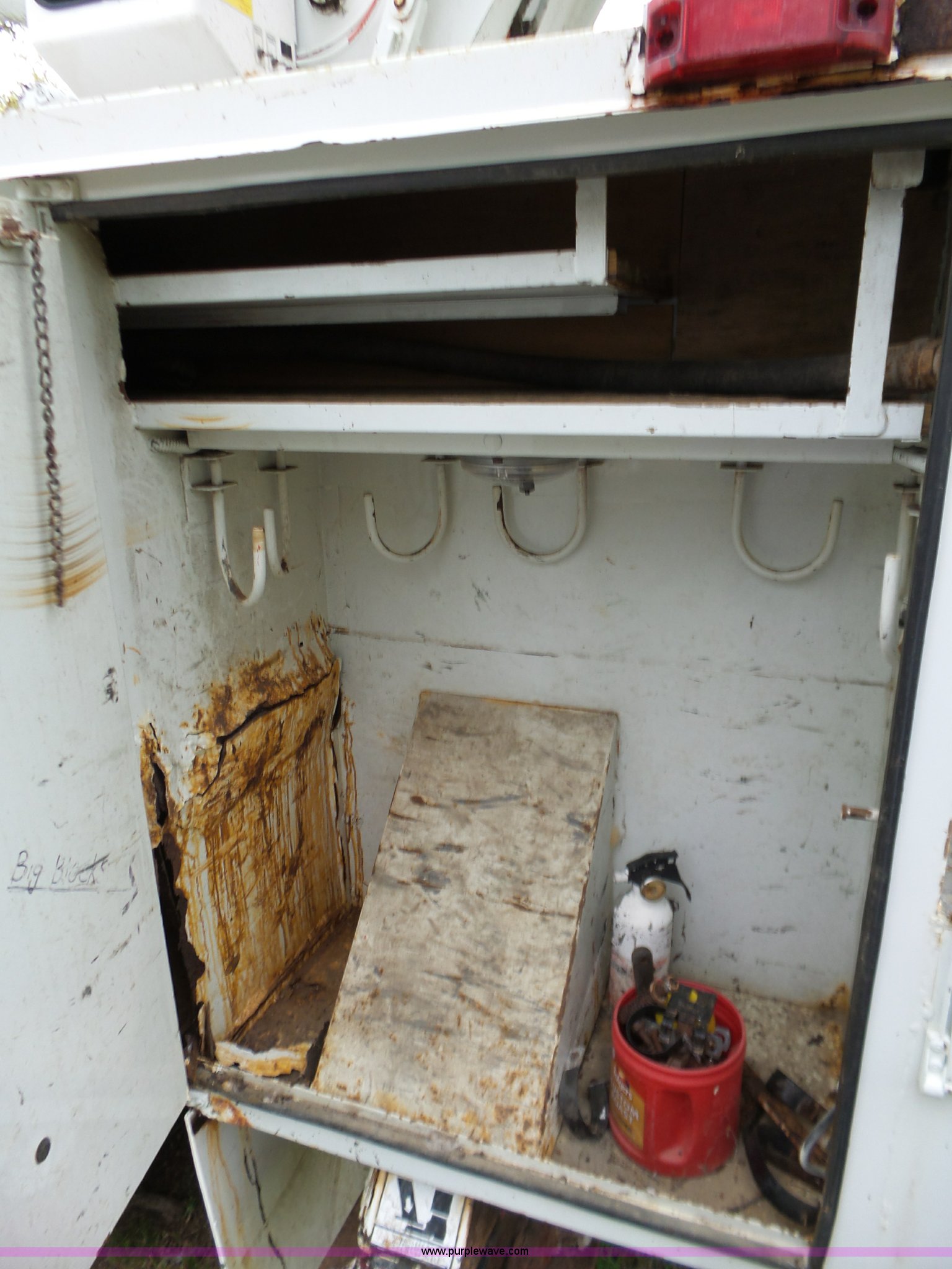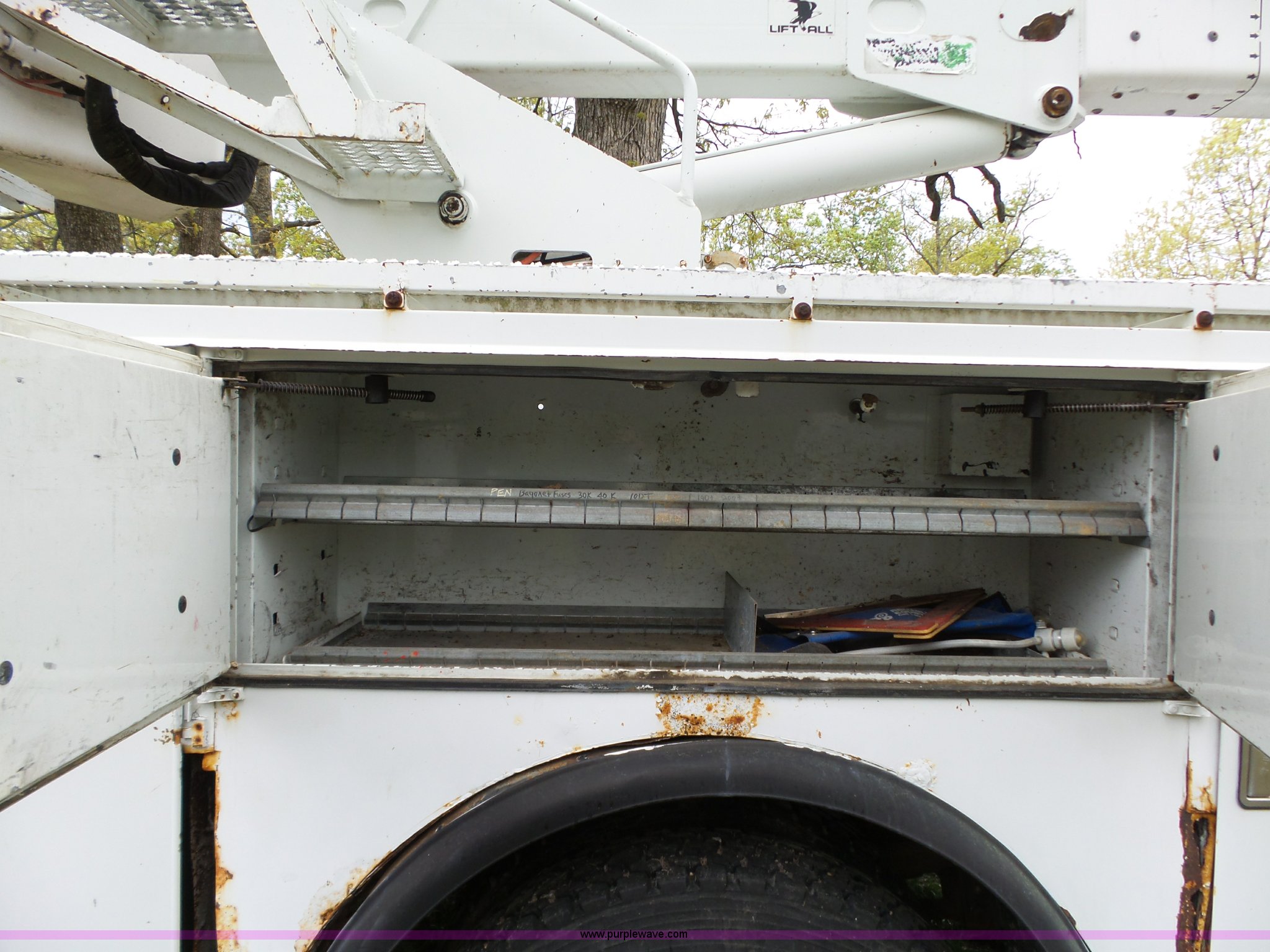Purple Wave is selling a used Bucket Truck in Oklahoma. This item is a 1988 Chevrolet C70 bucket truck with the following: 38,600 miles on odometer, 6.0L V8 propane engine, Five speed manual transmission, Two speed rear end, Heat, AM/FM, Spring suspension seat, Beacon light, Front tow hooks, PTO, Stahl service bed, Shelving, Slide-out drawers, Pintle hitch, 1999 Lift-All LAN-21-2E boom, 600 lbs maximum lift capacity, 51' maximum lift height, Ground and platform controls, Boom rotation, Articulating insulated boom, Serial 6358089951LAN, Single fuel tank, Spring suspension, Hydraulic brakes, 9.00R20 tires, GVWR 23,160 lbs, Windsheild cracked, Hydraulic pump included, detached