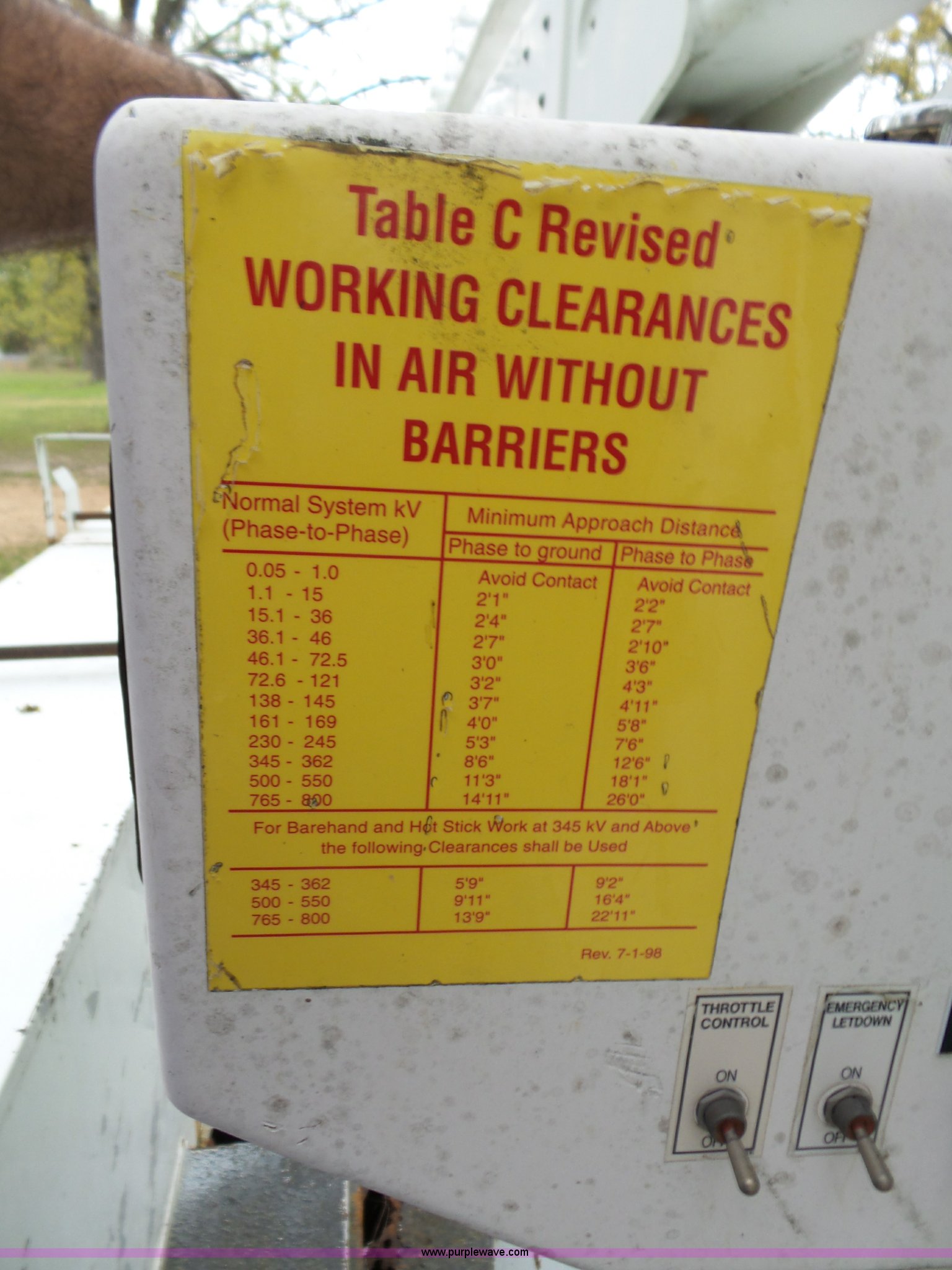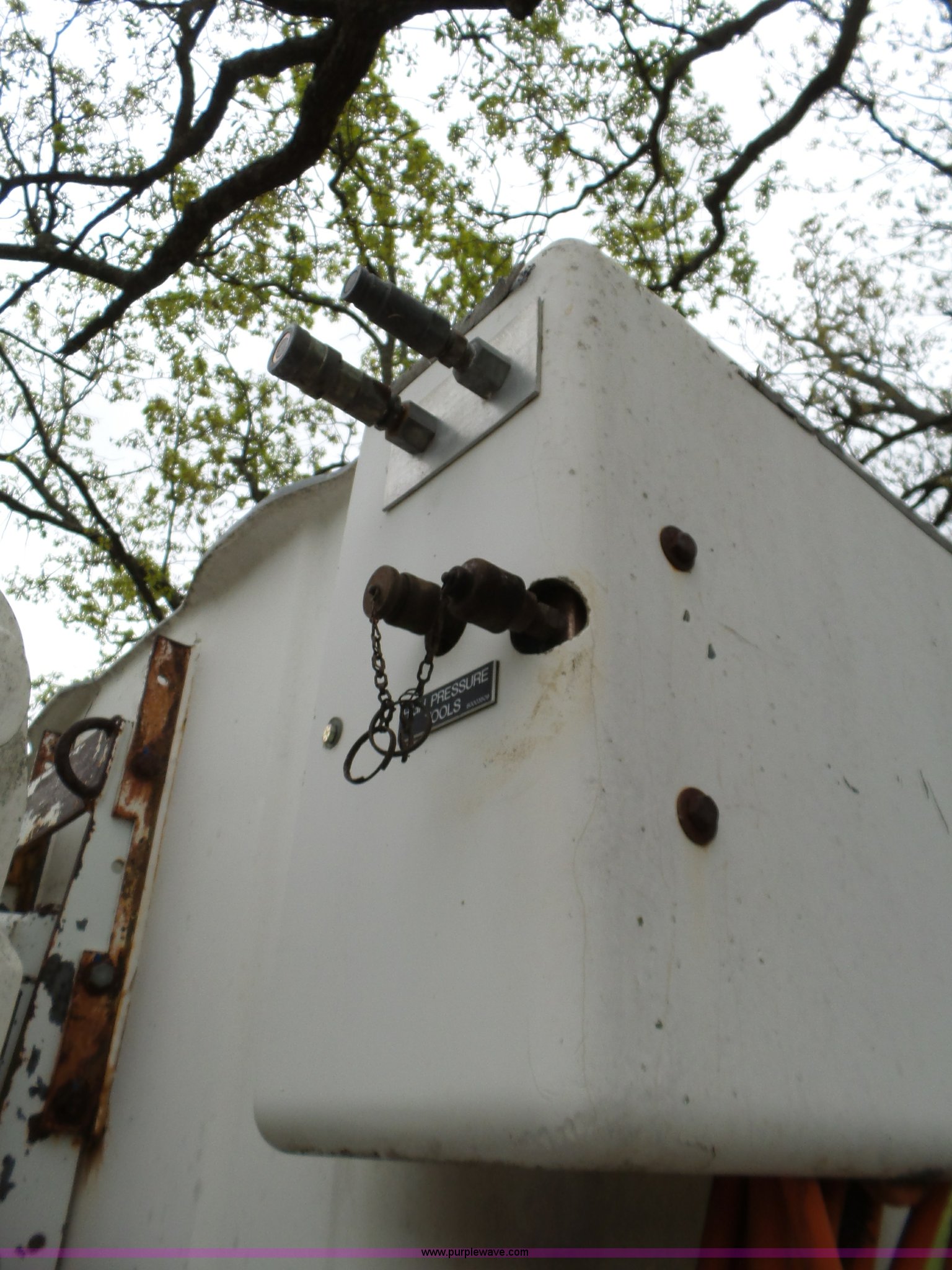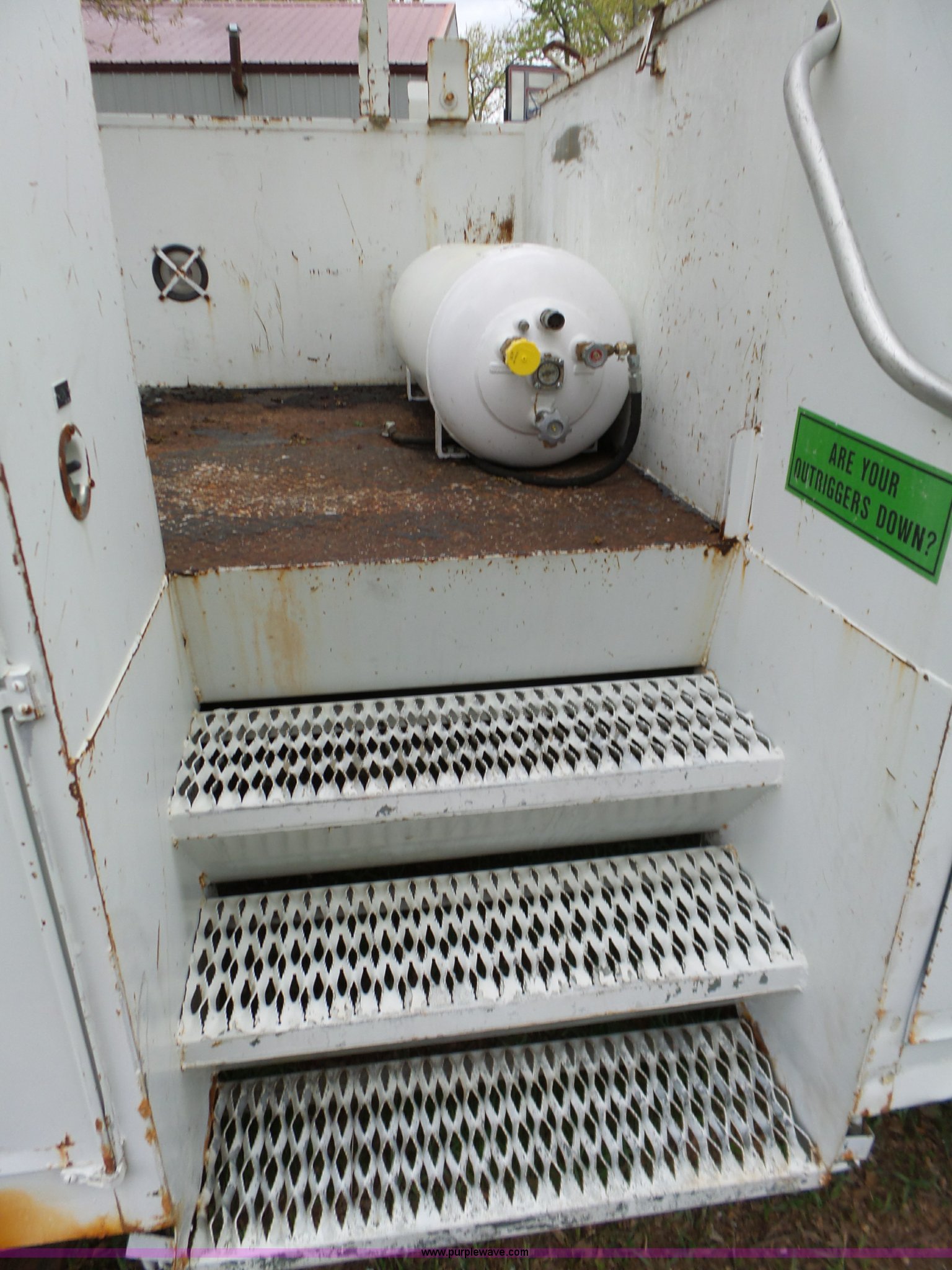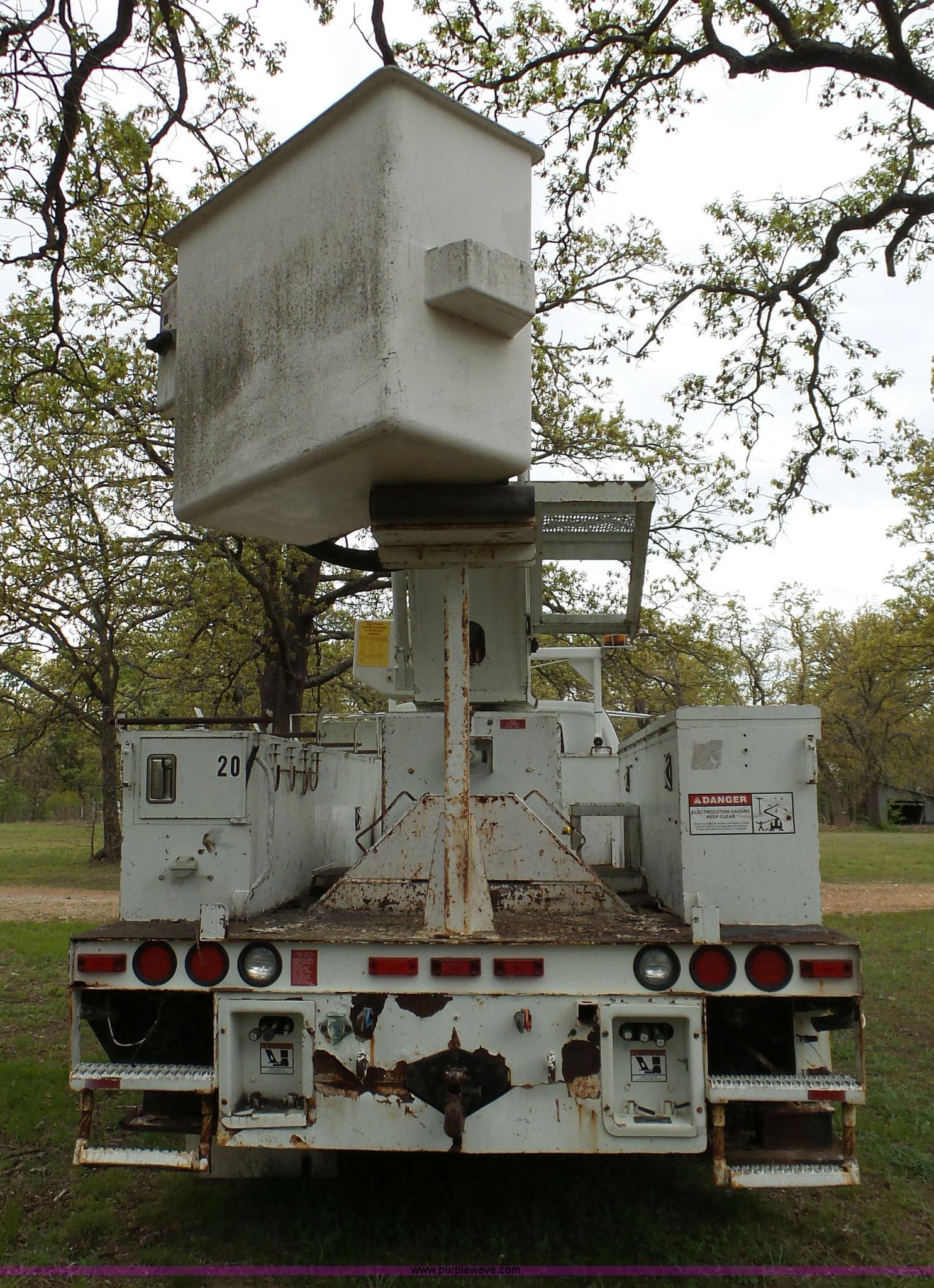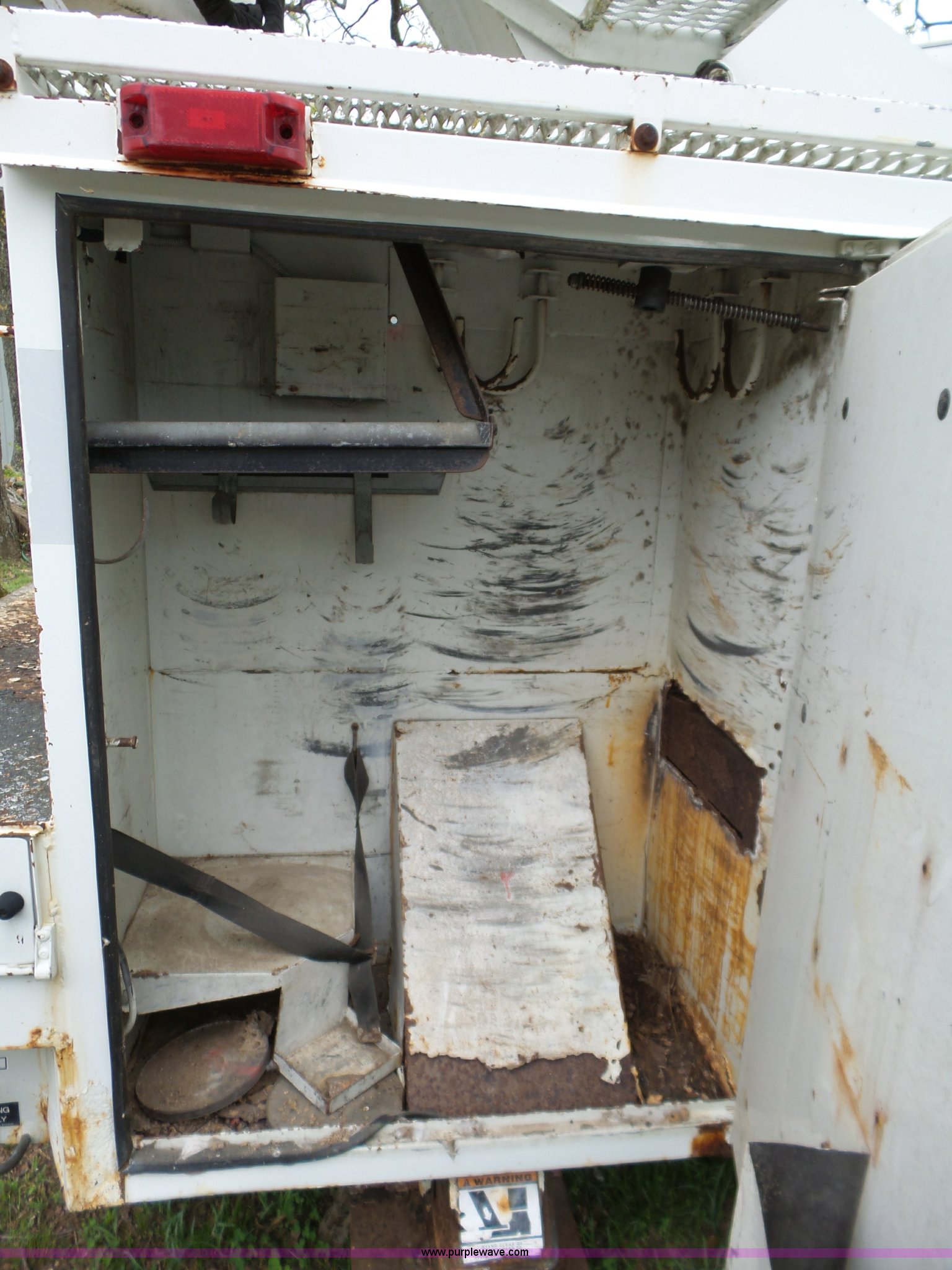 Purple Wave is selling a used Bucket Truck in Oklahoma. This item is a 1988 Chevrolet C70 bucket truck with the following: 38,600 miles on odometer, 6.0L V8 propane engine, Five speed manual transmission, Two speed rear end, Heat, AM/FM, Spring suspension seat, Beacon light, Front tow hooks, PTO, Stahl service bed, Shelving, Slide-out drawers, Pintle hitch, 1999 Lift-All LAN-21-2E boom, 600 lbs maximum lift capacity, 51' maximum lift height, Ground and platform controls, Boom rotation, Articulating insulated boom, Serial 6358089951LAN, Single fuel tank, Spring suspension, Hydraulic brakes, 9.00R20 tires, GVWR 23,160 lbs, Windsheild cracked, Hydraulic pump included, detached