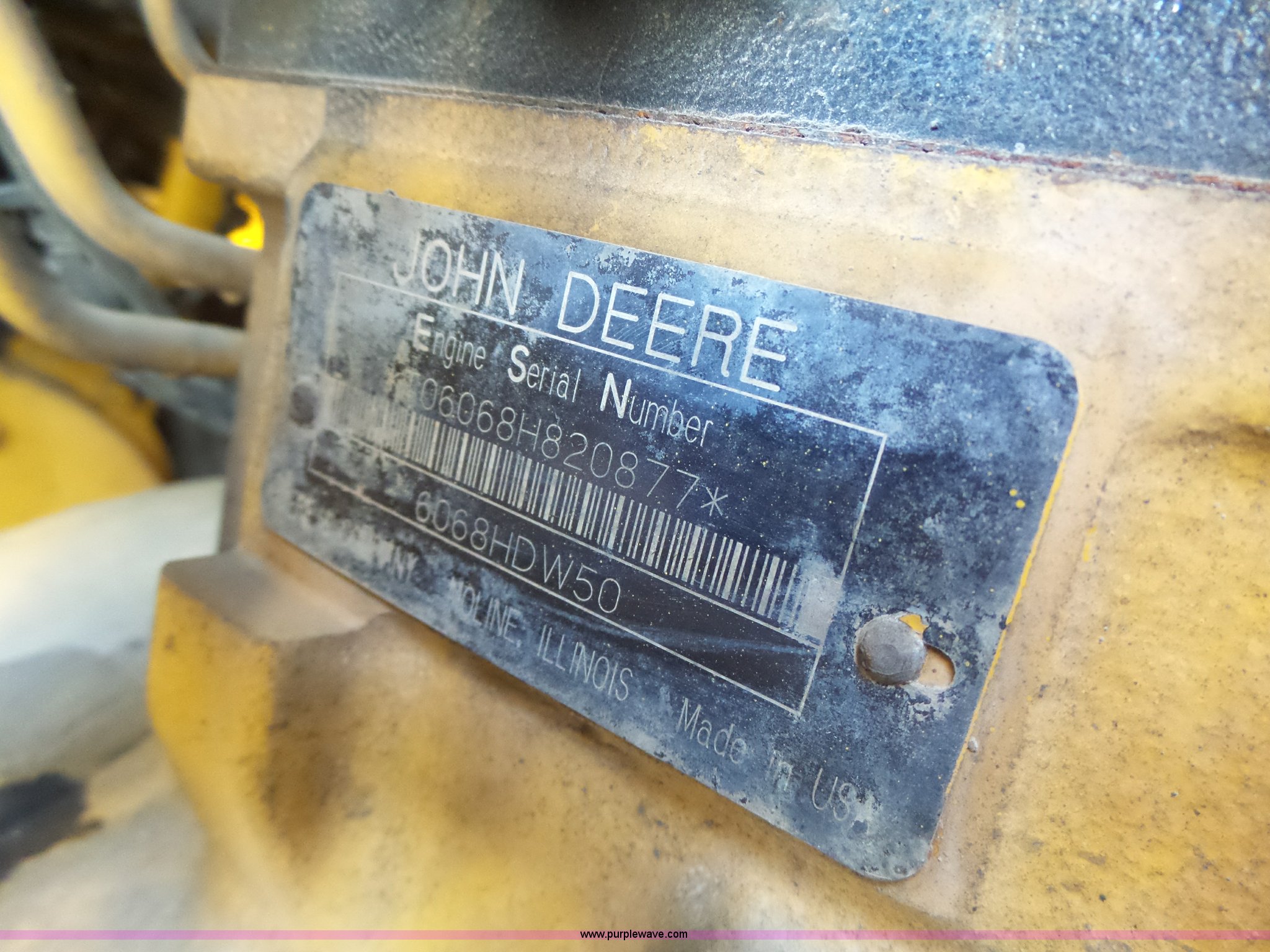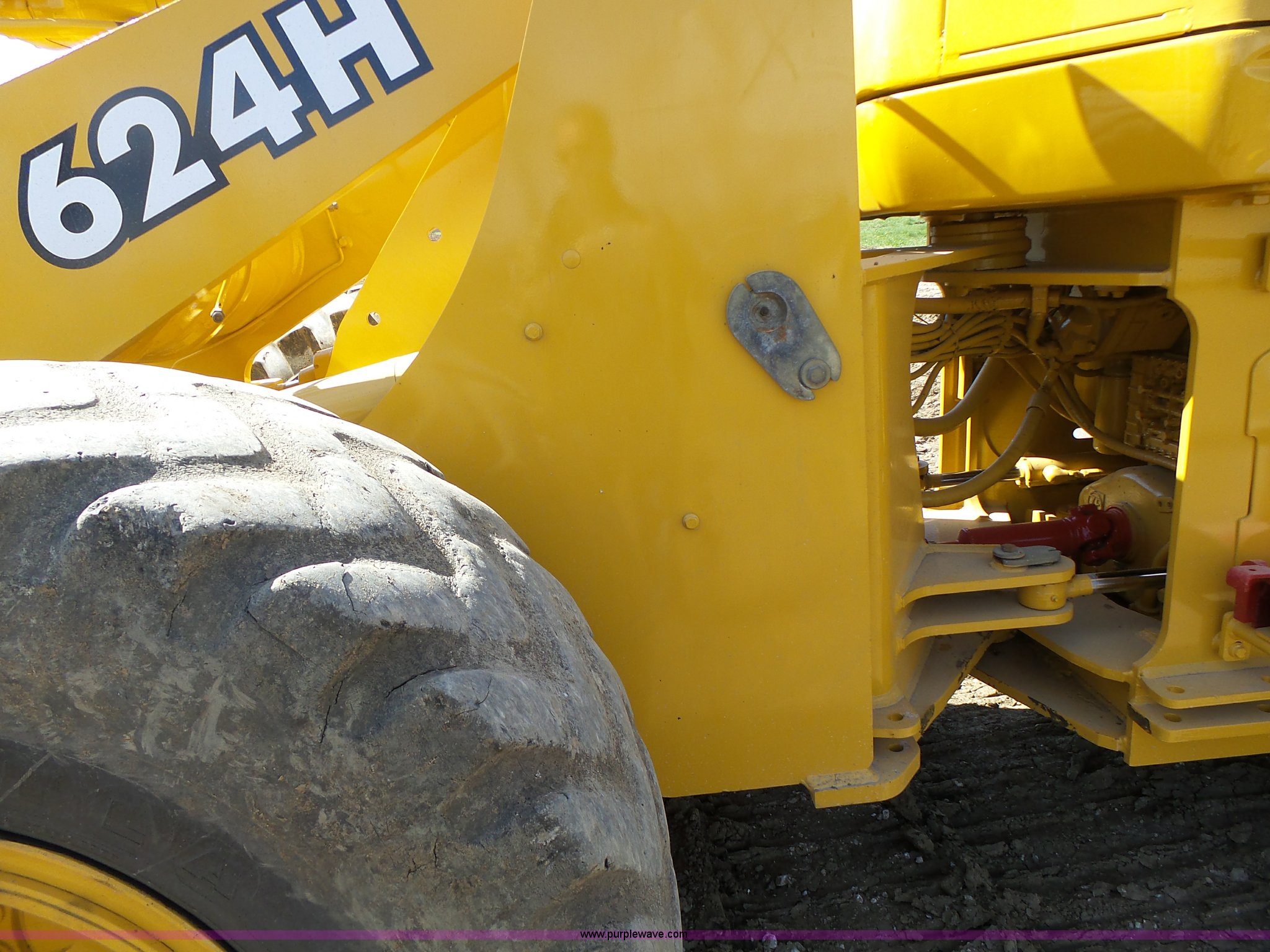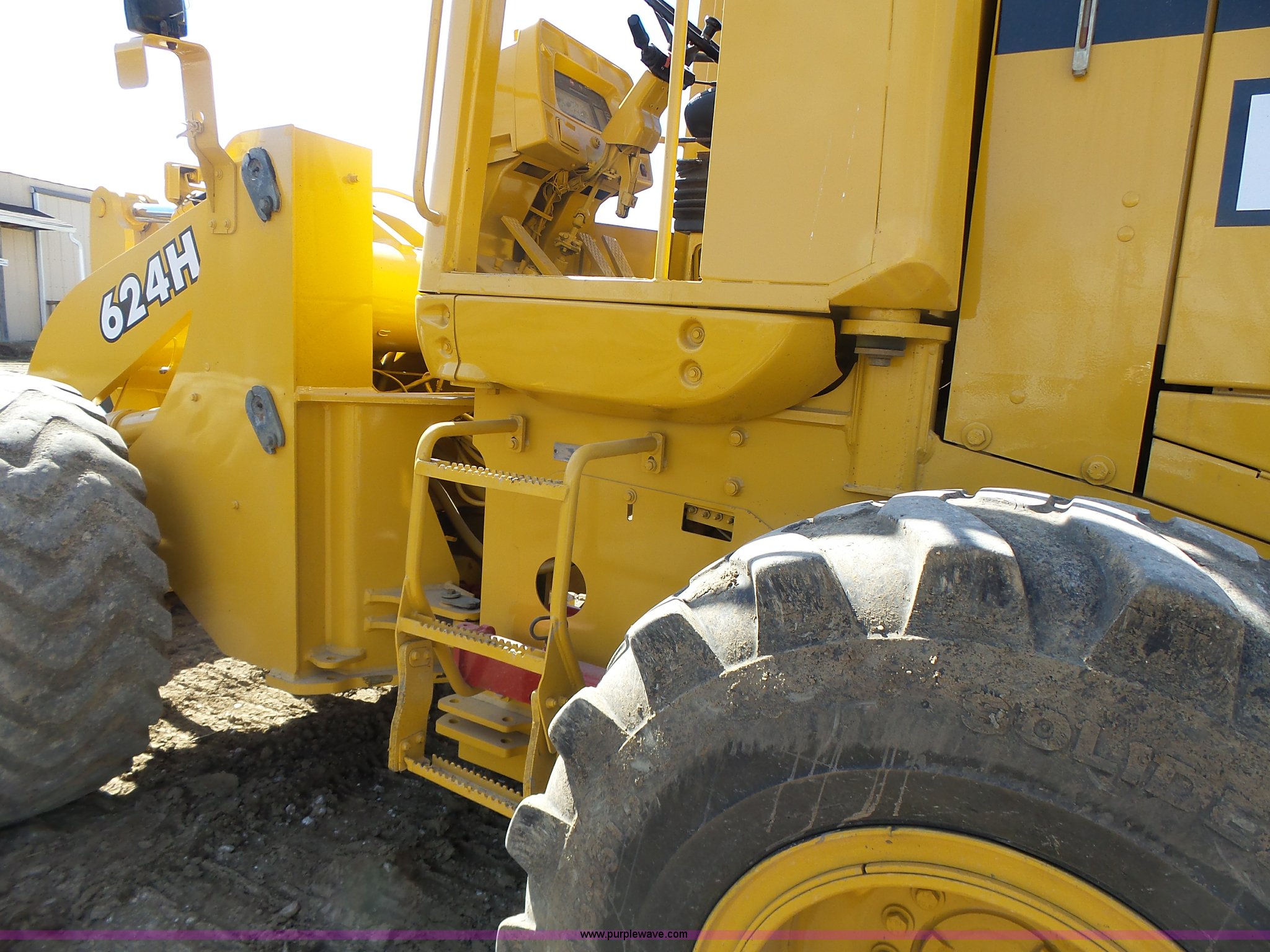 Purple Wave is selling a used Wheel Loader in Missouri. This item is a 1999 John Deere 624H wheel loader with the following: 18,007 hours on meter, John Deere six cylinder turbo diesel engine, Serial T06068H870877, 4F-4R gears, OROPS, Suspension seat, Joystick bucket controls, Front and rear work lights, 104"W general purpose bucket, Bolt-on cutting edge, Quick coupler, 20.5-25 tires, 29,894 lbs. base operating weight, Serial W624HX572944