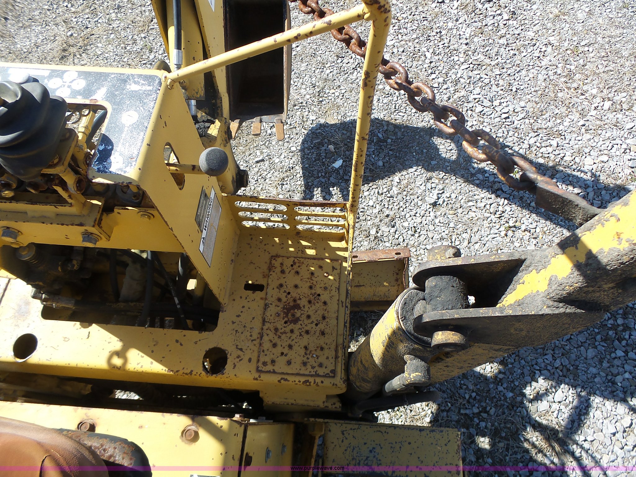 Purple Wave is selling a used Trencher or Rock Saw in Missouri. This item is a Vermeer V4150 trencher with the following: 2,068 hours on meter, Deutz three cylinder diesel engine, Hydrostatic transmission, Four wheel drive, Suspension seat, 6' maximum digging depth, 6"W trench capacity, Crumber shoe, Backhoe, Joystick controls, 12"W bucket, Three teeth,, 64"W four way back fill blade, 29 x 12.5-15 tires, Flat tire, Non-operational unit, Serial 1VRF08201P1000292, MODOT ID 8A11727