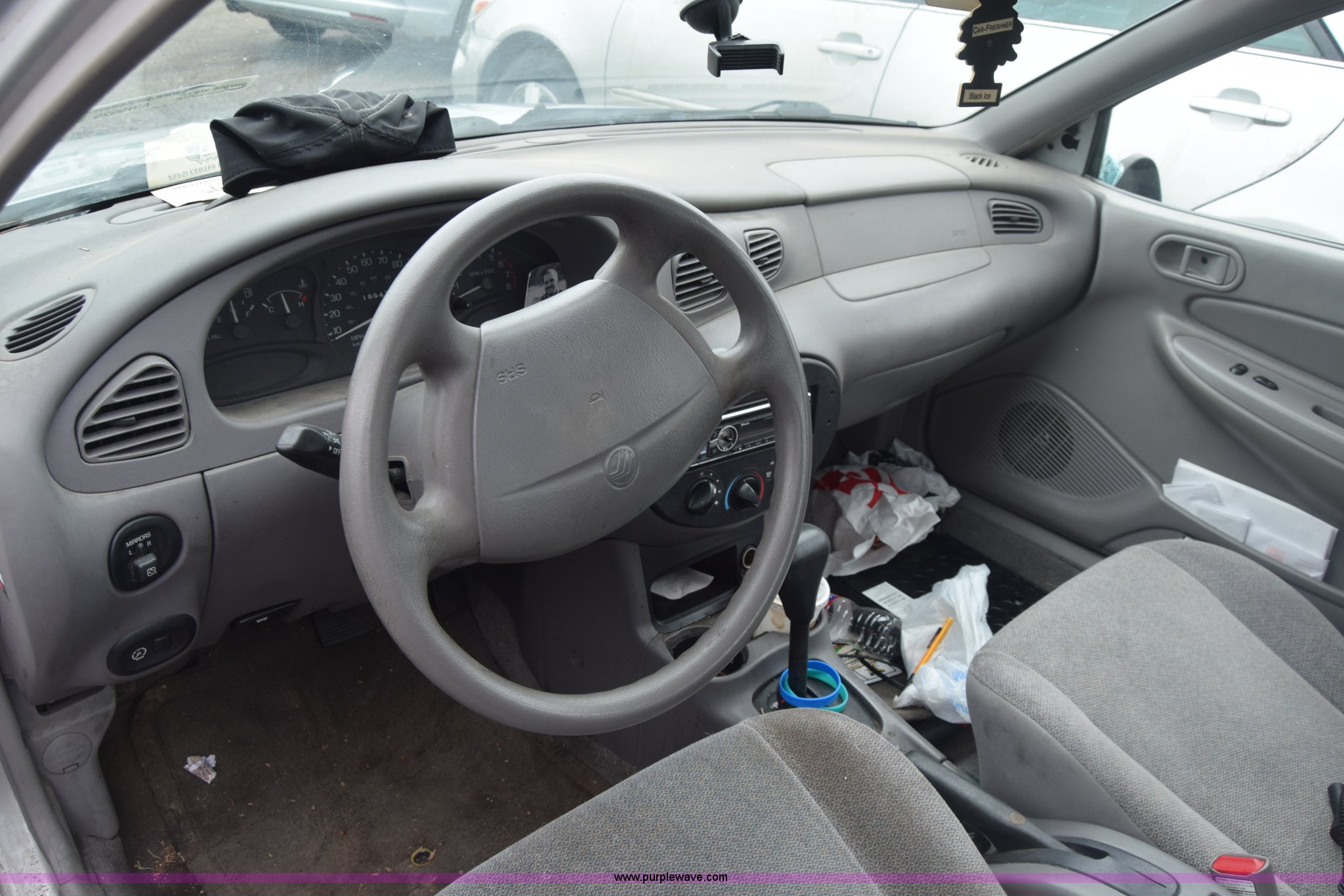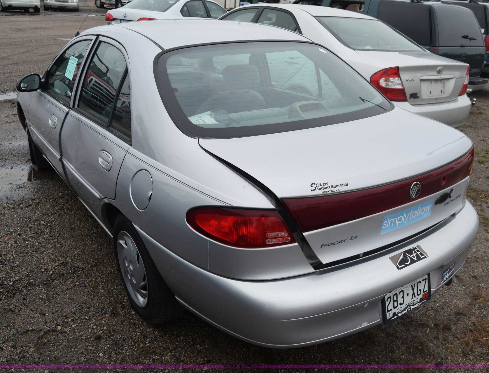 Purple Wave is selling a used Passenger Vehicle in Kansas. This item is a 1999 Mercury Tracer with the following: 186,435 miles on odometer, 2.0L L4 SOHC 8V gas engine, Automatic transmission, AC and heat, Power windows, locks, and mirrors, Cloth interior, 185/65R14 tires, Interior/exterior cosmetic damage, Dents, Scratches, Tires flat, Case# 16C010833