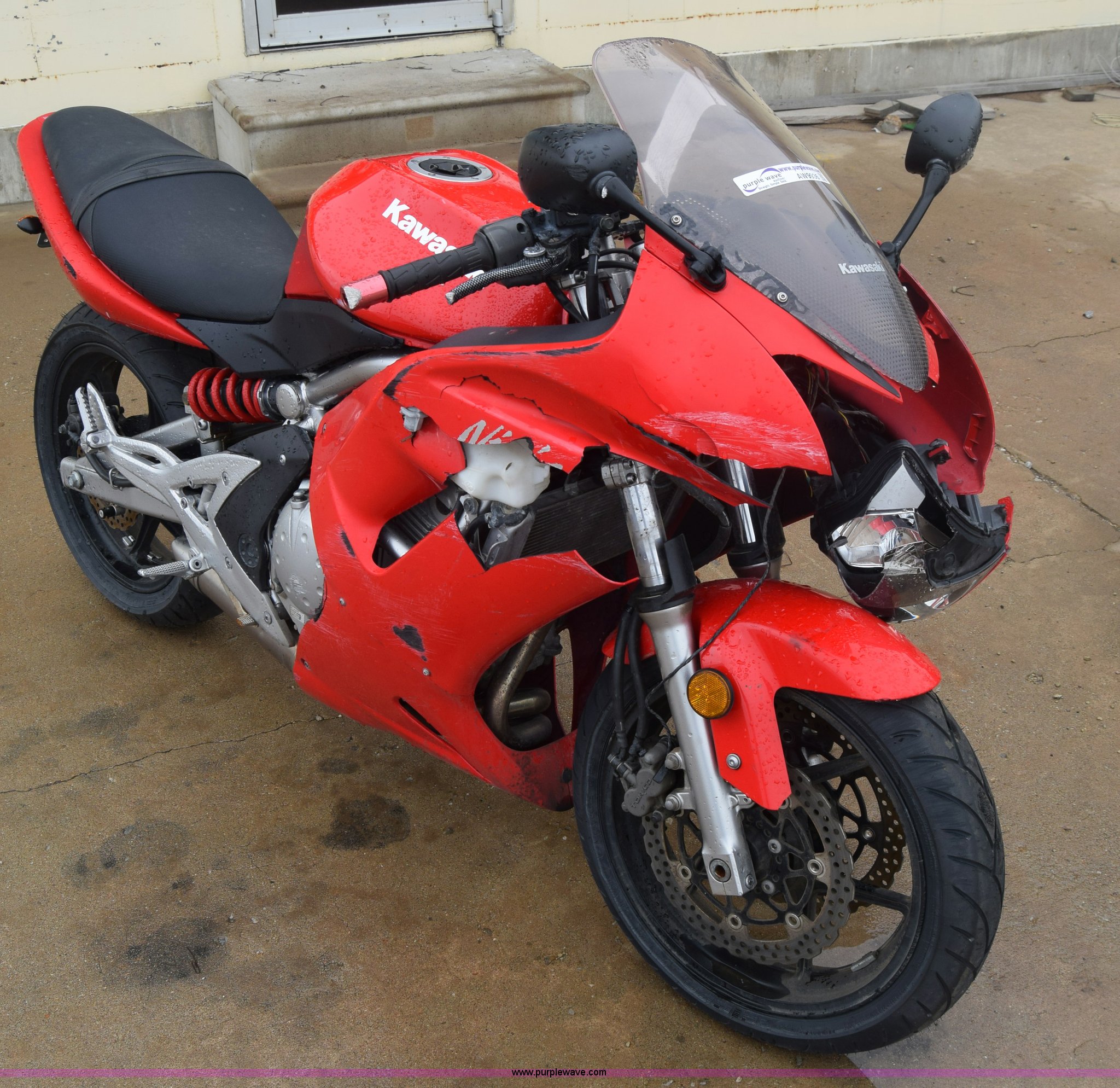 Purple Wave is selling a used Motorcycle in Kansas. This item is a 2007 Kawasaki Ninja motorcycle with the following: Unknown miles on odometer, 650cc gas engine, Manual transmission, 100/60ZR17 tires, Keys, Cosmetic damage, Front end damage, Case# 16C11166