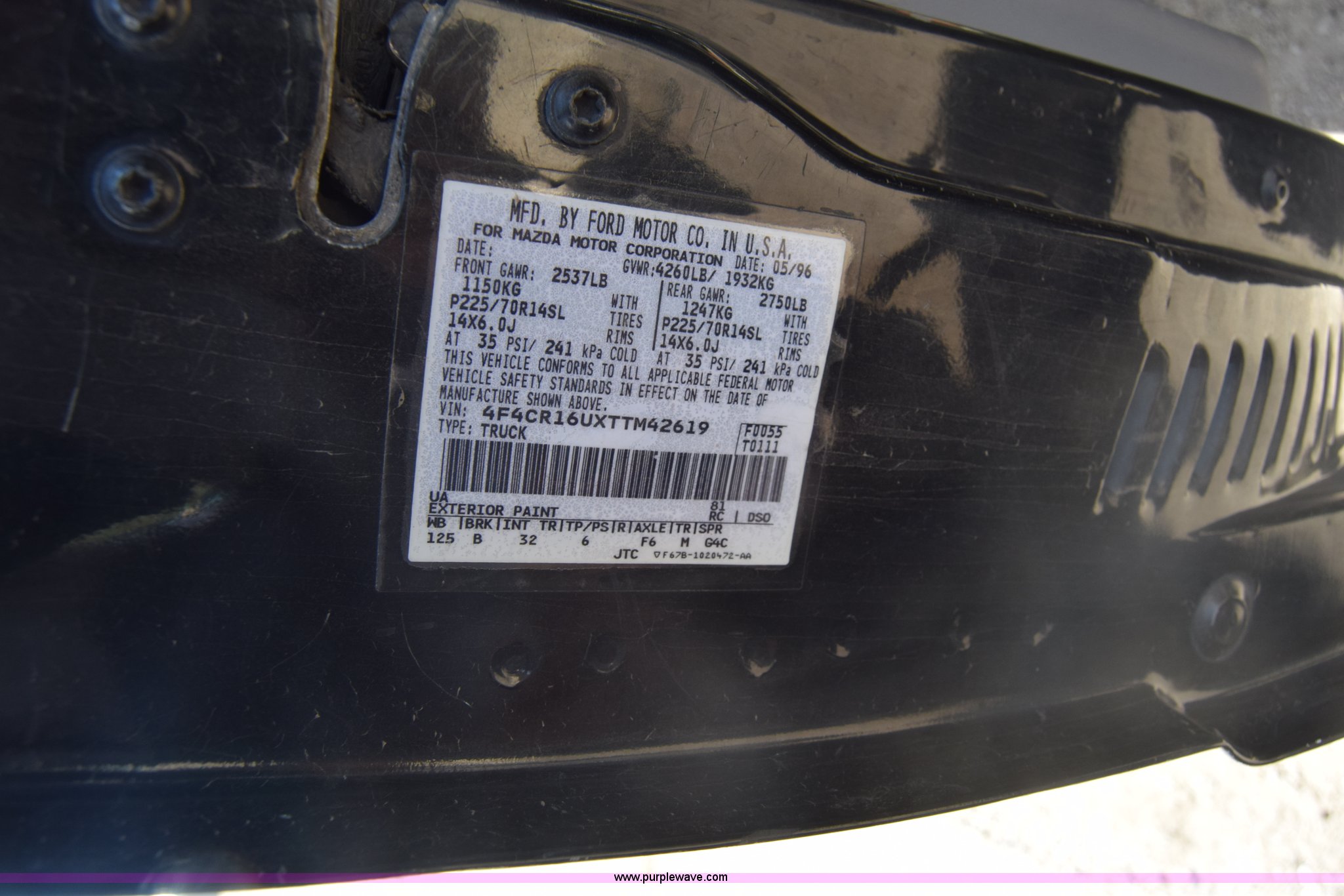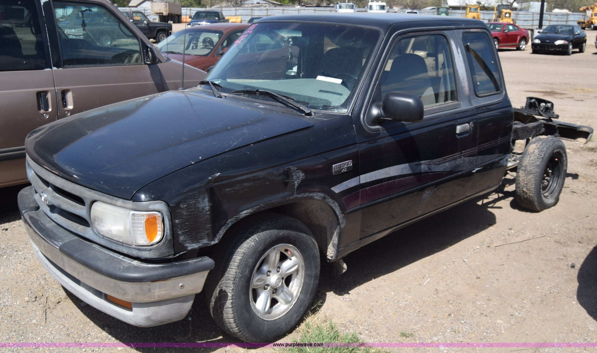 Purple Wave is selling a used Compact Pickup or Van in Kansas. This item is a 1996 Mazda B3000 SE Ext. Cab pickup truck cab and chassis with the following: 194,633 miles on odometer, 3.0L V6 OHV 12V gas engine, Manual transmission, AC and heat, AM/FM/CD, Manual windows and locks, Cloth interior, 215/70R14 tires, Interior/exterior cosmetic damage, Dents, Scratches, Headlight missing, Cracked windshield, Case# 16C03142
