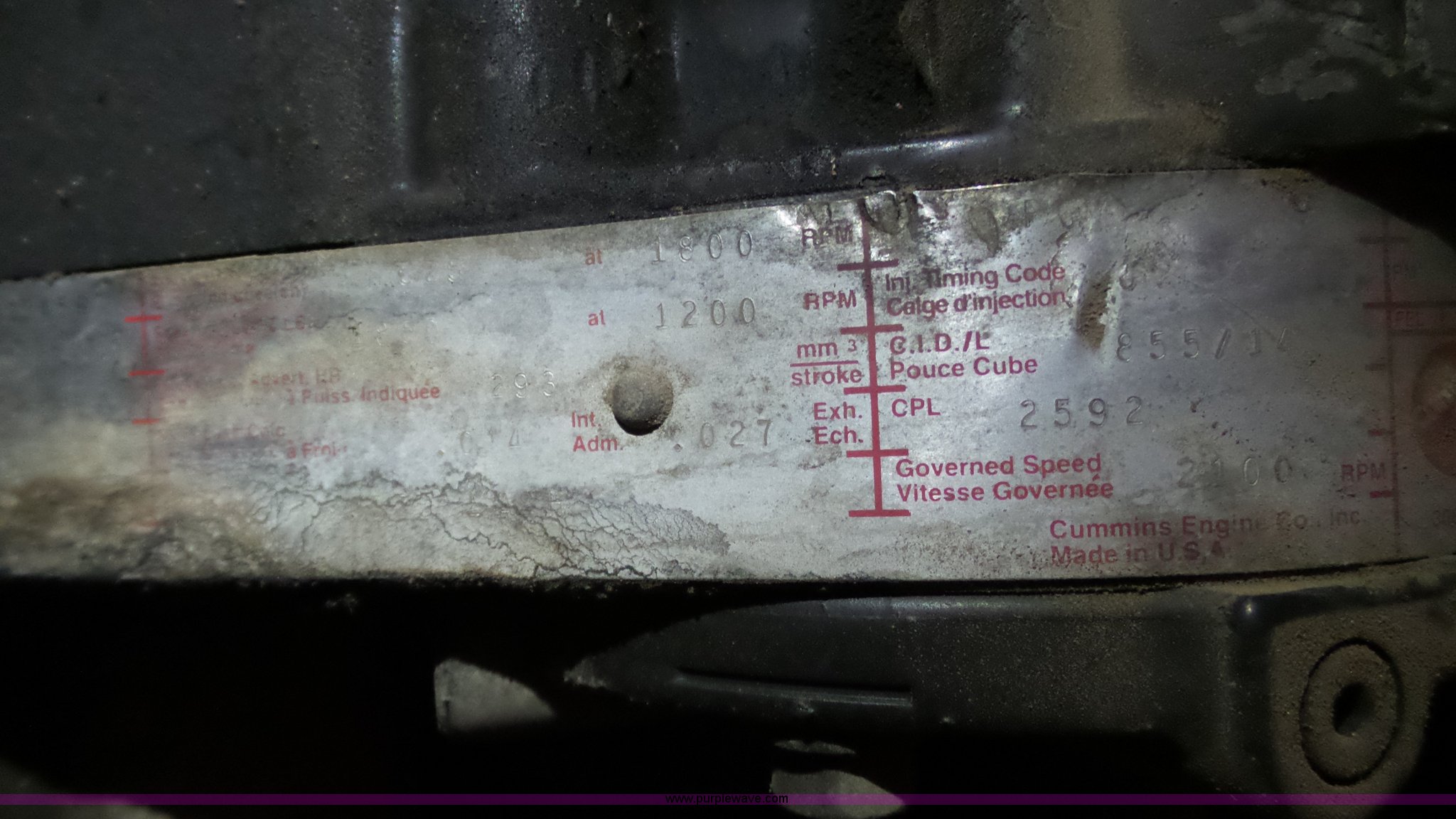 Purple Wave is selling a used Truck Part and Attach. in Kansas. This item is a Cummins N14 six cylinder diesel engine with the following: Cummins N14 six cylinder diesel engine. 1008 W 17th St. Goodland, KS 67735