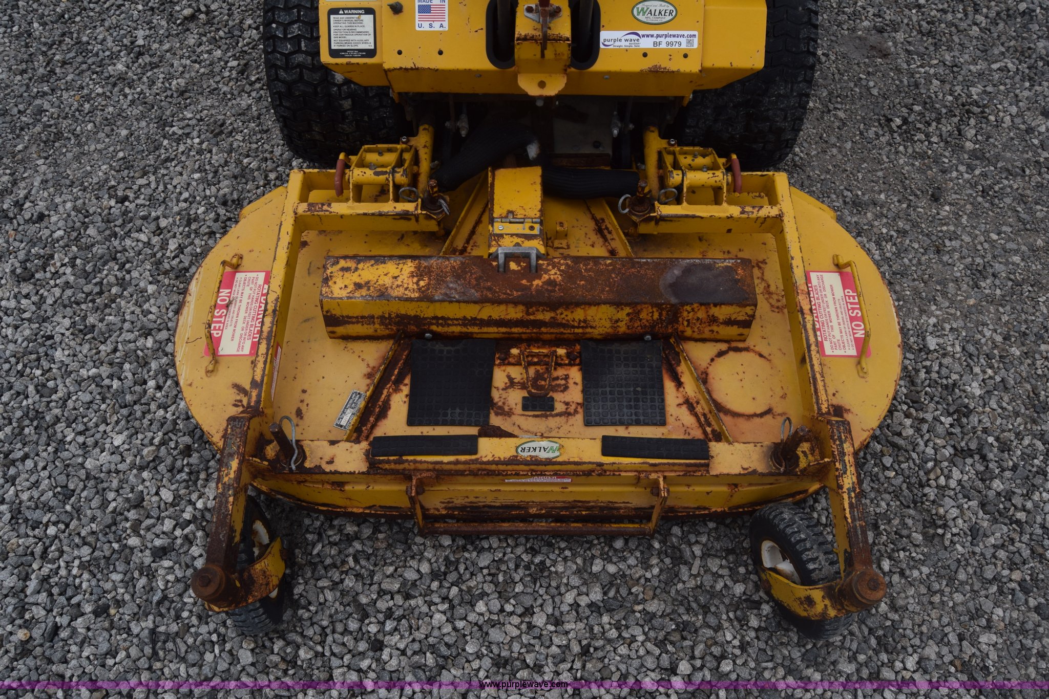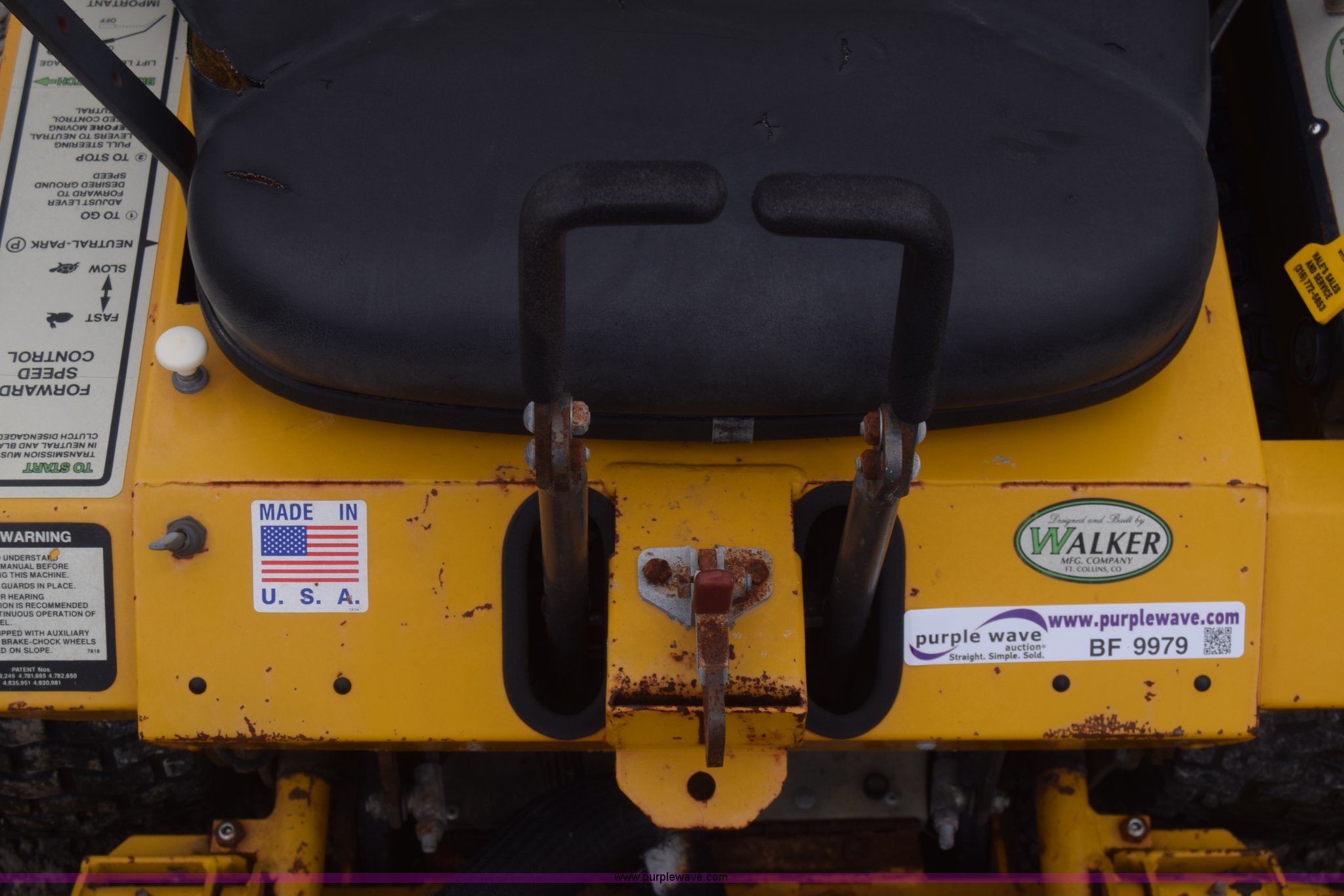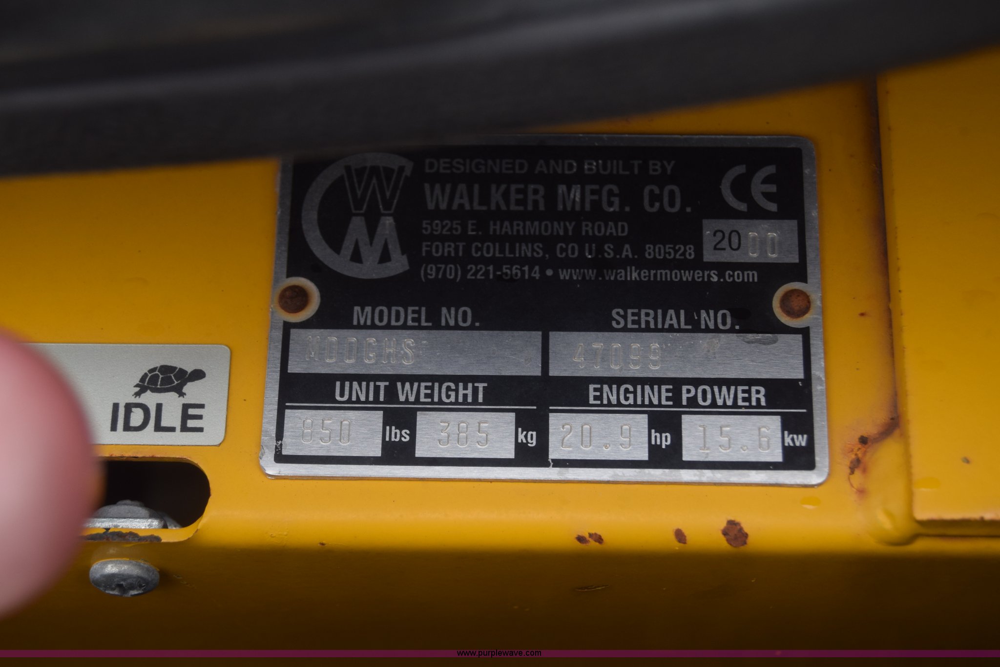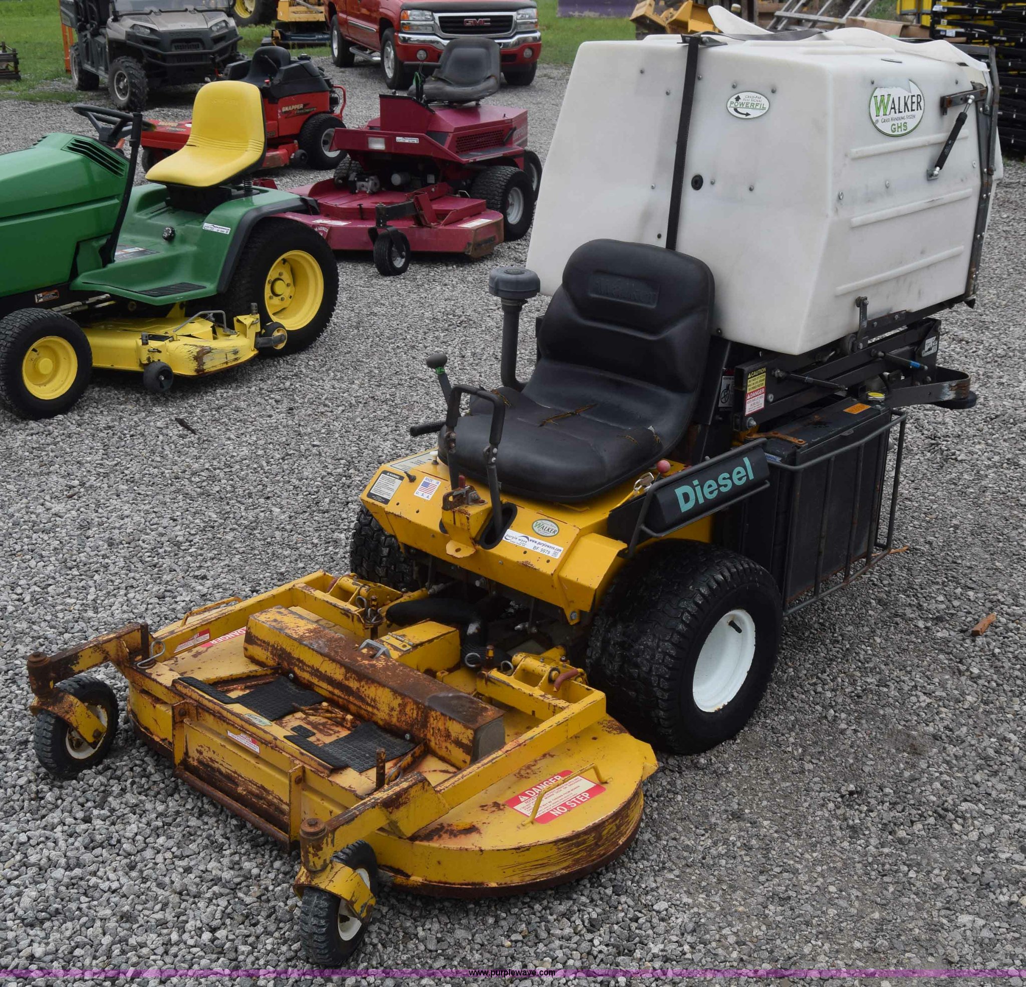 Purple Wave is selling a used Lawn Mower in Kansas. This item is a 2000 Walker MDDGHS lawn mower with the following: 2,836 hours on meter, 48" cut, Kubota three cylinder diesel engine, 20 HP, Walker grass handler, All seasons hydraulic lift system, 18x9.50-8 front tires, 13x5.00-6 rear tires, 850 lbs. base operating weight, Recently replaced belts, battery and relay, Remanufactured starter recently installed, Serial 47099
