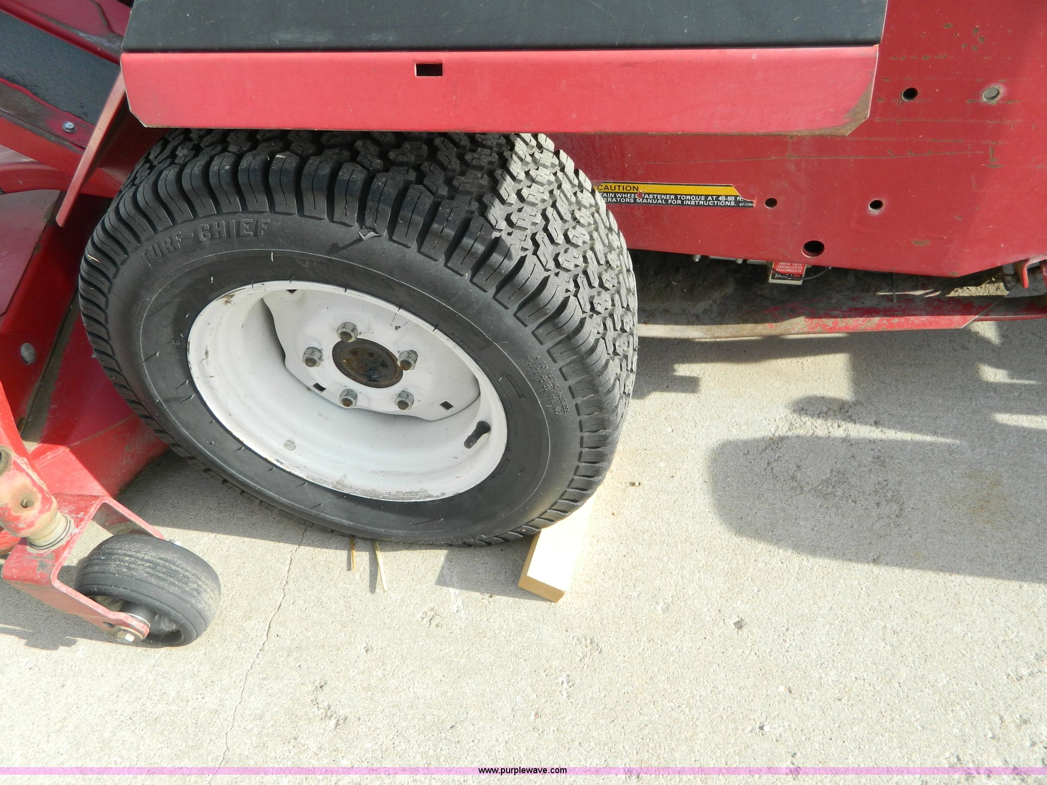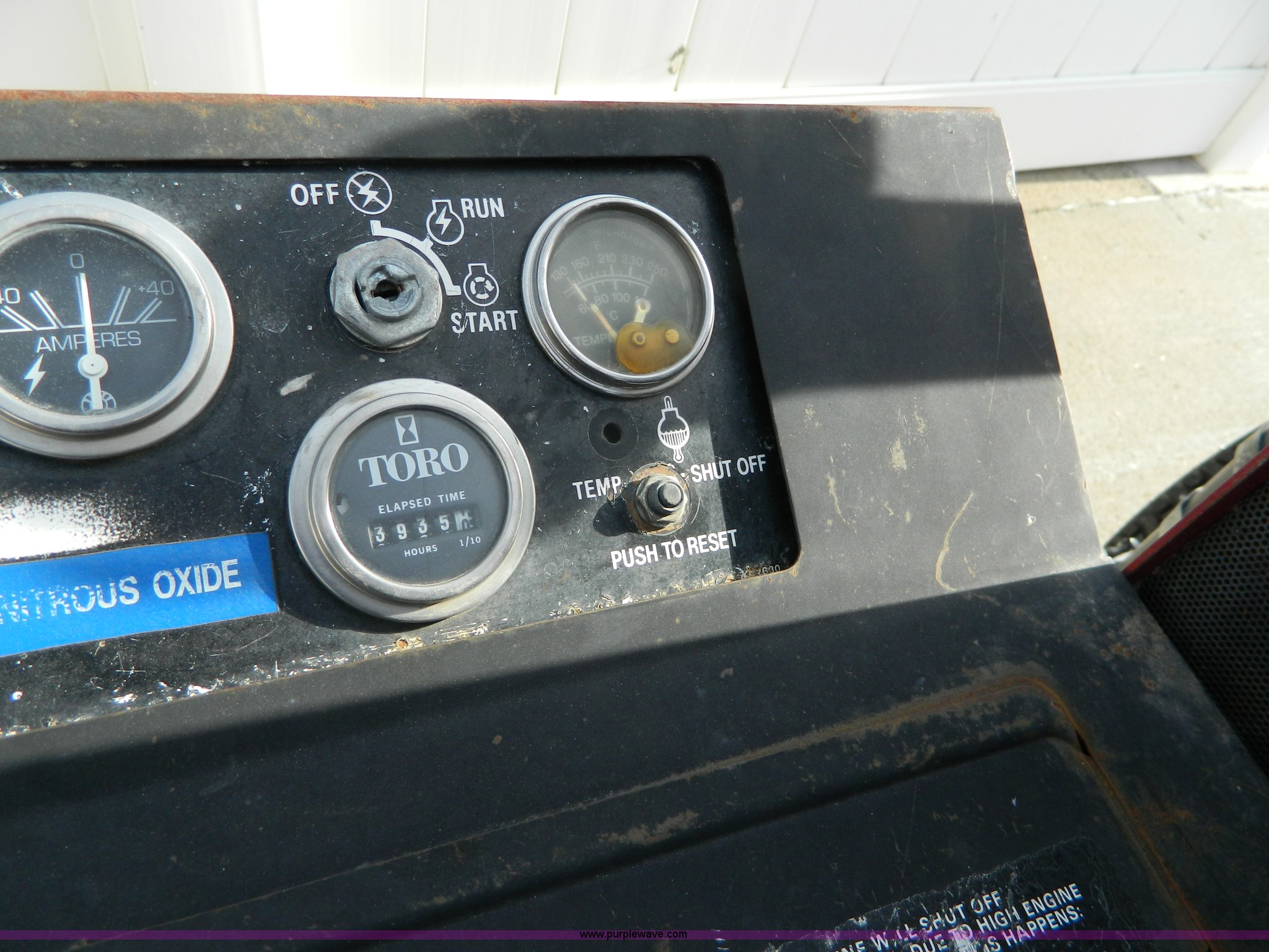Purple Wave is selling a used Commercial Turf Mower in Kansas. This item is a Toro Groundmaster 345 lawn mower with the following: Model 30789, 3,935 hours on meter, Hours may vary, still in use, 72" cut, Four cylinder gas engine, Hydrostatic transmission, 16x8.5 front tires, 23x8.5 drive tires, Serial 20626