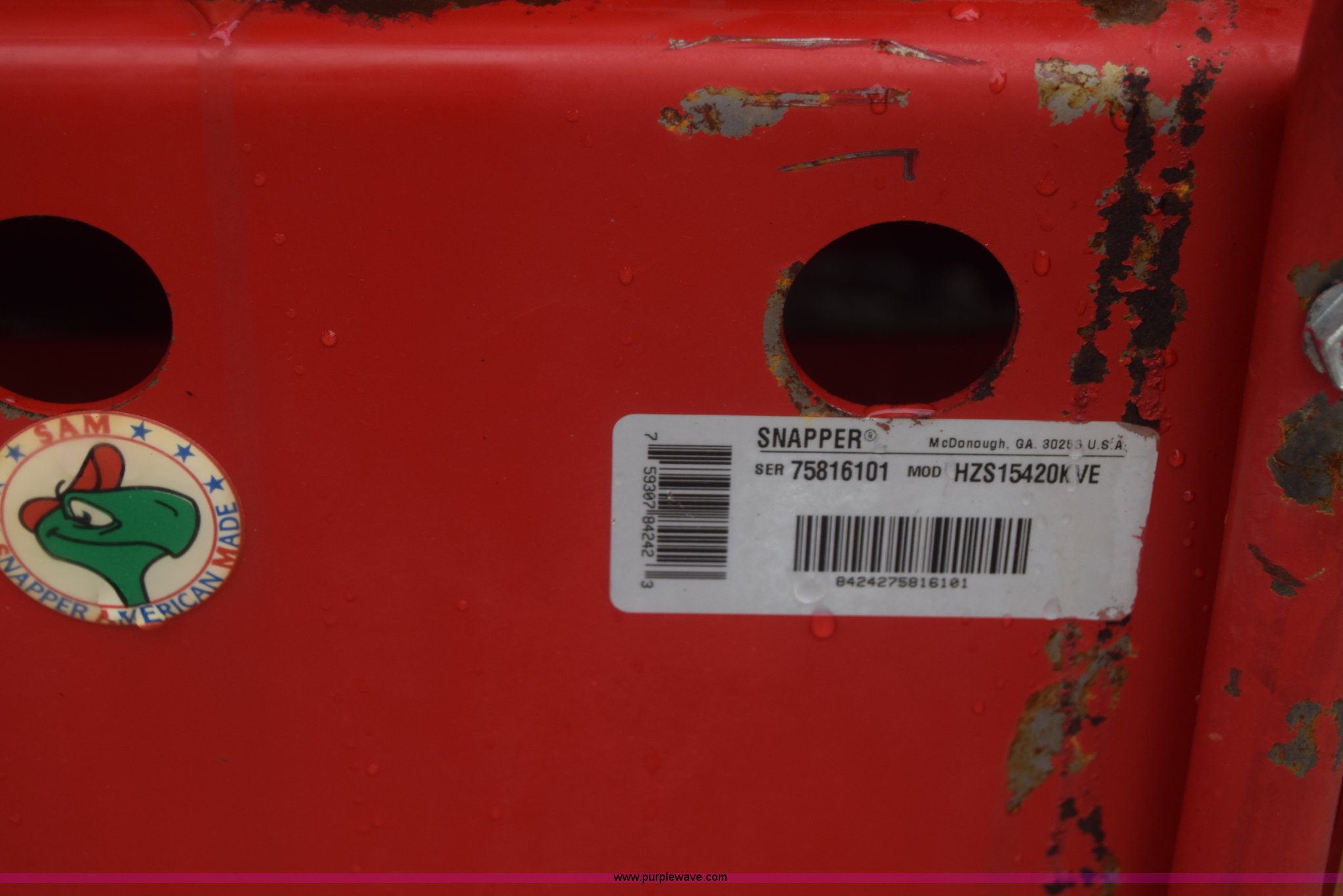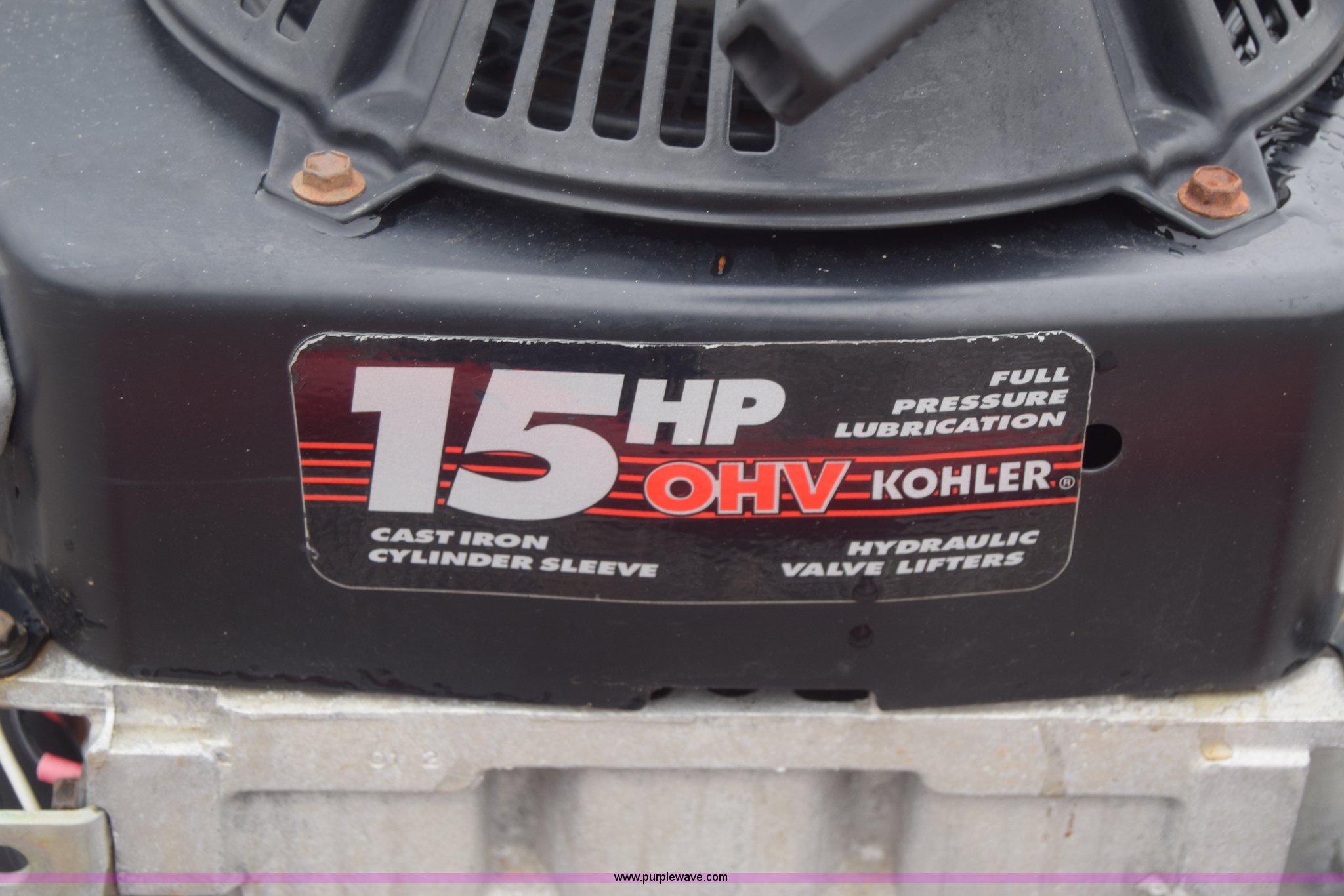 Purple Wave is selling a used Lawn Mower in Kansas. This item is a Snapper Yard Cruiser lawn mower with the following: 42" cut, Kohler gas engine, 15 HP, Hydrostatic transmission, 11x4.00-5 front tires, 18x8.50-8 rear tires, Serial 75816101