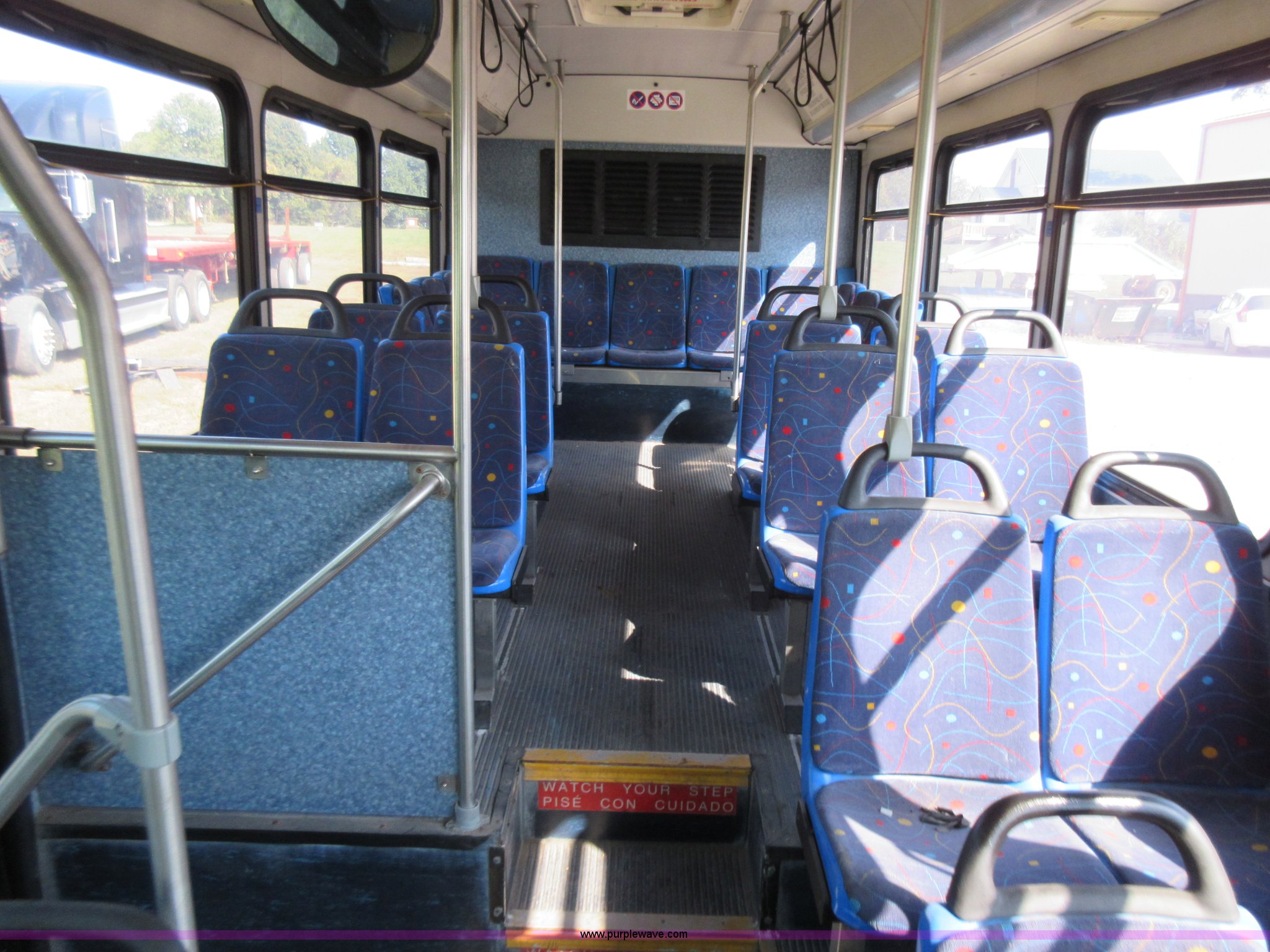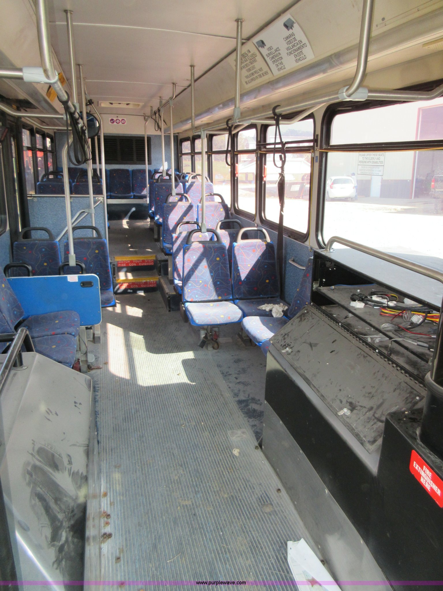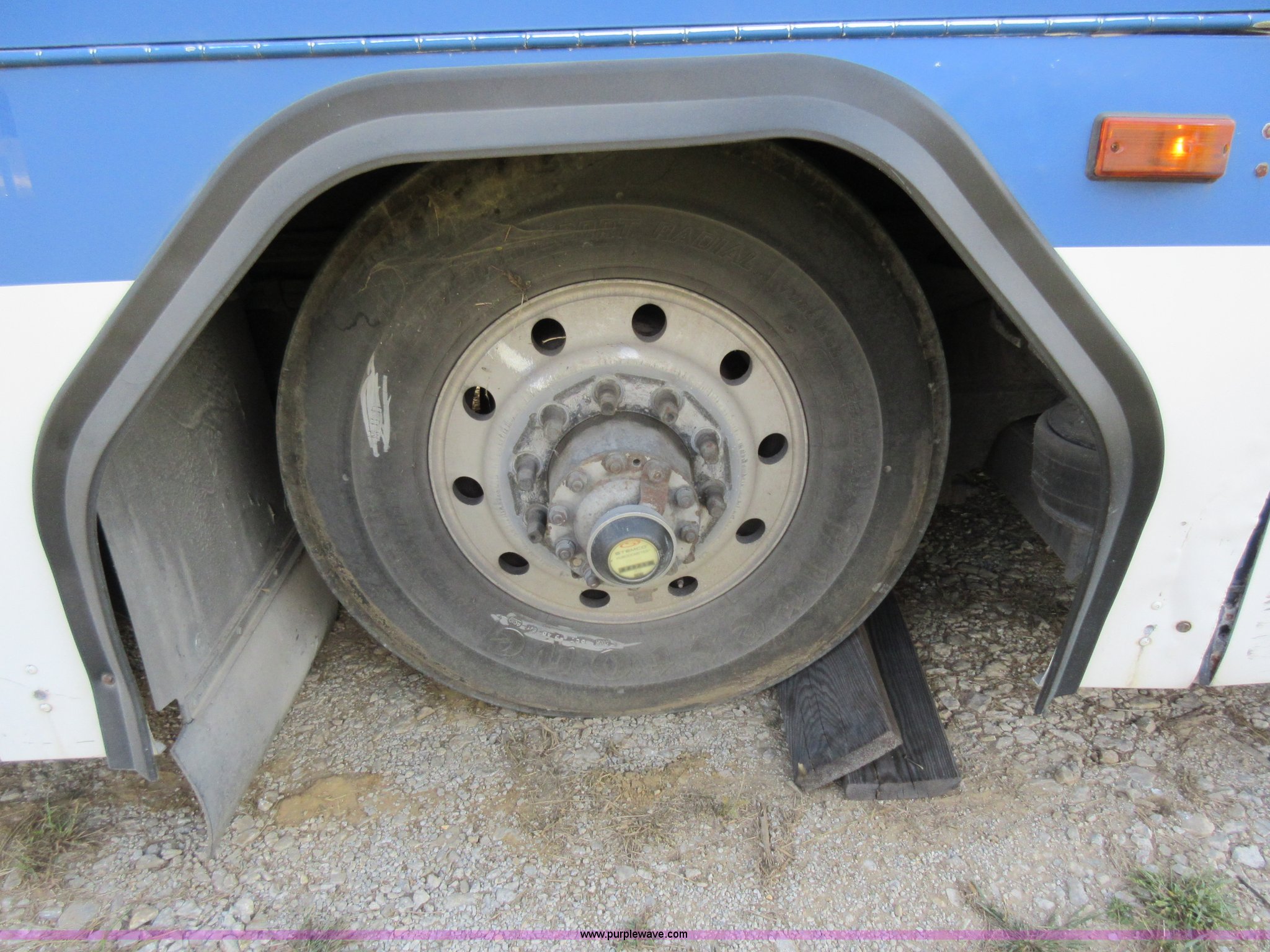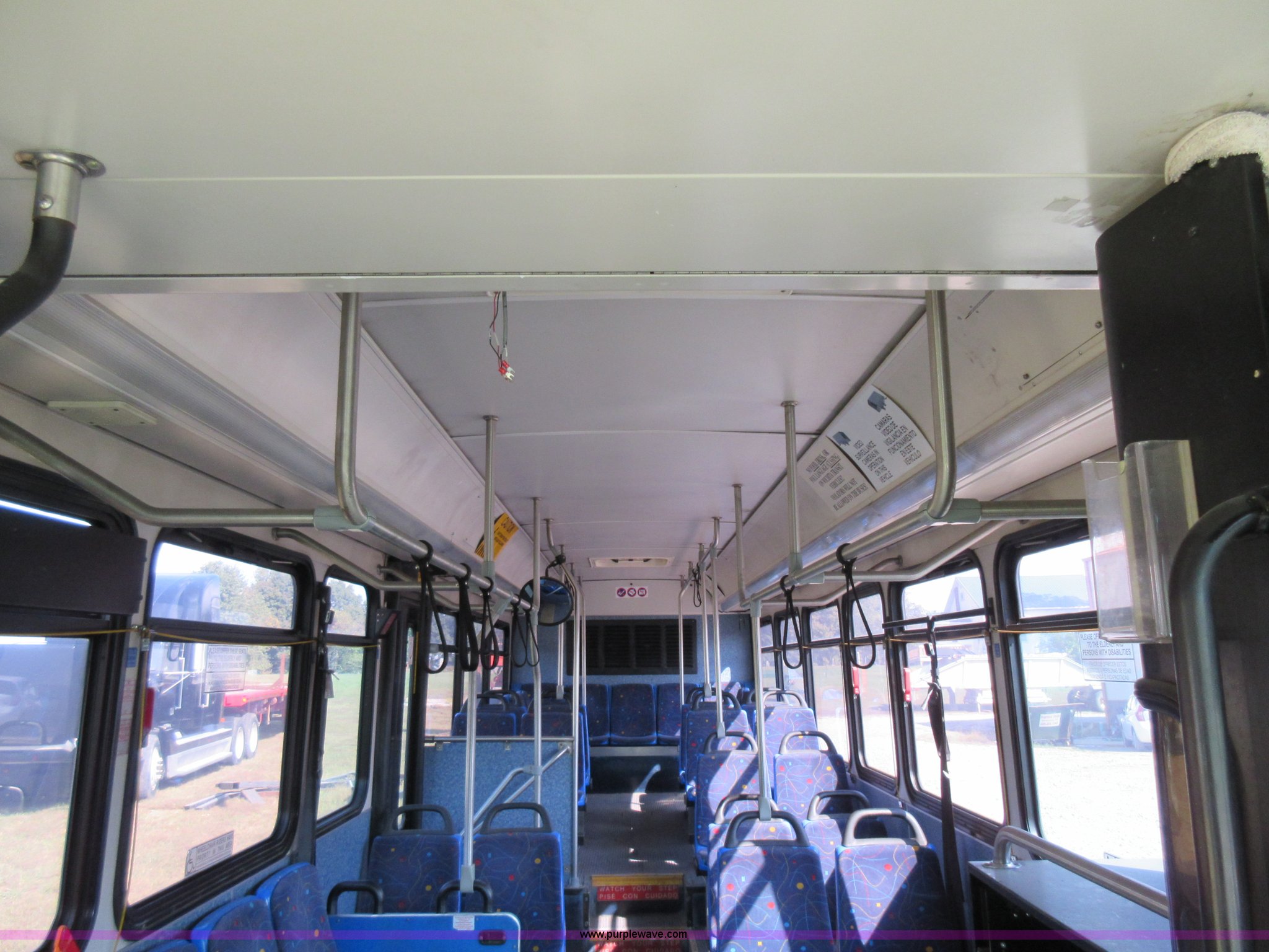 Purple Wave is selling a used Bus in Missouri. This item is a 2002 Gillig Low Floor G22B102N4 transit bus with the following: 450,435 miles on odometer, 164,200 miles on hubometer, Detroit Diesel 8.7L diesel engine, Serial 06N0007087, Automatic transmission, AC and heat, Cloth and vinyl interior, 32 passenger seated capacity, 59 passenger total capacity, Aluminum wheels, 315/80R22.5 tires, GVWR 39,400 lbs, 25,540 lbs unladen weight, Outer wheels removed and are not included, Paint peeling, Scratches and dents