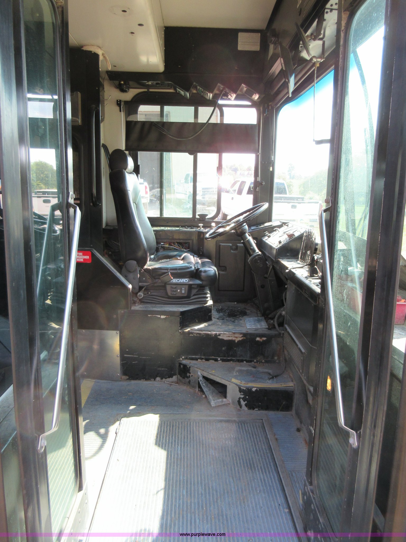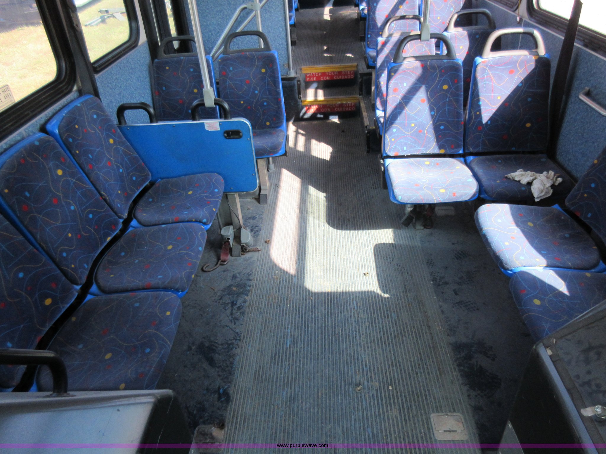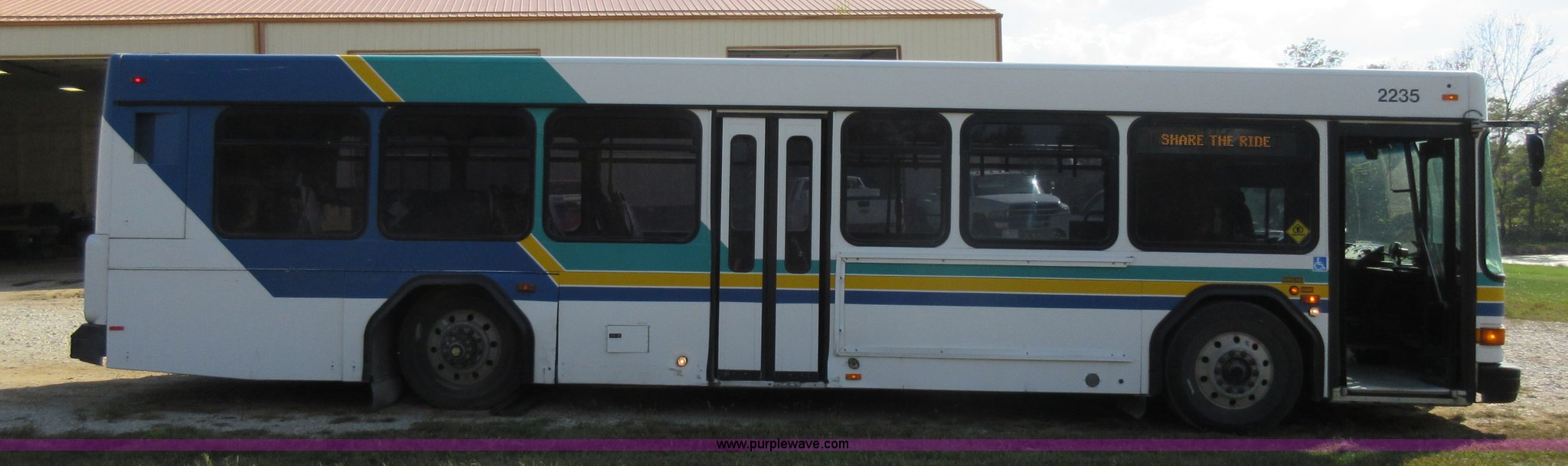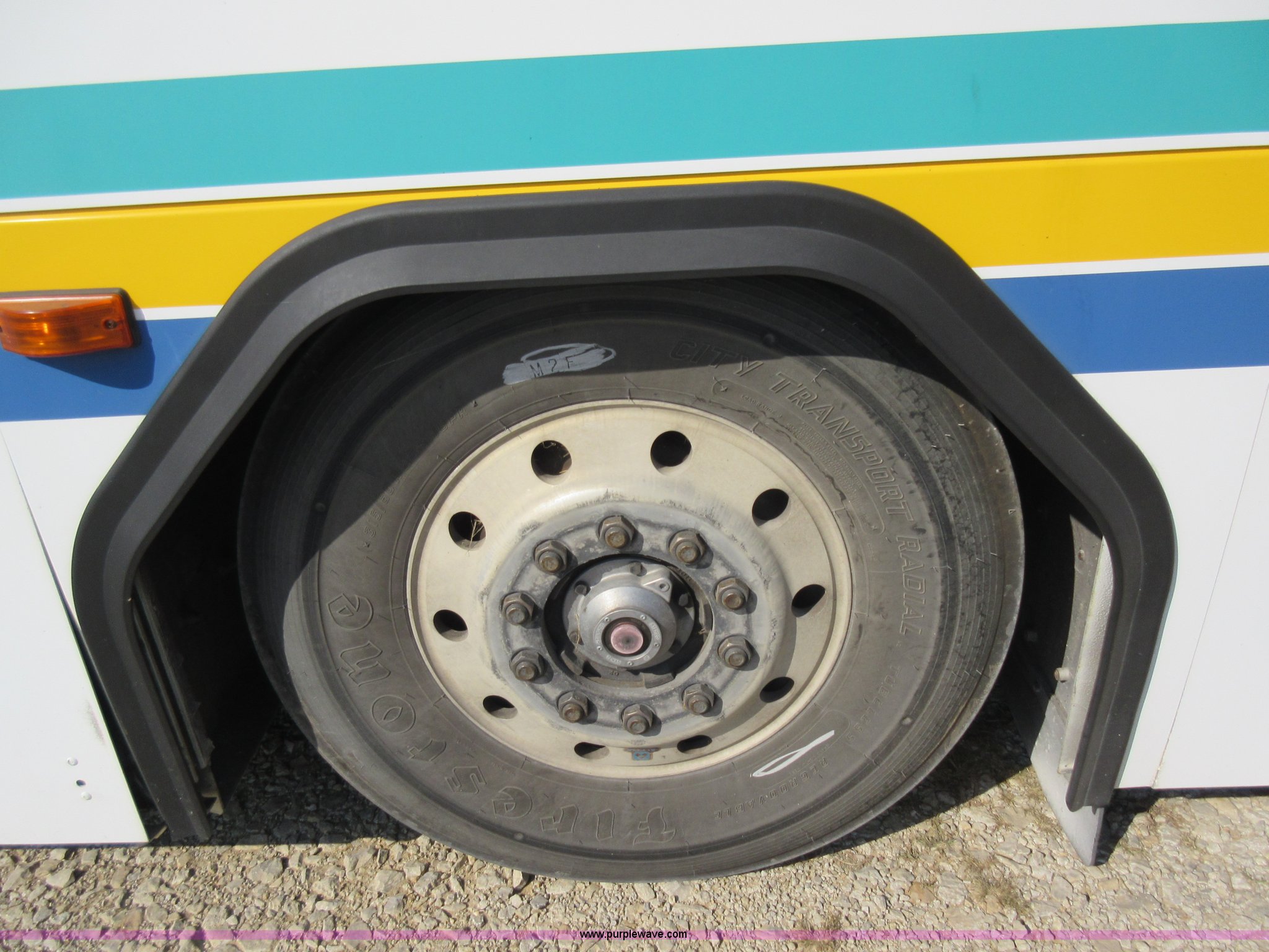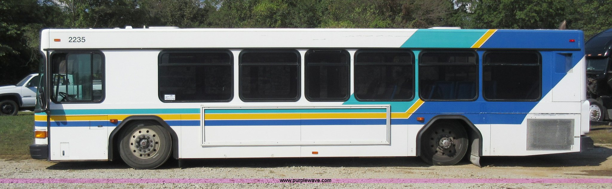 Purple Wave is selling a used Bus in Missouri. This item is a 2002 Gillig Low Floor G22B102N4 transit bus with the following: 450,435 miles on odometer, 164,200 miles on hubometer, Detroit Diesel 8.7L diesel engine, Serial 06N0007087, Automatic transmission, AC and heat, Cloth and vinyl interior, 32 passenger seated capacity, 59 passenger total capacity, Aluminum wheels, 315/80R22.5 tires, GVWR 39,400 lbs, 25,540 lbs unladen weight, Outer wheels removed and are not included, Paint peeling, Scratches and dents