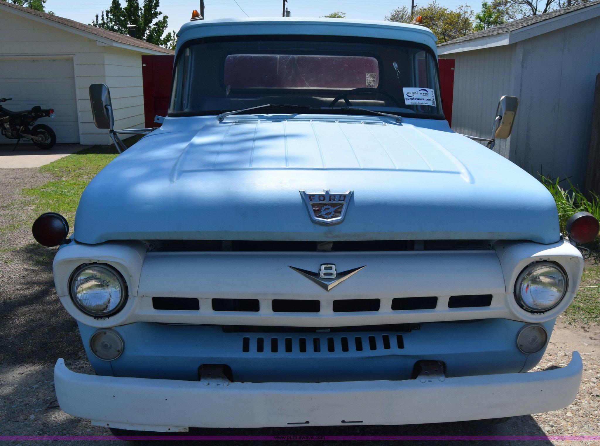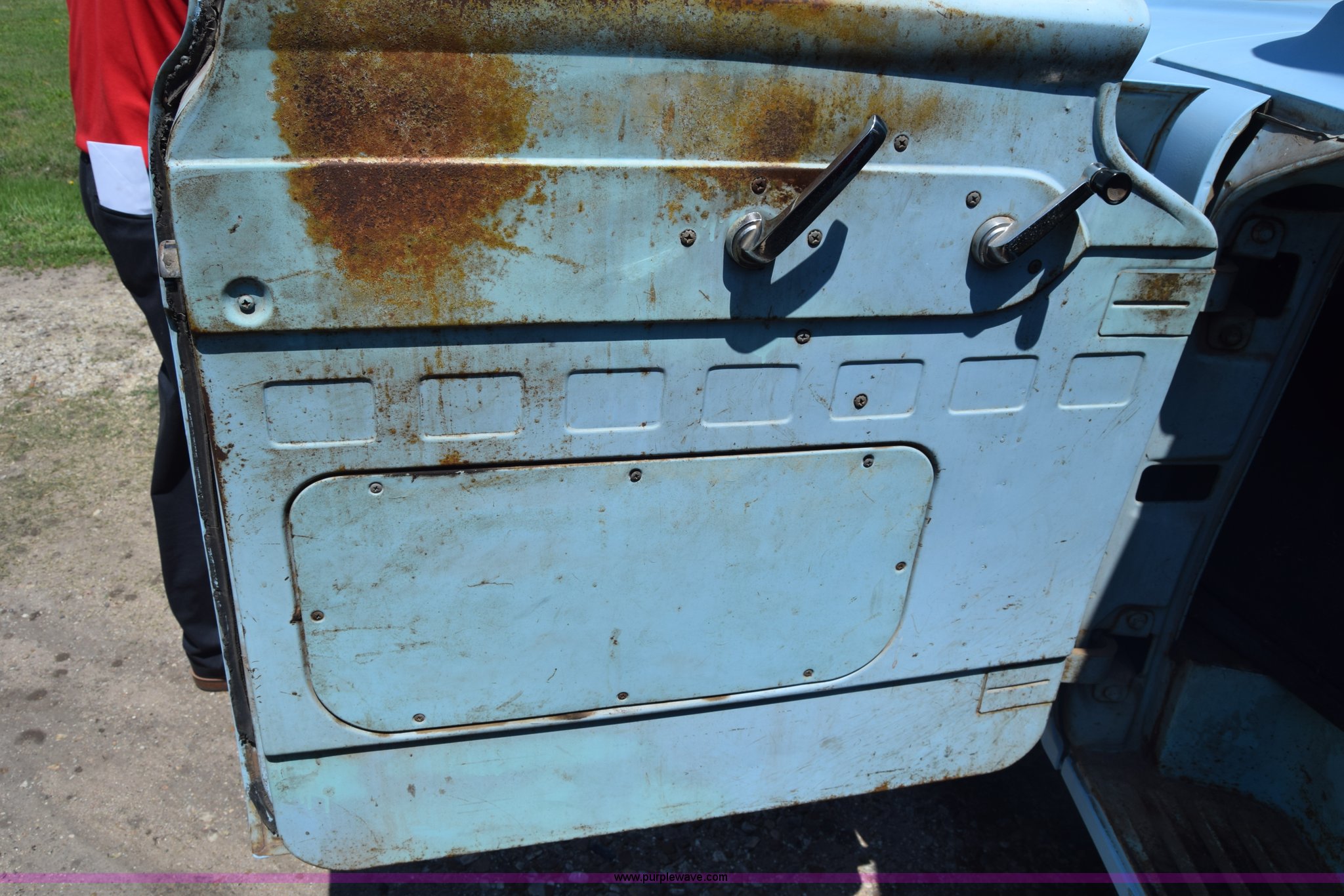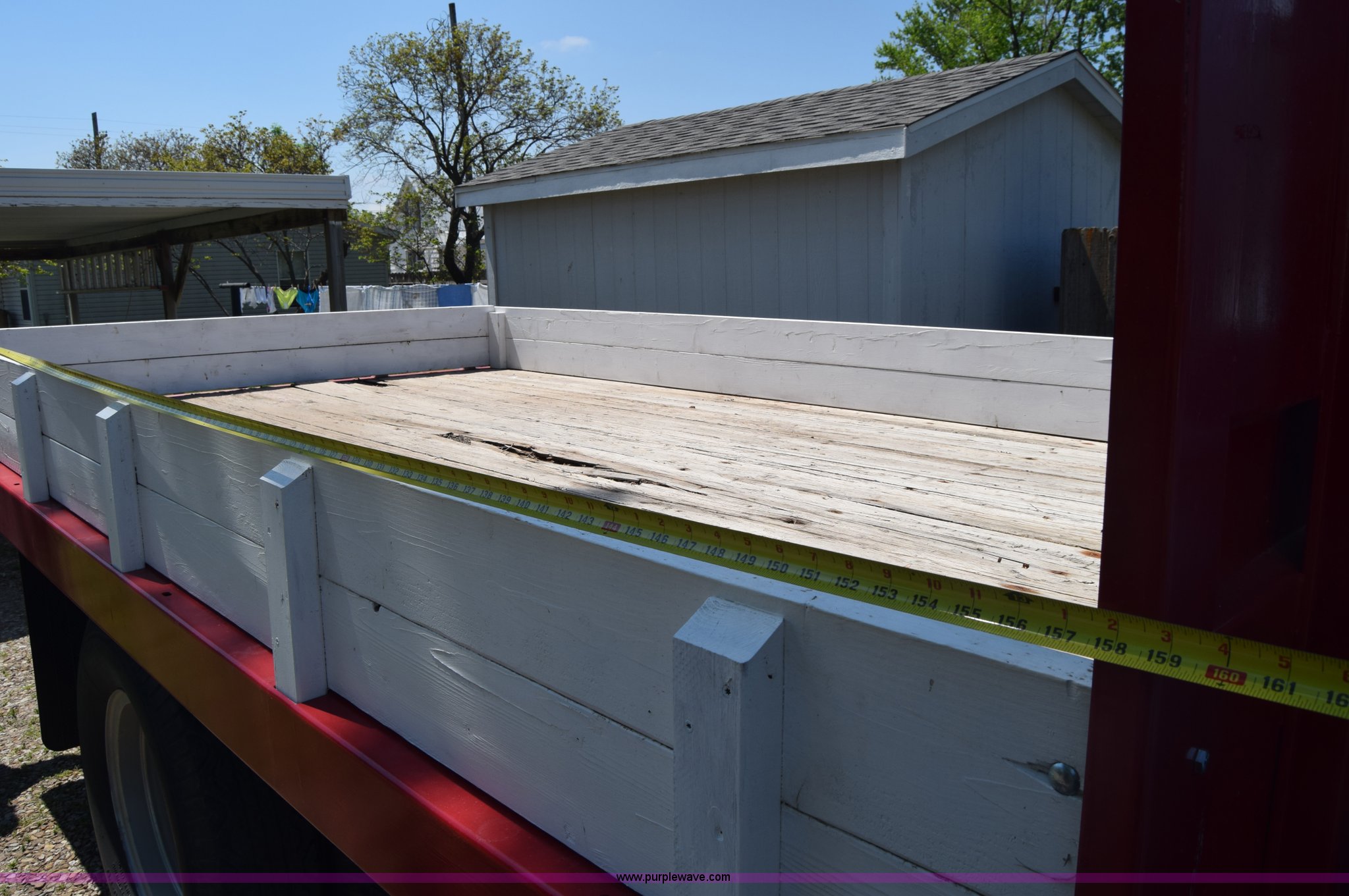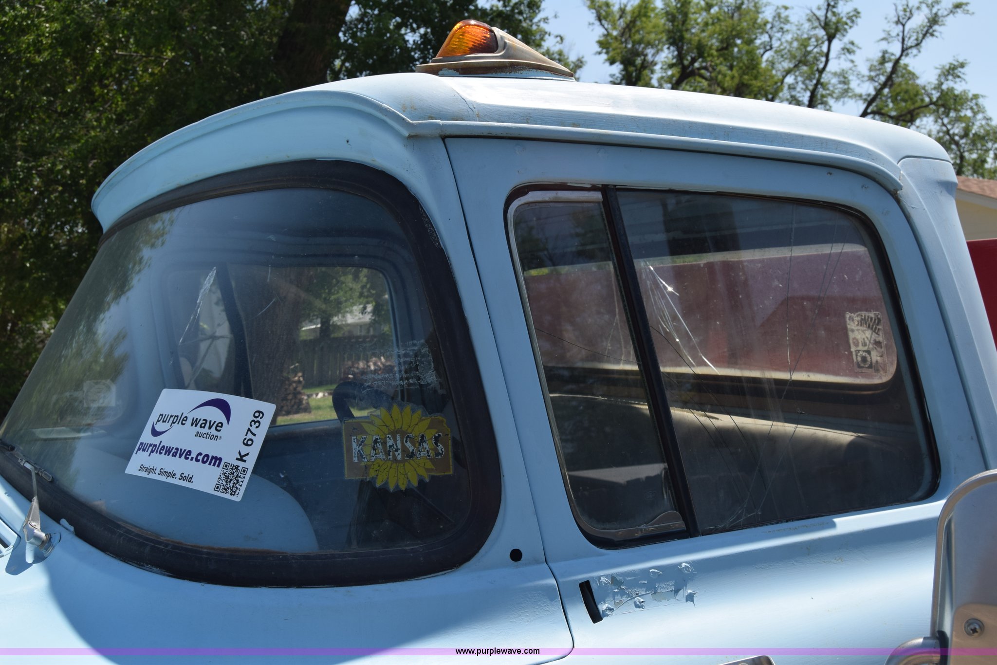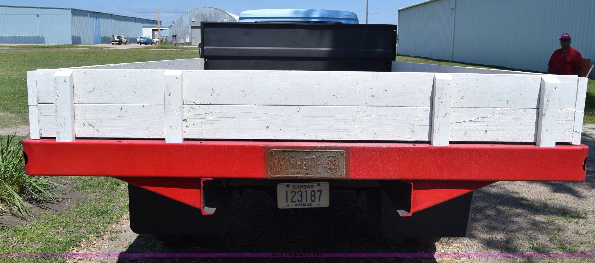 Purple Wave is selling a used Flat Bed Truck in Kansas. This item is a 1957 Ford F600 flatbed truck with the following: 58,728 miles on odometer, Actual mileage unkown, Eight cylinder gas engine, 153 HP, Four speed manual transmission, Heat, Manual windows and locks, Vinyl interior, Knapheide dump flatbed, 13'L x 91"W, Wood floor, Steel sides included, Heil hoist, 154" wheelbase, 9.00-20 tires, GVWR 17,000 lbs