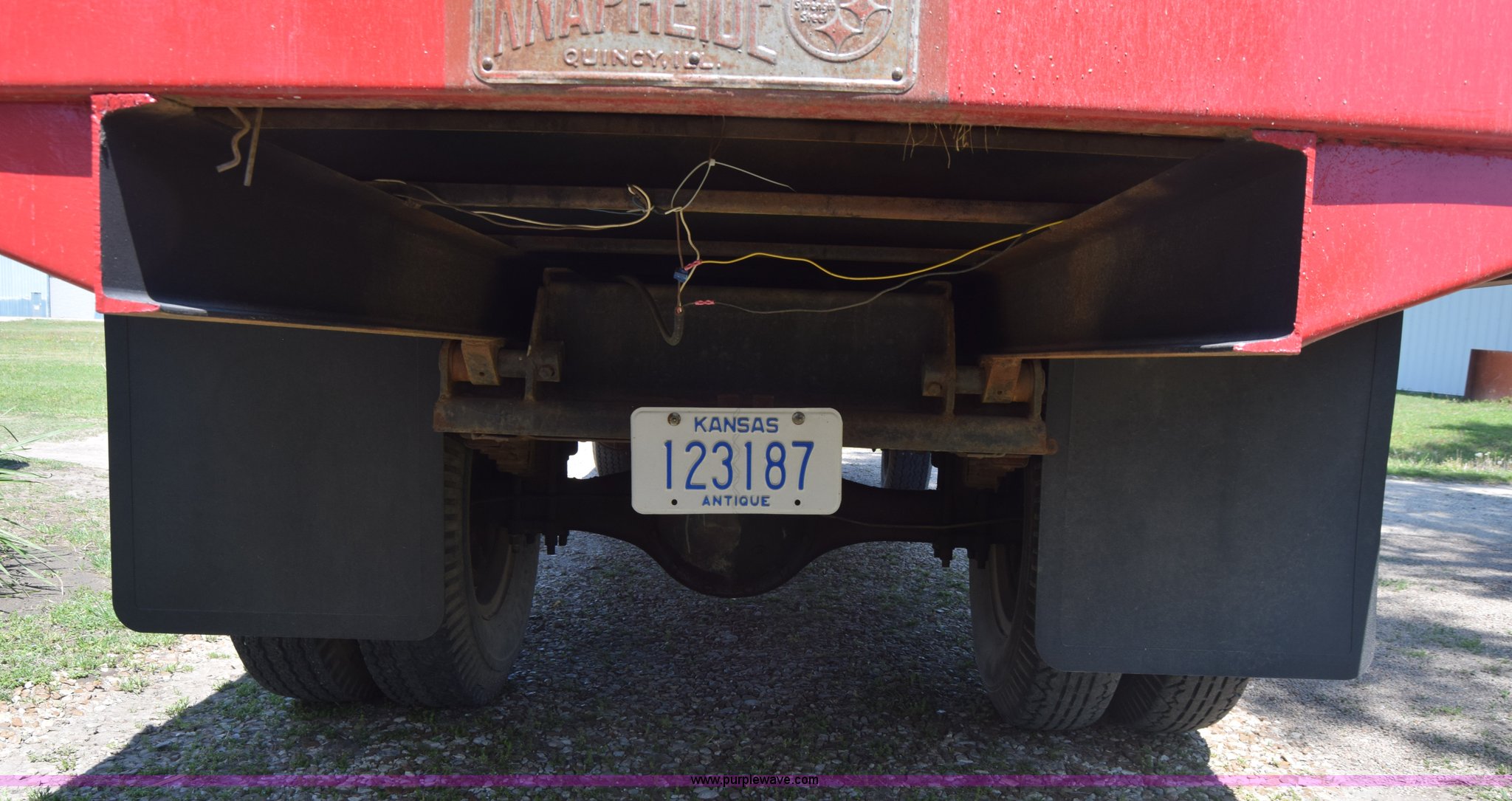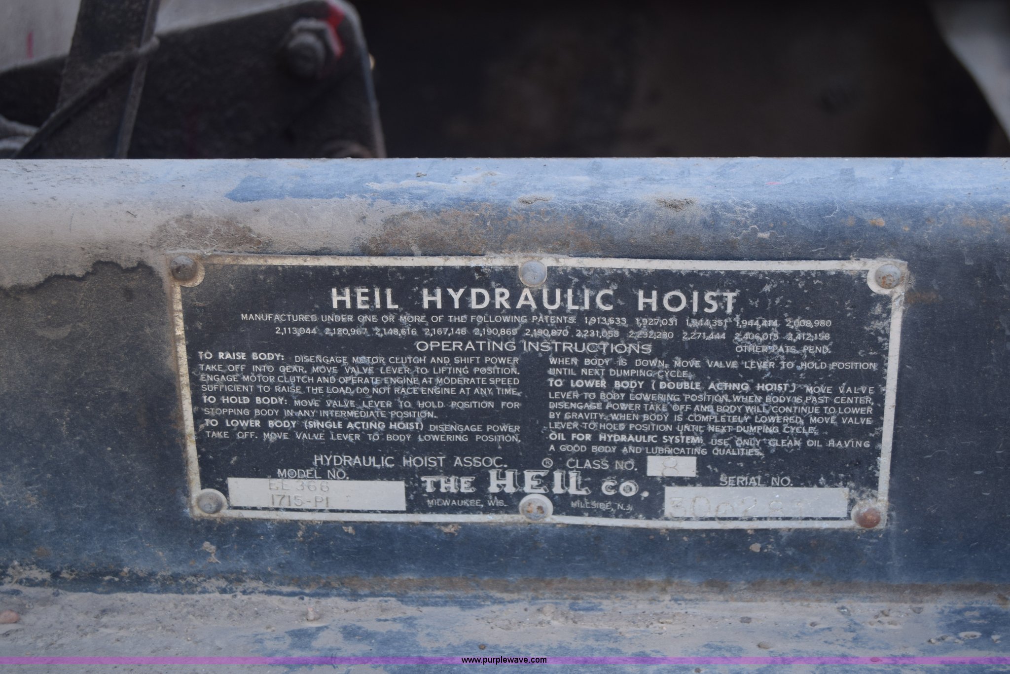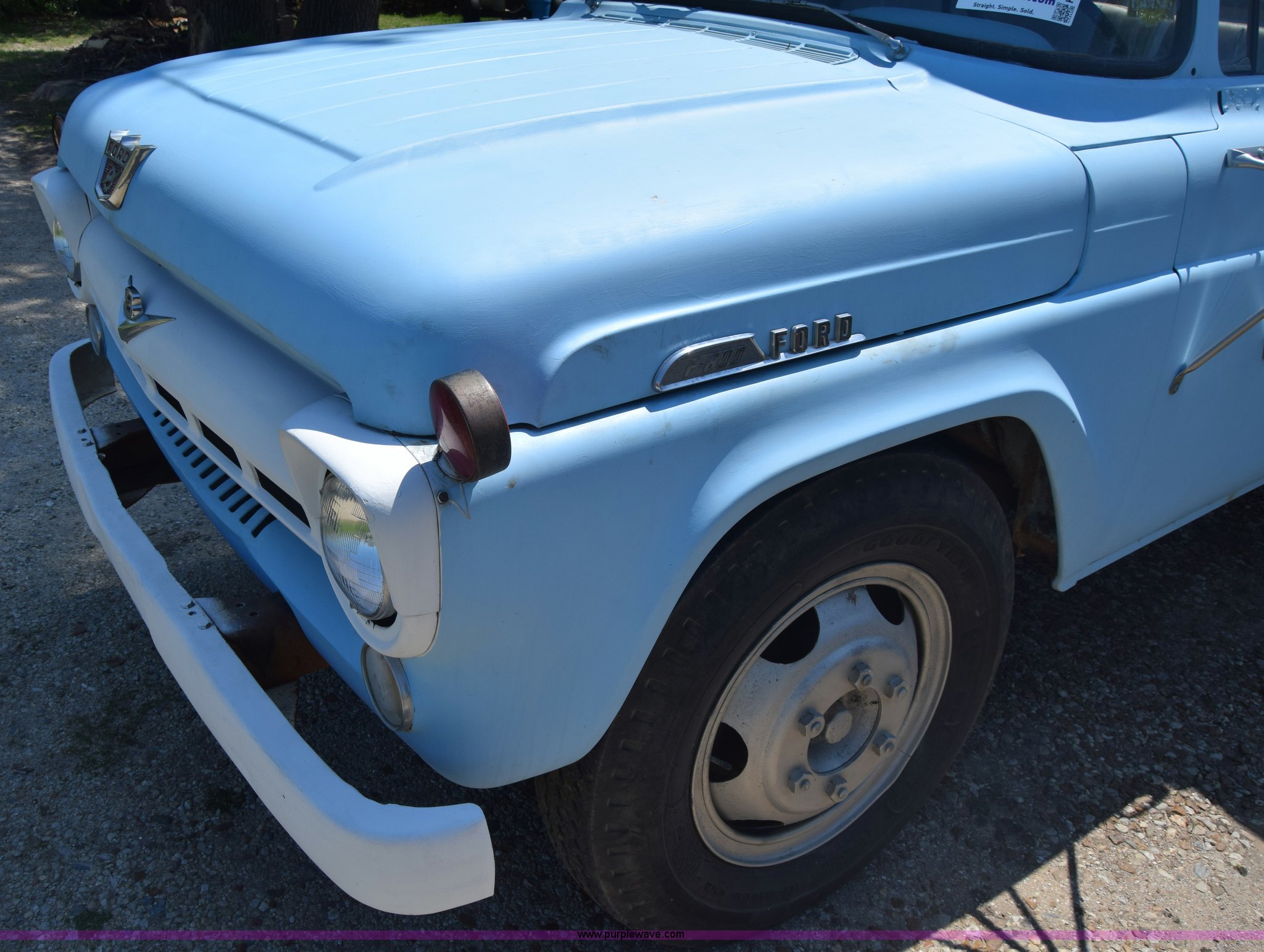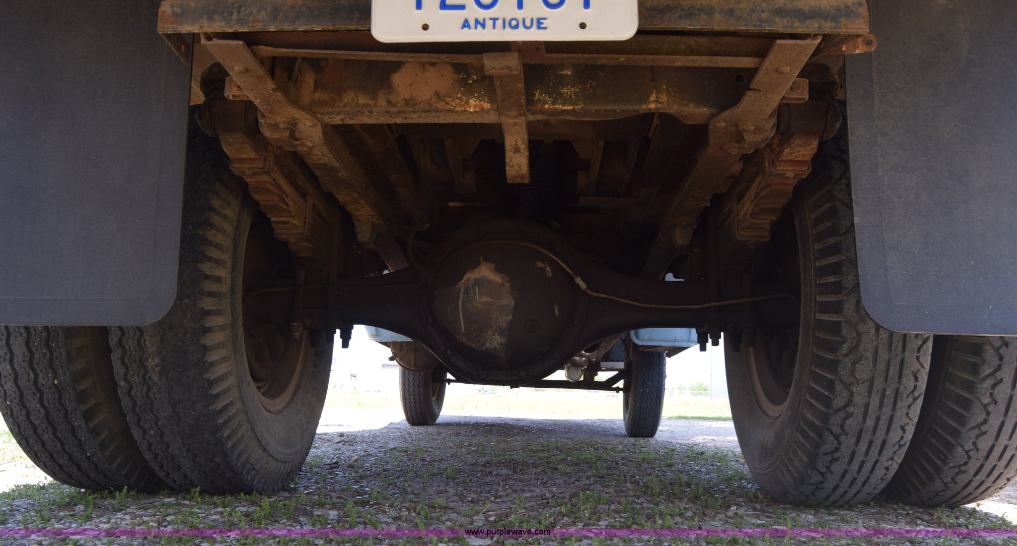 Purple Wave is selling a used Flat Bed Truck in Kansas. This item is a 1957 Ford F600 flatbed truck with the following: 58,728 miles on odometer, Actual mileage unkown, Eight cylinder gas engine, 153 HP, Four speed manual transmission, Heat, Manual windows and locks, Vinyl interior, Knapheide dump flatbed, 13'L x 91"W, Wood floor, Steel sides included, Heil hoist, 154" wheelbase, 9.00-20 tires, GVWR 17,000 lbs