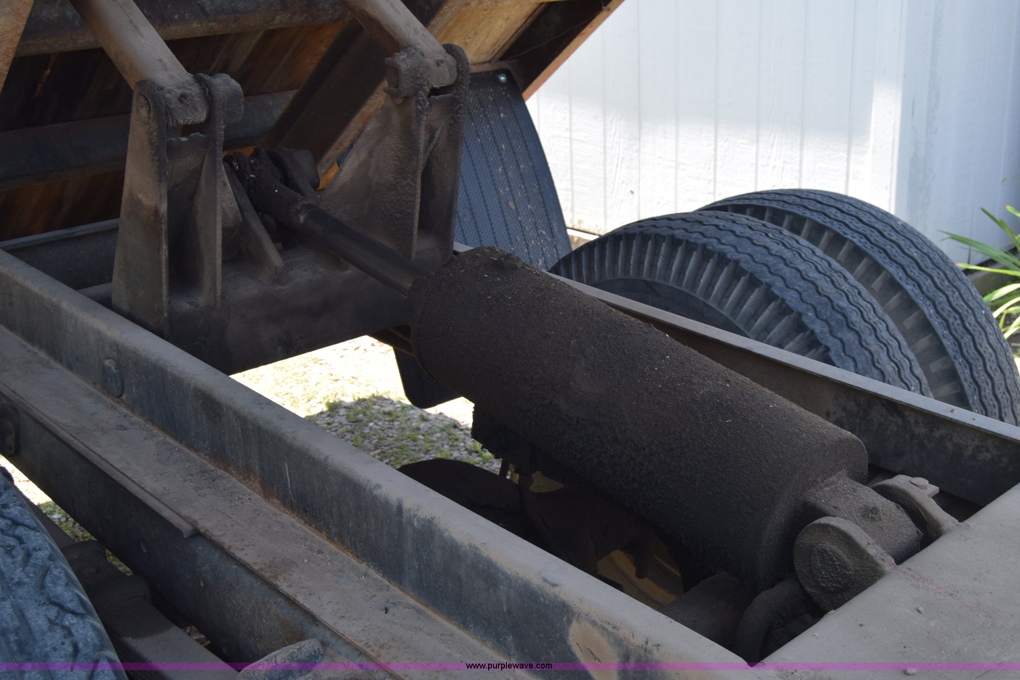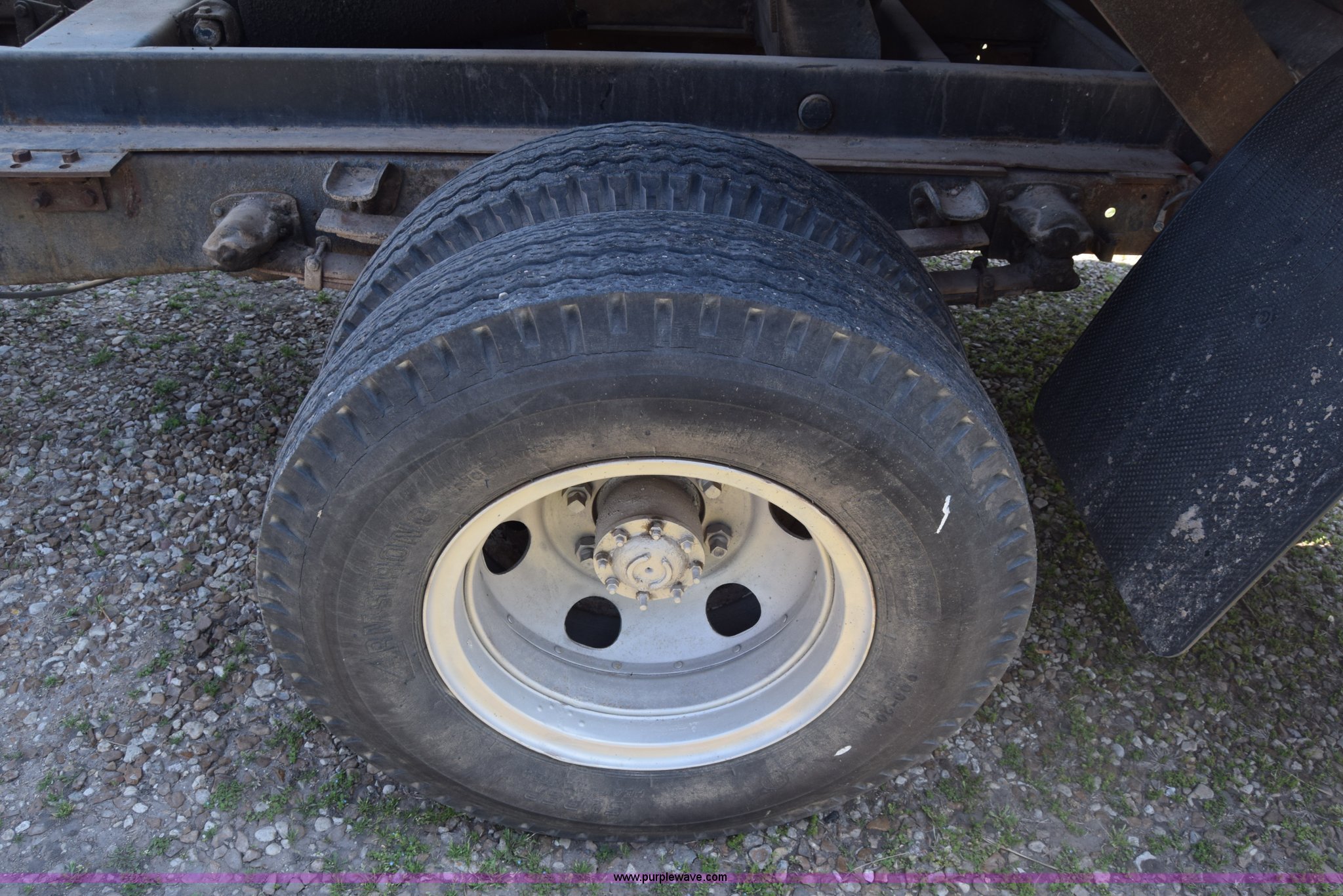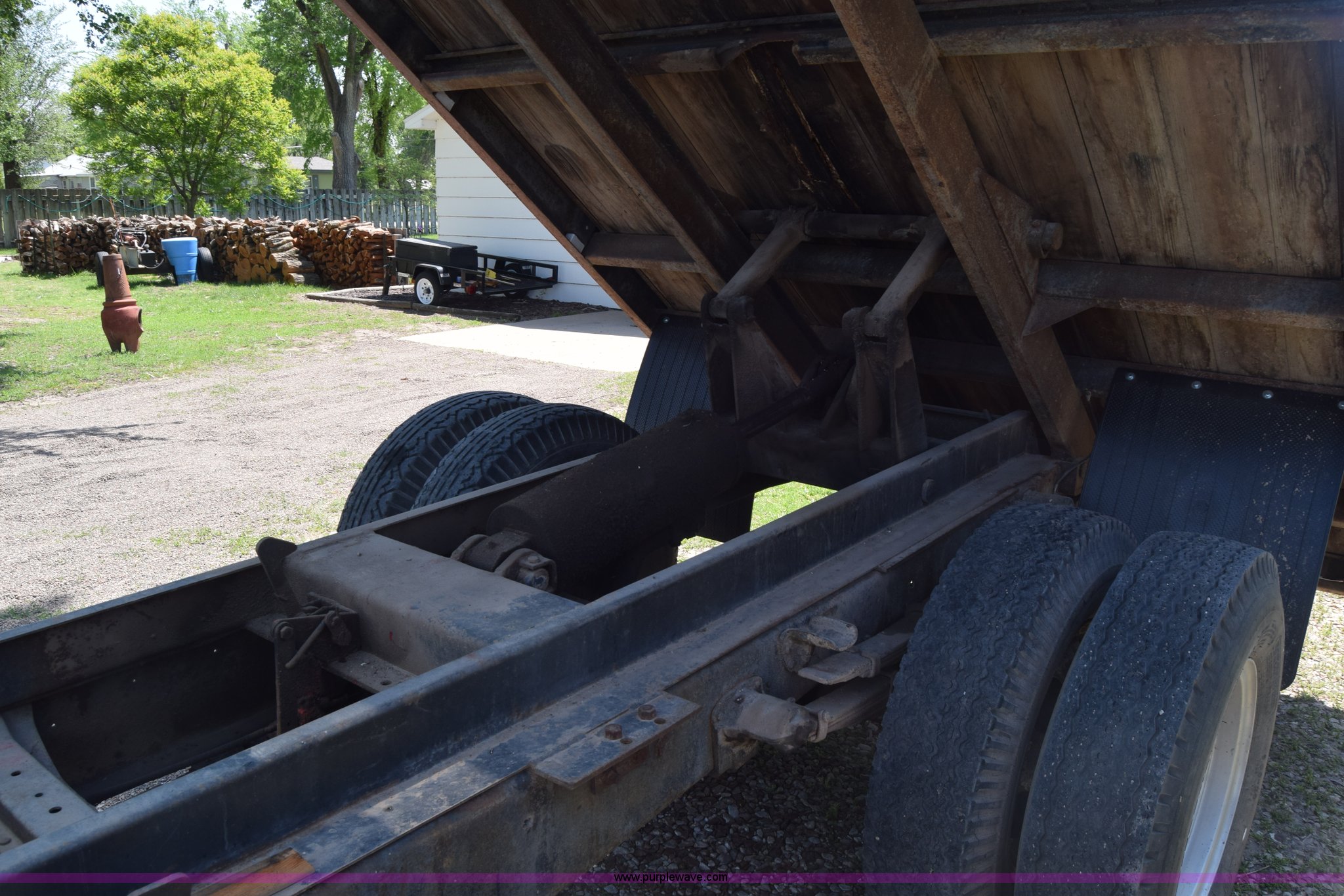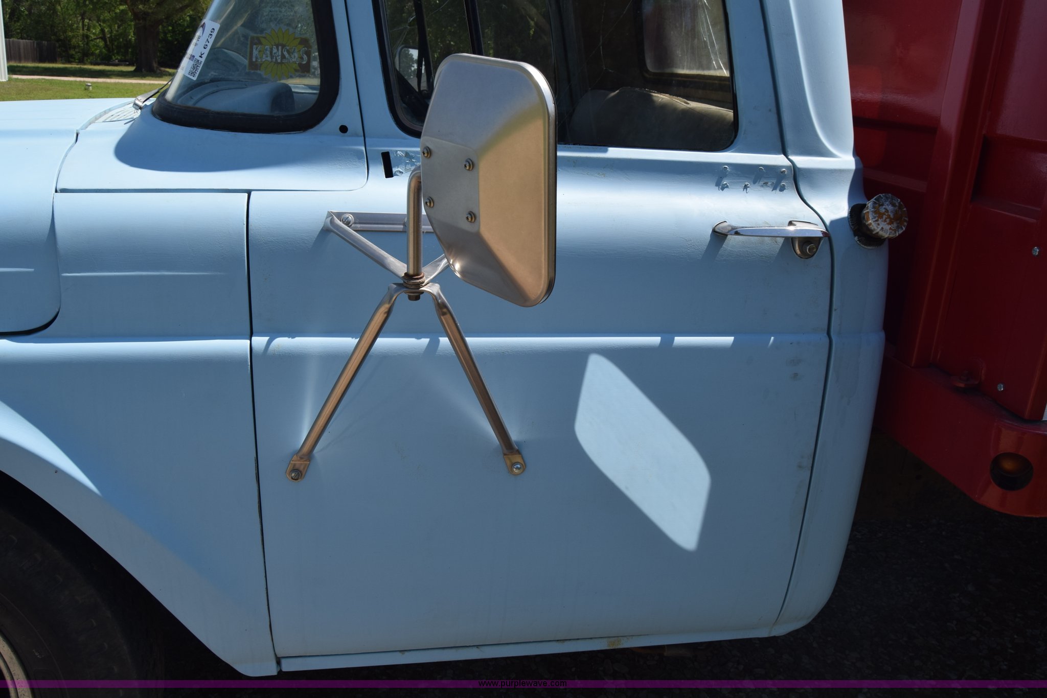 1957 Ford F600 flatbed truck. 58,728 miles on odometer Actual mileage unkown, Eight cylinder gas engine 153 HP, Four speed manual transmission, Heat, Manual windows and locks, Vinyl interior, Knapheide dump flatbed 13'L x 91"W, Wood floor, Steel sides included, Heil hoist, 154" wheelbase, 9.00-20 tires, GVWR 17,000 lbs. Kansas title. Title distribution may be delayed up to 30 days from verification of funds. F60L7H10280. 220 E 3rd. South Hutchinson, KS 67505