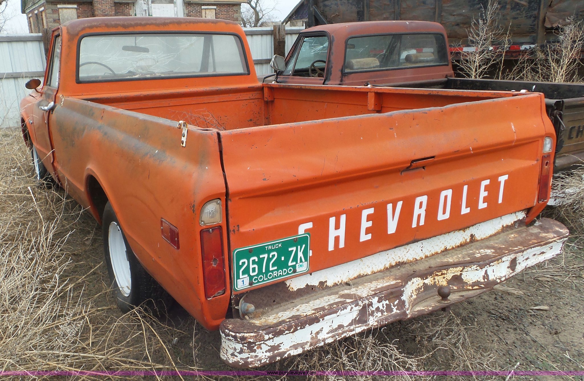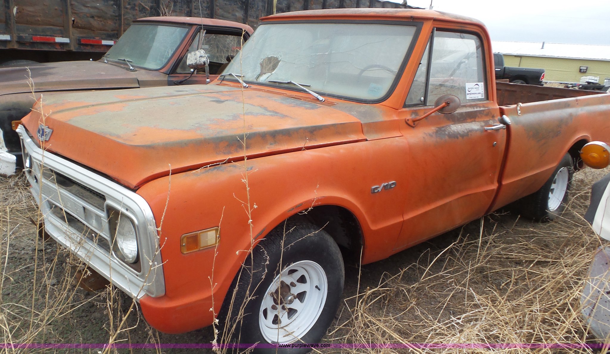Purple Wave is selling a used 1/2 Ton Pickup or Van in Kansas. This item is a 1970 Chevrolet C10 pickup truck with the following: 83,174 miles on odometer, Eight cylinder gas engine, Four speed manual transmission, Heat, AM/FM, Manual windows and locks, Vinyl interior, Long bed, 225/75R15 tires, Interior/exterior cosmetic damage, Broken windshield, Non-operational unit