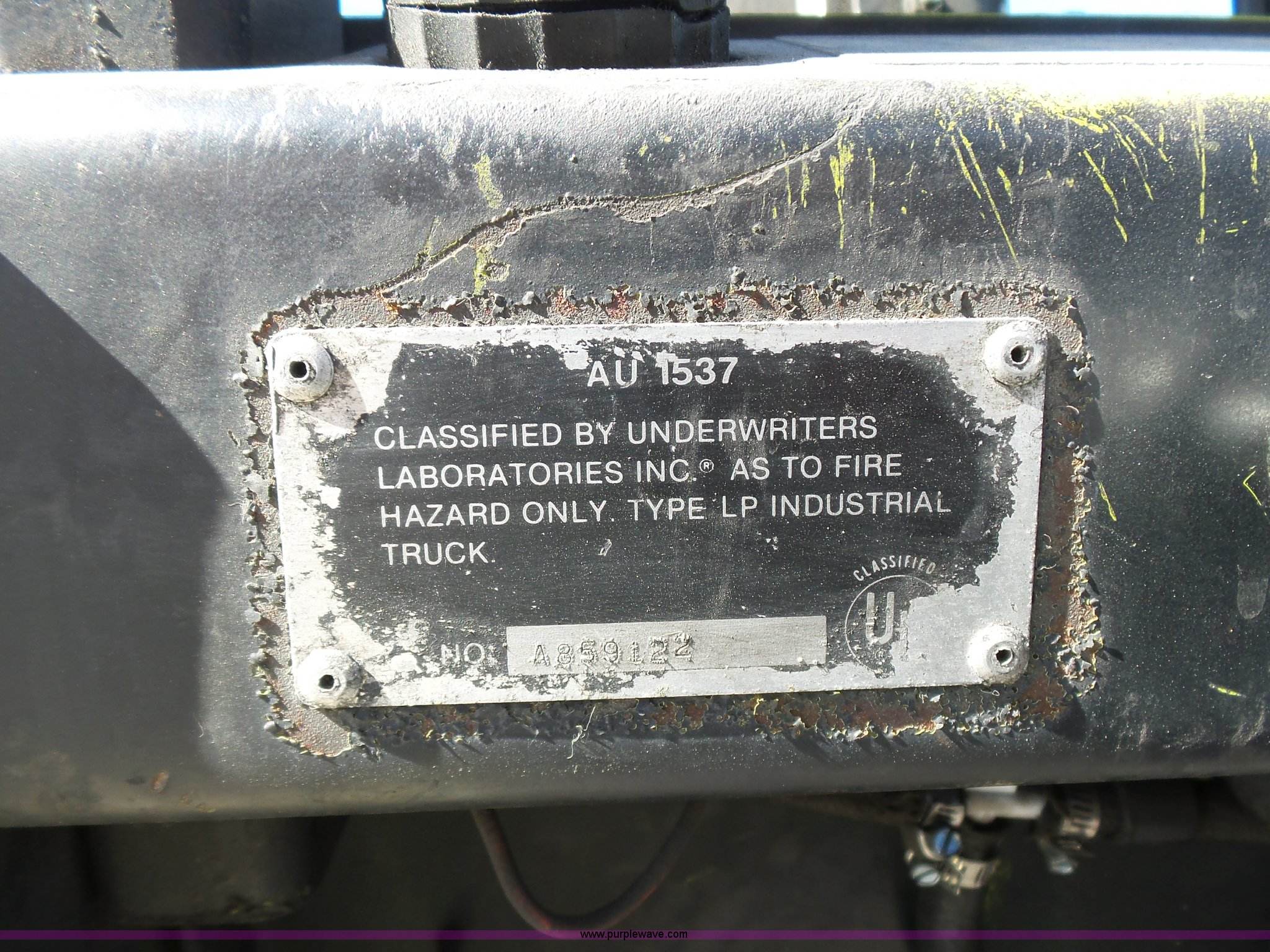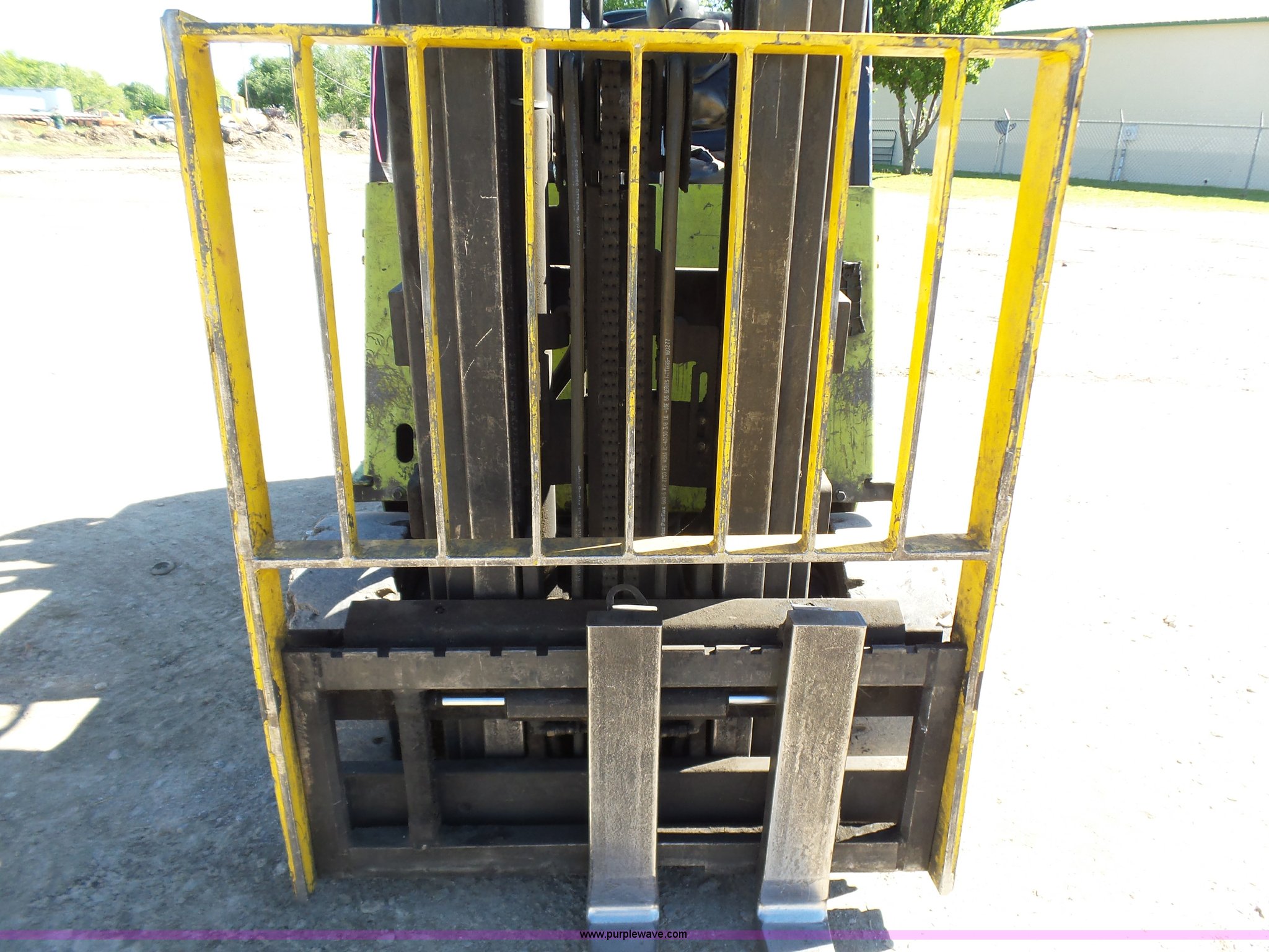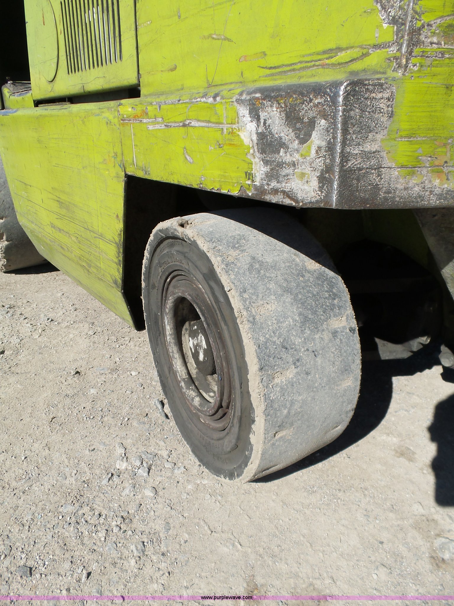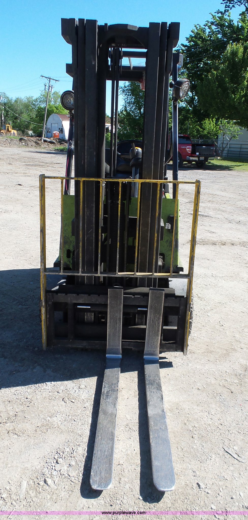 Purple Wave is selling a used Warehouse Forklift in Oklahoma. This item is a Clark GPS17 forklift with the following: 3,104 hours on meter, Four cylinder propane engine, Hydrostatic transmission, 1F-1R gears, Enclosed cab, Work lights, Backup alarm, 2,475 lbs max lift capacity, 188" max lift height, Three mast stages, Side shift, Mast tilt, 41" fork length, Propane tank included, 21x8-9 solid front tires, 18x7-8 solid rear tires, Serial GP127-0045-9241K0F