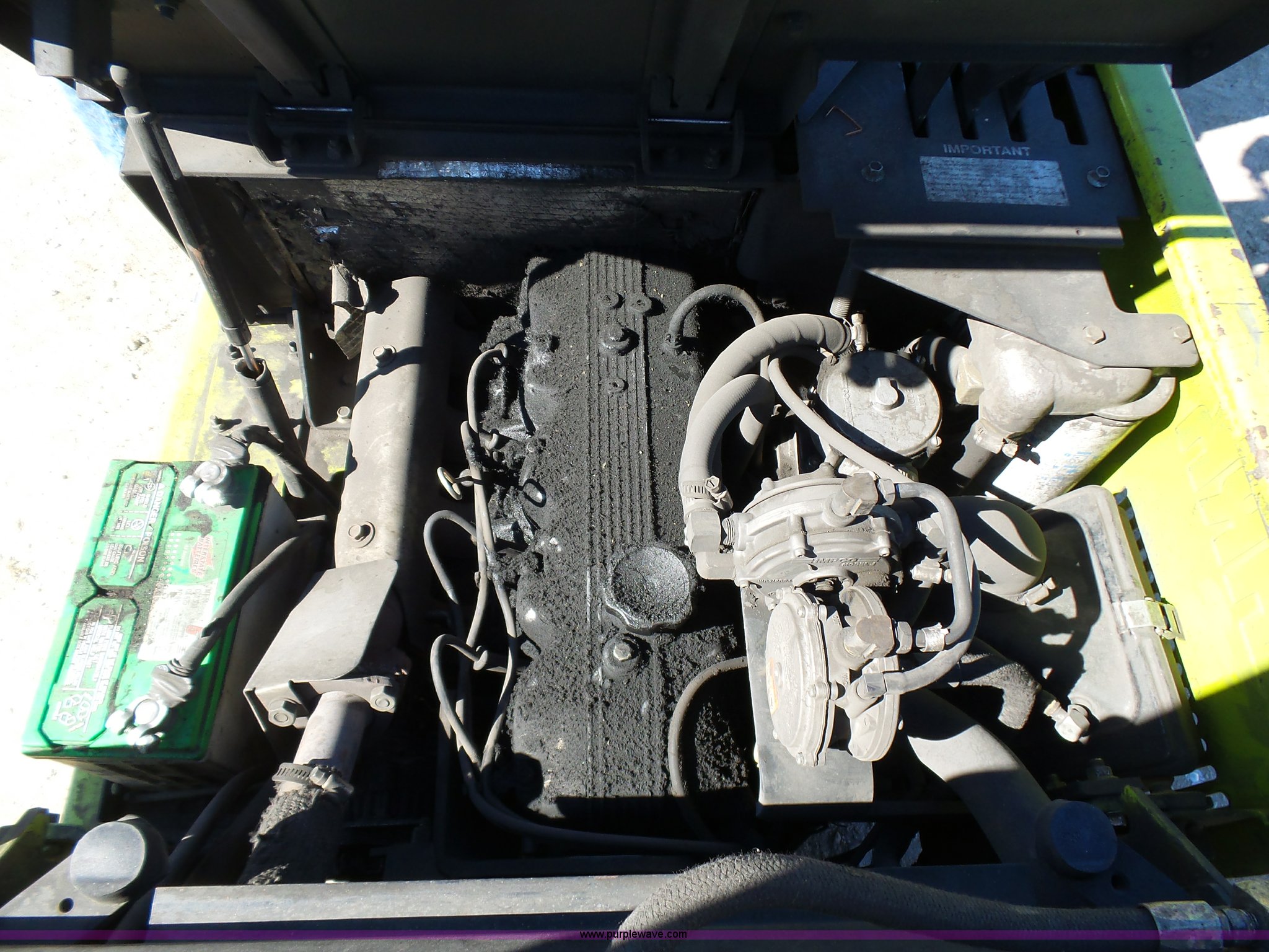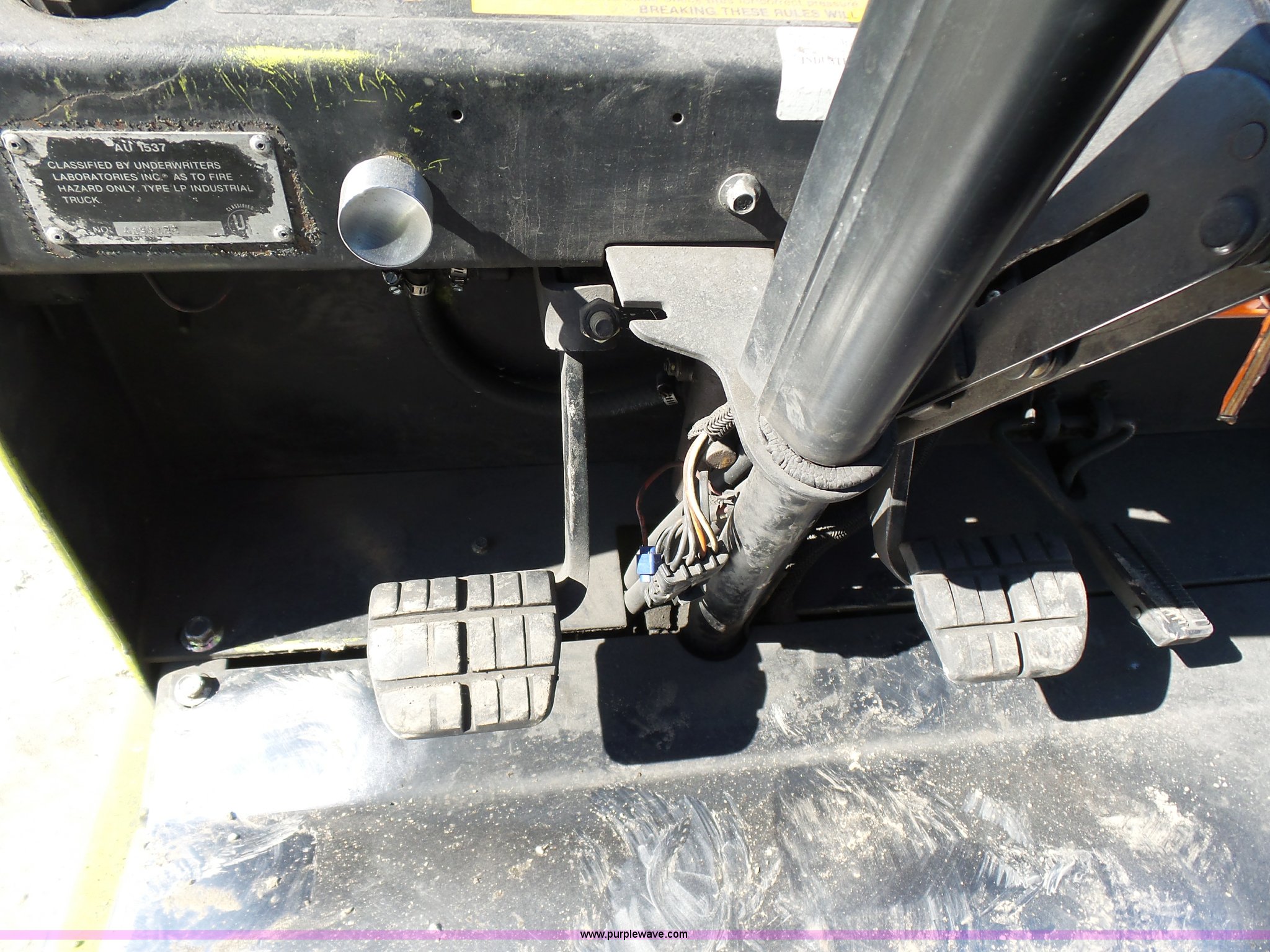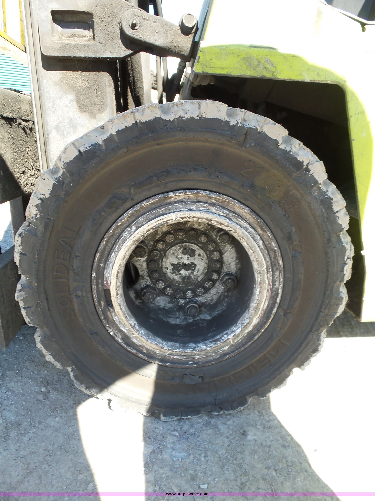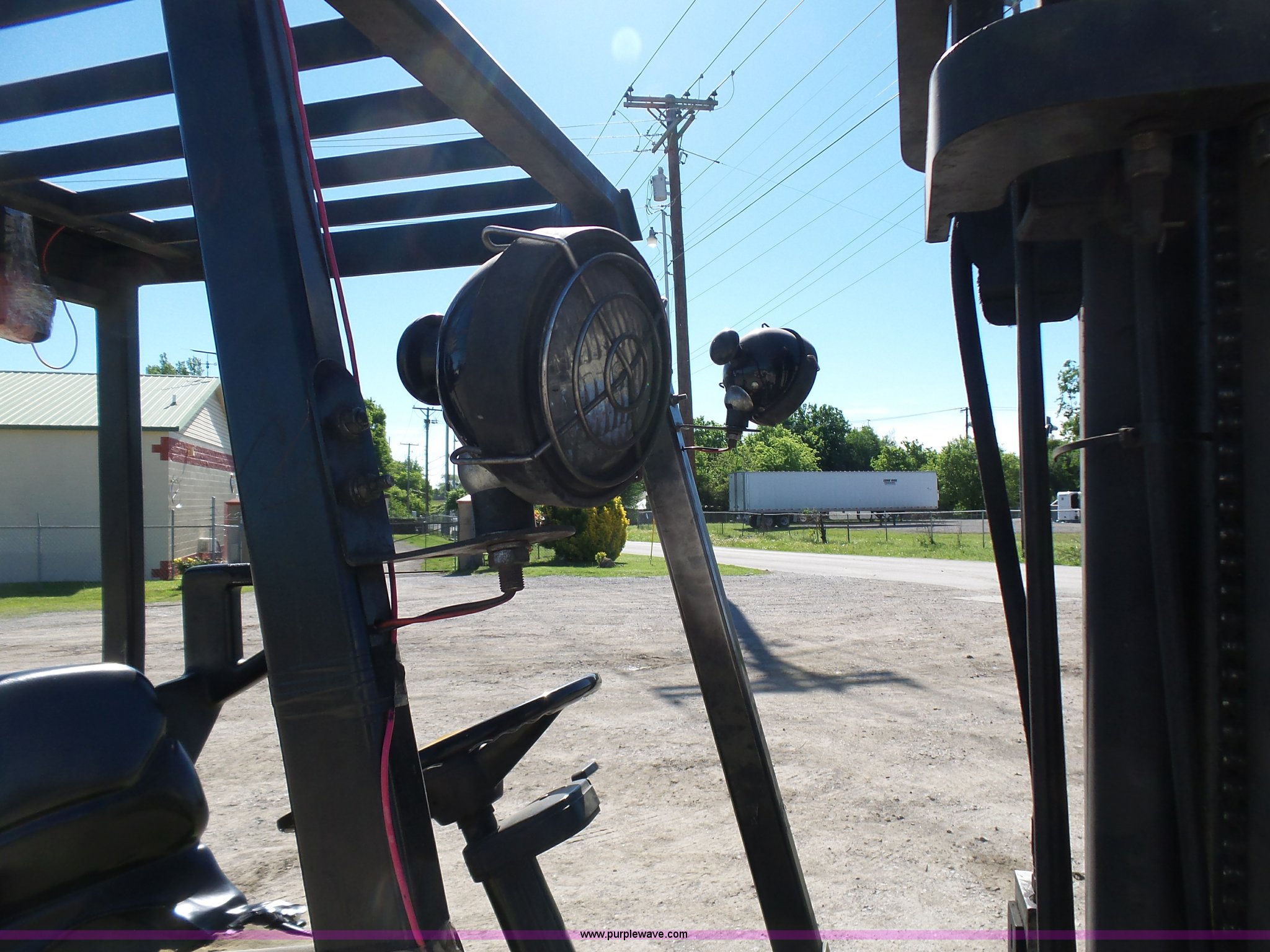 Purple Wave is selling a used Warehouse Forklift in Oklahoma. This item is a Clark GPS17 forklift with the following: 3,104 hours on meter, Four cylinder propane engine, Hydrostatic transmission, 1F-1R gears, Enclosed cab, Work lights, Backup alarm, 2,475 lbs max lift capacity, 188" max lift height, Three mast stages, Side shift, Mast tilt, 41" fork length, Propane tank included, 21x8-9 solid front tires, 18x7-8 solid rear tires, Serial GP127-0045-9241K0F