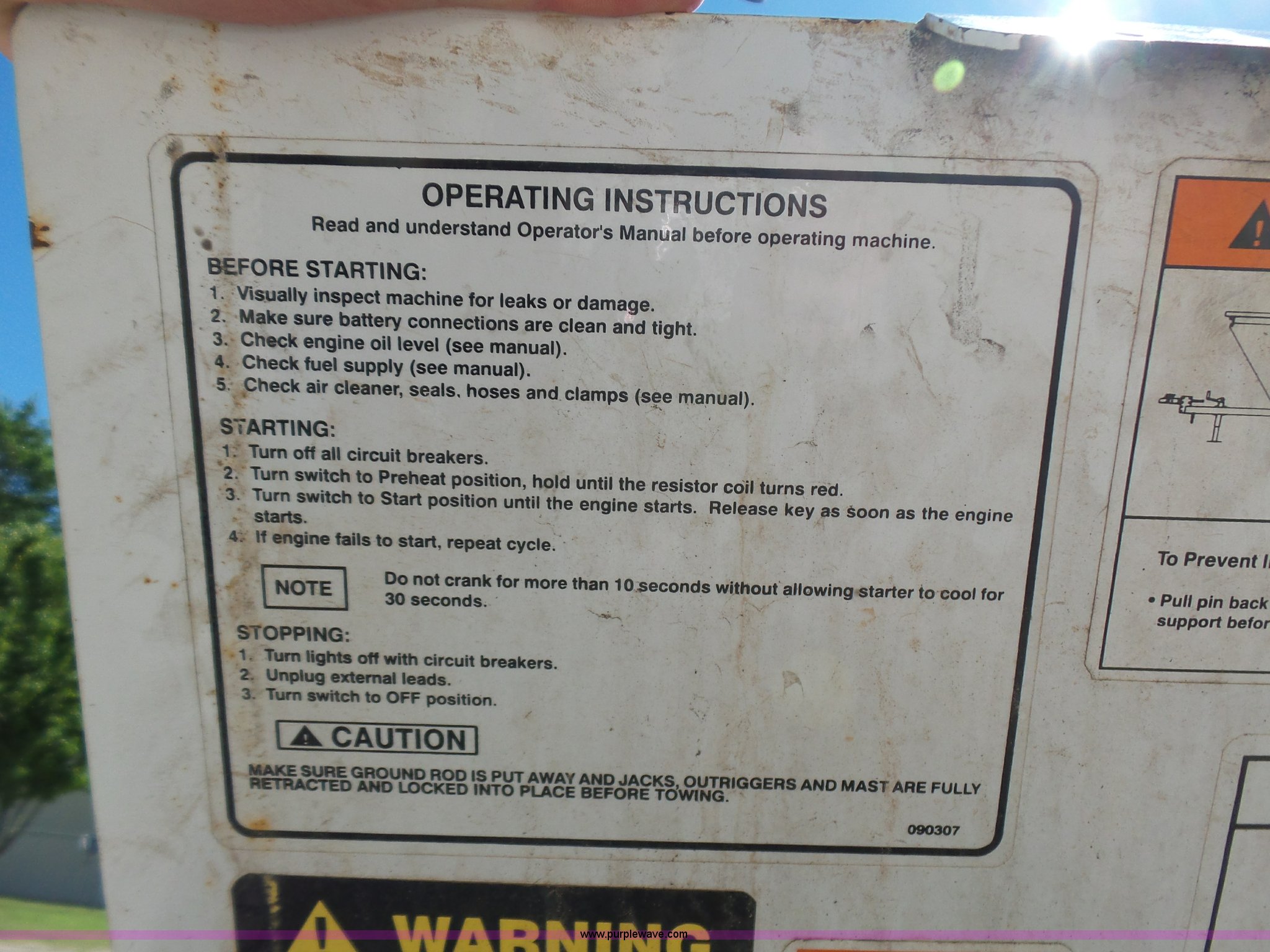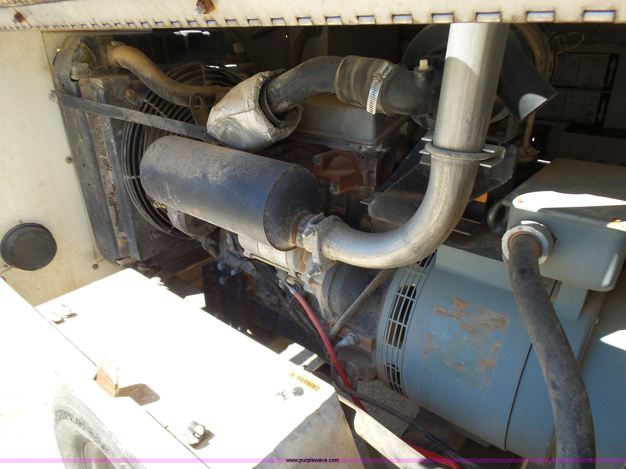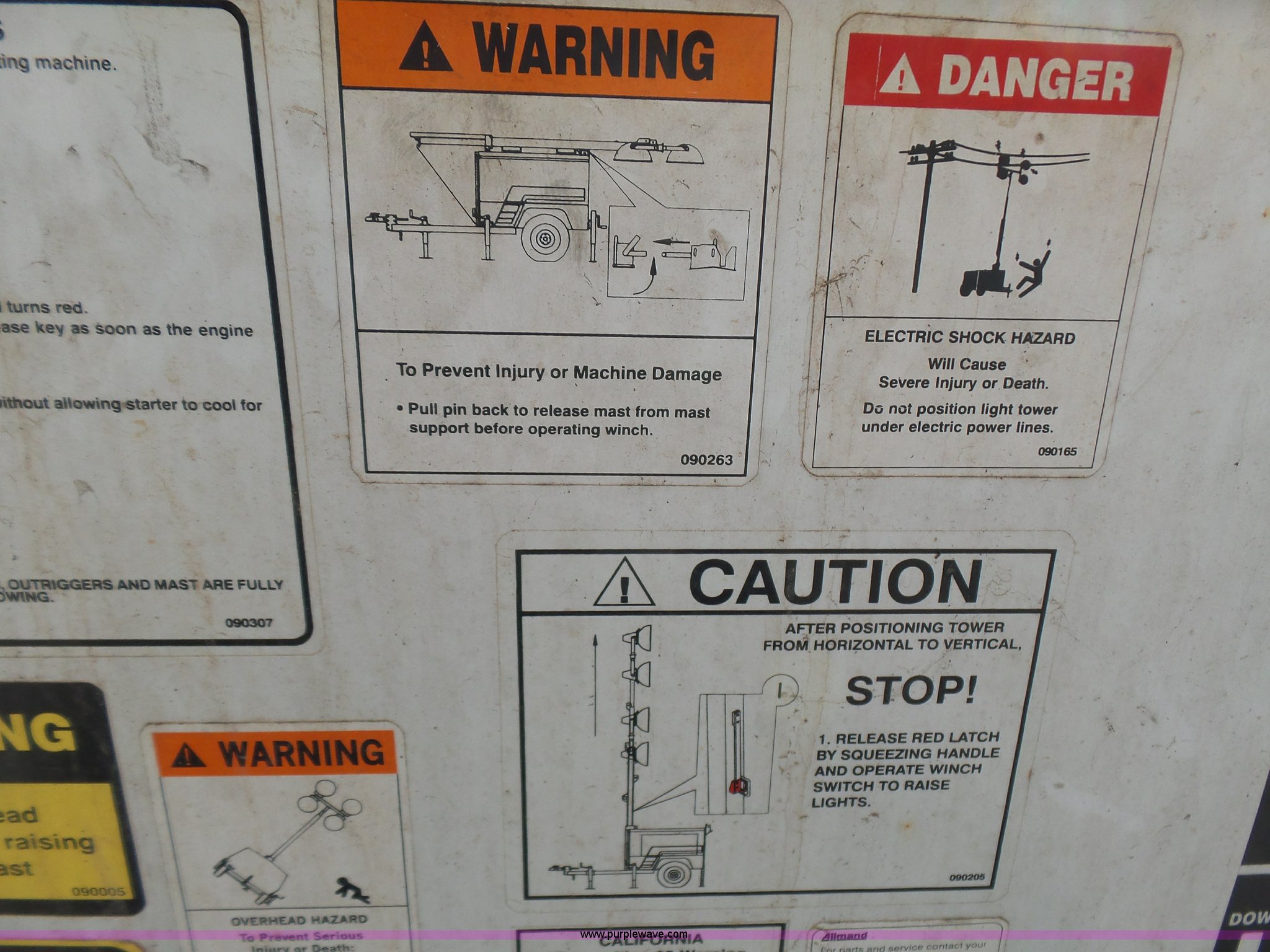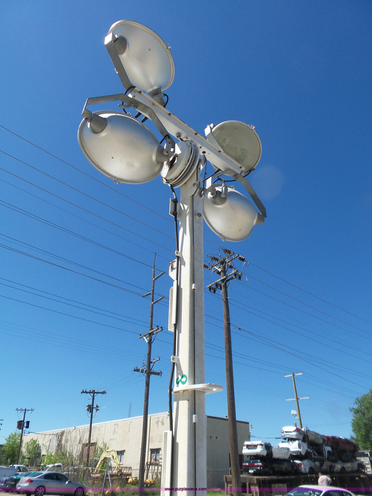 Purple Wave is selling a used Light Plant in Oklahoma. This item is a Allmand Maxi-Lite 20330 light plant with the following: 17,069 hours on meter, Isuzu 2SZXL02.2DNC four cylinder diesel engine, 2,179 cu. cm, 25.7 kW, Serial 4LE1NABDB-02, (4) 1,000 watt bulbs, Power hoist, Control panel, Fuel tank, Three phase, Two-way hitch, 2" ball hitch, Pintle hitch, 225/75R15 tires
