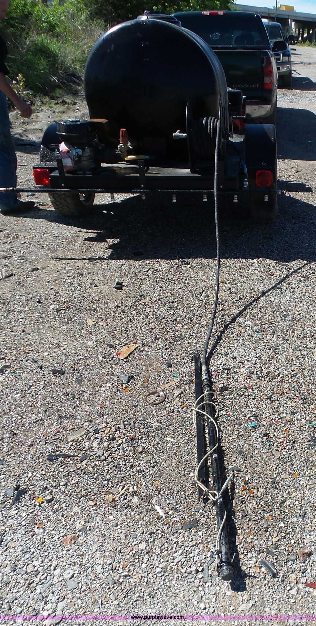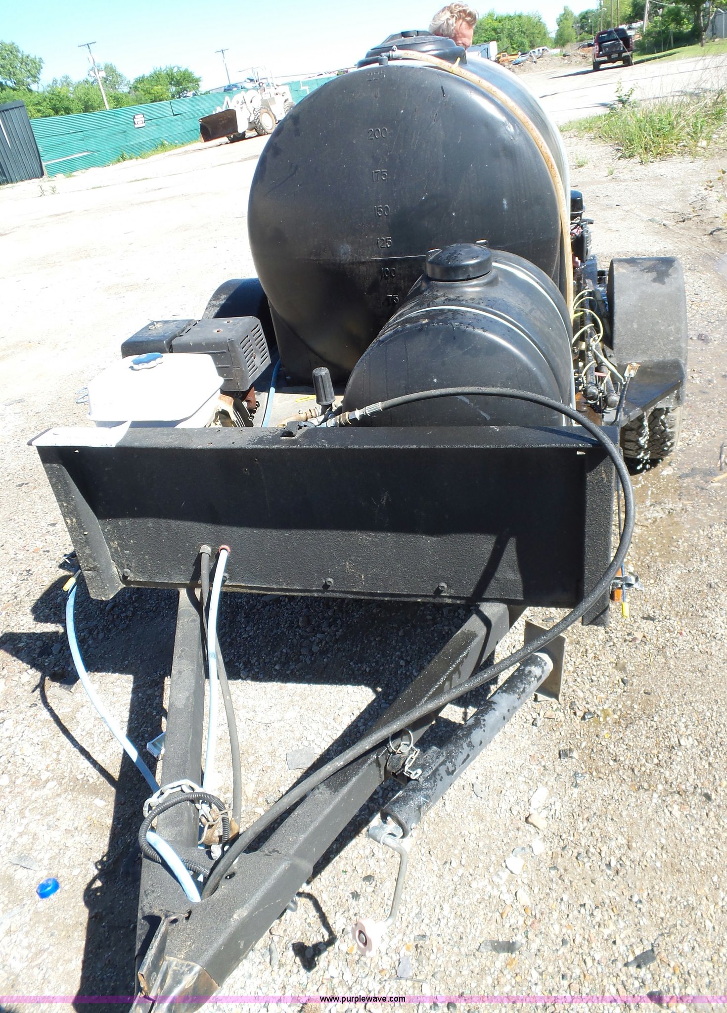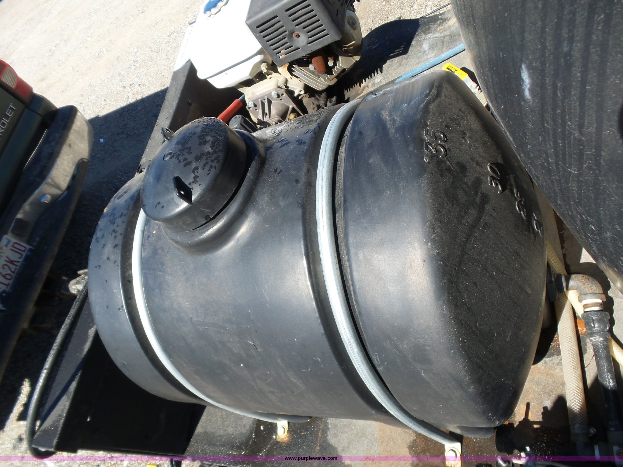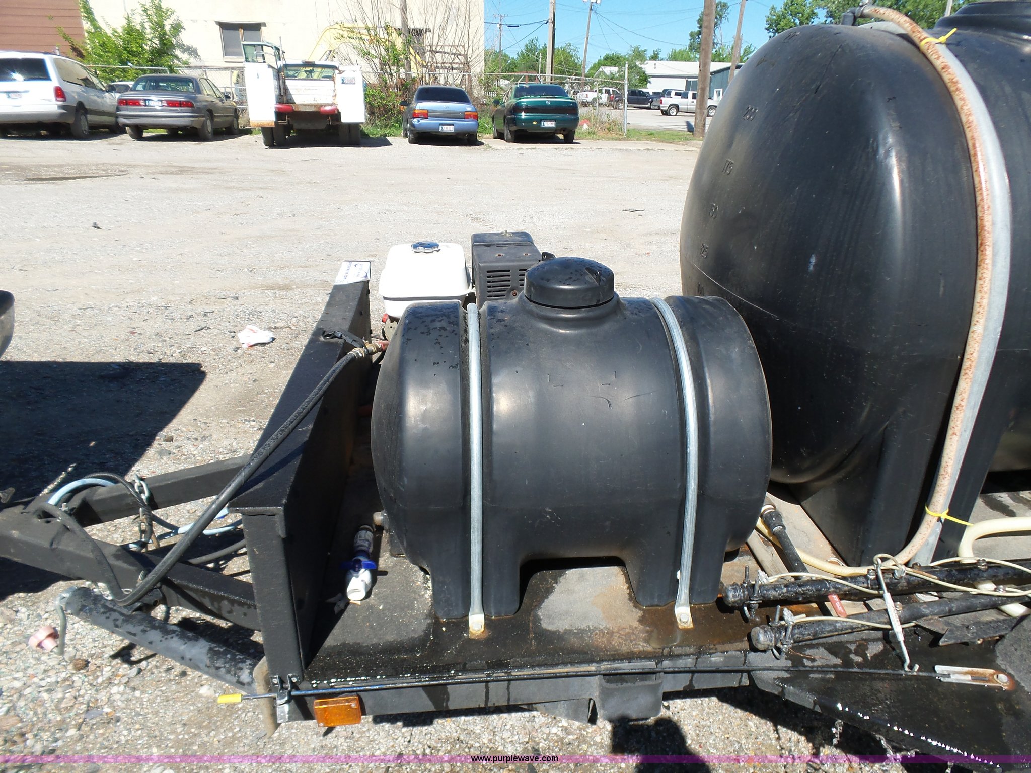 Purple Wave is selling a used Trailer Other in Oklahoma. This item is a Water tank trailer with the following: 100"L x 6'W, 35 gallon tank, 225 gallon tank, Power Ease 200cc engine, 6.5 HP, Honda GX390 gas engine, 12 HP(2) cords, Spray bar, Coxreels CCR-8723 hose reel, Serial 20080815-0308, 2 5/16" ball hitch