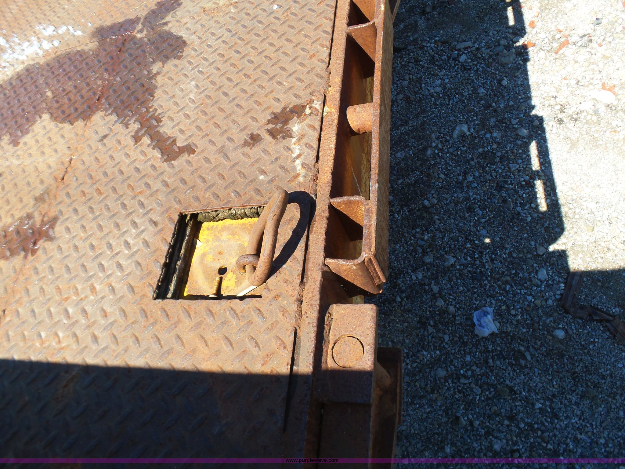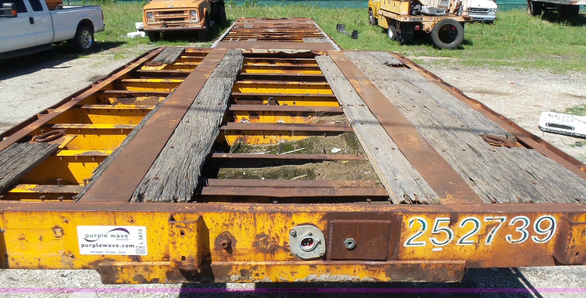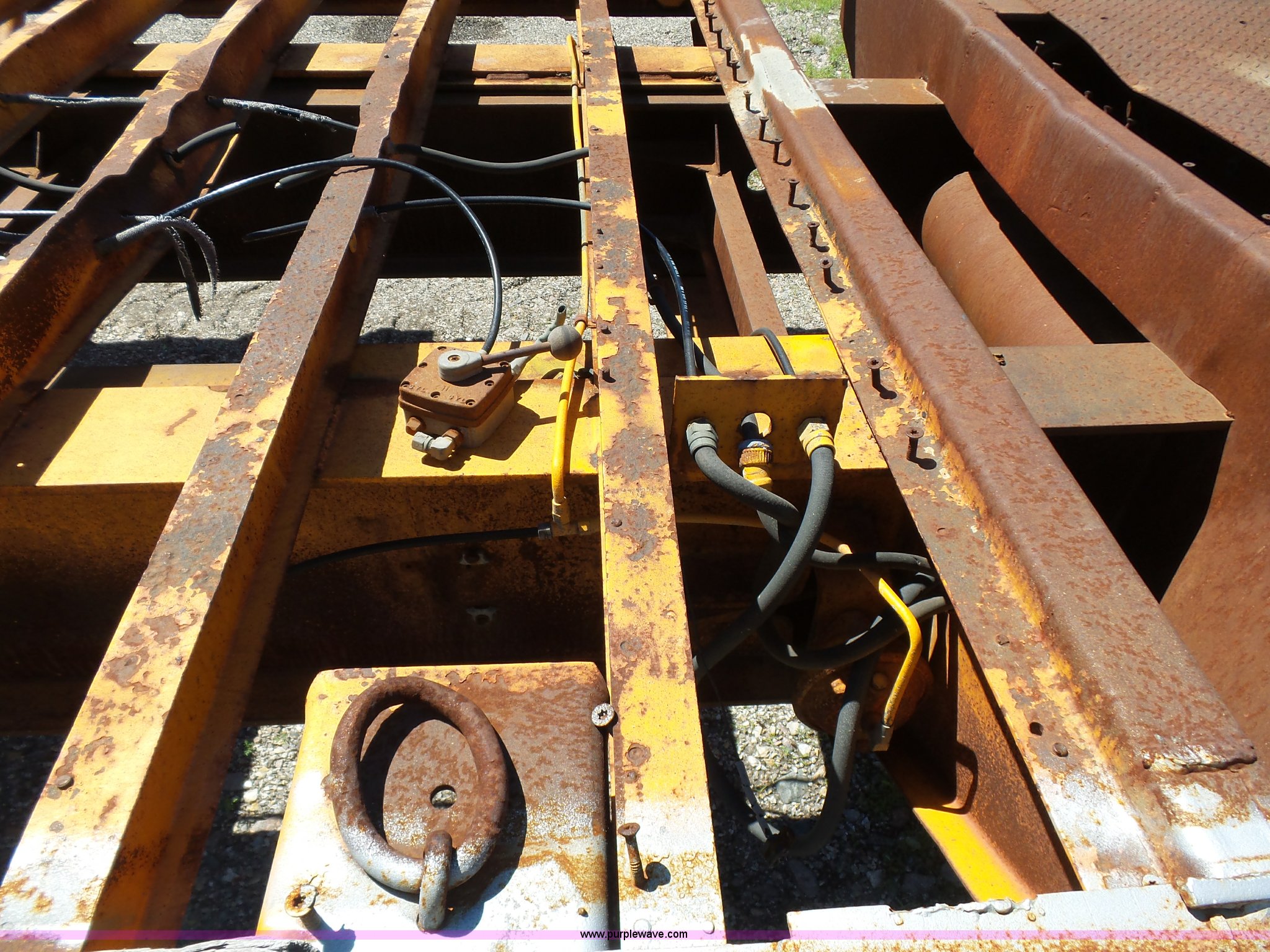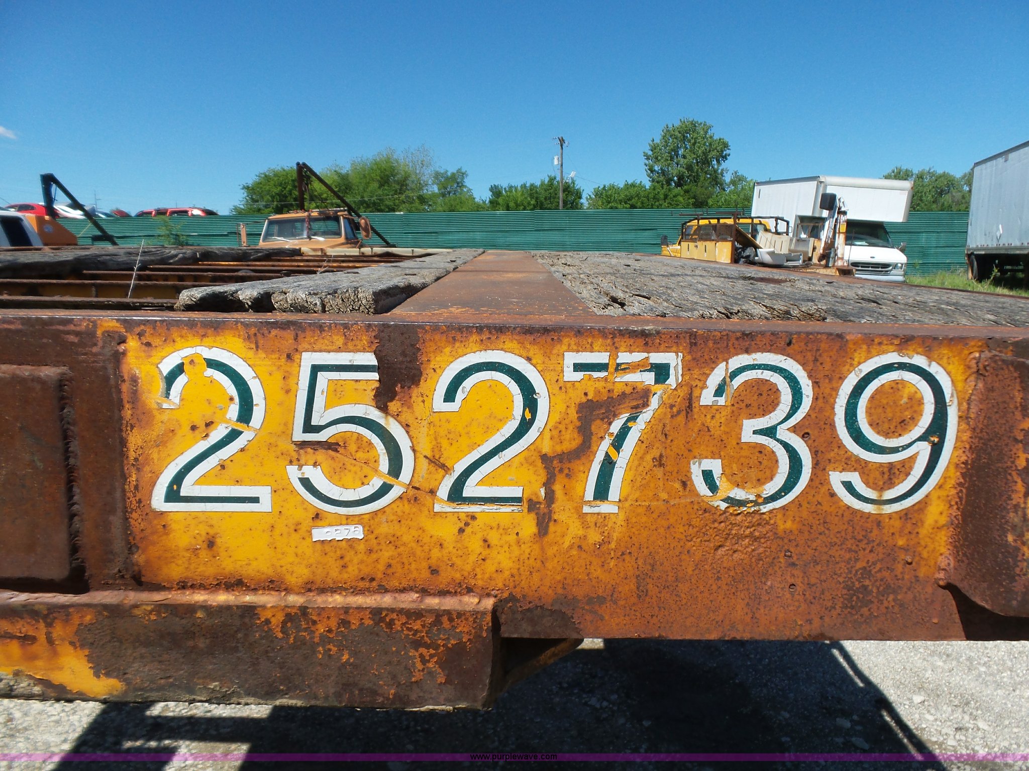 Purple Wave is selling a used Flat or Drop Deck Trailer in Oklahoma. This item is a 1971 Transcraft drop deck trailer with the following: 41'L x 8'W overall, 38" floor height, 118"L top deck, 31' main deck, Outriggers, Steel deck, D-rings, Stake pockets, Fifth wheel hitch, Dual leg landing gear, Air suspension, Air brakes, Tandem axle, 11R17.5 tires
