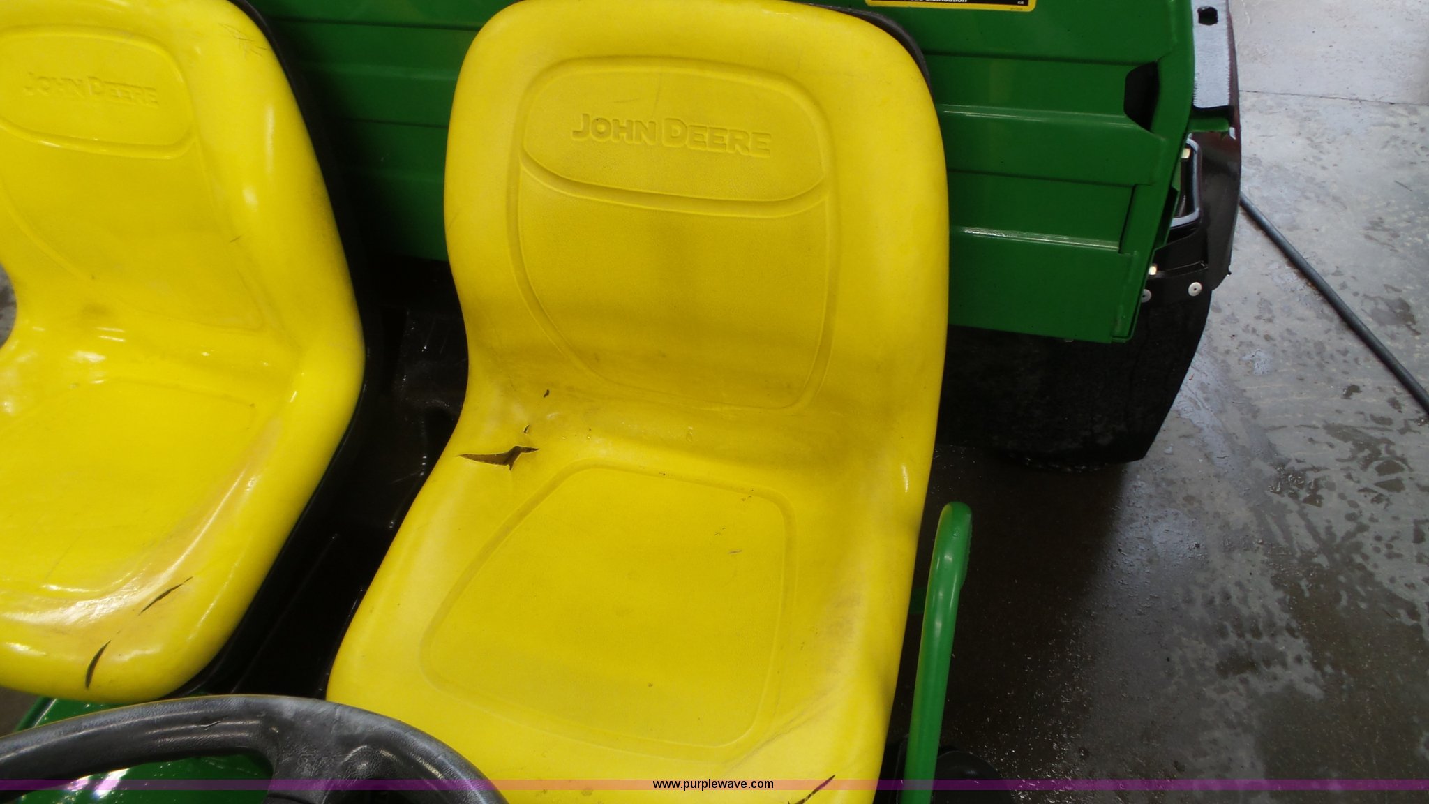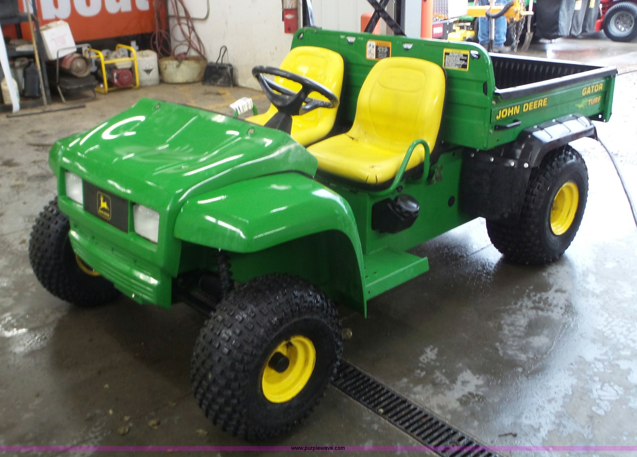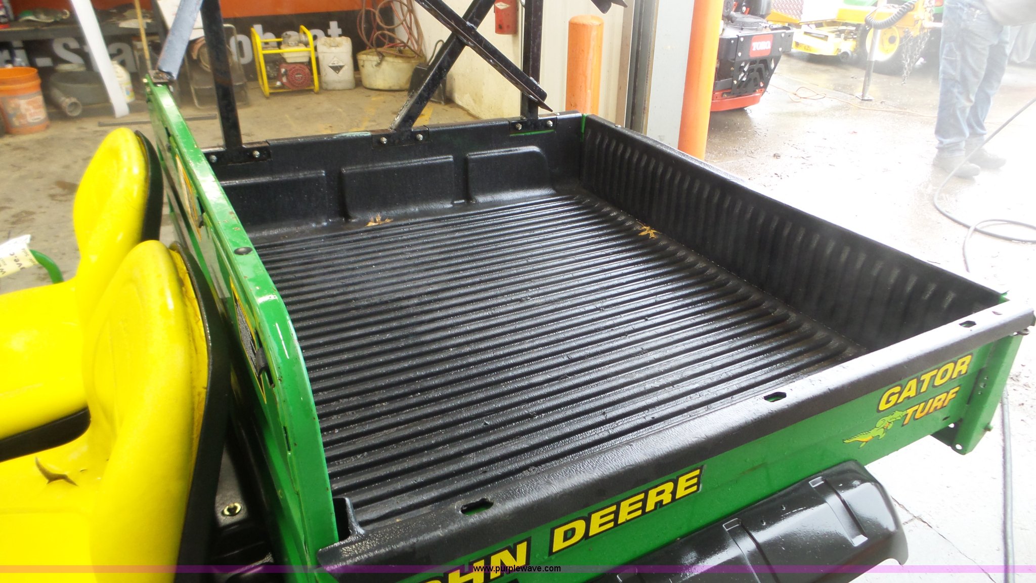 Purple Wave is selling a used Utility Vehicle in Wisconsin. This item is a John Deere Gator Turf utility vehicle with the following: Kawasaki gas engine, 1F-1R gears, Lights, Power dump bed, Receiver hitch, 22.5x10.00-8 front tires, 25x12.5 rear tires, Serial W00TURF019232