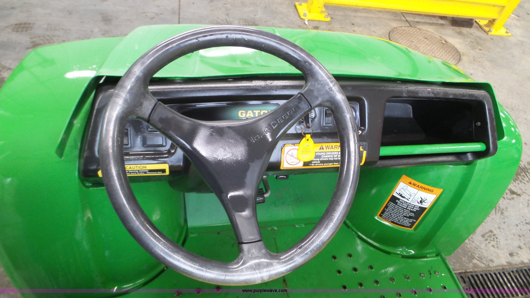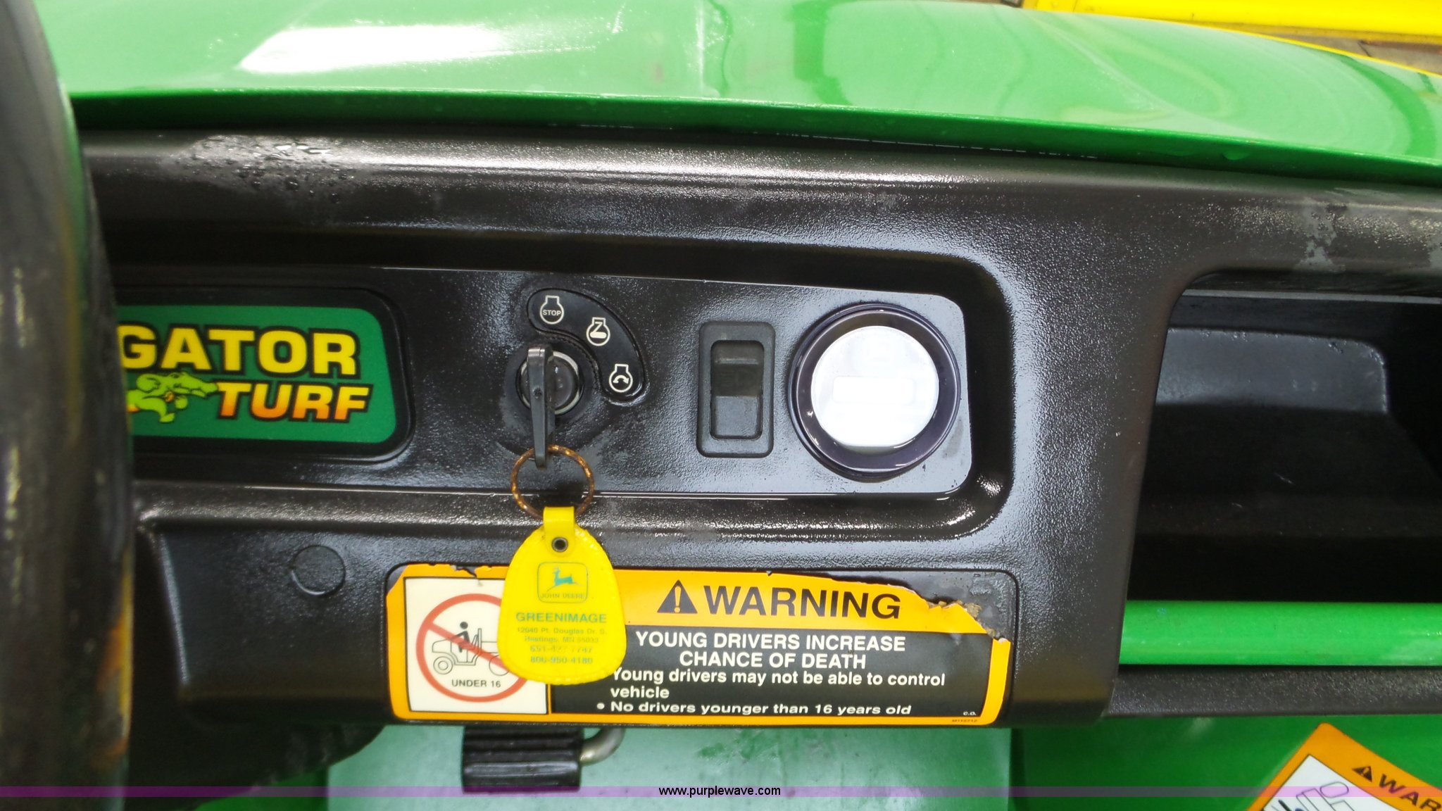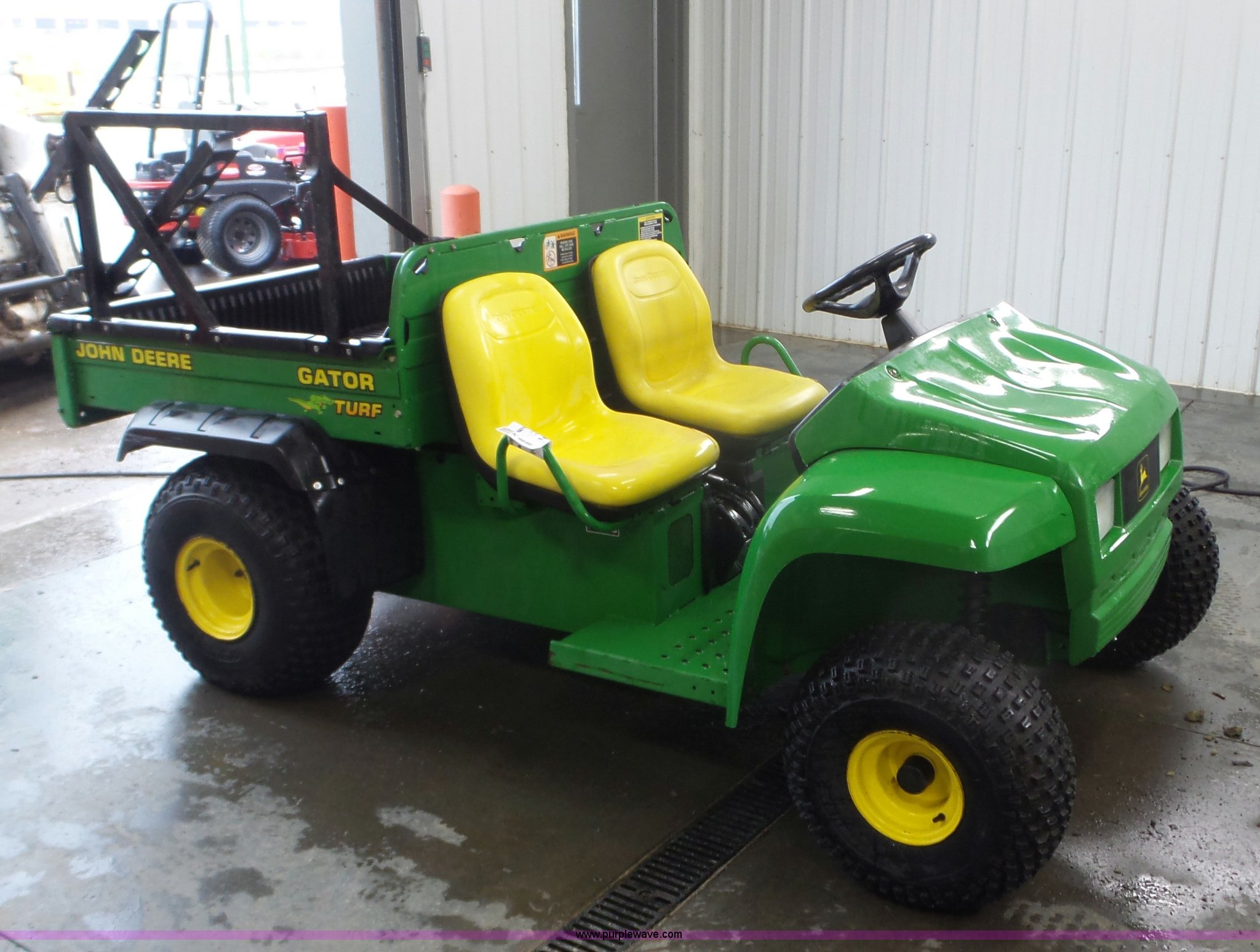 Purple Wave is selling a used Utility Vehicle in Wisconsin. This item is a John Deere Gator Turf utility vehicle with the following: Kawasaki gas engine, 1F-1R gears, Lights, Power dump bed, Receiver hitch, 22.5x10.00-8 front tires, 25x12.5 rear tires, Serial W00TURF019232