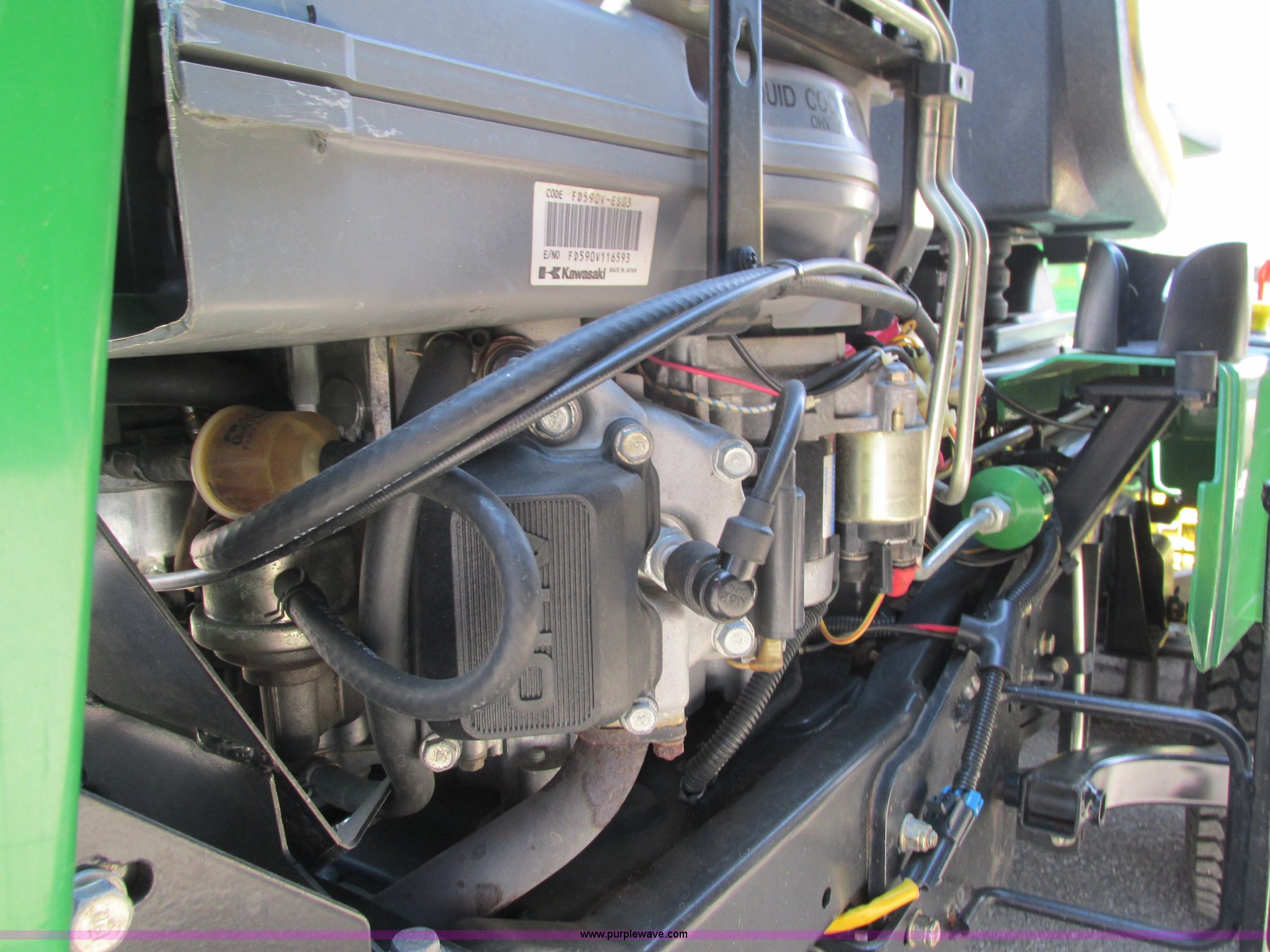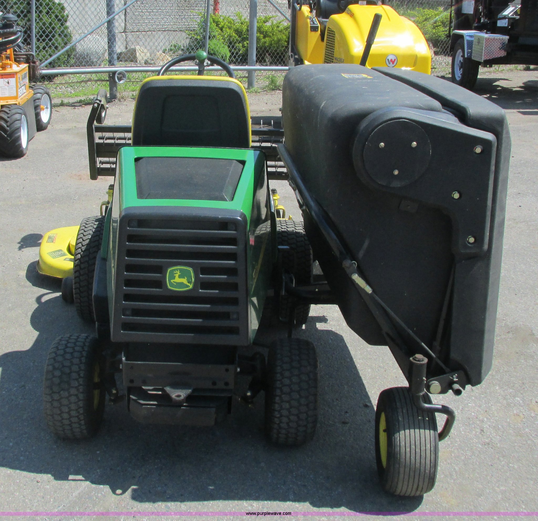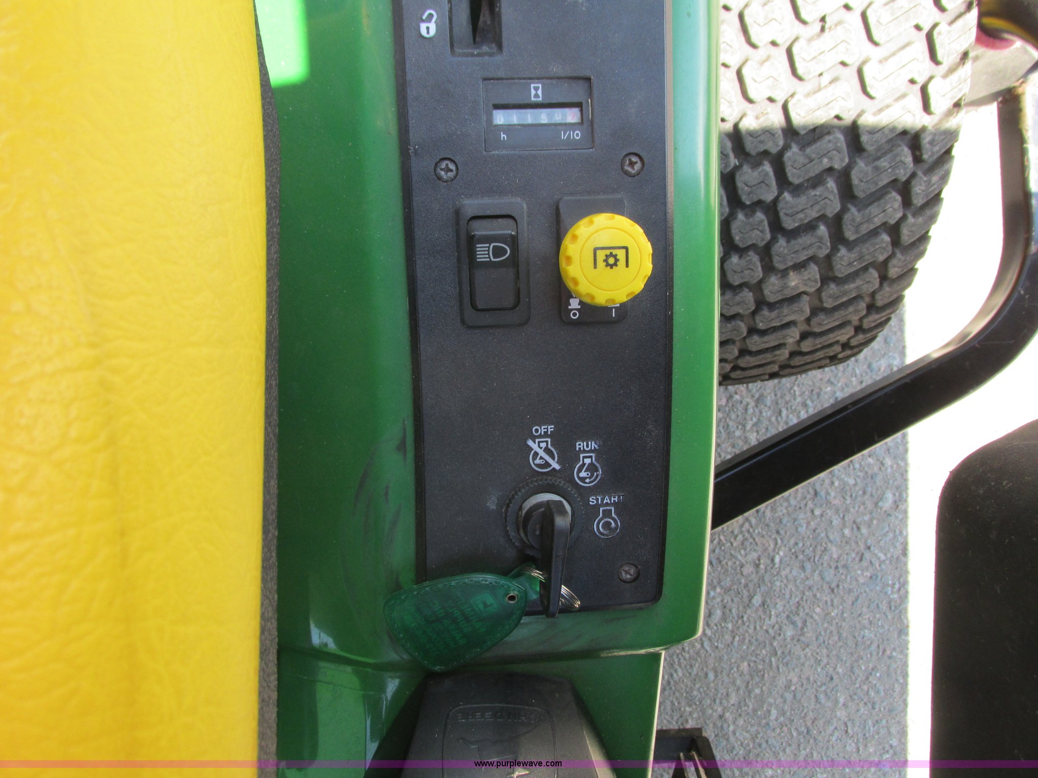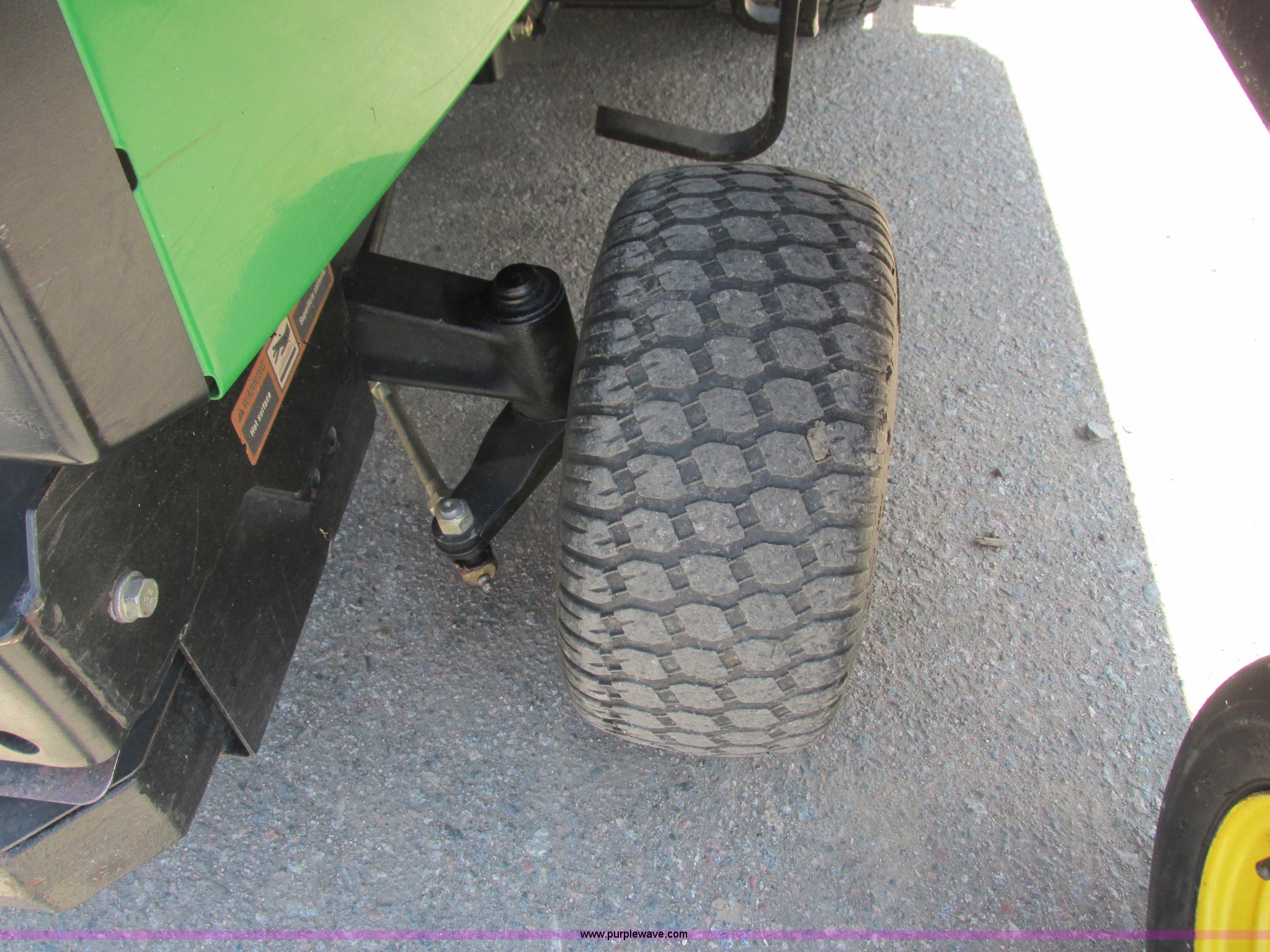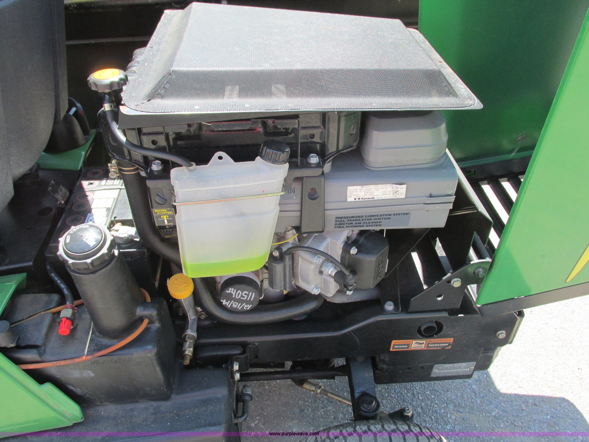 Purple Wave is selling a used Lawn Mower in Minnesota. This item is a John Deere F725 lawn mower with the following: 1,150 hours on meter, 54" cutting capacity, Kawasaki V-twin gas engine, Hydrostatic transmission, Front mounted dethatcher, Power vacuum bagger, Dumping hopper, Front work lights, Rear weights, Pin hitch, 20 x 10.00-8 front tires, 15 x 6.00-6 rear tires