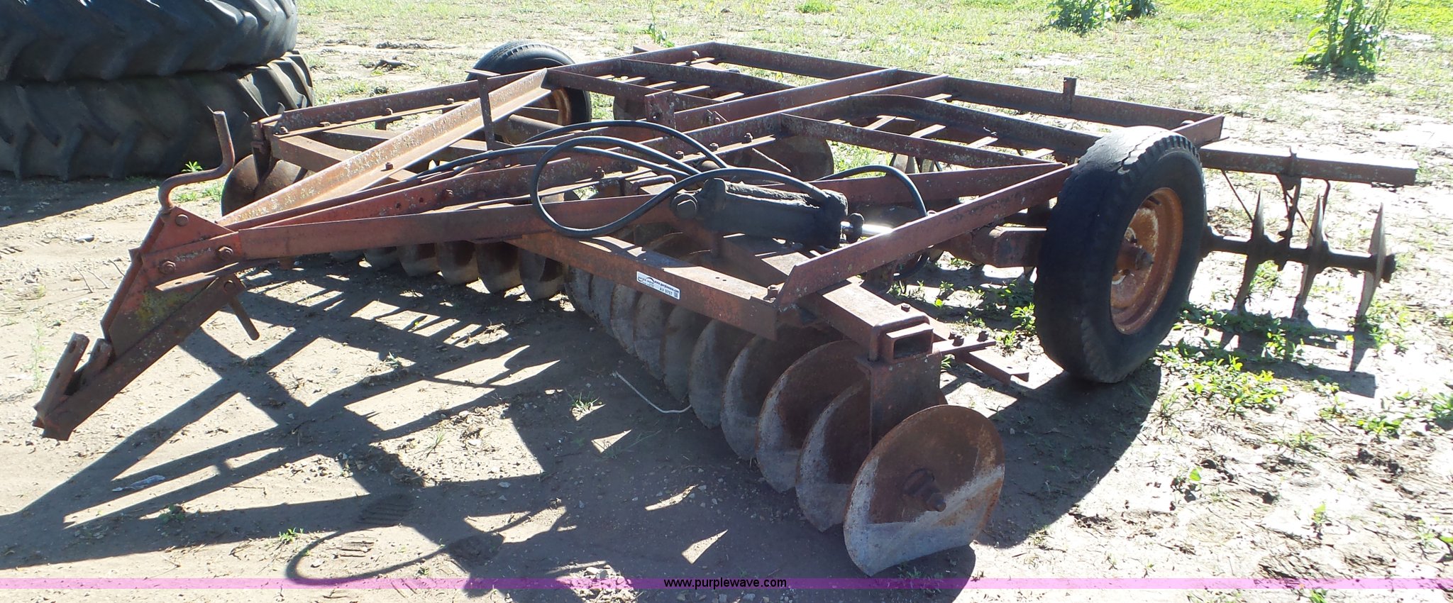 Purple Wave is selling a used Disk in Kansas. This item is a Disk with the following: 12'W, 16" front disks, 17" rear disks, Hydraulic lift, Cylinder is not hooked up, Pin hitch, 15" tires
