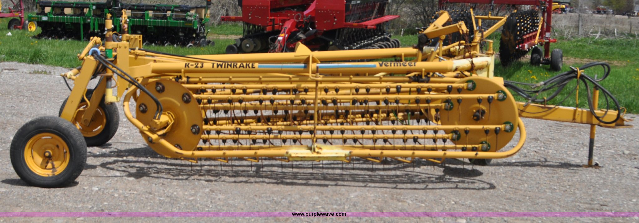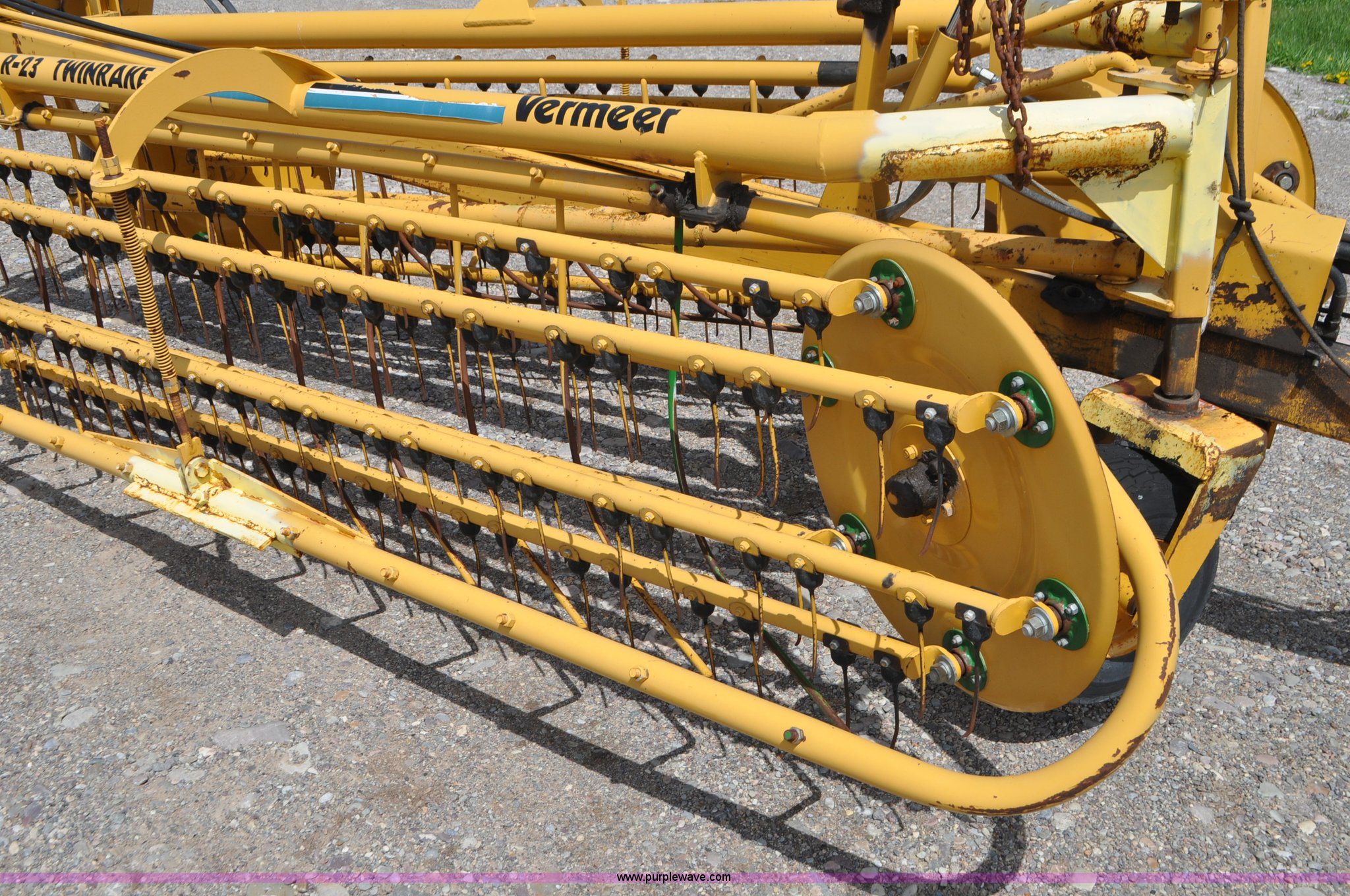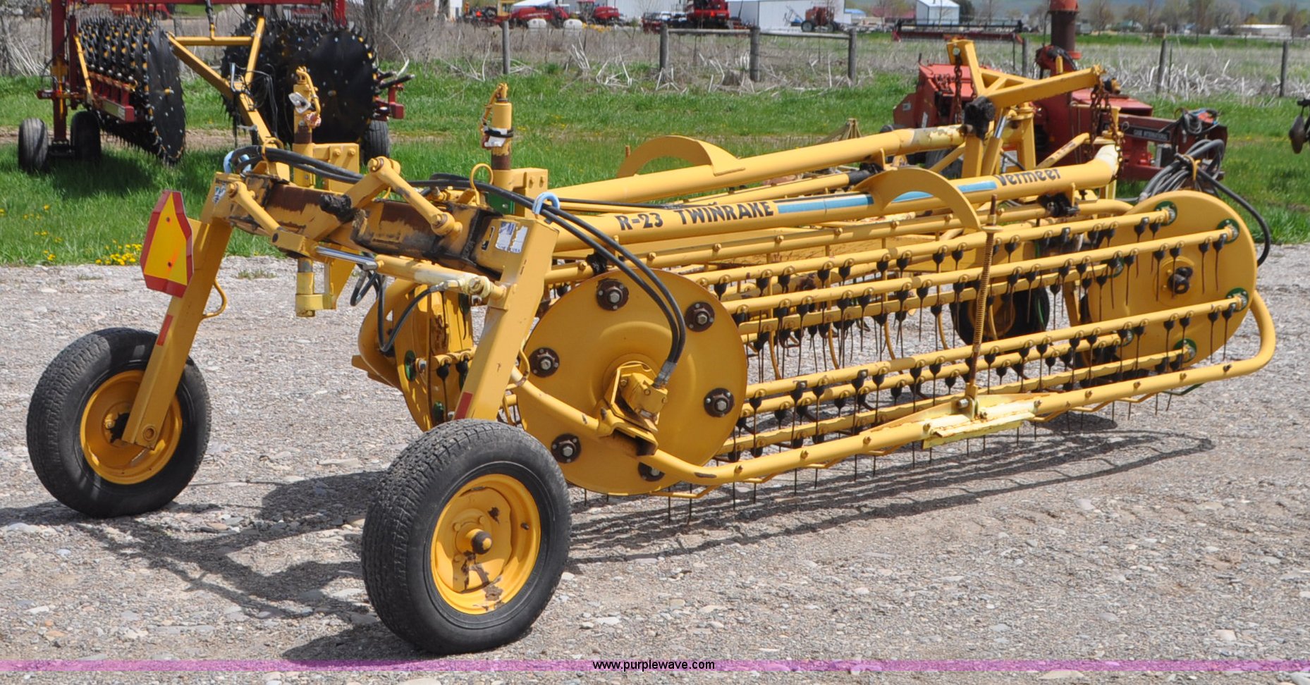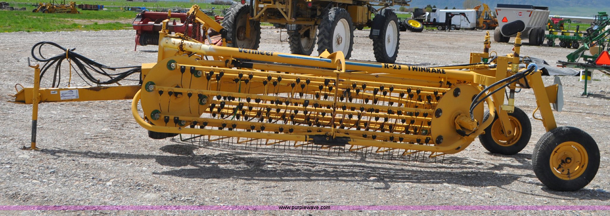 Purple Wave is selling a used Hay Rake in Idaho. This item is a Vermeer R23 twin hay rake with the following: Hydraulic driven, Pin hitch, 18.5x8.50-8 wing tires, 205/75R14 tires, Serial 1VRA201H4T1005557, Unit# I14W1081