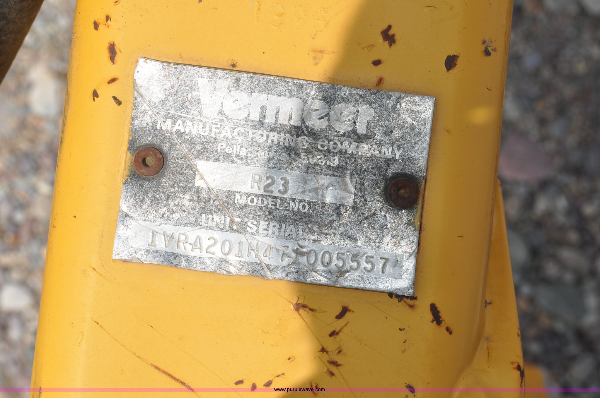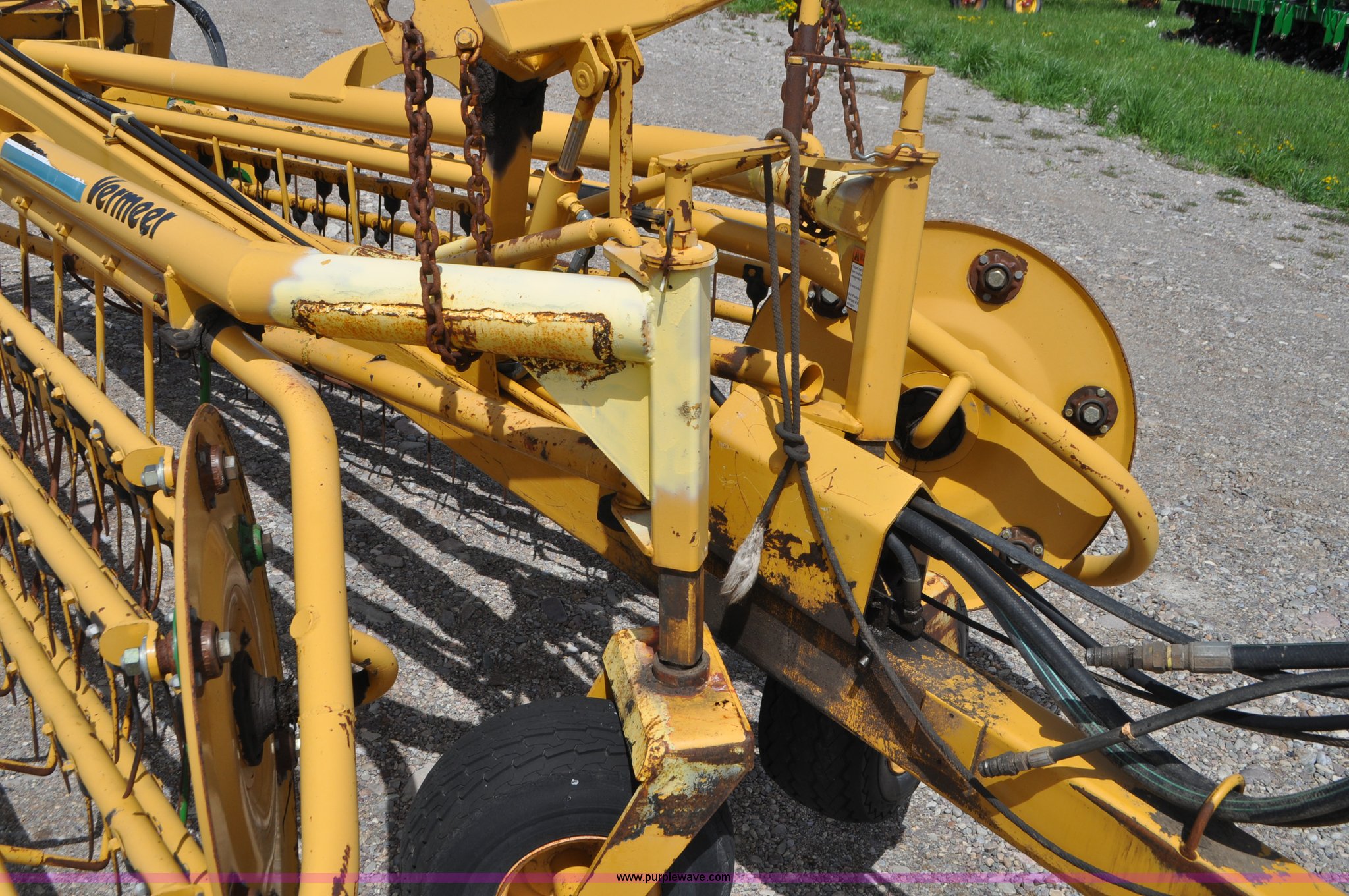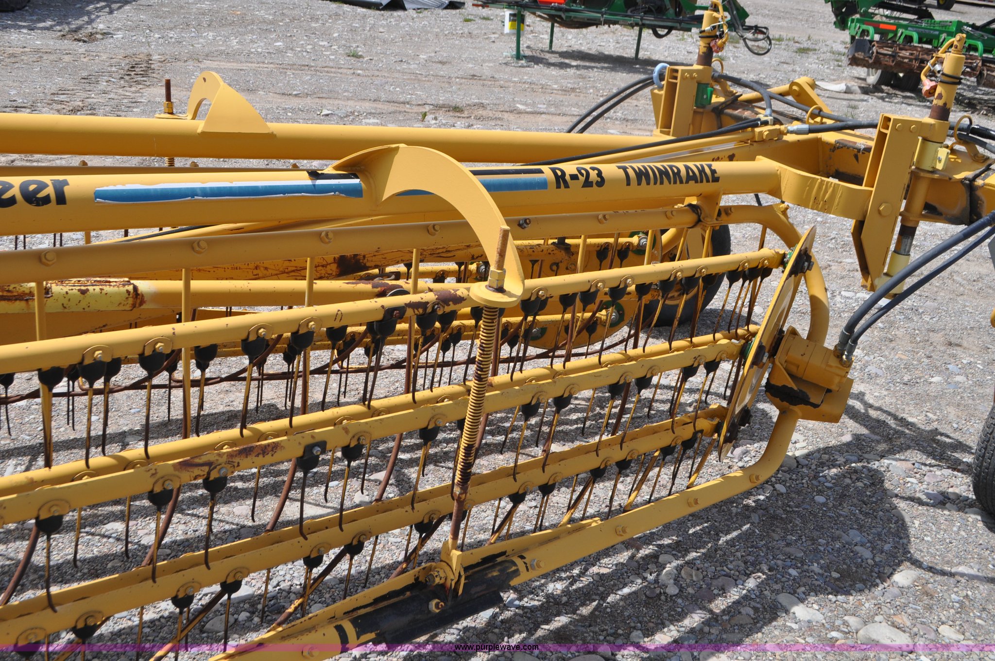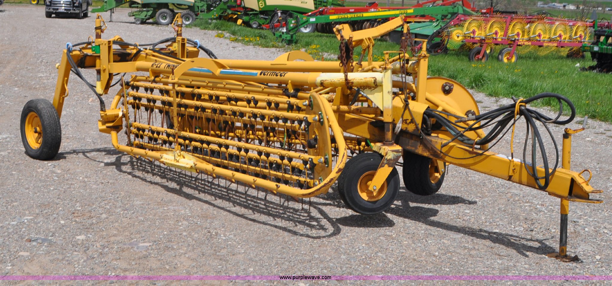 Purple Wave is selling a used Hay Rake in Idaho. This item is a Vermeer R23 twin hay rake with the following: Hydraulic driven, Pin hitch, 18.5x8.50-8 wing tires, 205/75R14 tires, Serial 1VRA201H4T1005557, Unit# I14W1081
