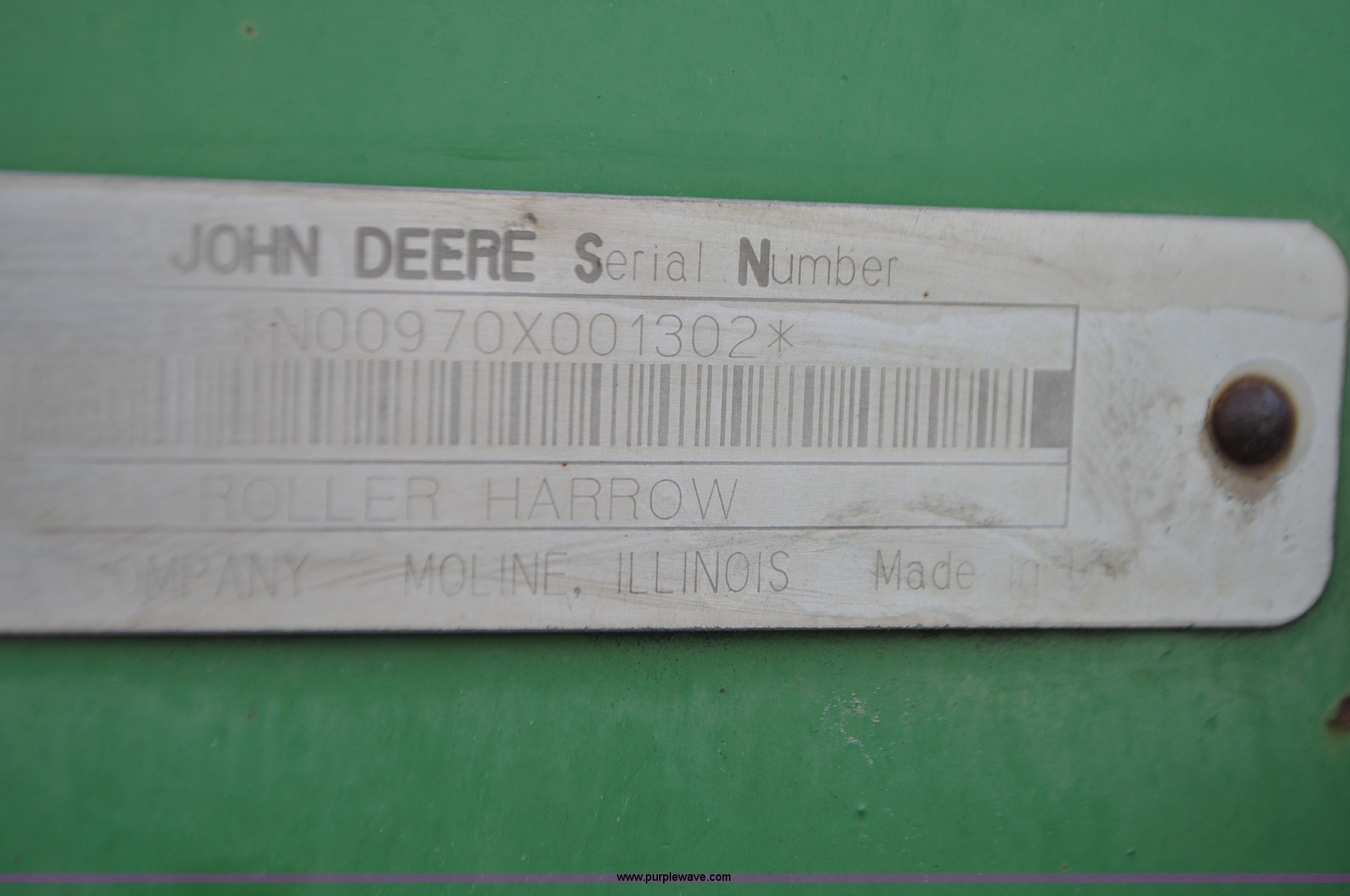 Purple Wave is selling a used Tillage Other in Utah. This item is a John Deere 970 roller harrow with the following: 28'W, Hydraulic fold, Crow feet rollers, S-tine harrows, Rear hitch, 11L-15 tires, Serial N00970X001302, Unit# U15K0897