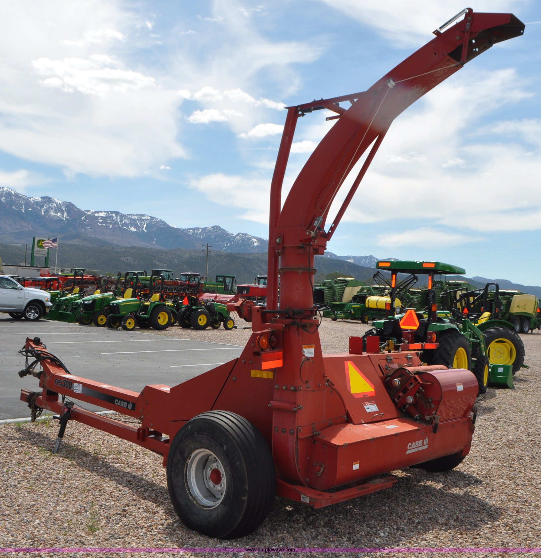Purple Wave is selling a used Forage Harvester in Utah. This item is a 2005 Case IH FHX300 forage harvester and silage trailer with the following: 6.5'W pickup, (6) cutterhead knives, Kernal processor, Electric adjust spout, 1000 PTO, Clevis hitch, 14L-16.1 tires, Serial HBJ0047554