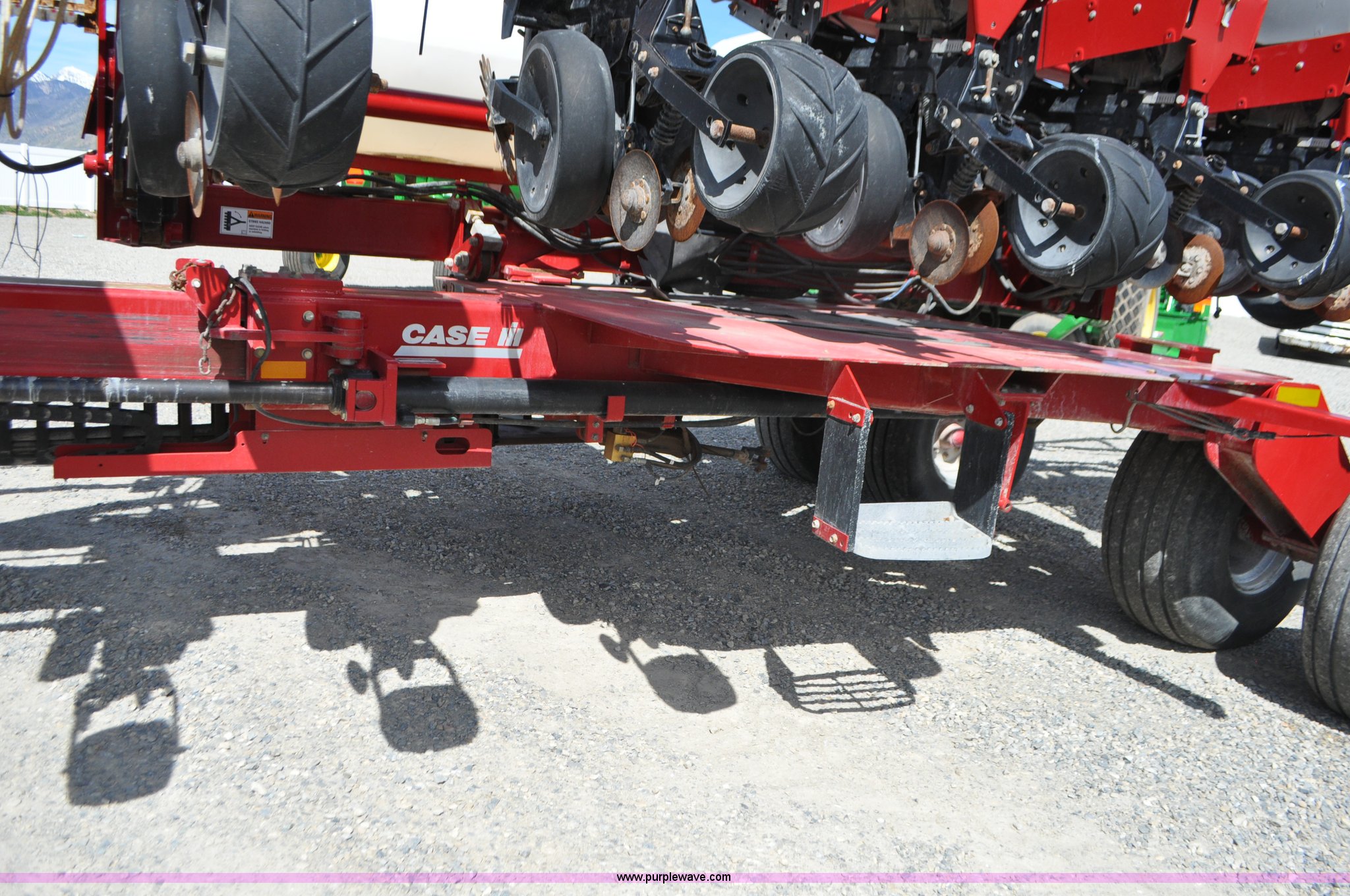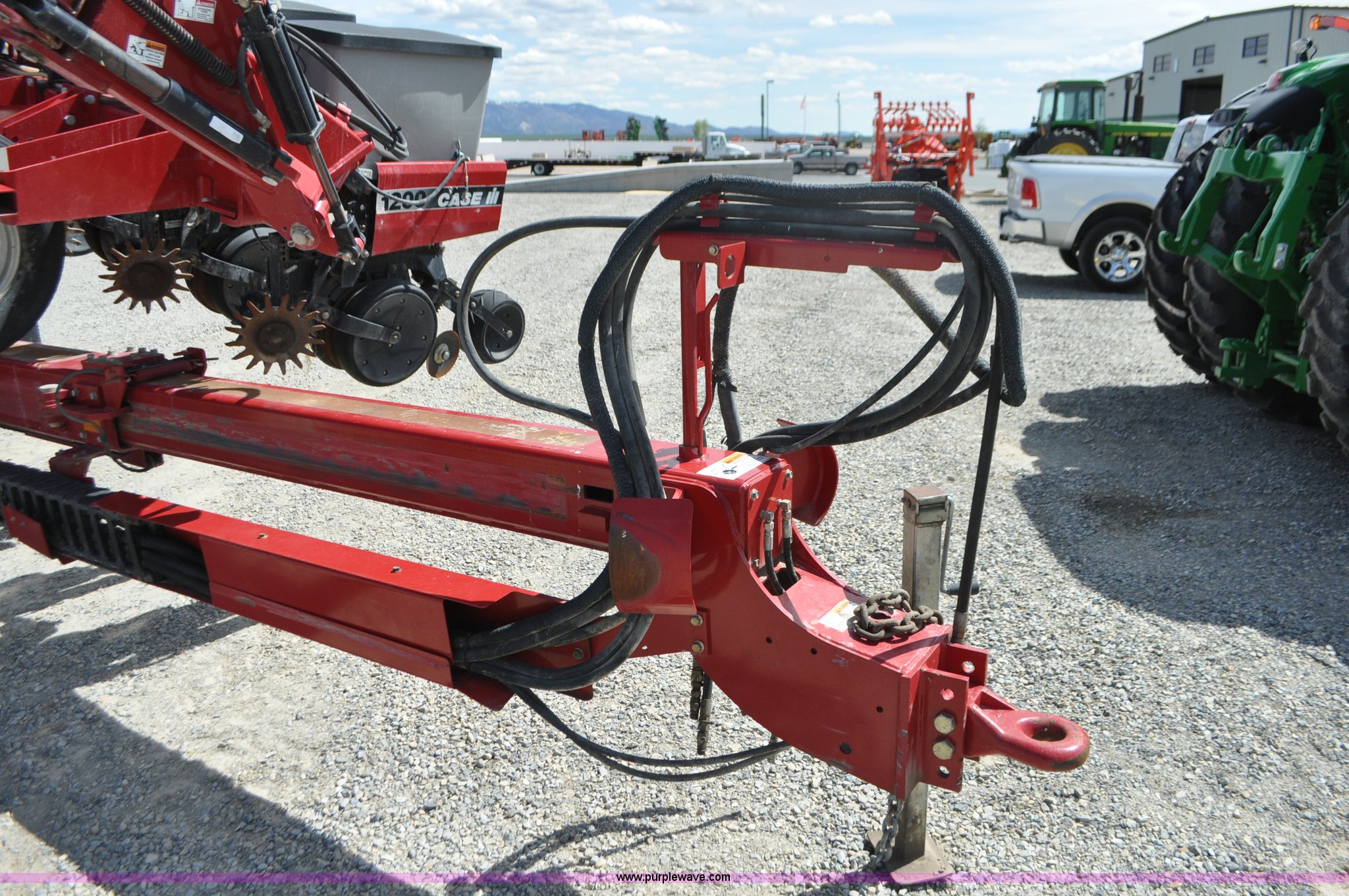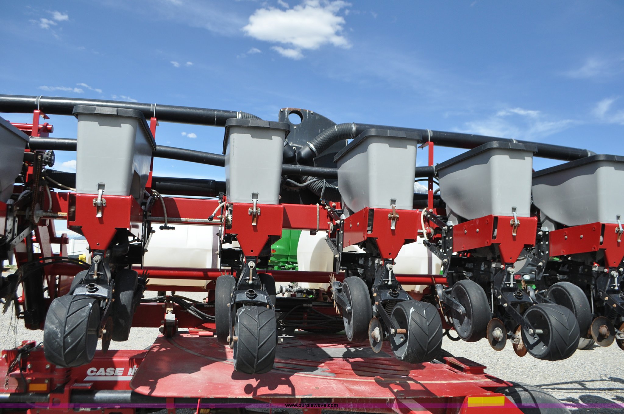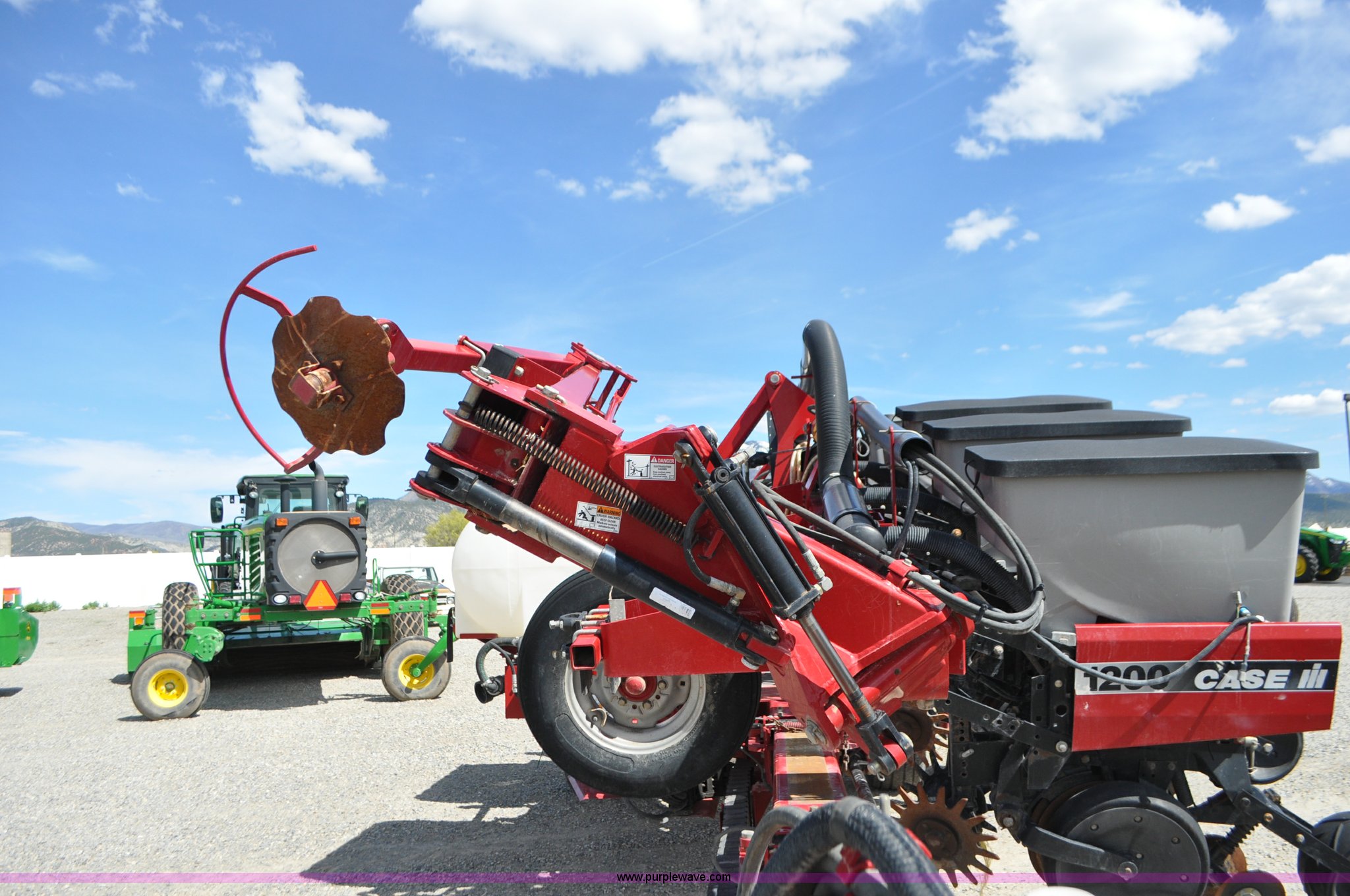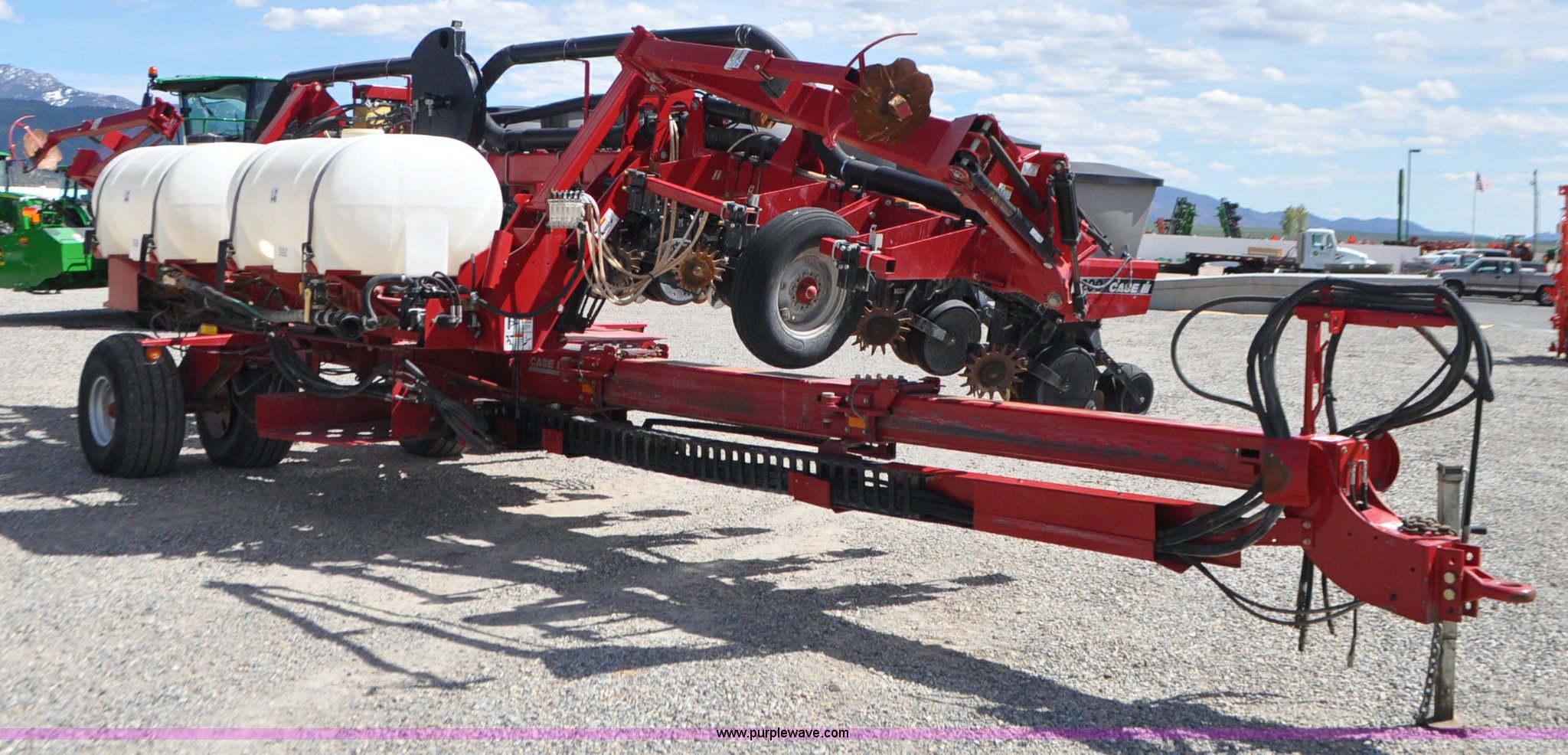 Purple Wave is selling a used Planter in Utah. This item is a Case IH 1200 planter with the following: 12 row units, 30" row spacing, Marker arms, Hydraulic pivot fold, Individual seed hoppers, Vacuum metering, Hydraulic meter drive, Row cleaners, Double disk openers, Double gauge wheels, Double steel disk closing system, 400 gallon liquid fertilizer tank, In furrow fertilizer tubes, Piston pump, Case IH AFS monitor, Pin hitch, (4) 16.5L-16.1 transport tires, (2) 7.60-15 outside tires, Serial CBJ0018305, Unit# U15J0273