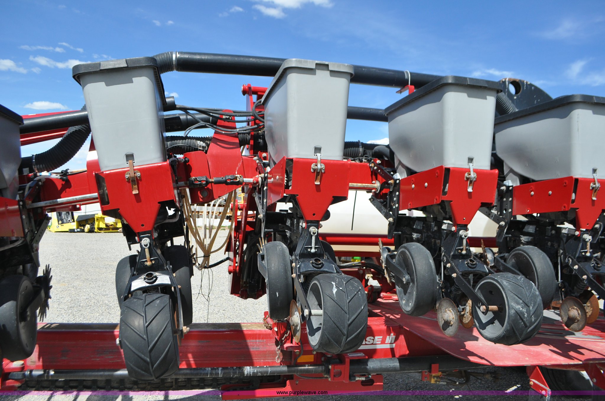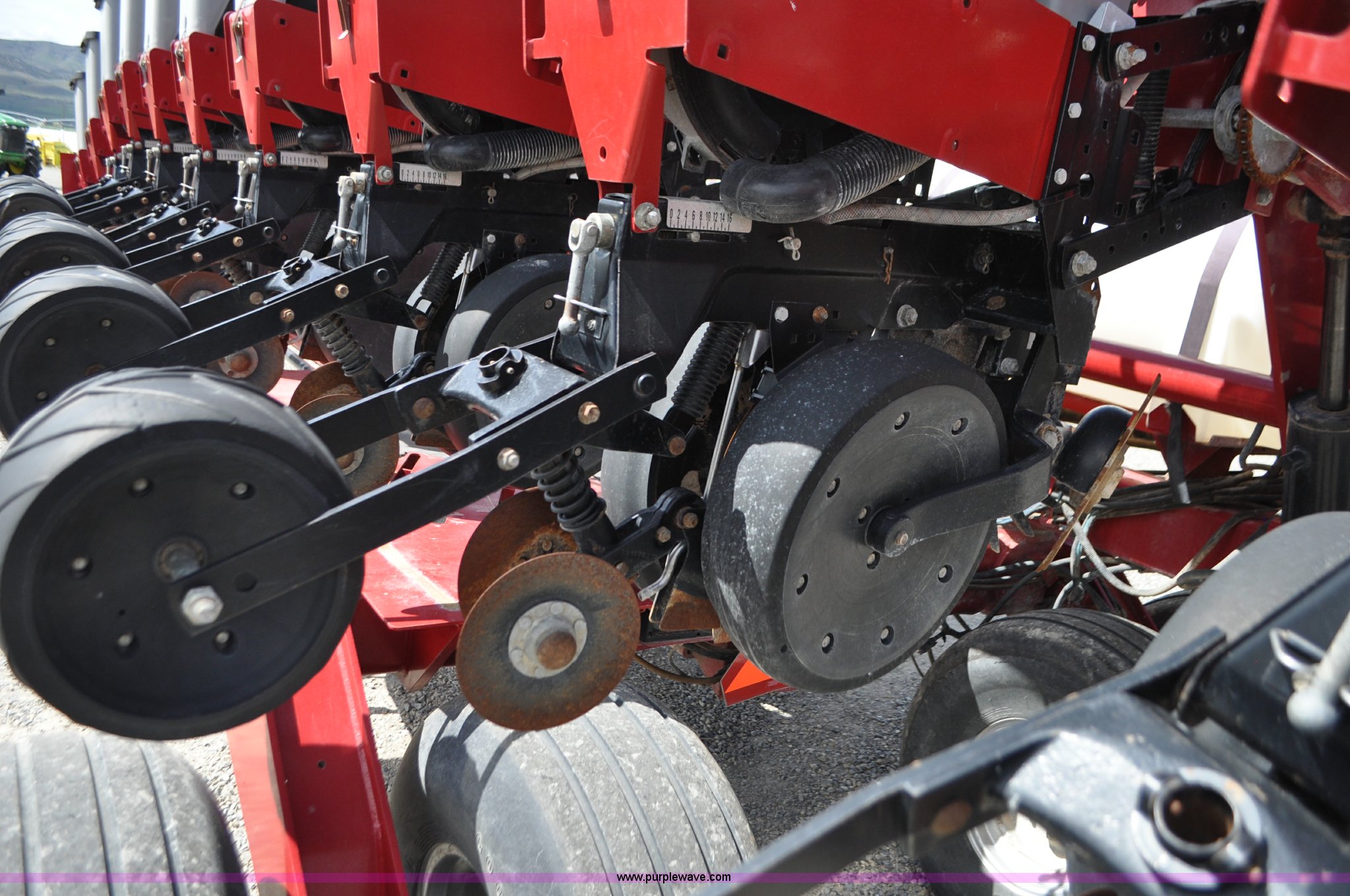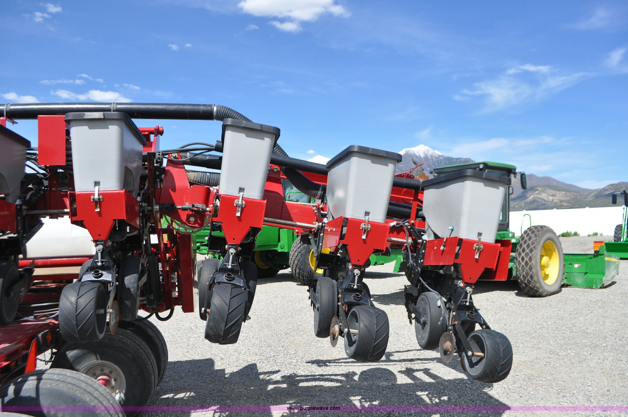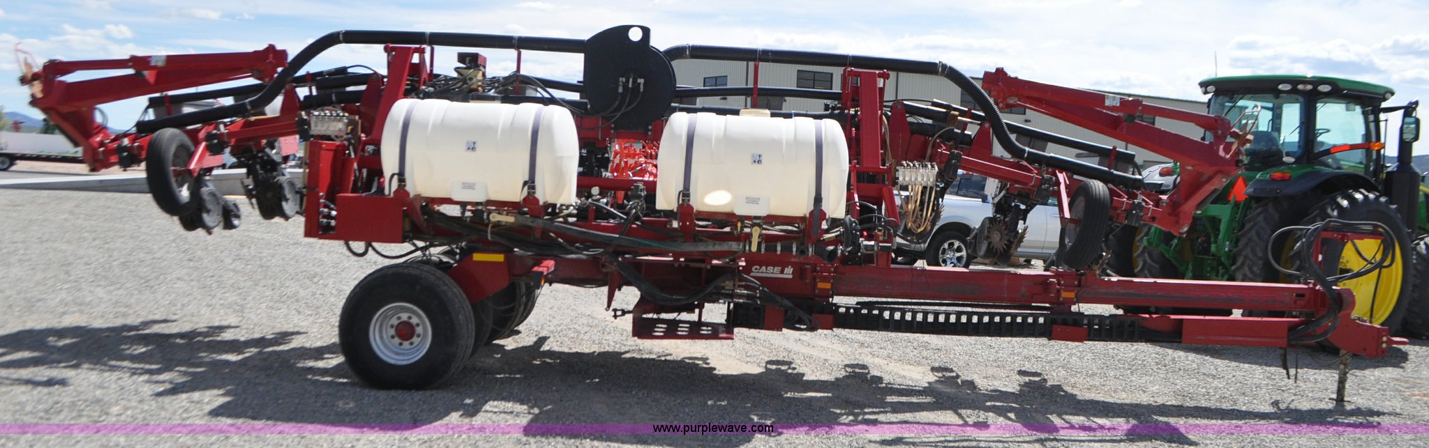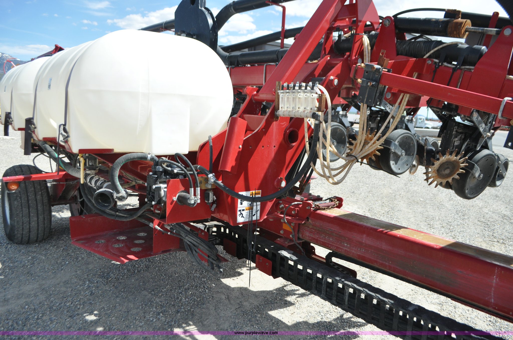 Purple Wave is selling a used Planter in Utah. This item is a Case IH 1200 planter with the following: 12 row units, 30" row spacing, Marker arms, Hydraulic pivot fold, Individual seed hoppers, Vacuum metering, Hydraulic meter drive, Row cleaners, Double disk openers, Double gauge wheels, Double steel disk closing system, 400 gallon liquid fertilizer tank, In furrow fertilizer tubes, Piston pump, Case IH AFS monitor, Pin hitch, (4) 16.5L-16.1 transport tires, (2) 7.60-15 outside tires, Serial CBJ0018305, Unit# U15J0273
