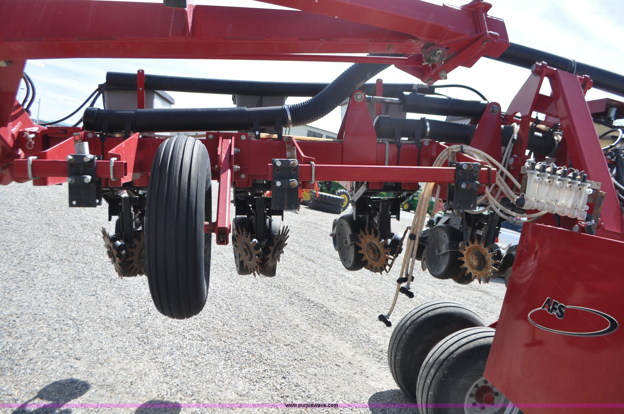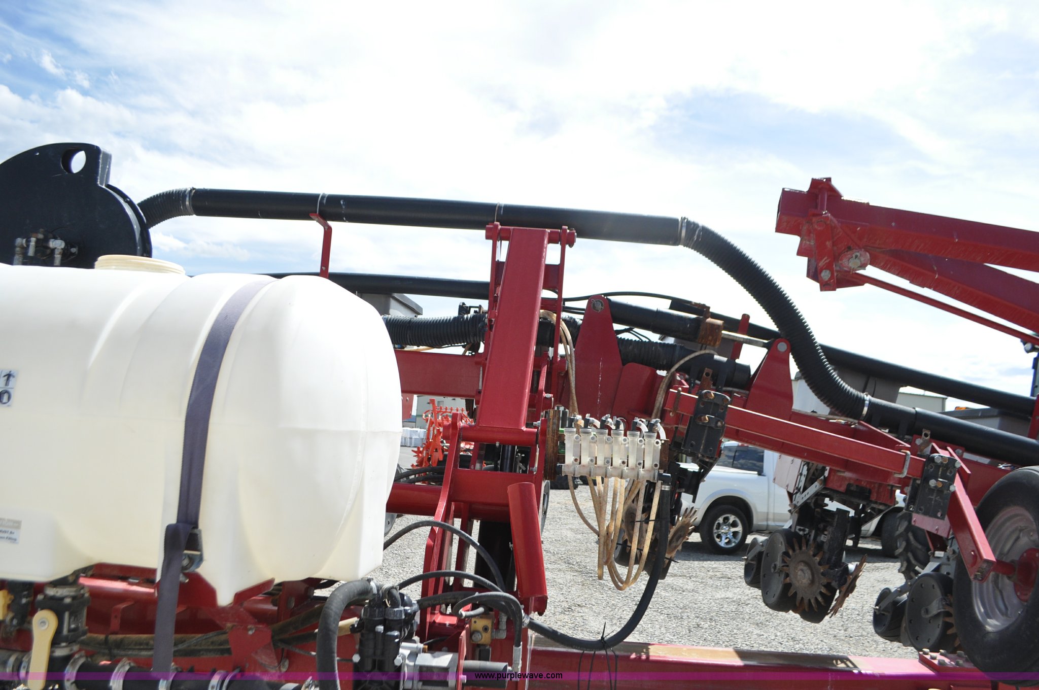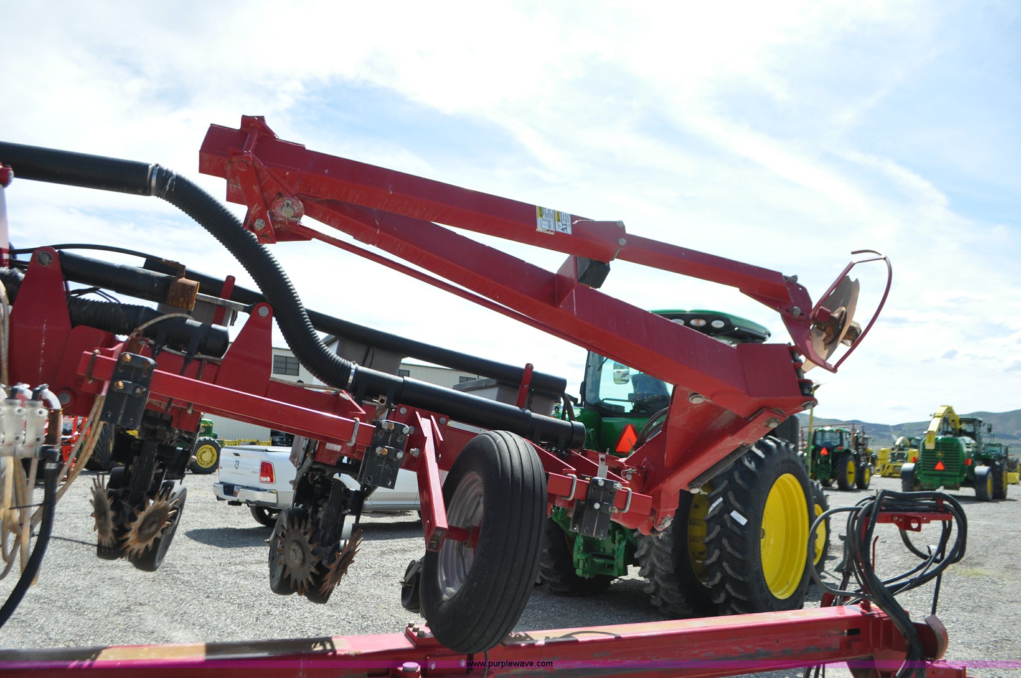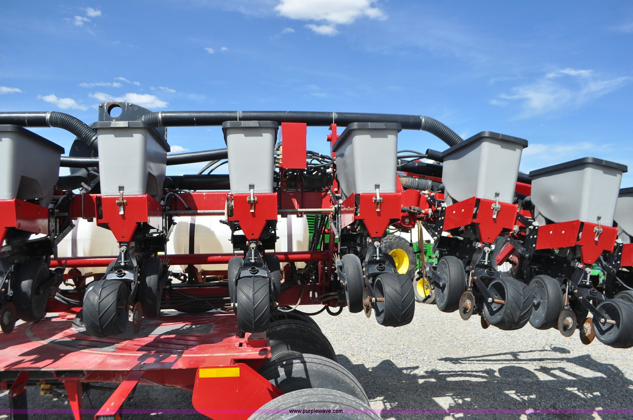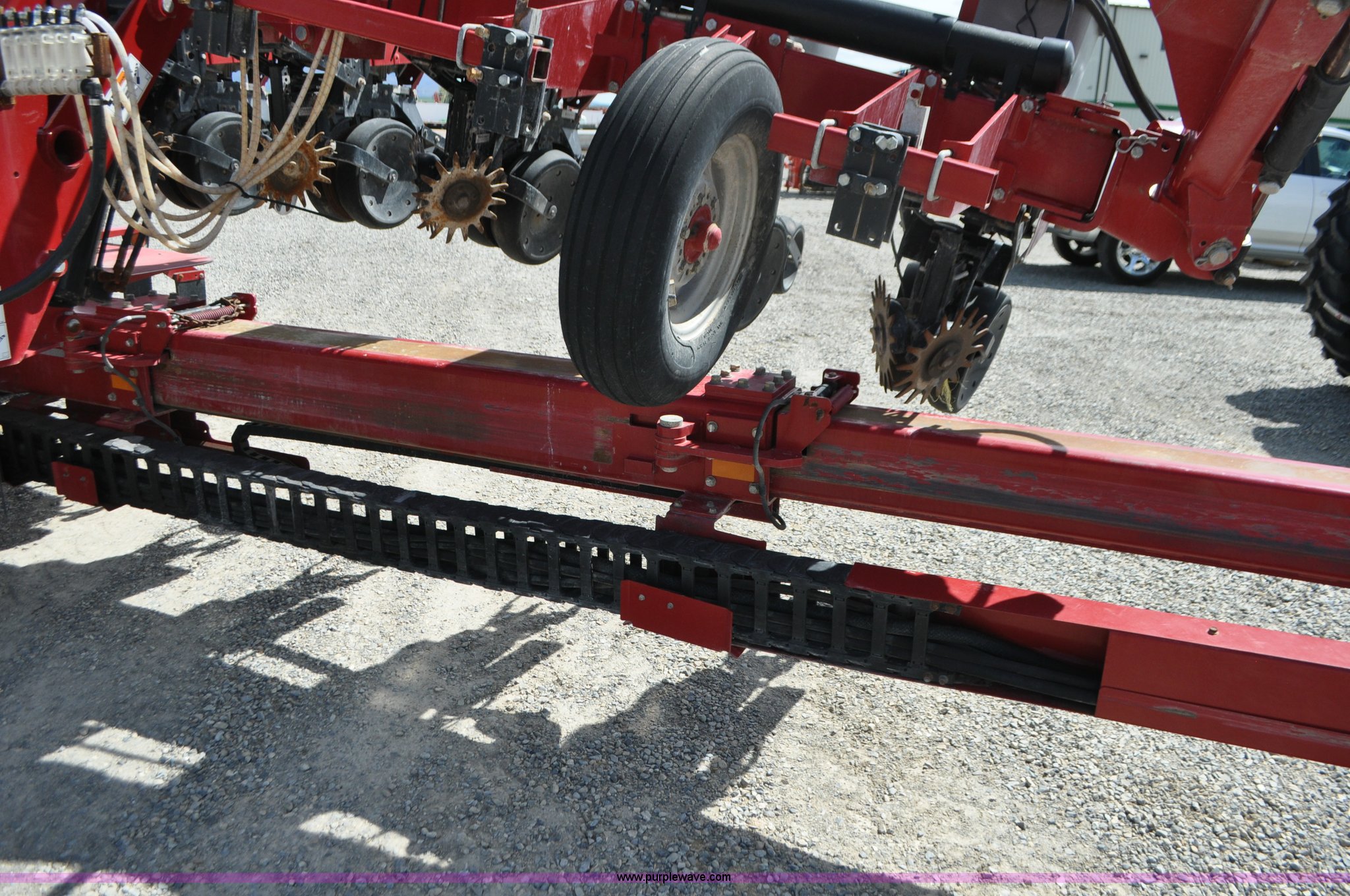 Purple Wave is selling a used Planter in Utah. This item is a Case IH 1200 planter with the following: 12 row units, 30" row spacing, Marker arms, Hydraulic pivot fold, Individual seed hoppers, Vacuum metering, Hydraulic meter drive, Row cleaners, Double disk openers, Double gauge wheels, Double steel disk closing system, 400 gallon liquid fertilizer tank, In furrow fertilizer tubes, Piston pump, Case IH AFS monitor, Pin hitch, (4) 16.5L-16.1 transport tires, (2) 7.60-15 outside tires, Serial CBJ0018305, Unit# U15J0273