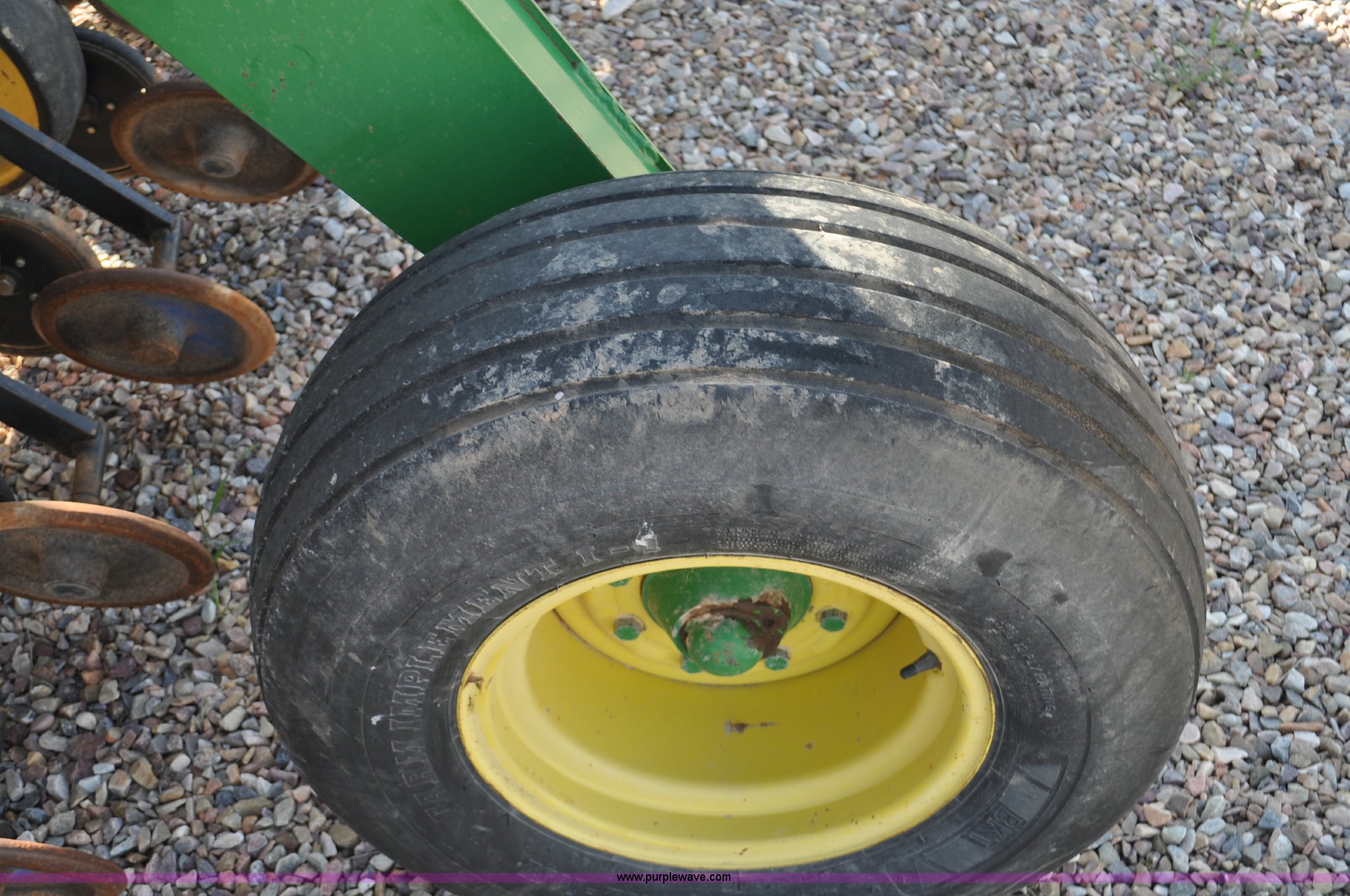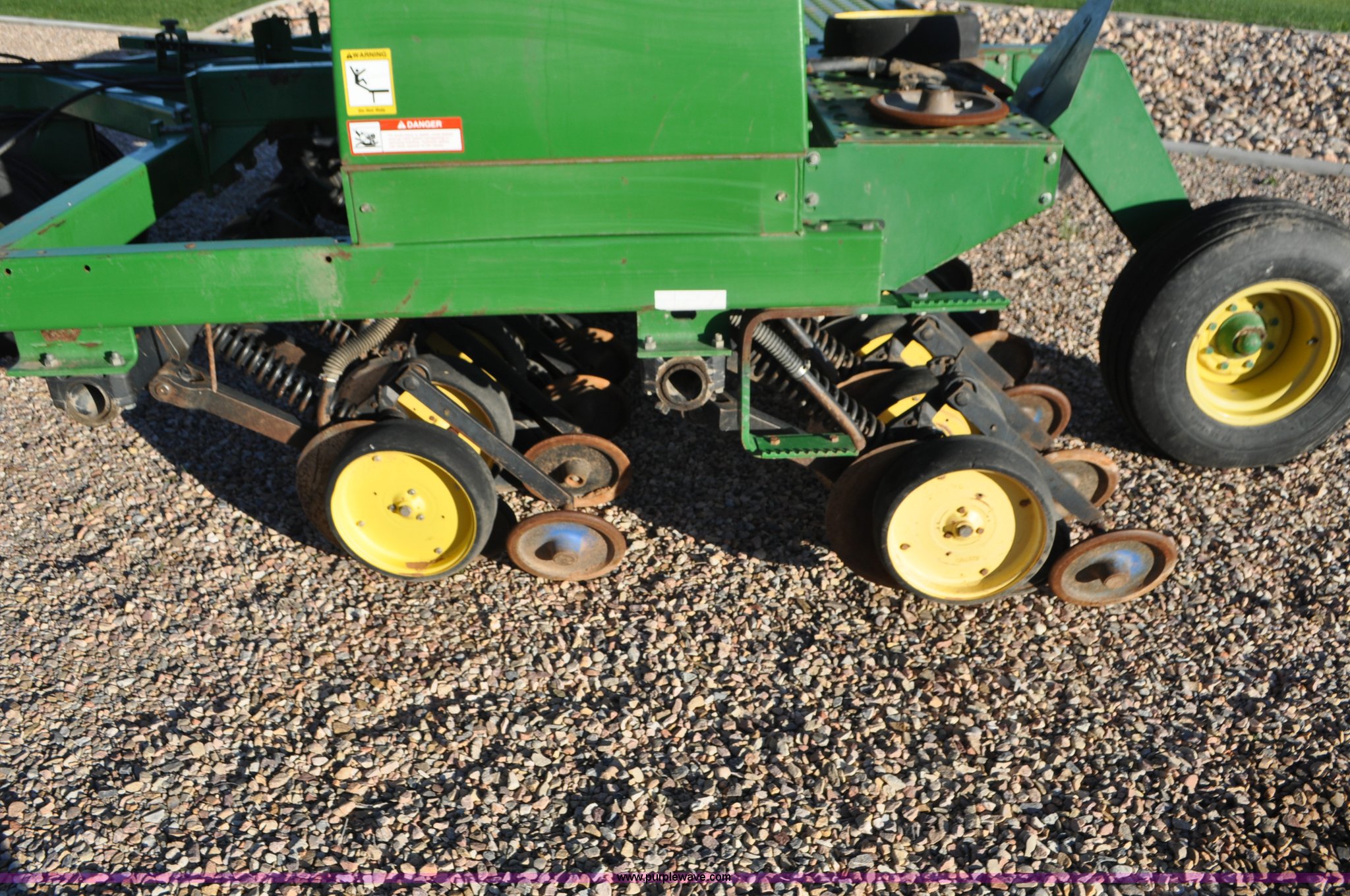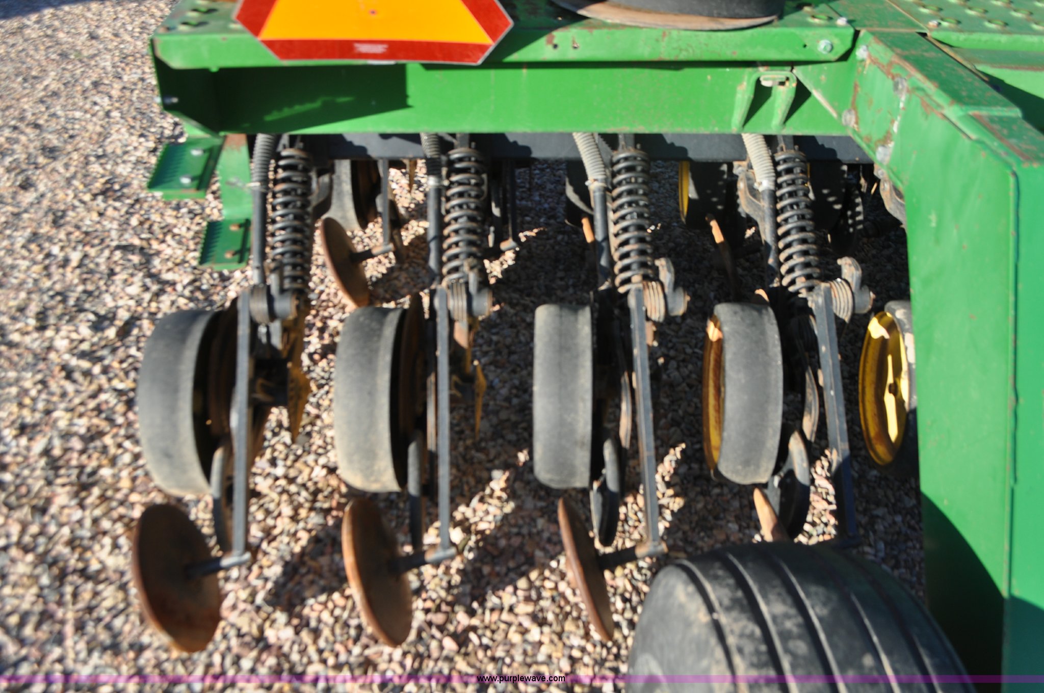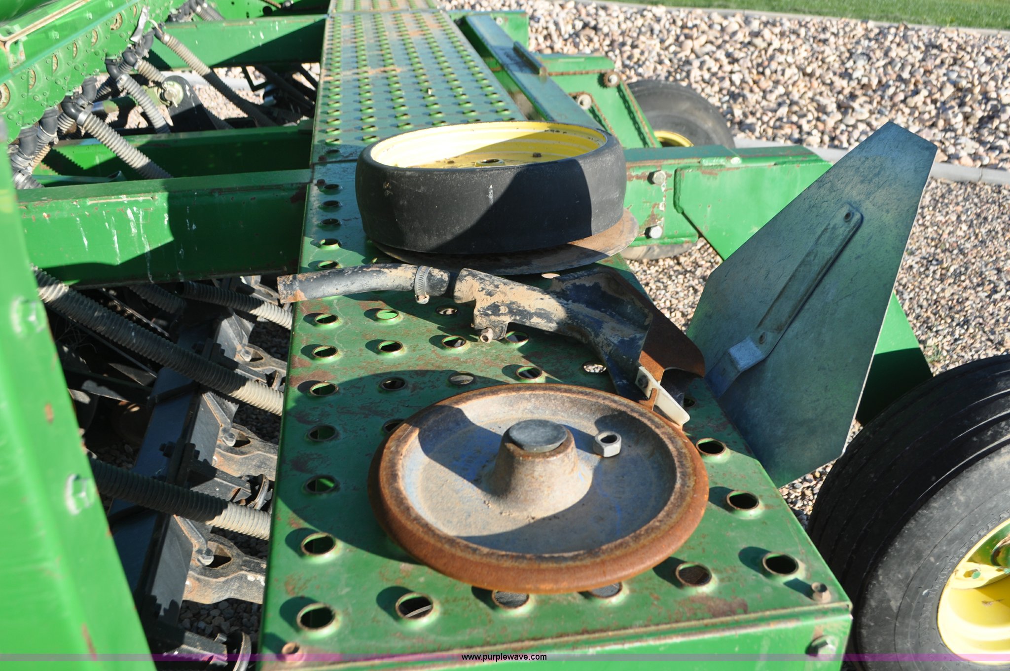 Purple Wave is selling a used Grain Drill or Seeder in Utah. This item is a 1992 John Deere 750 grain drill with the following: 24 row units, 7.5" spacing, Bulk fill system, Ground meter drive, Single disk openers, Single gauge wheels, Single cast closing system, Pin hitch, (4) 12.5L-16 transport tires, Hopper lid damaged and bent, Serial N00750X006423, Unit# U15J0931