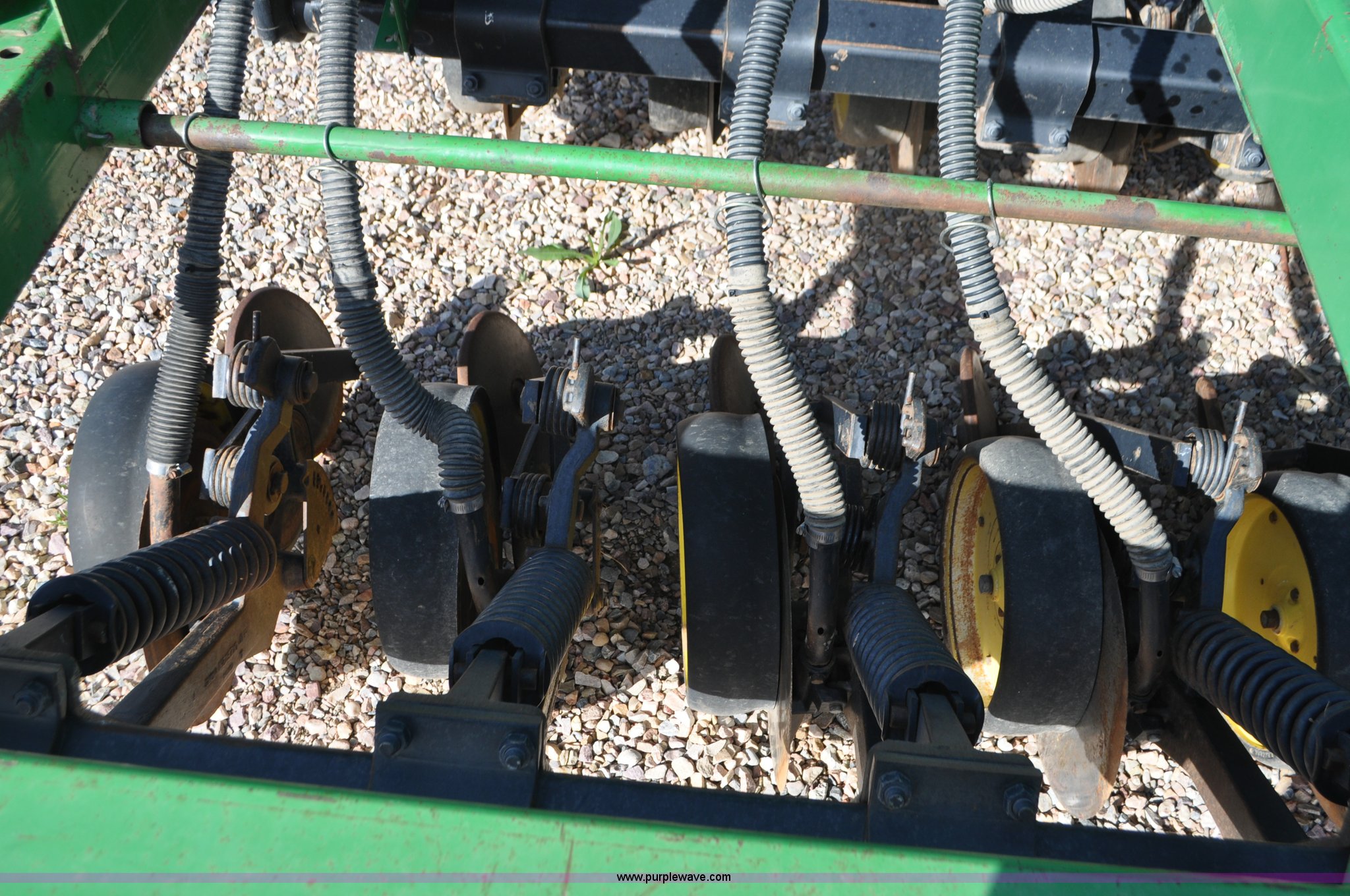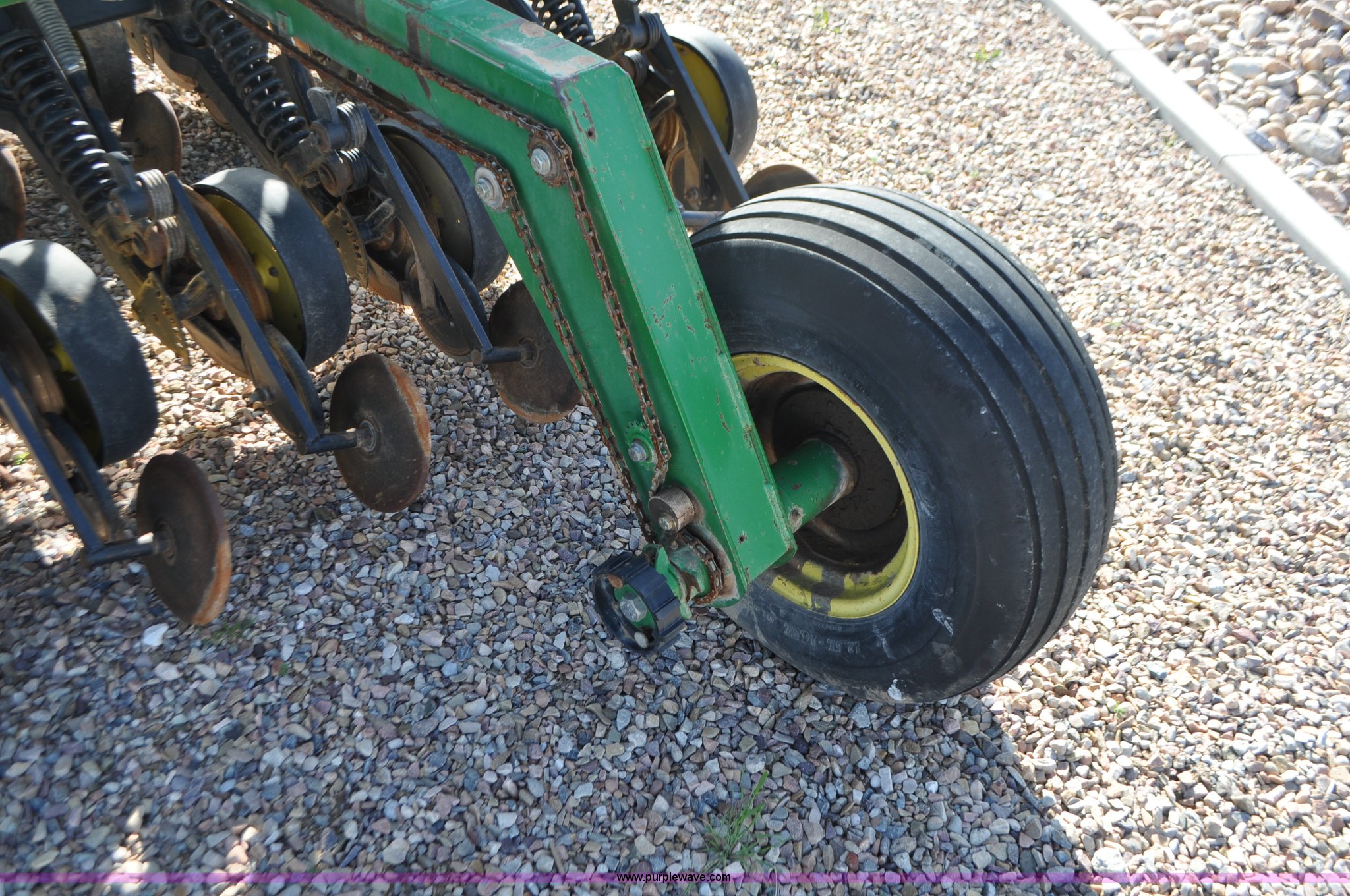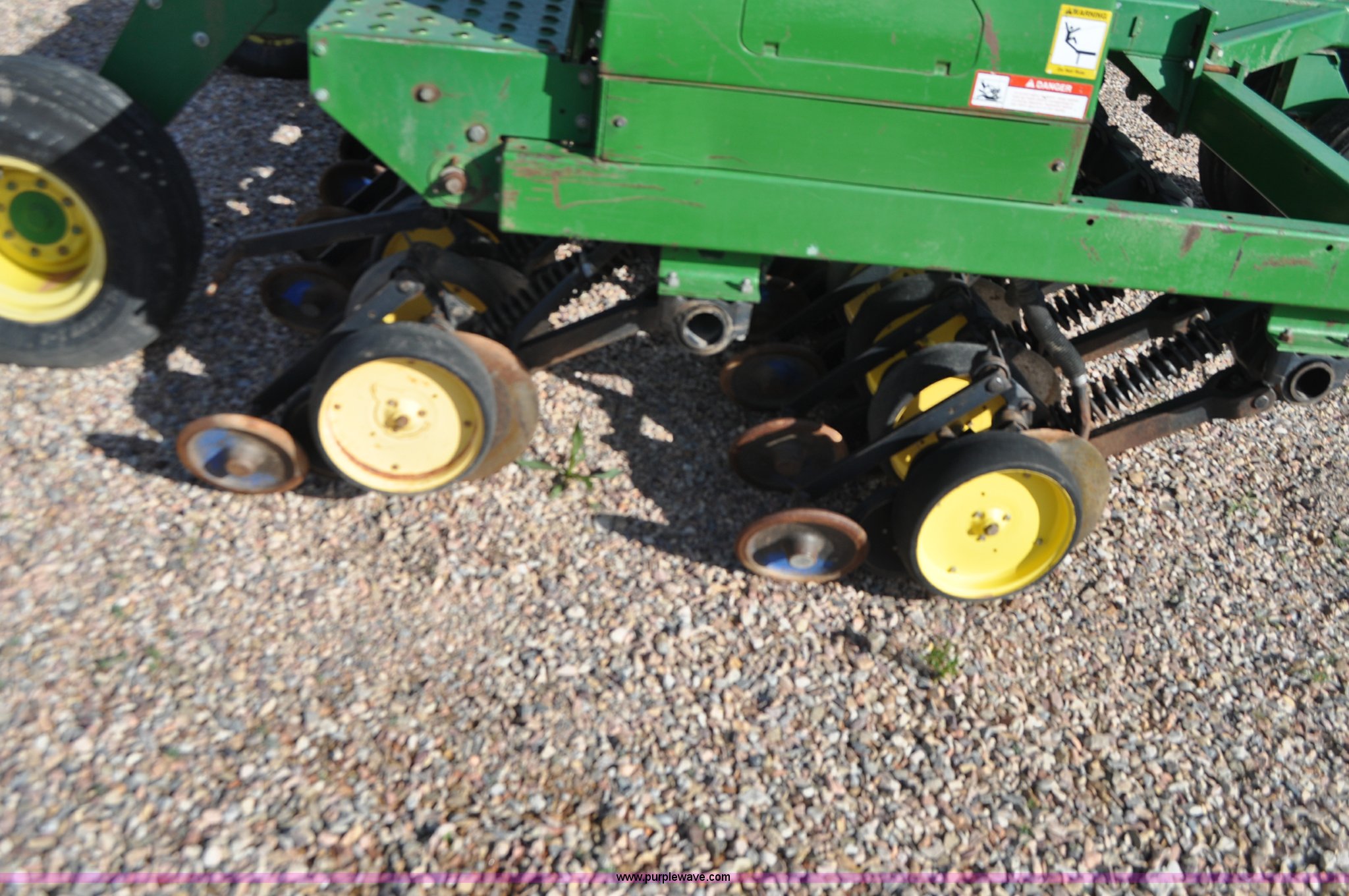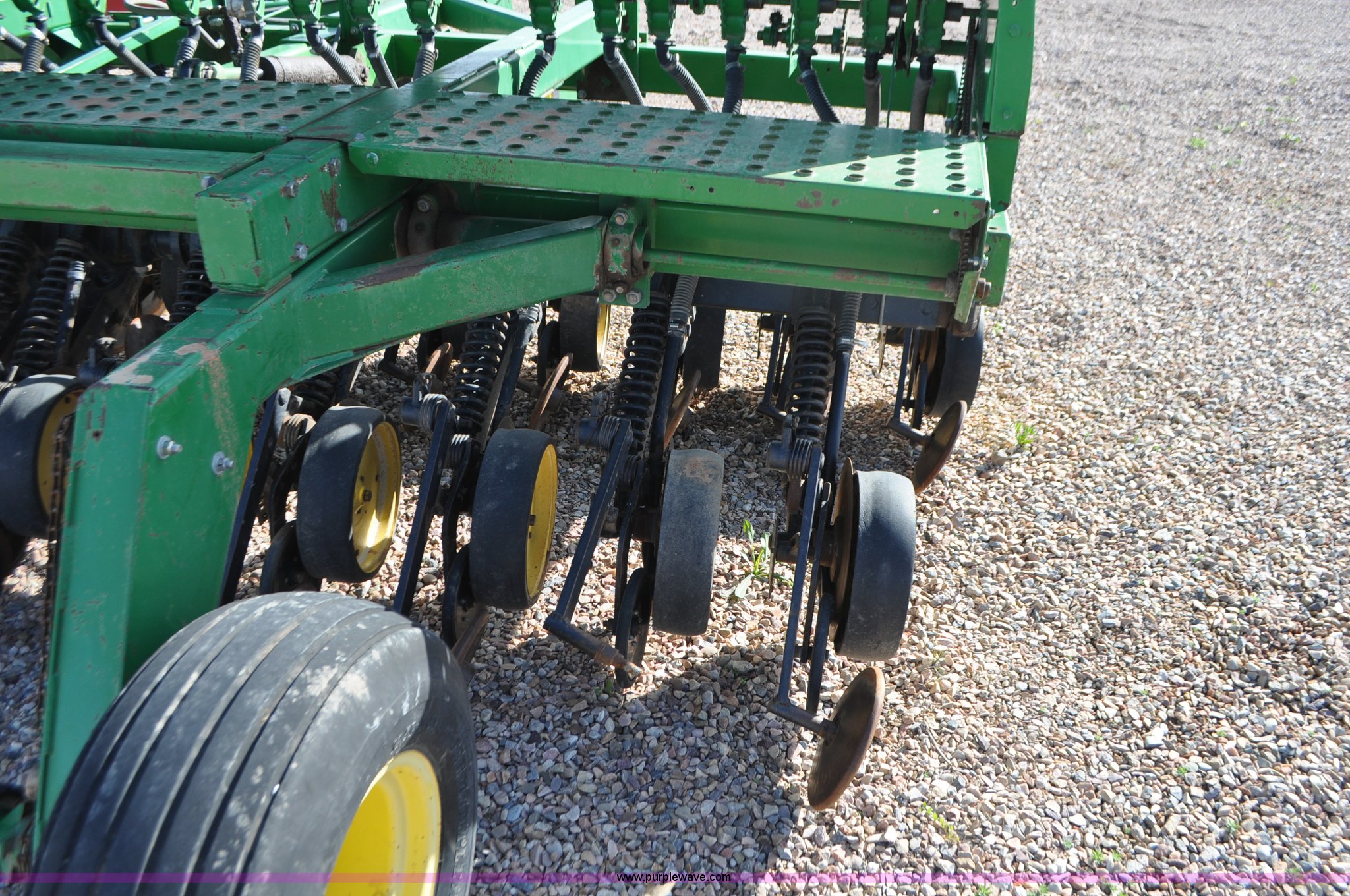 Purple Wave is selling a used Grain Drill or Seeder in Utah. This item is a 1992 John Deere 750 grain drill with the following: 24 row units, 7.5" spacing, Bulk fill system, Ground meter drive, Single disk openers, Single gauge wheels, Single cast closing system, Pin hitch, (4) 12.5L-16 transport tires, Hopper lid damaged and bent, Serial N00750X006423, Unit# U15J0931