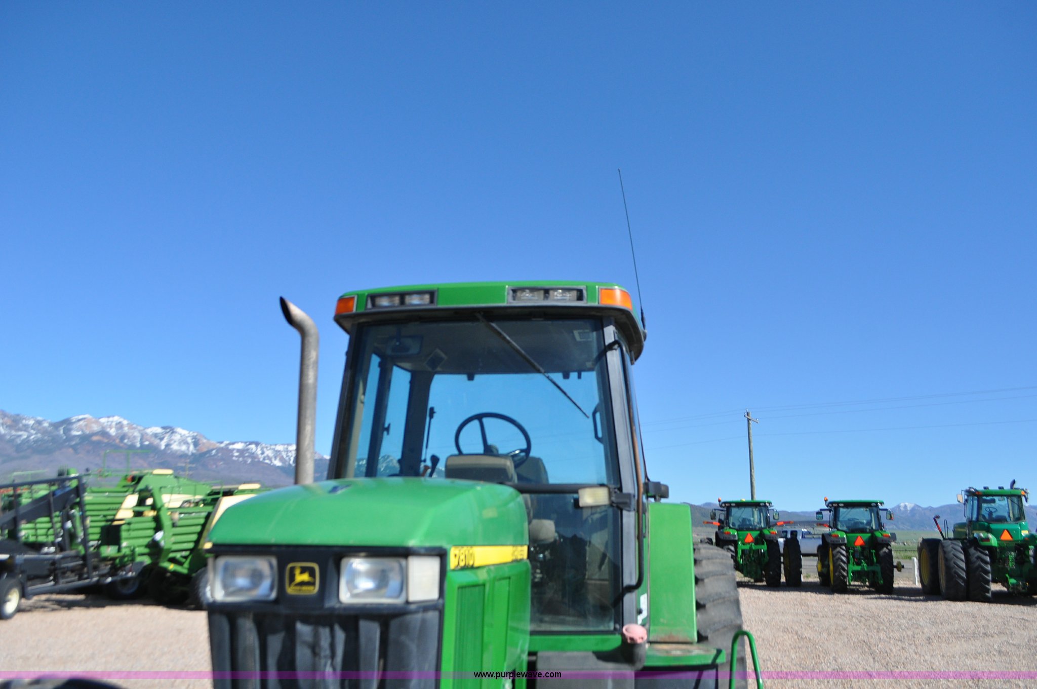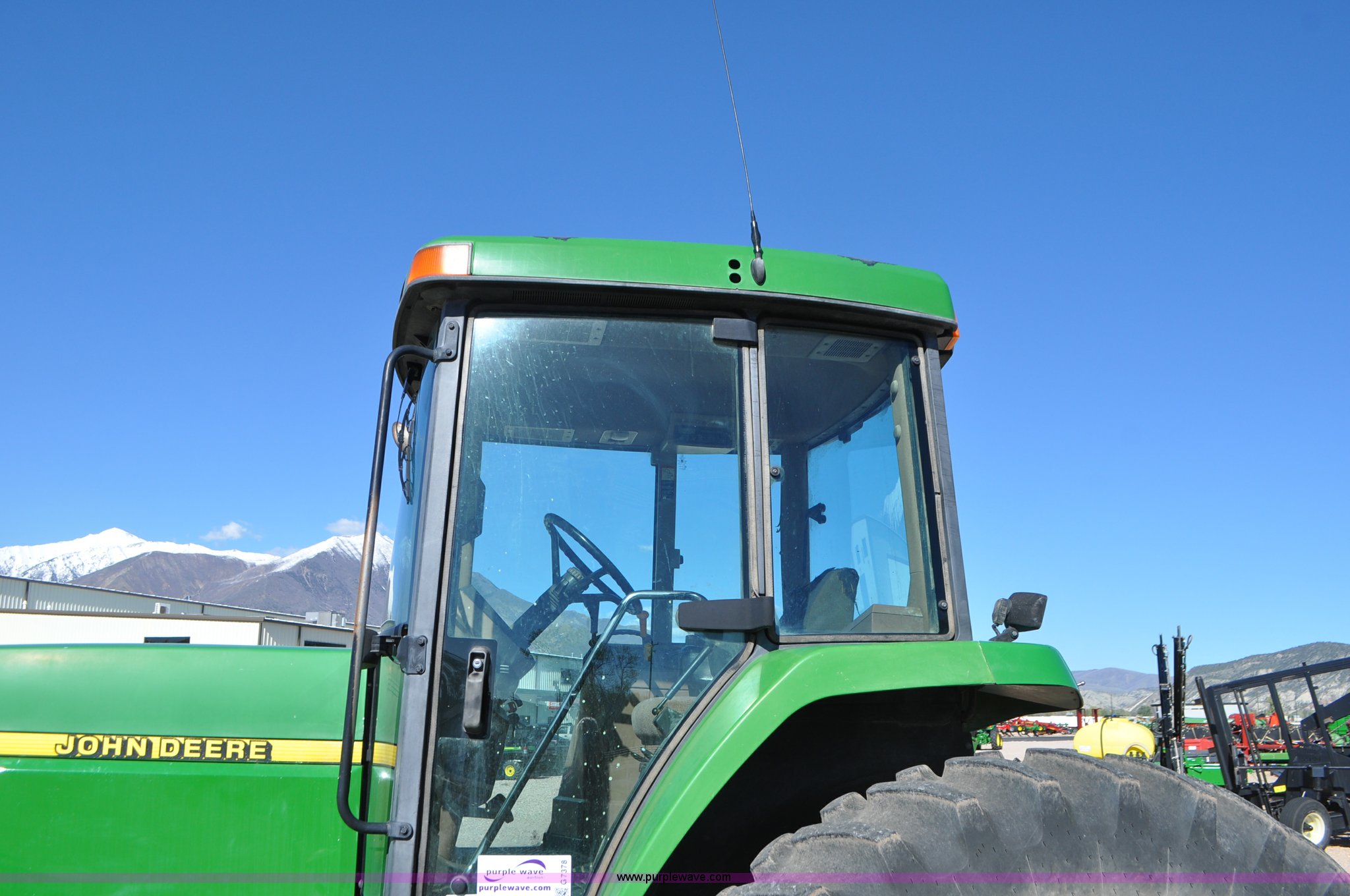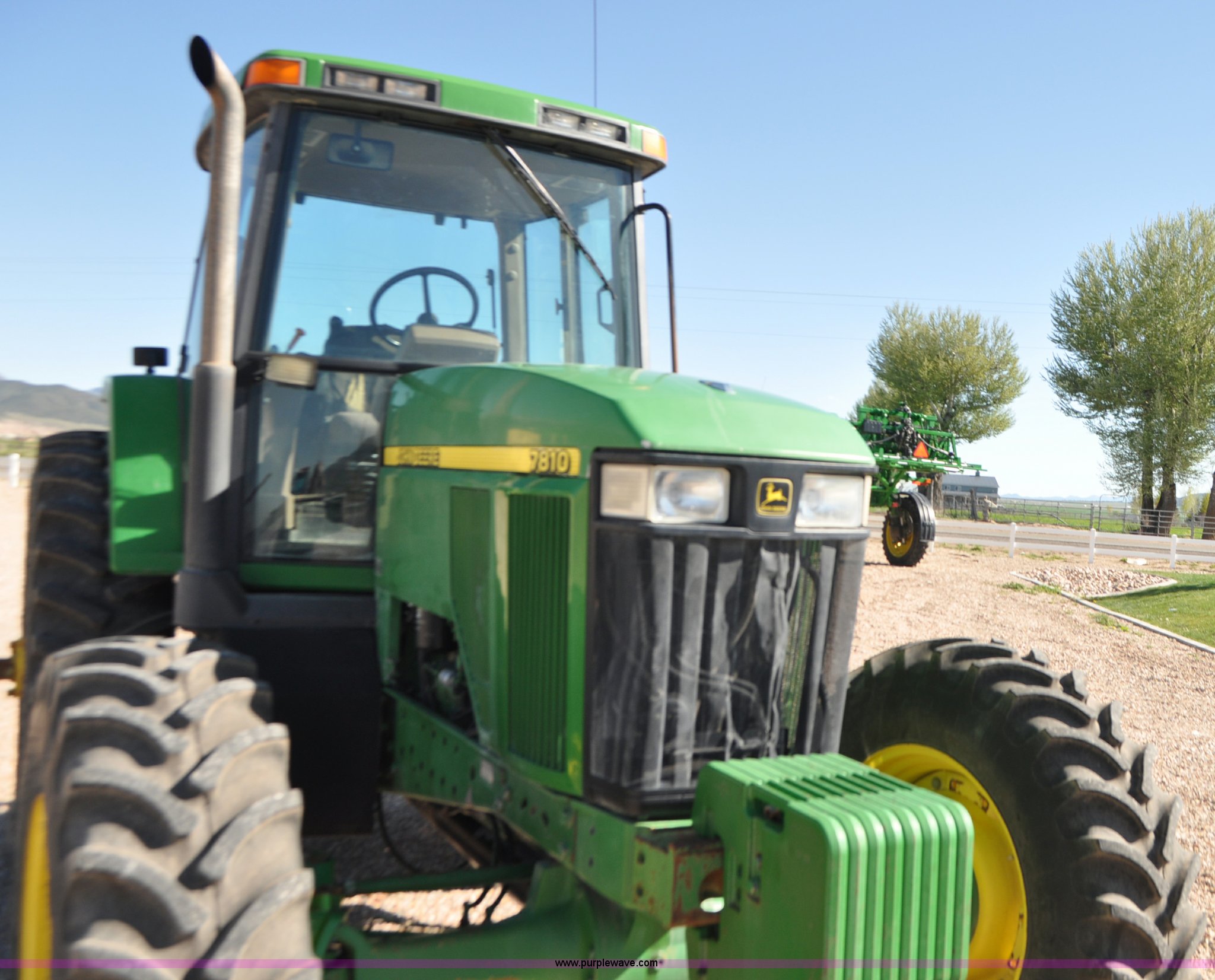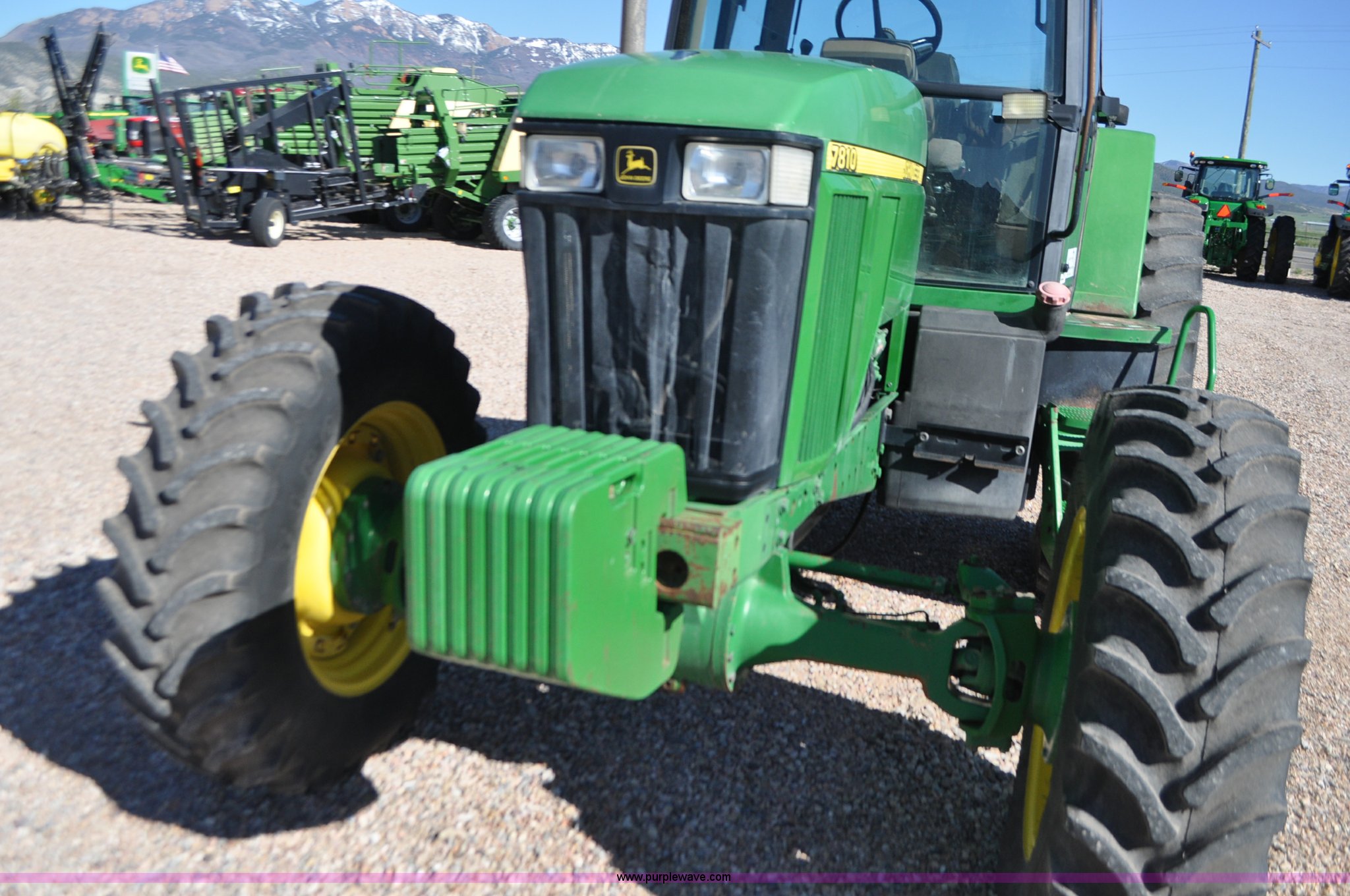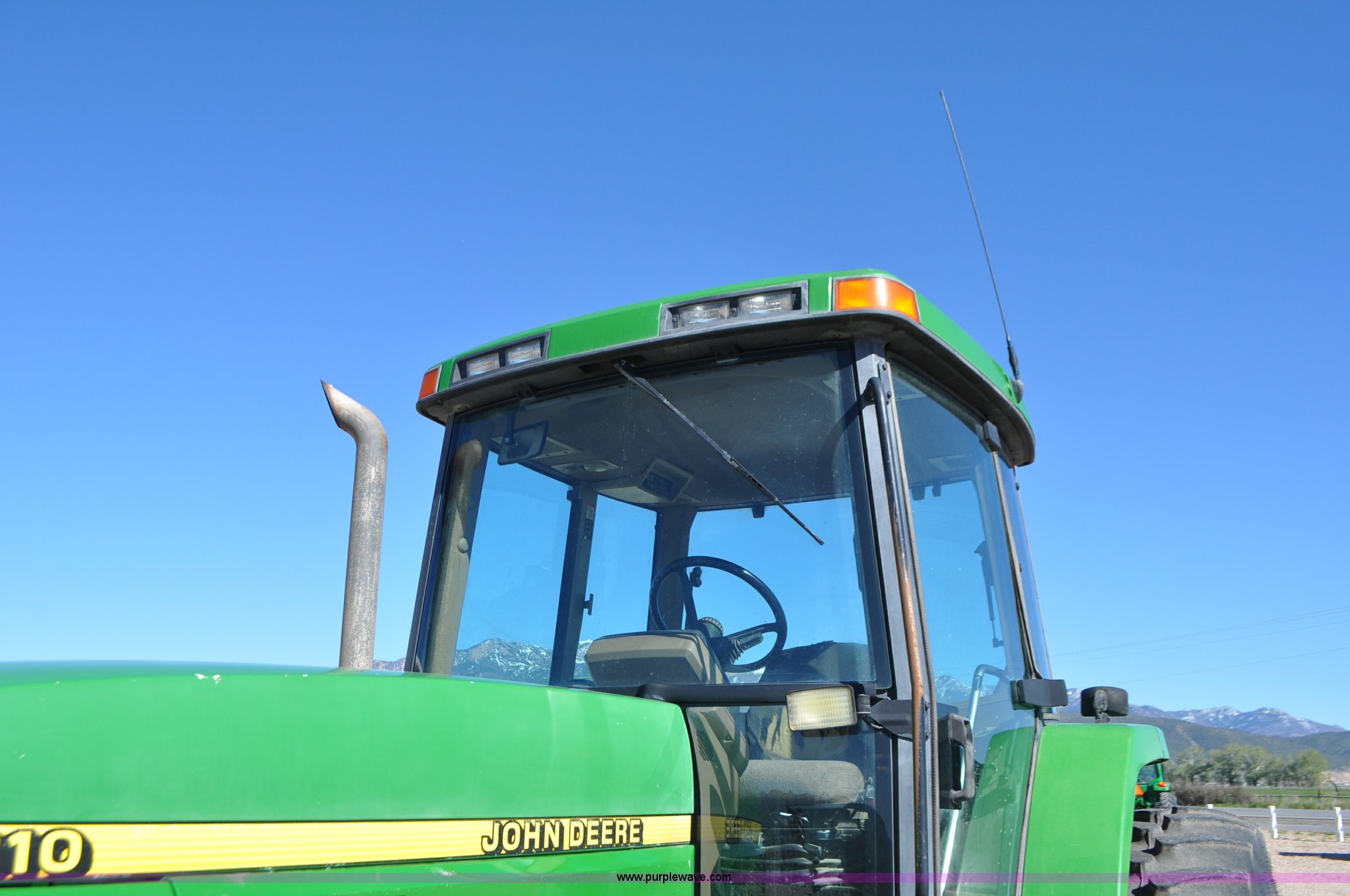 Purple Wave is selling a used Tractor in Utah. This item is a 1998 John Deere 7810 MFWD tractor with the following: 1,622 hours on meter, John Deere 6081 8.1L six cylinder turbo diesel engine, 175 HP, Serial RG6081T047245, Powershift transmission, 19F-7R gears, AC and heat, Tilt steering wheel, AM/FM, Air suspension seat, Three point, Seven pin outlet, 1000 PTO, (4) rear hydraulic remote sets, (8) suitcase weights, Wheel weights, 14.9R30 front tires, 18.4R42 rear tires, U-joints need replaced between engine and transmission, Serial RW7810P011954, Unit# U14J1638