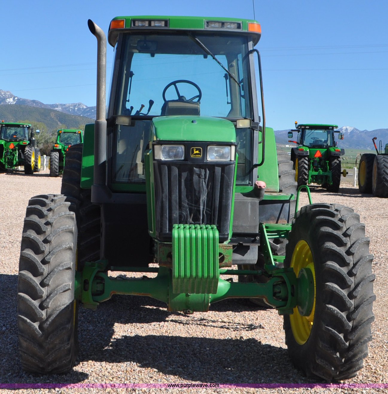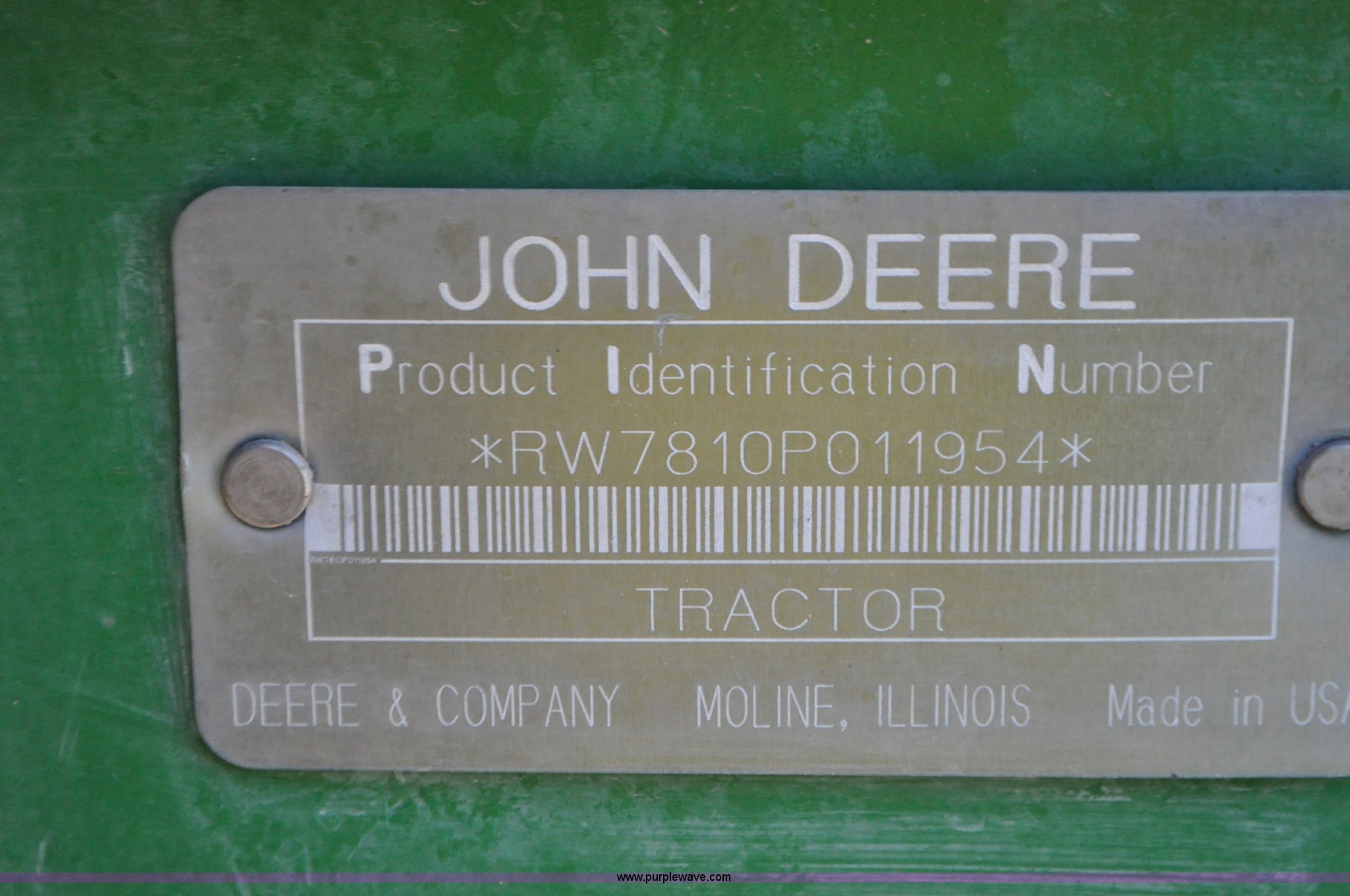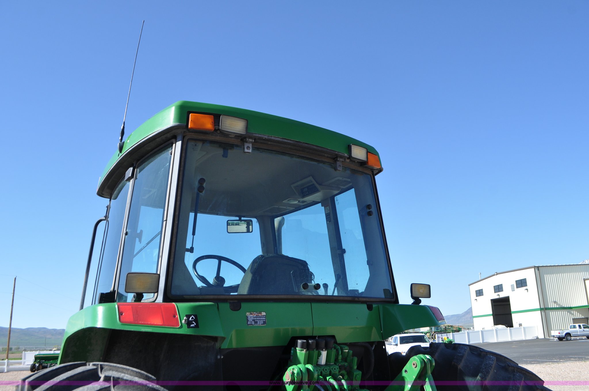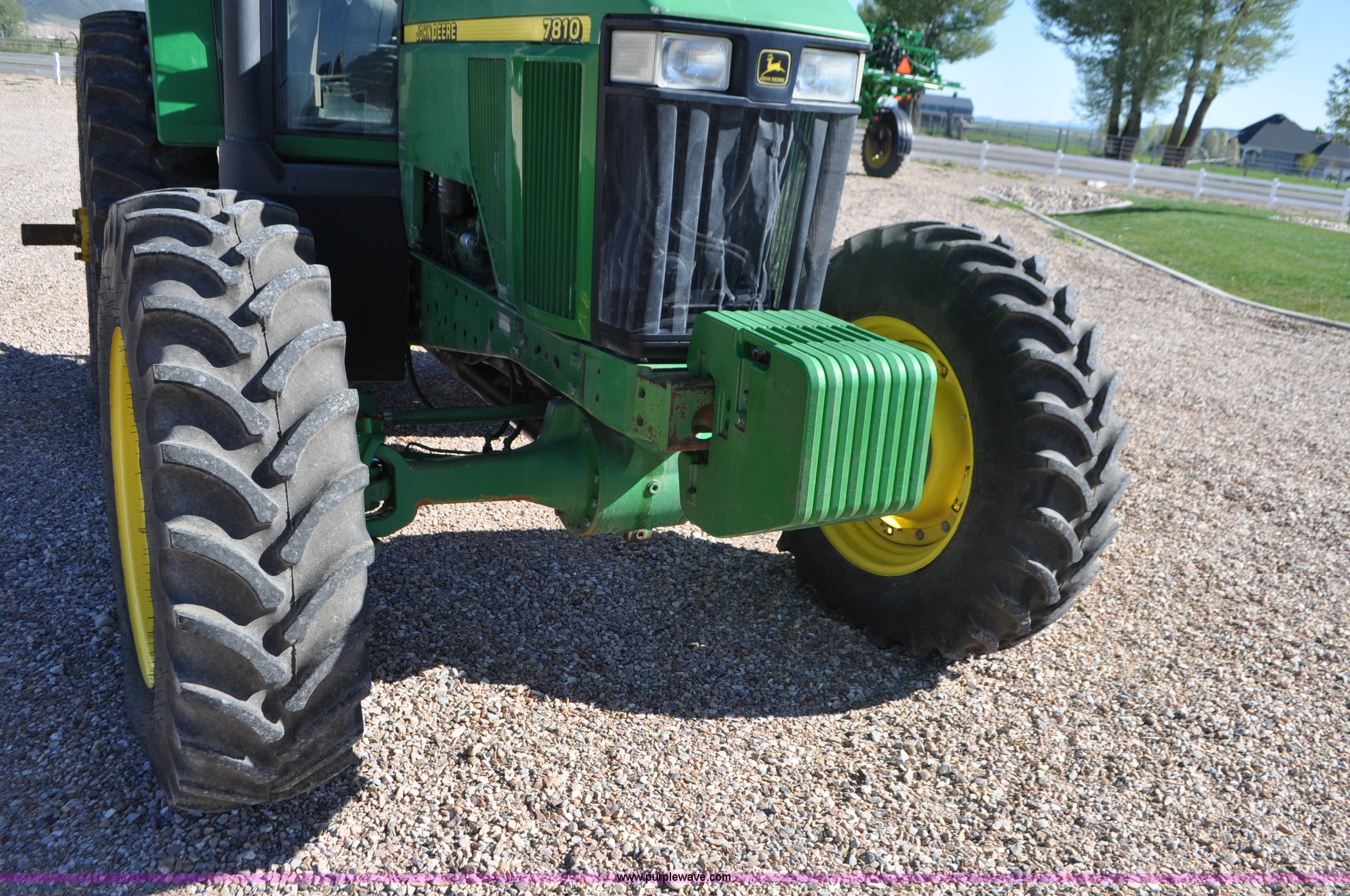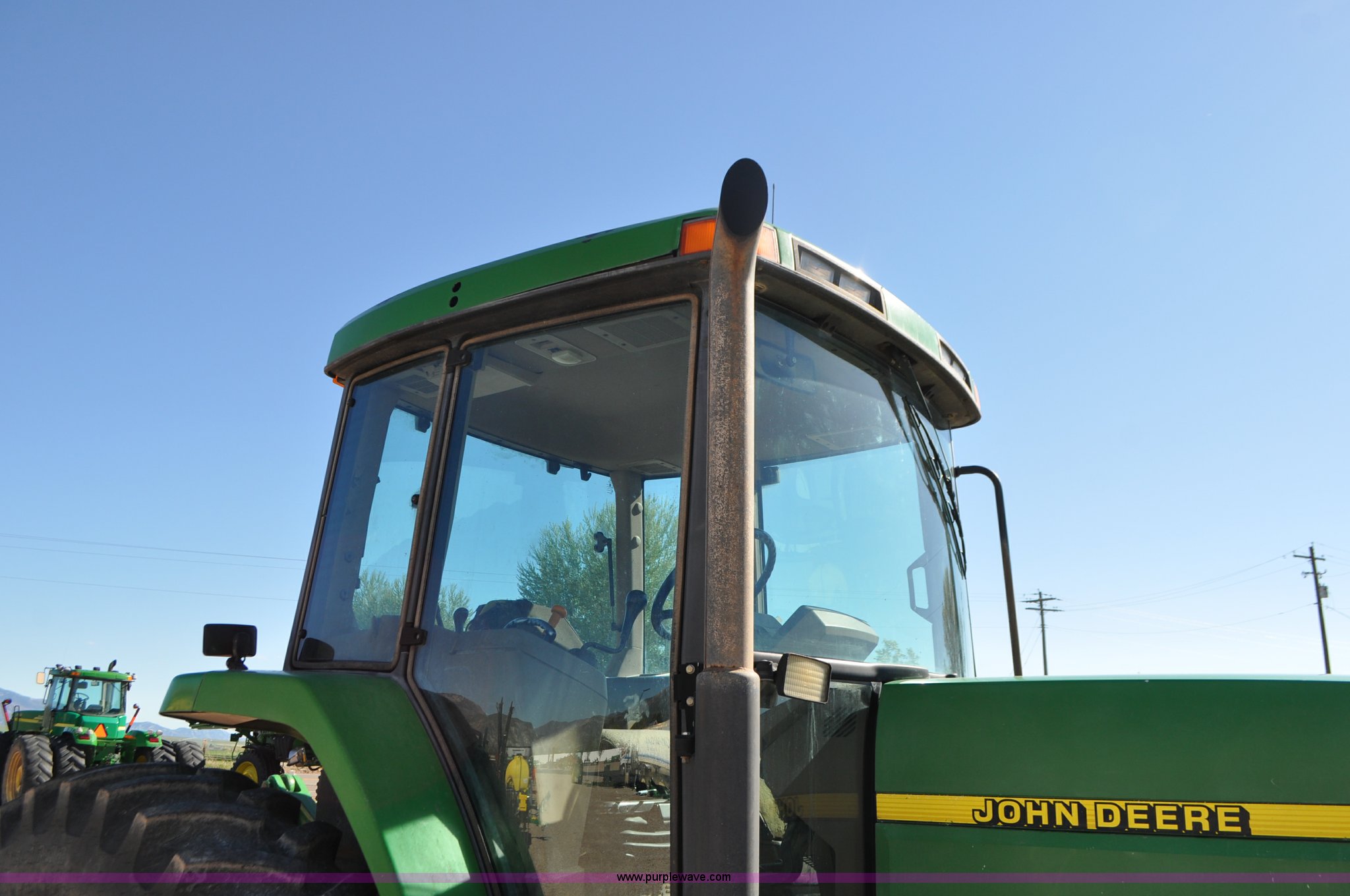Purple Wave is selling a used Tractor in Utah. This item is a 1998 John Deere 7810 MFWD tractor with the following: 1,622 hours on meter, John Deere 6081 8.1L six cylinder turbo diesel engine, 175 HP, Serial RG6081T047245, Powershift transmission, 19F-7R gears, AC and heat, Tilt steering wheel, AM/FM, Air suspension seat, Three point, Seven pin outlet, 1000 PTO, (4) rear hydraulic remote sets, (8) suitcase weights, Wheel weights, 14.9R30 front tires, 18.4R42 rear tires, U-joints need replaced between engine and transmission, Serial RW7810P011954, Unit# U14J1638