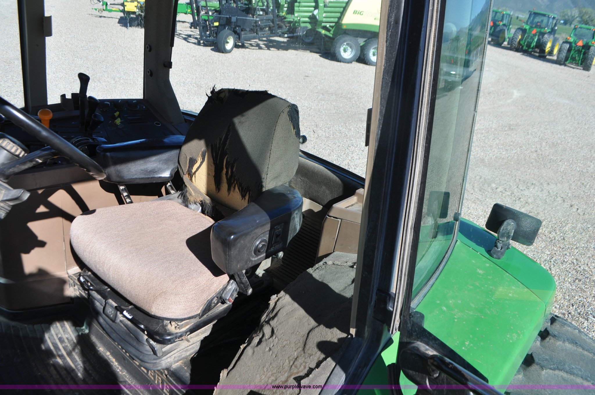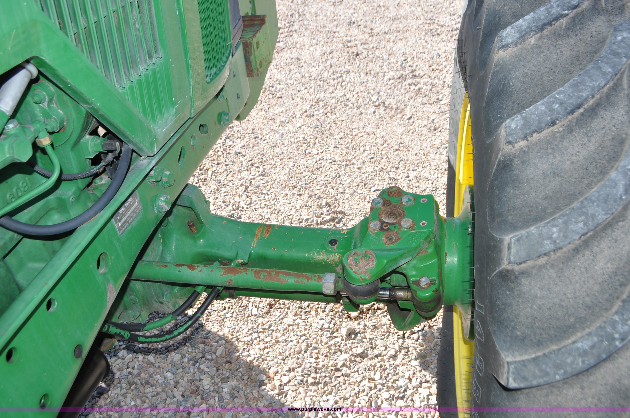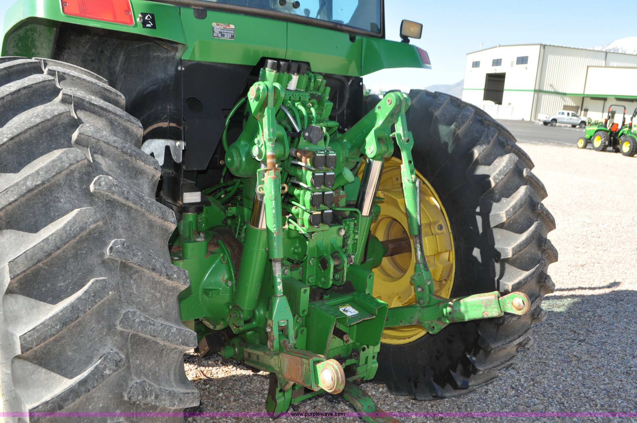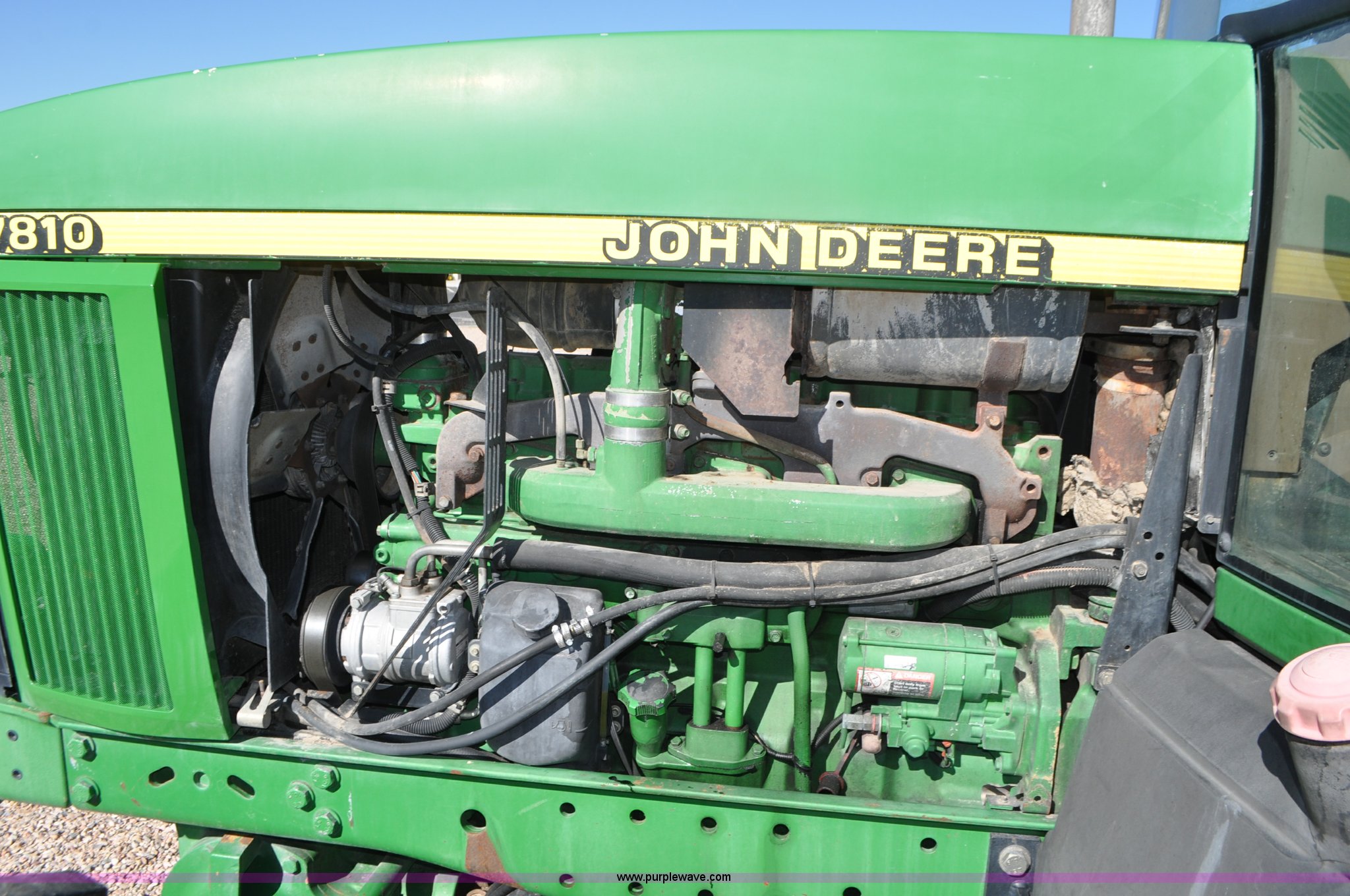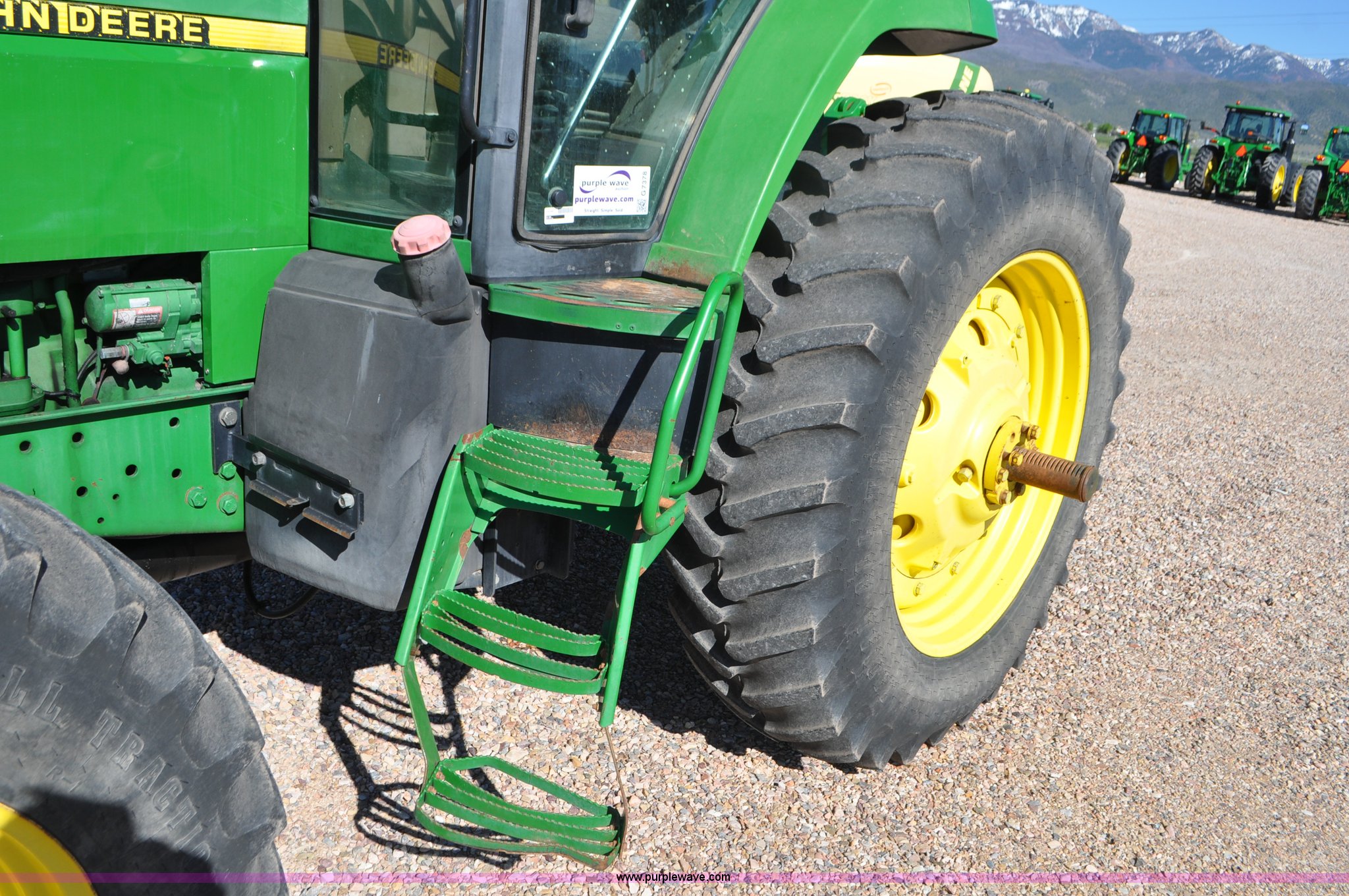 Purple Wave is selling a used Tractor in Utah. This item is a 1998 John Deere 7810 MFWD tractor with the following: 1,622 hours on meter, John Deere 6081 8.1L six cylinder turbo diesel engine, 175 HP, Serial RG6081T047245, Powershift transmission, 19F-7R gears, AC and heat, Tilt steering wheel, AM/FM, Air suspension seat, Three point, Seven pin outlet, 1000 PTO, (4) rear hydraulic remote sets, (8) suitcase weights, Wheel weights, 14.9R30 front tires, 18.4R42 rear tires, U-joints need replaced between engine and transmission, Serial RW7810P011954, Unit# U14J1638