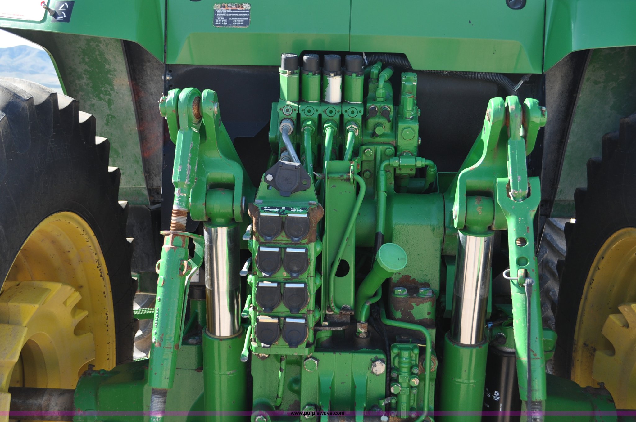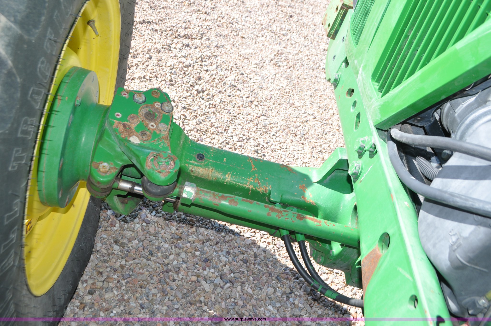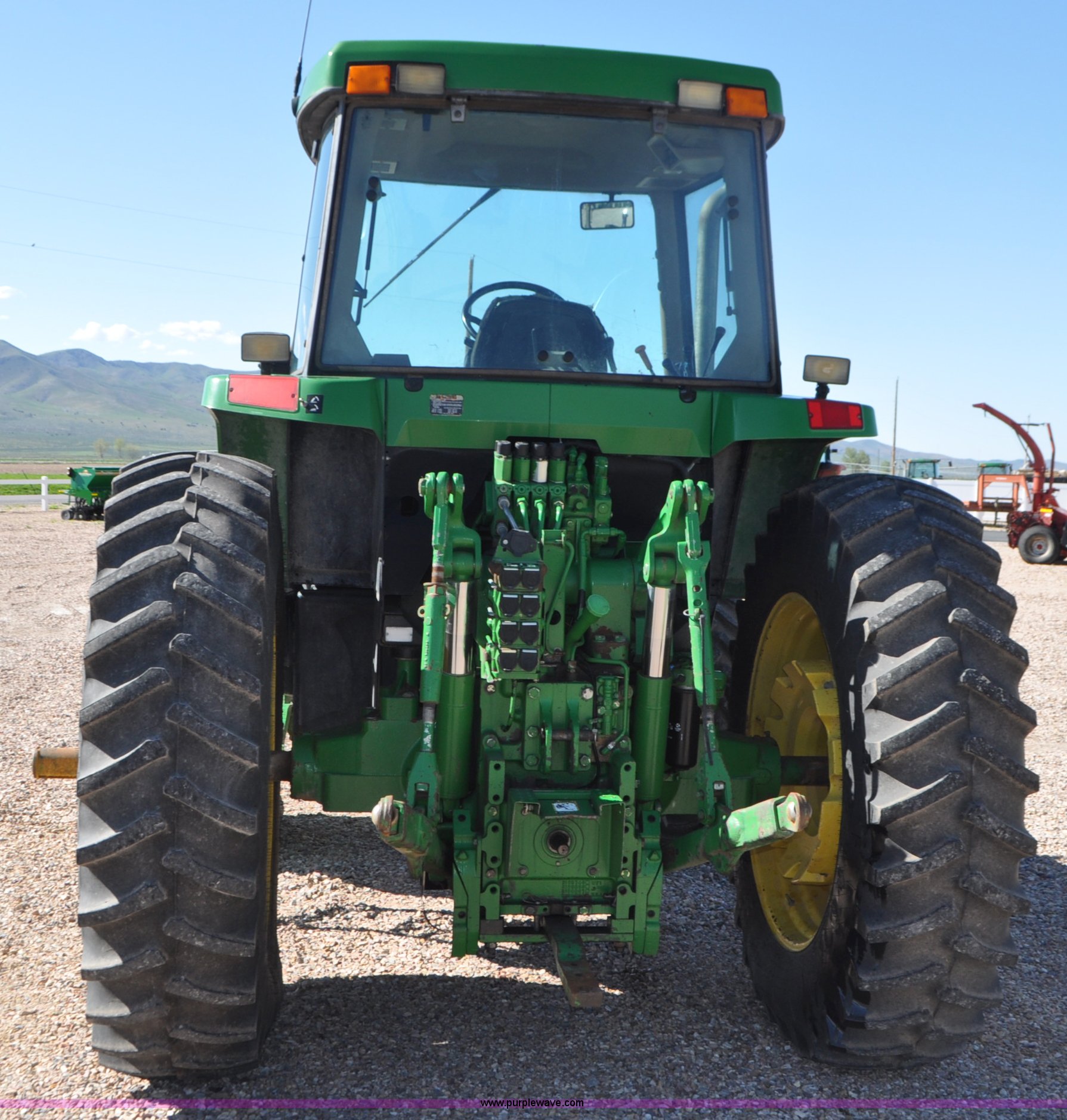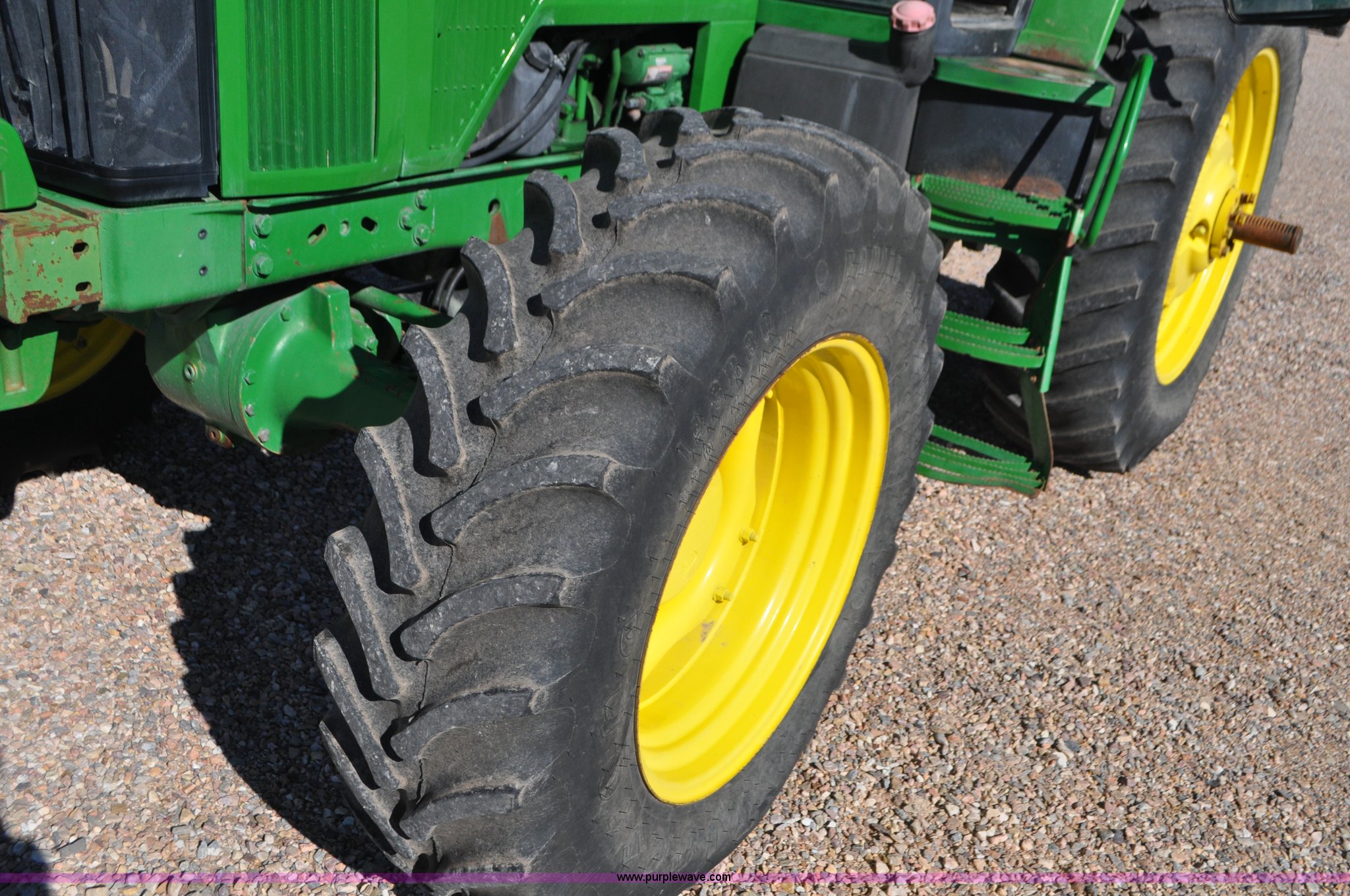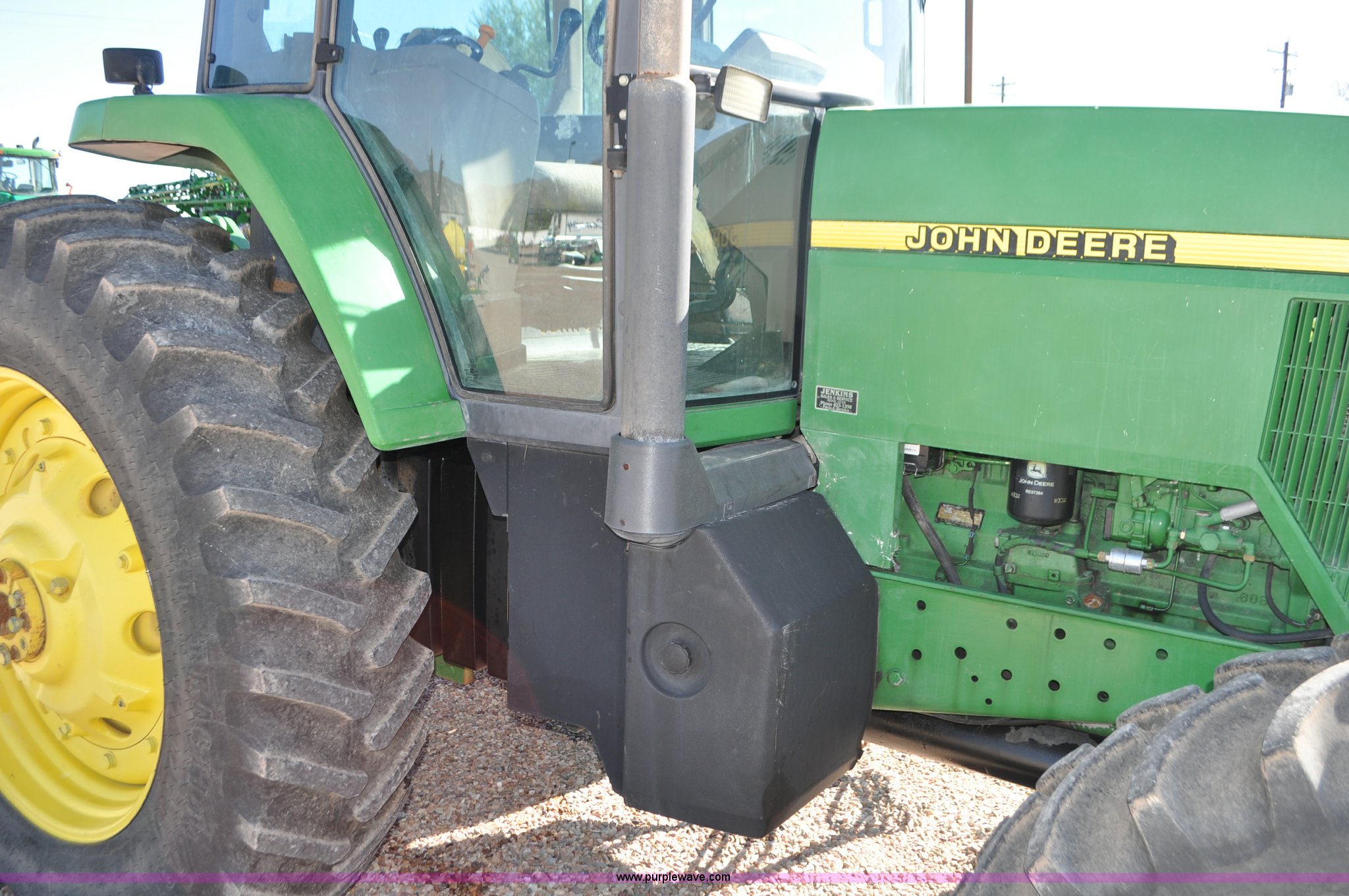 Purple Wave is selling a used Tractor in Utah. This item is a 1998 John Deere 7810 MFWD tractor with the following: 1,622 hours on meter, John Deere 6081 8.1L six cylinder turbo diesel engine, 175 HP, Serial RG6081T047245, Powershift transmission, 19F-7R gears, AC and heat, Tilt steering wheel, AM/FM, Air suspension seat, Three point, Seven pin outlet, 1000 PTO, (4) rear hydraulic remote sets, (8) suitcase weights, Wheel weights, 14.9R30 front tires, 18.4R42 rear tires, U-joints need replaced between engine and transmission, Serial RW7810P011954, Unit# U14J1638
