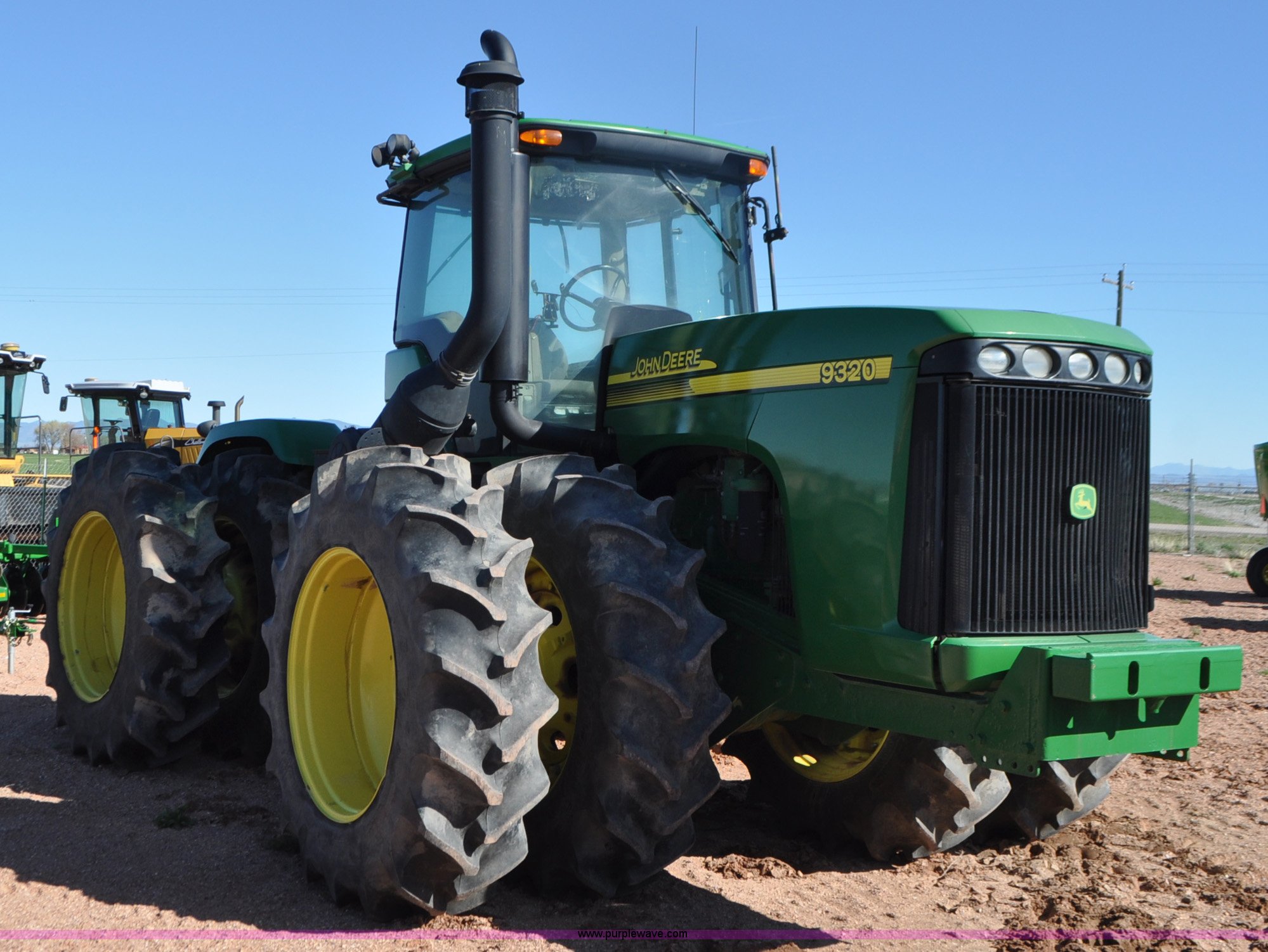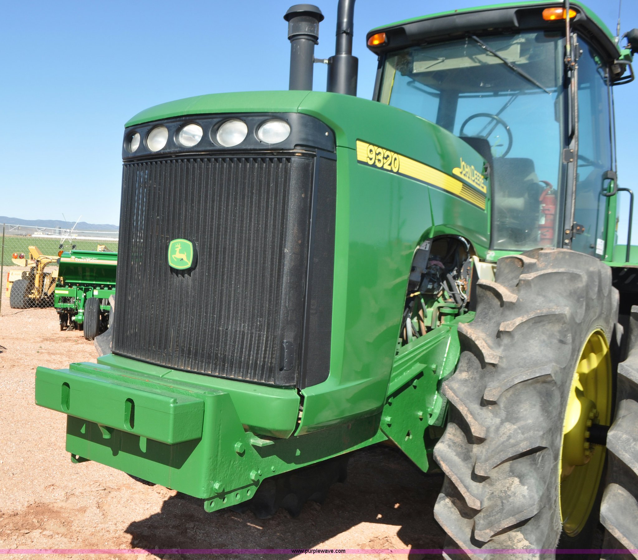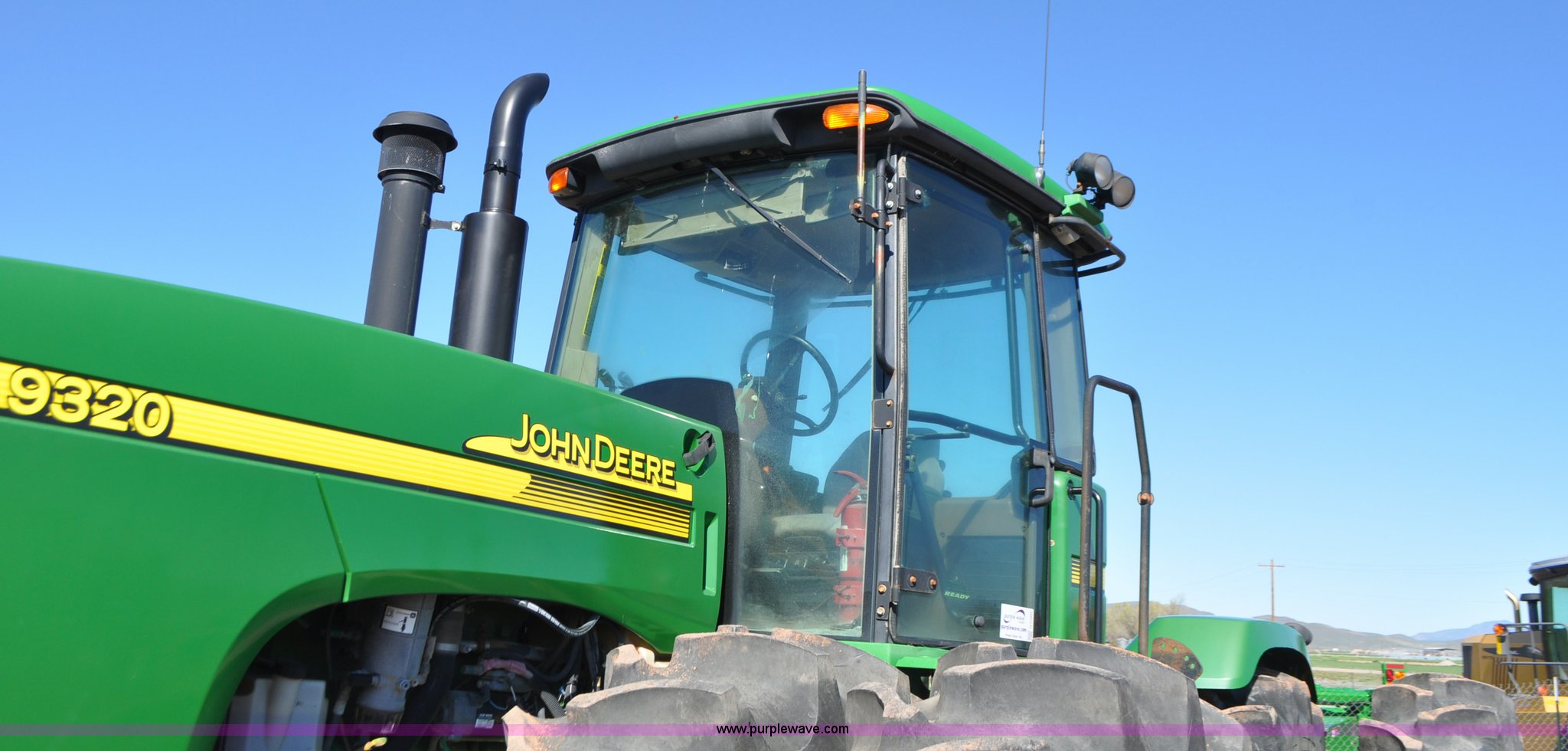 Purple Wave is selling a used Articulated 4-Wheel Drive Tractor in Utah. This item is a 2006 John Deere 9320 4WD tractor with the following: 7,194 hours on meter, John Deere 6125 12.5L six cylinder turbo diesel engine, 375 HP, Serial RG6125H054516, Powershift transmission, 18F-6R gears, Differential lock, AC and heat, Tilt steering wheel, AM/FM, Air suspension seat, Shade, Twin auto lube for center bearings, 520/85R42 dual tires, Axle seals leaking, Serial RW9320P041110, Unit# U15R0949