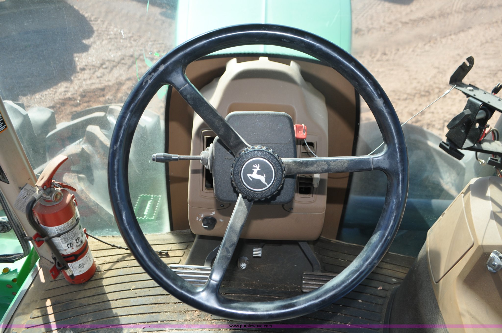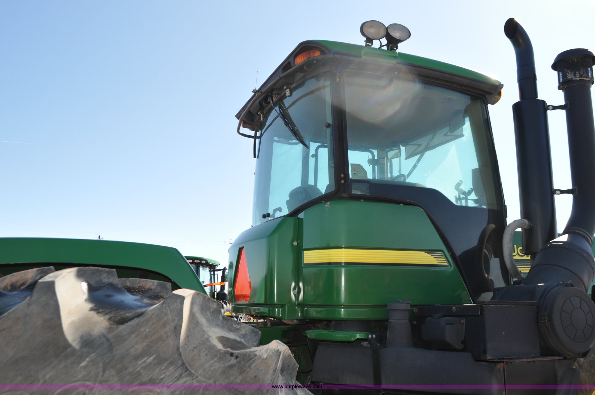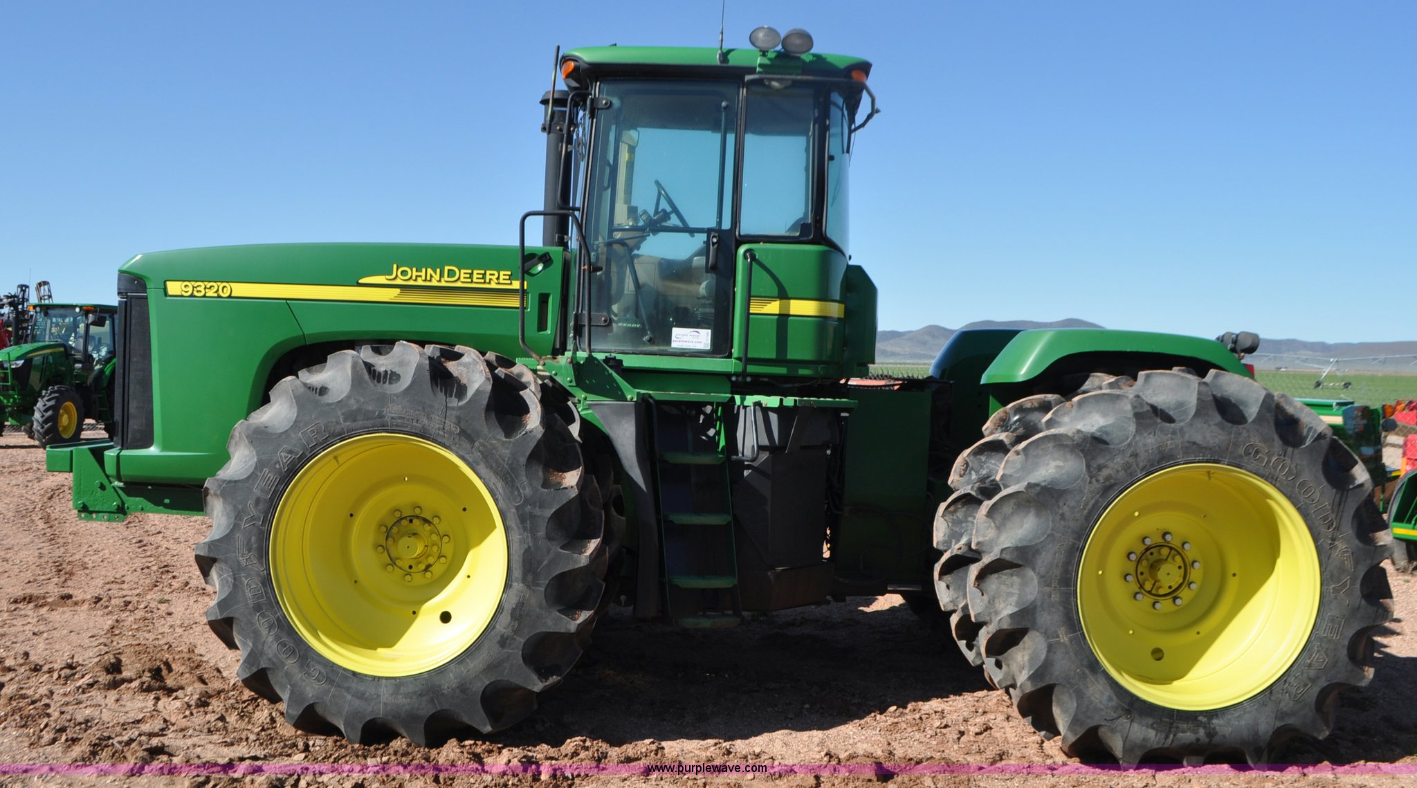 Purple Wave is selling a used Articulated 4-Wheel Drive Tractor in Utah. This item is a 2006 John Deere 9320 4WD tractor with the following: 7,194 hours on meter, John Deere 6125 12.5L six cylinder turbo diesel engine, 375 HP, Serial RG6125H054516, Powershift transmission, 18F-6R gears, Differential lock, AC and heat, Tilt steering wheel, AM/FM, Air suspension seat, Shade, Twin auto lube for center bearings, 520/85R42 dual tires, Axle seals leaking, Serial RW9320P041110, Unit# U15R0949