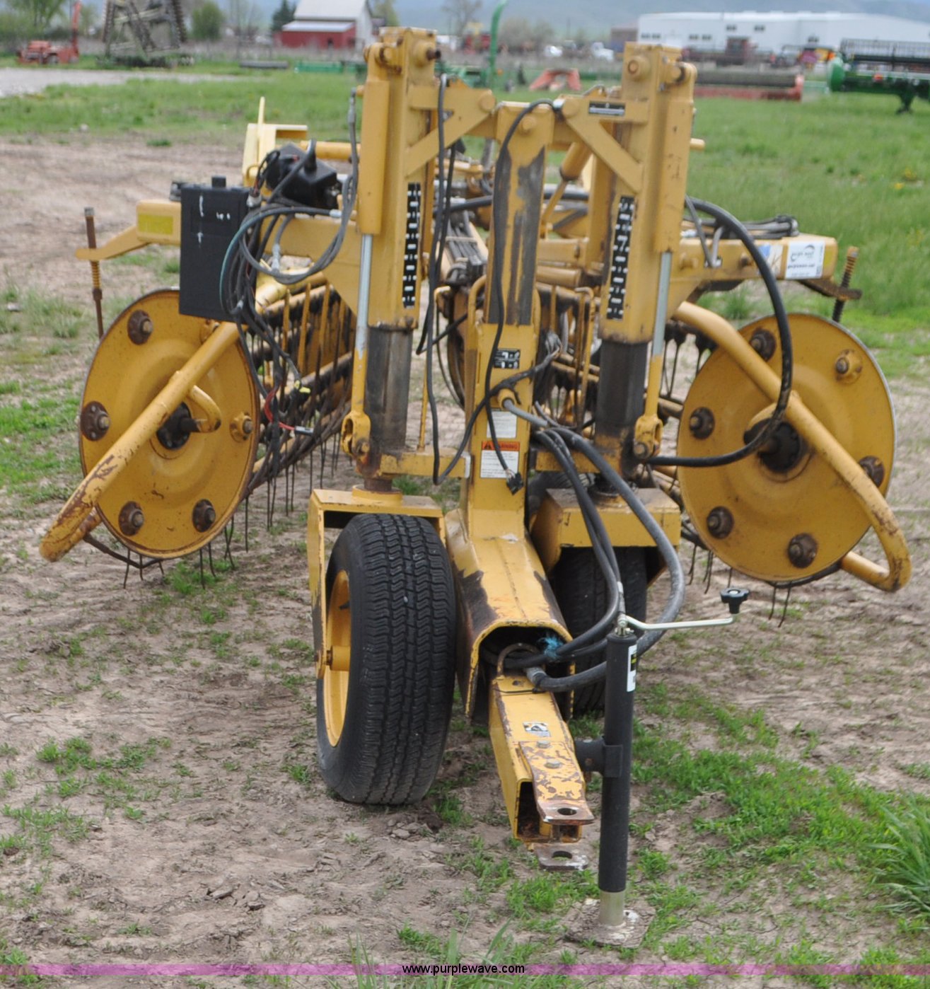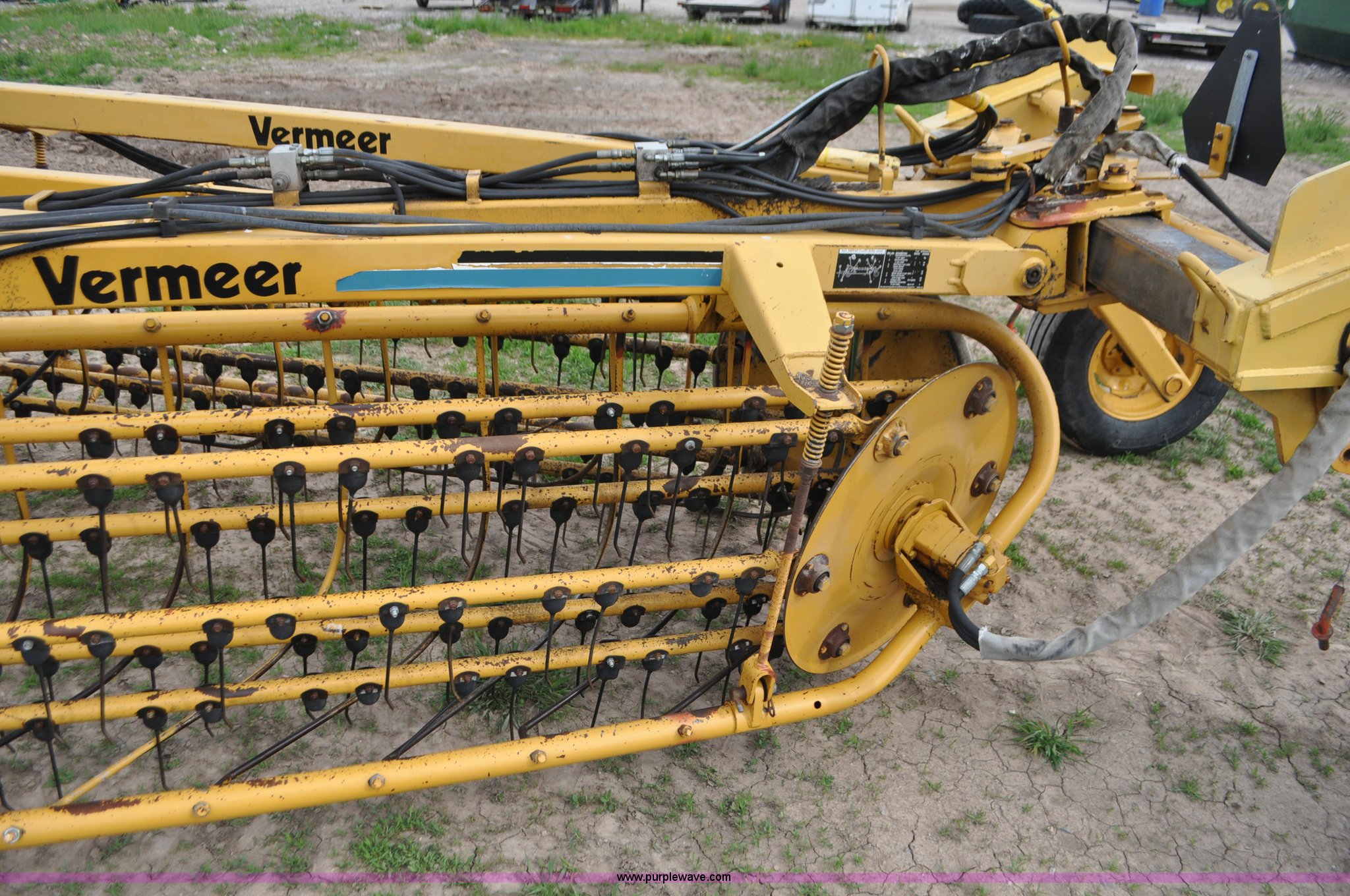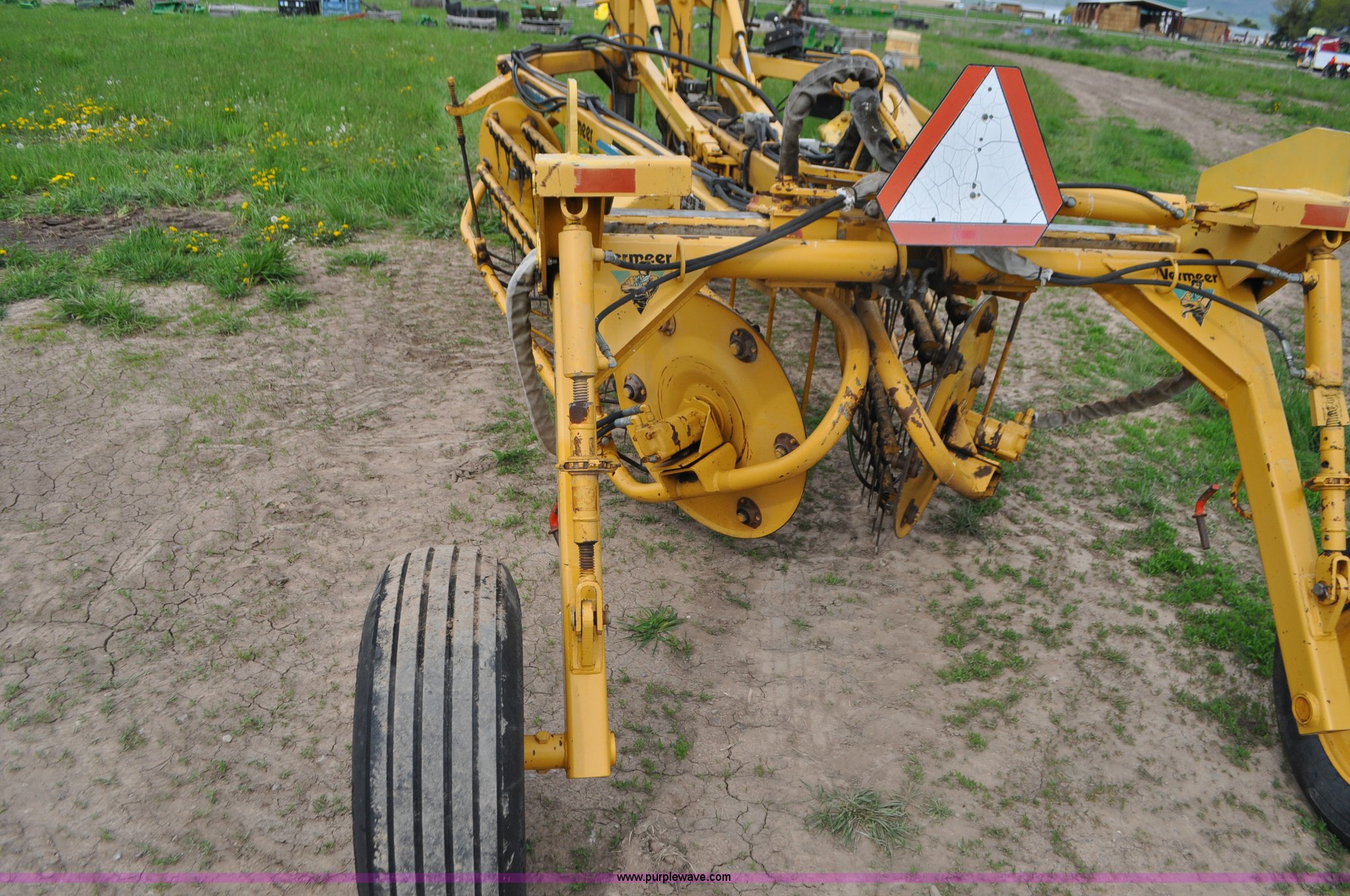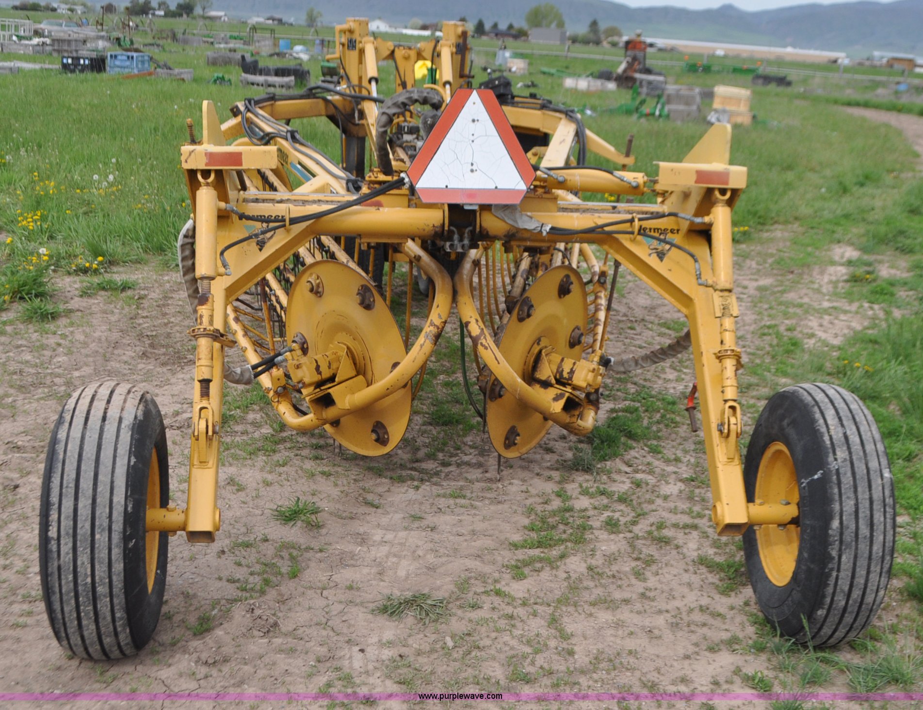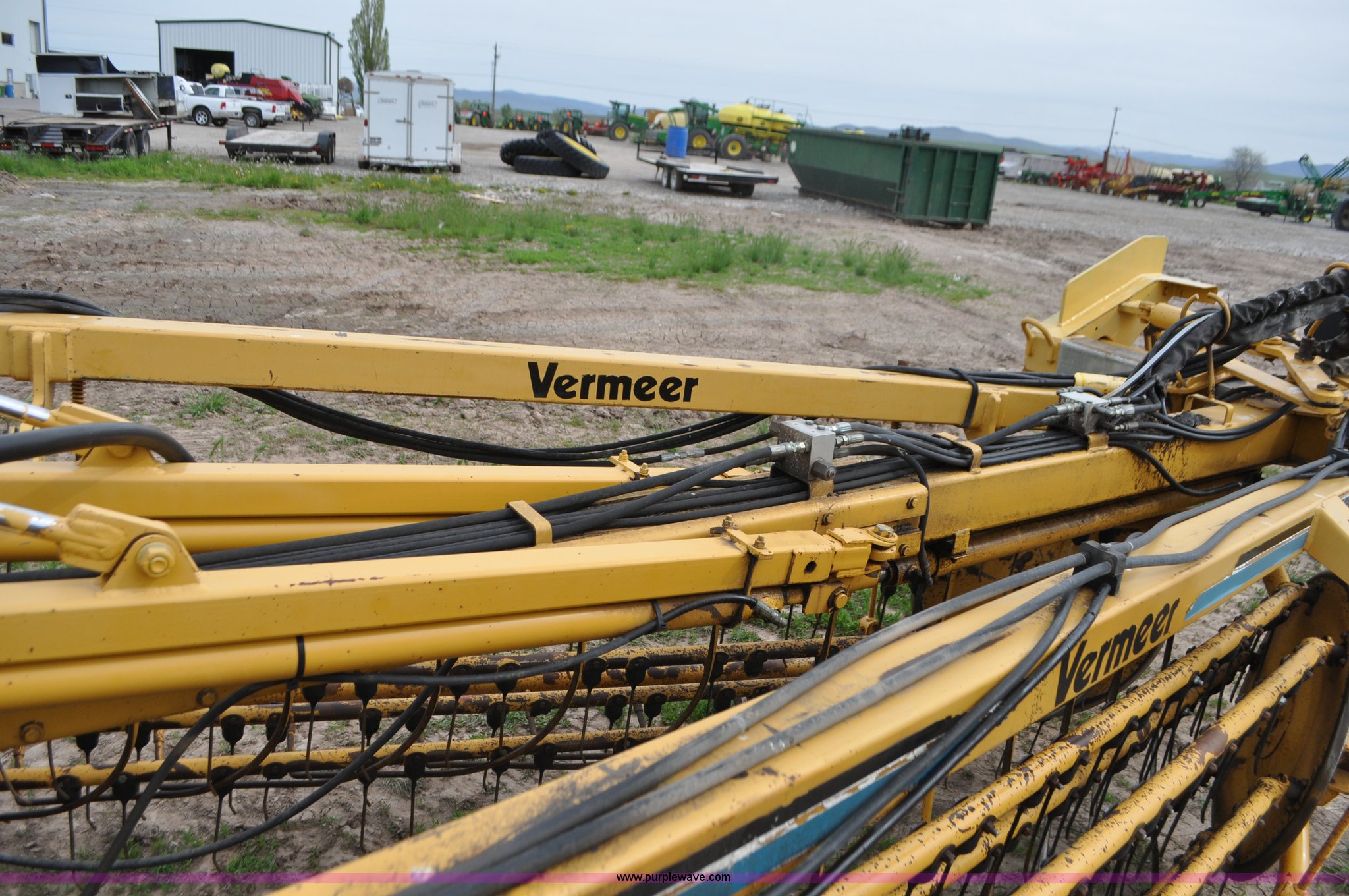 Purple Wave is selling a used Hay Rake in Idaho. This item is a Vermeer R24 twin hay rake with the following: Variable swath width, Hydraulic driven, Pin hitch, 275/75R15 wing tires, 11L-15 rear tires, Serial 1VRB221TXS1000169, Unit# I14W1482