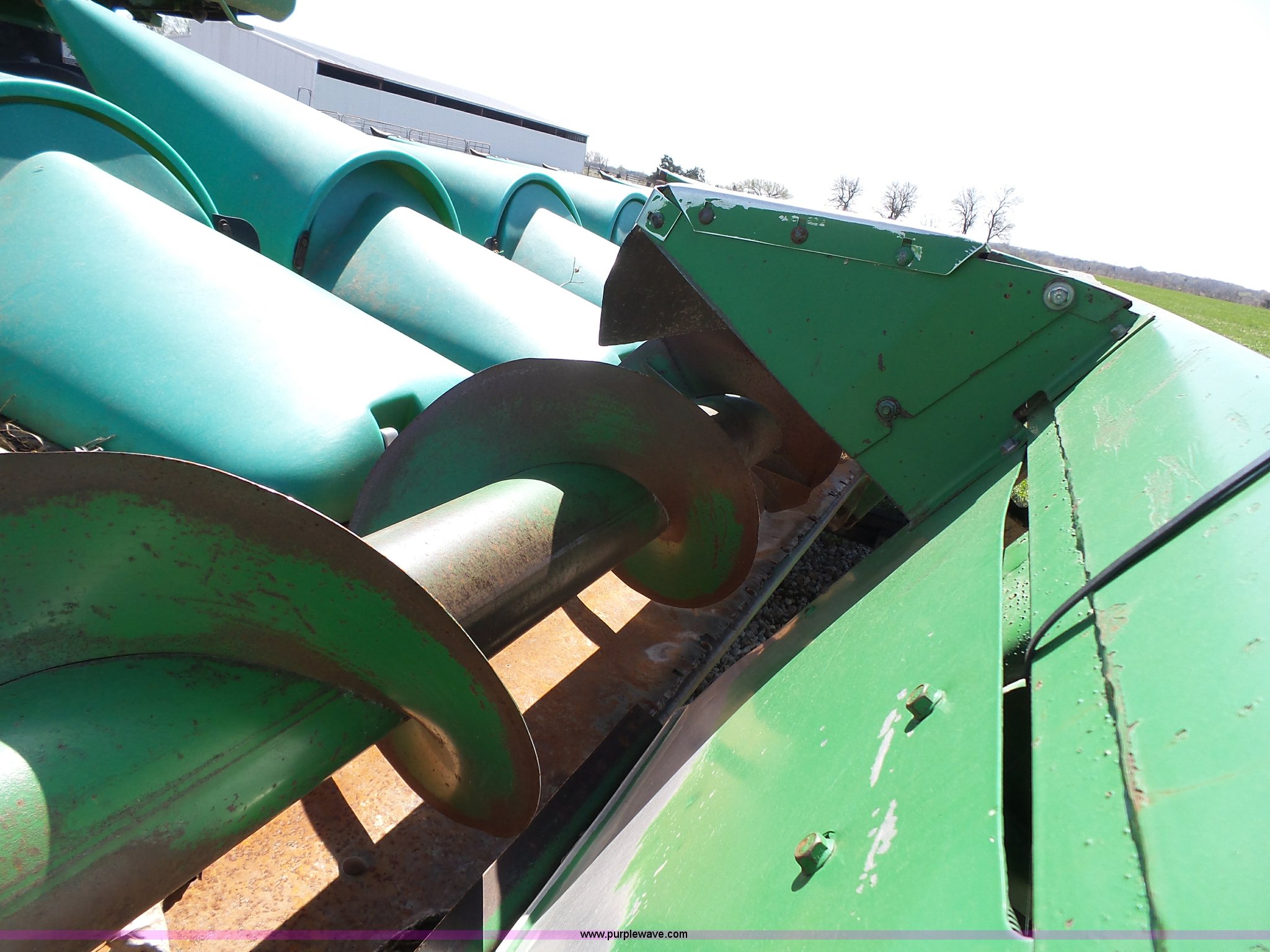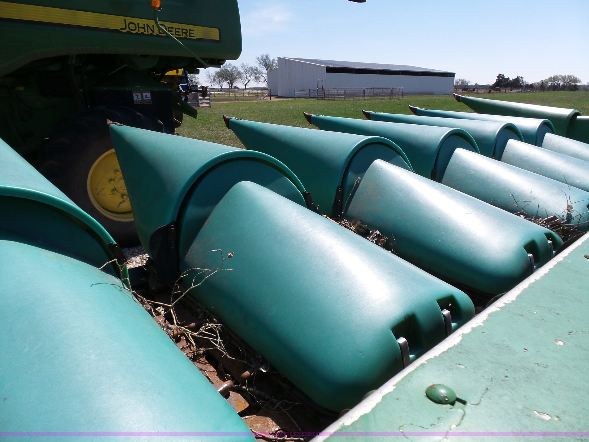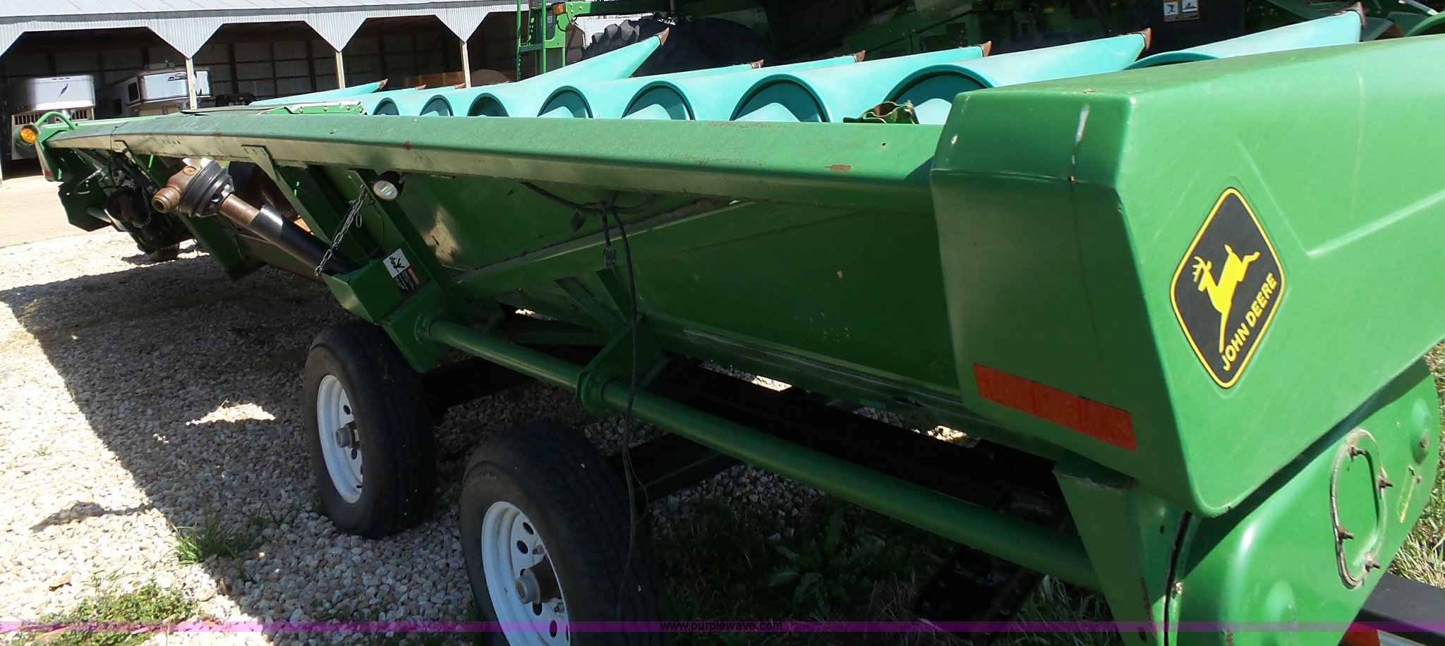 Purple Wave is selling a used Corn or Row Head in Kansas. This item is a 1995 John Deere 1293 corn head with the following: 12 row, 30" spacing, Dual drivelines, Single point coupler, Hydraulic deck plates, Serial H01293X660846