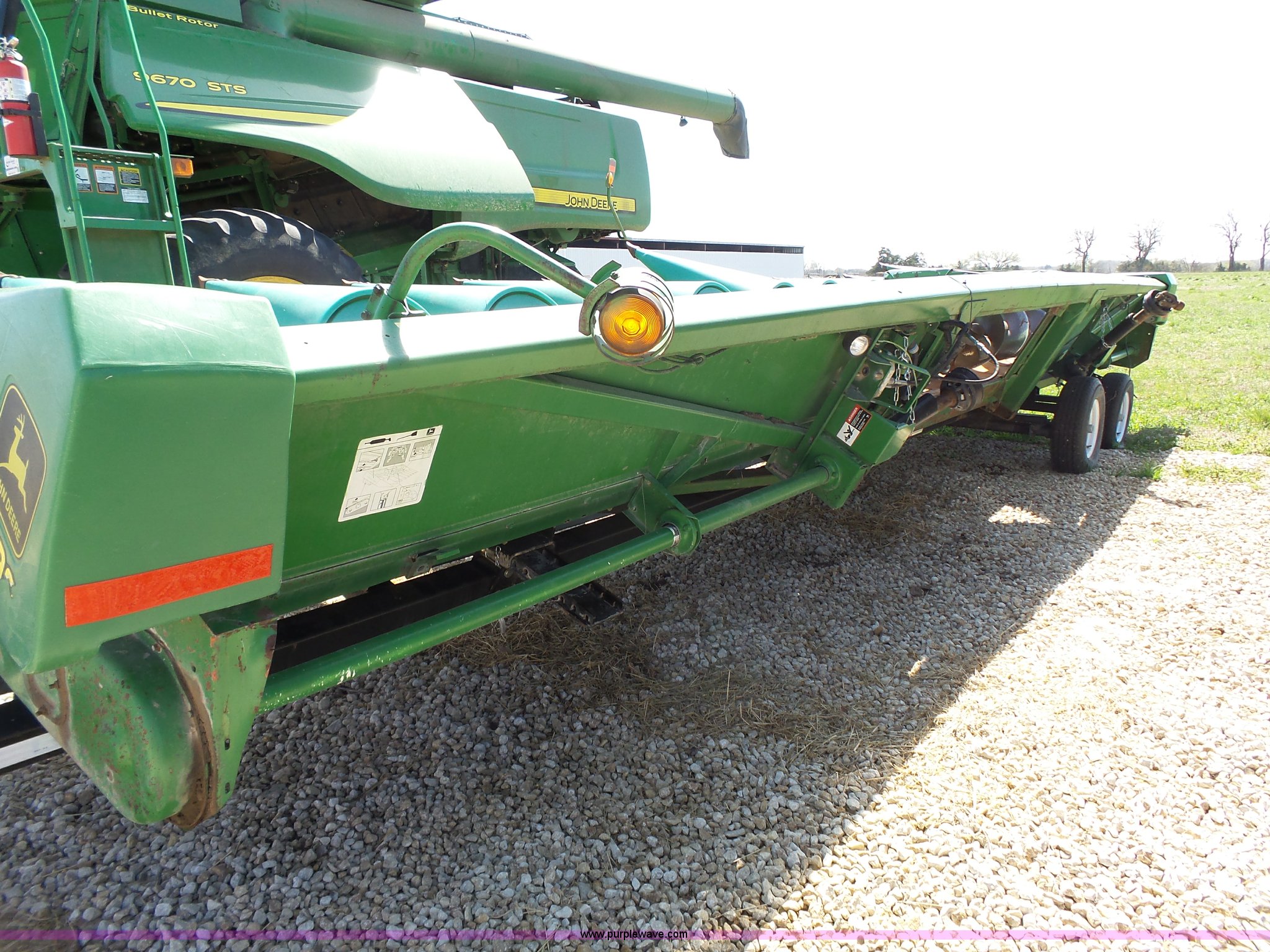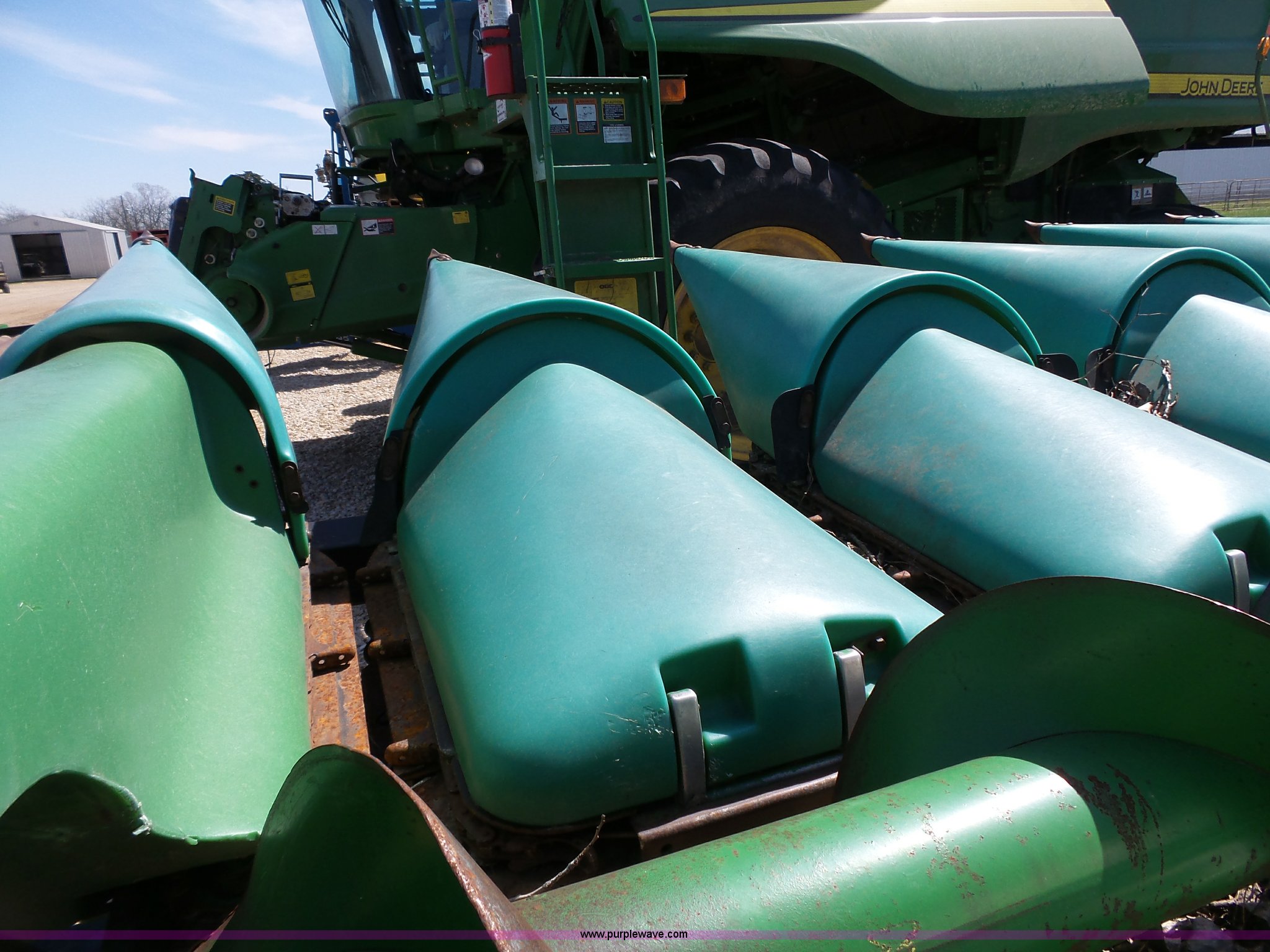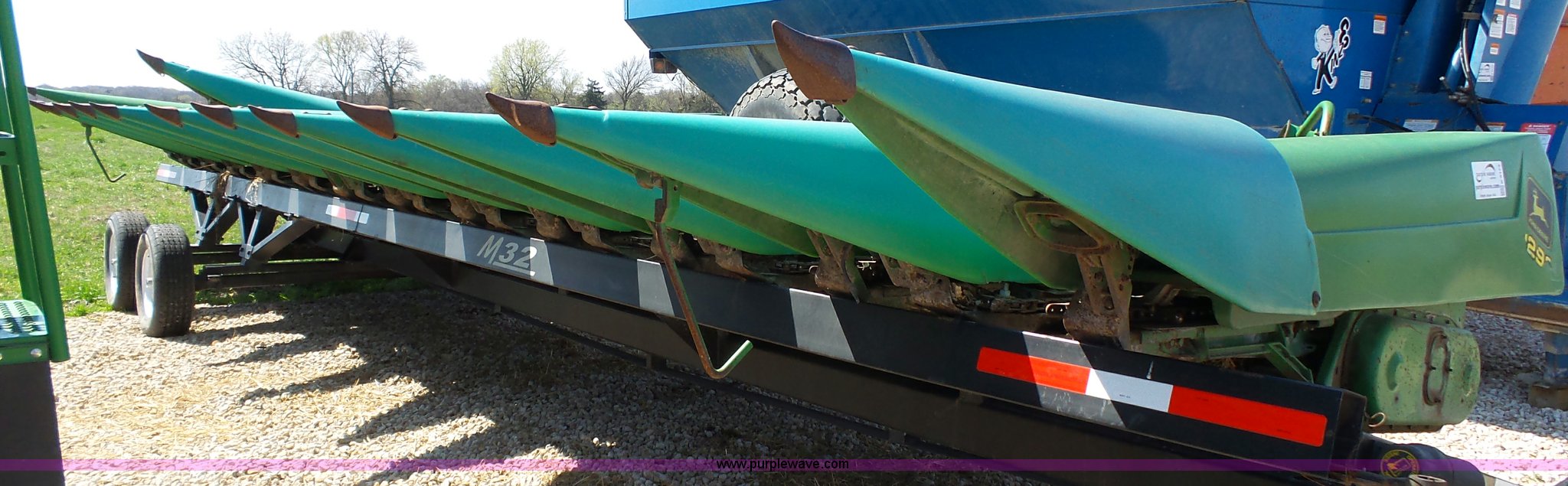 Purple Wave is selling a used Corn or Row Head in Kansas. This item is a 1995 John Deere 1293 corn head with the following: 12 row, 30" spacing, Dual drivelines, Single point coupler, Hydraulic deck plates, Serial H01293X660846