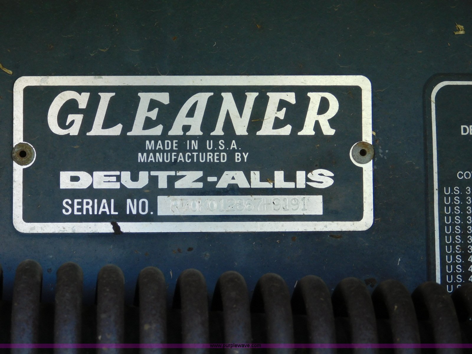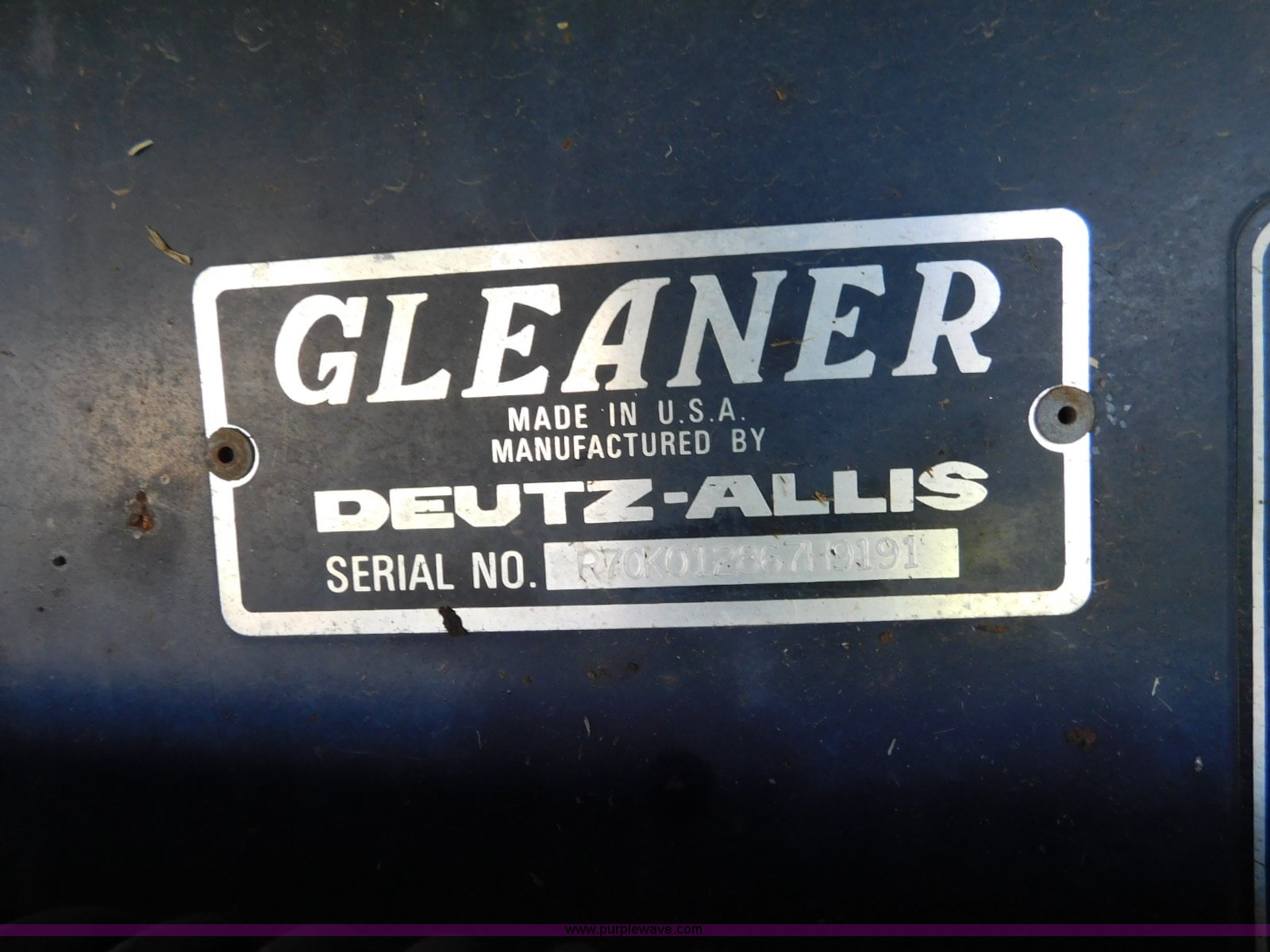 Purple Wave is selling a used Combine in Oklahoma. This item is a 1991 Gleaner R70 combine with the following: 4,289 engine hours on meter, 3,073 separator hours on meter, Unknown actual hours, Deutz BF-8L513-R70 eight cylinder diesel engine, Serial 7982421, 4F gears, AC and heat, Tilt steering wheel, AM/FM, 15'L unloading auger, AGCO rigid head, 30'W, Serial 303512619, 30.5L-32 front tires, 16.9-24 rear tires, Serial R70K012867H9191