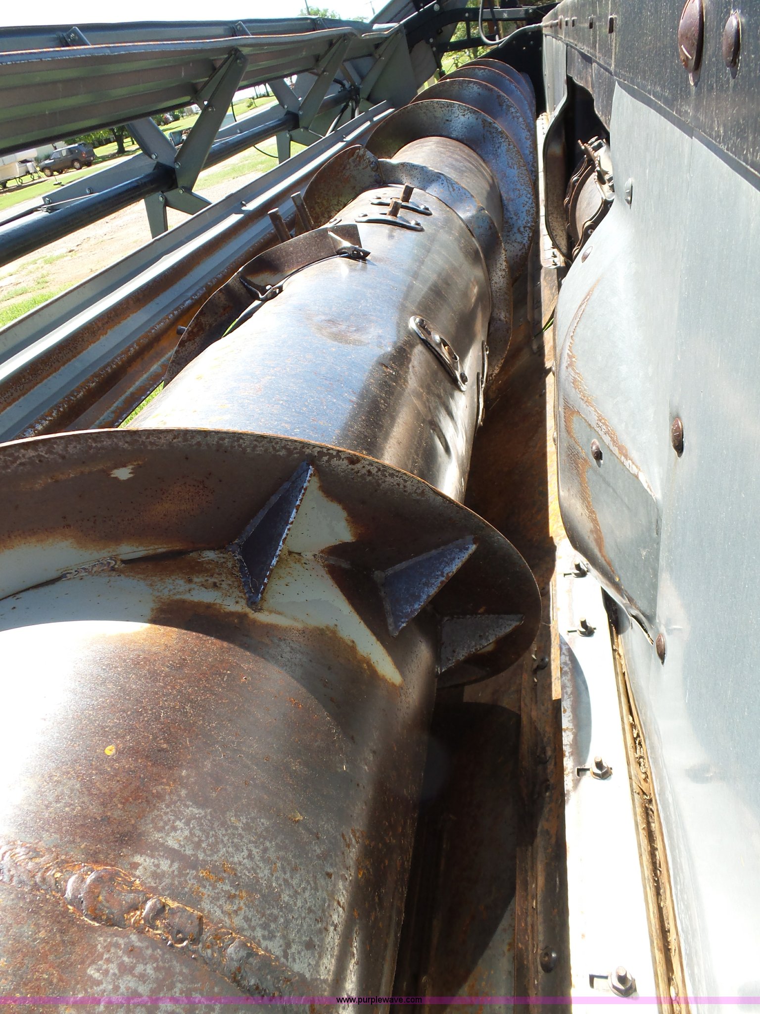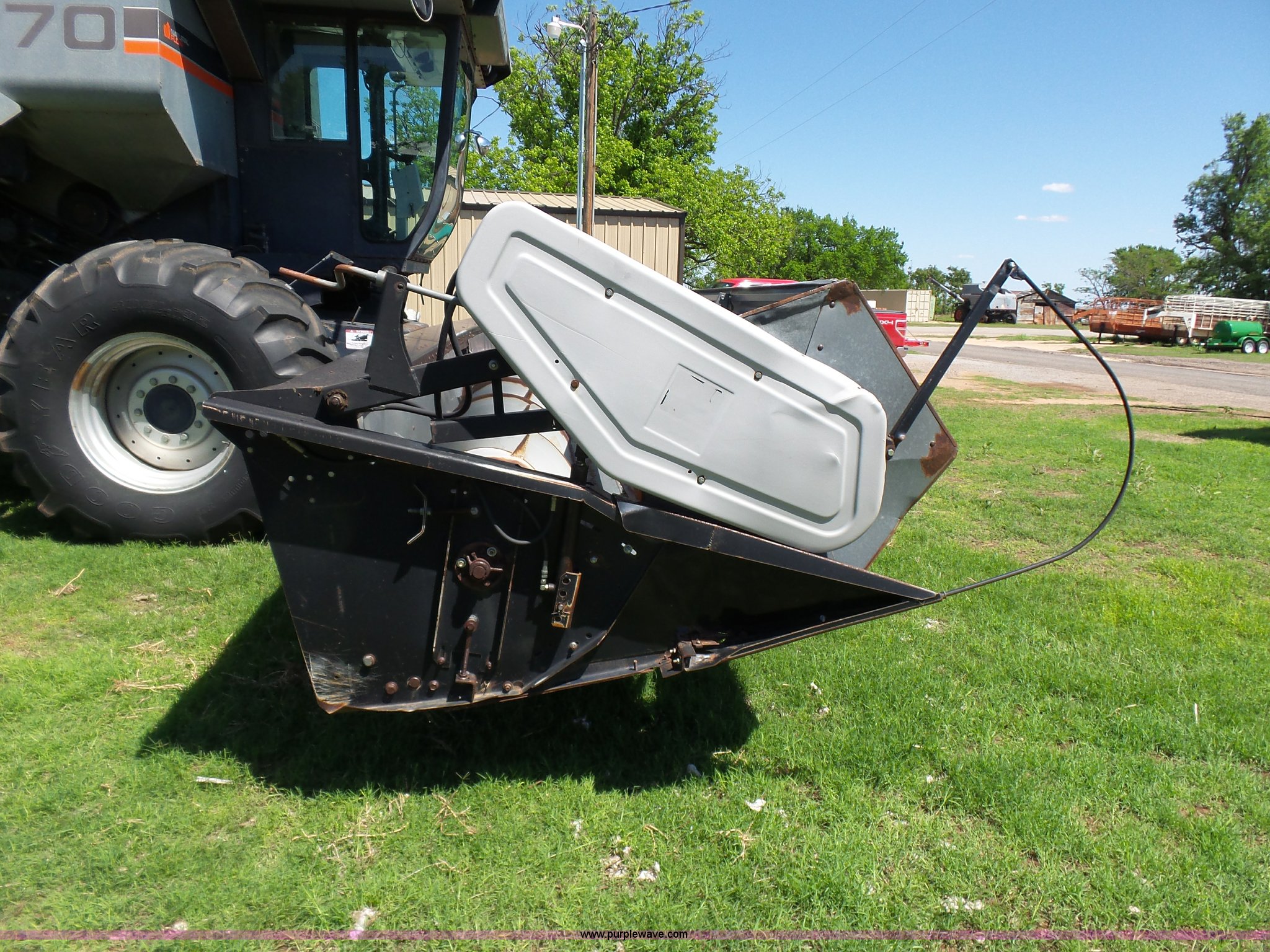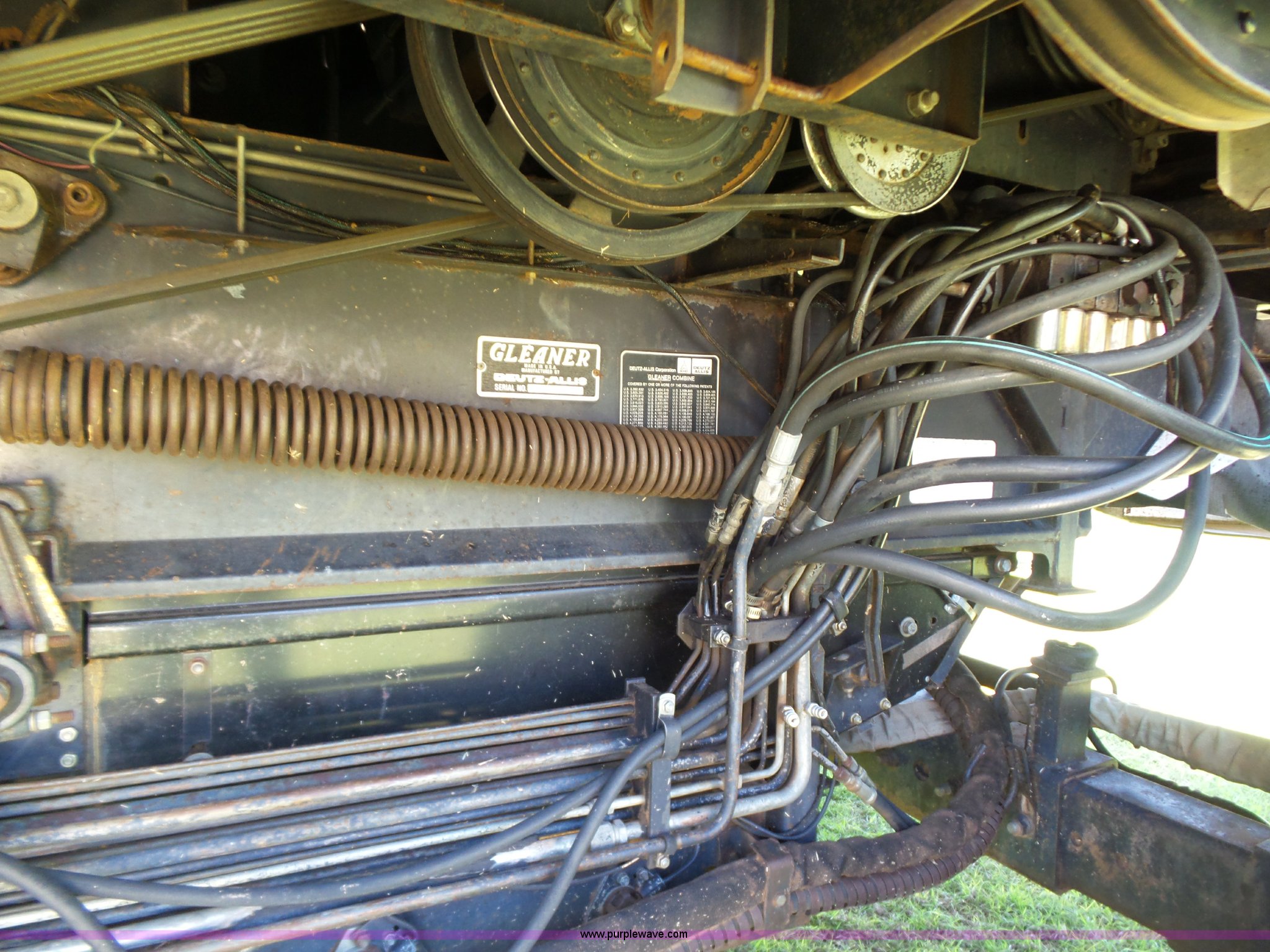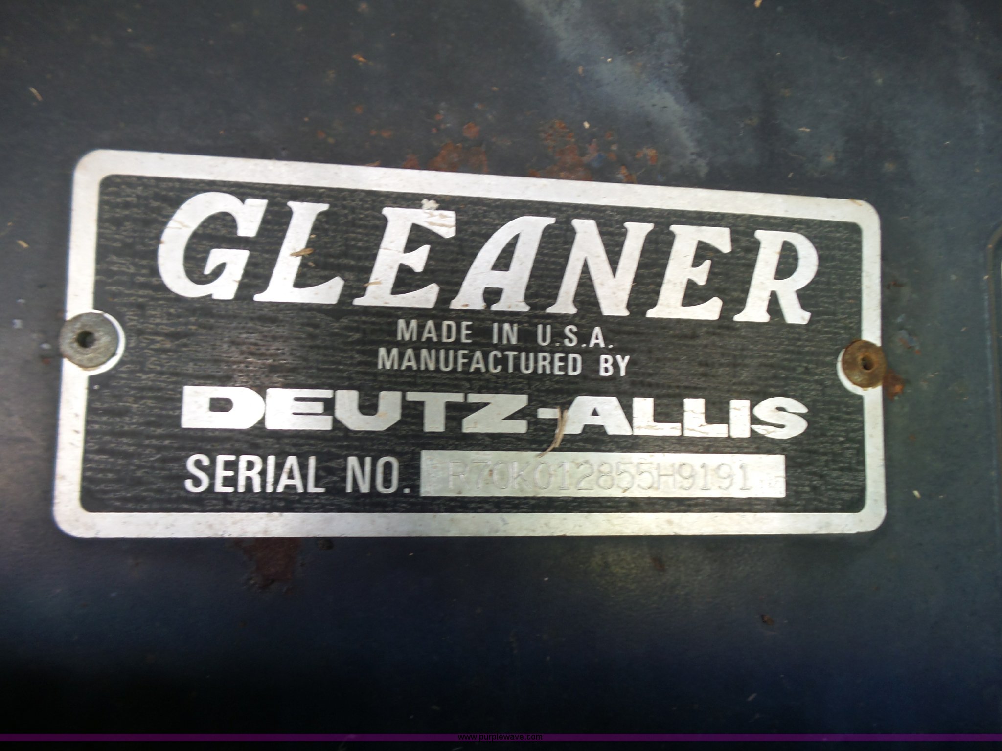 Purple Wave is selling a used Combine in Oklahoma. This item is a 1991 Gleaner R70 RWA combine with the following: 4,143 engine hours on meter, 3,146 separator hours on meter, Unknown actual hours, Deutz eight cylinder diesel engine, Serial 7782276, Four speed manual transmission, Rear wheel assist, Tilt steering wheel, AM/FM, Suspension seat, Work lights, 15'L unloading auger, AGCO rigid head, 30'W, Serial 3040143G, 30.5L-32 front tires, 16.9R26 rear tires, Serial R70K012855H9191