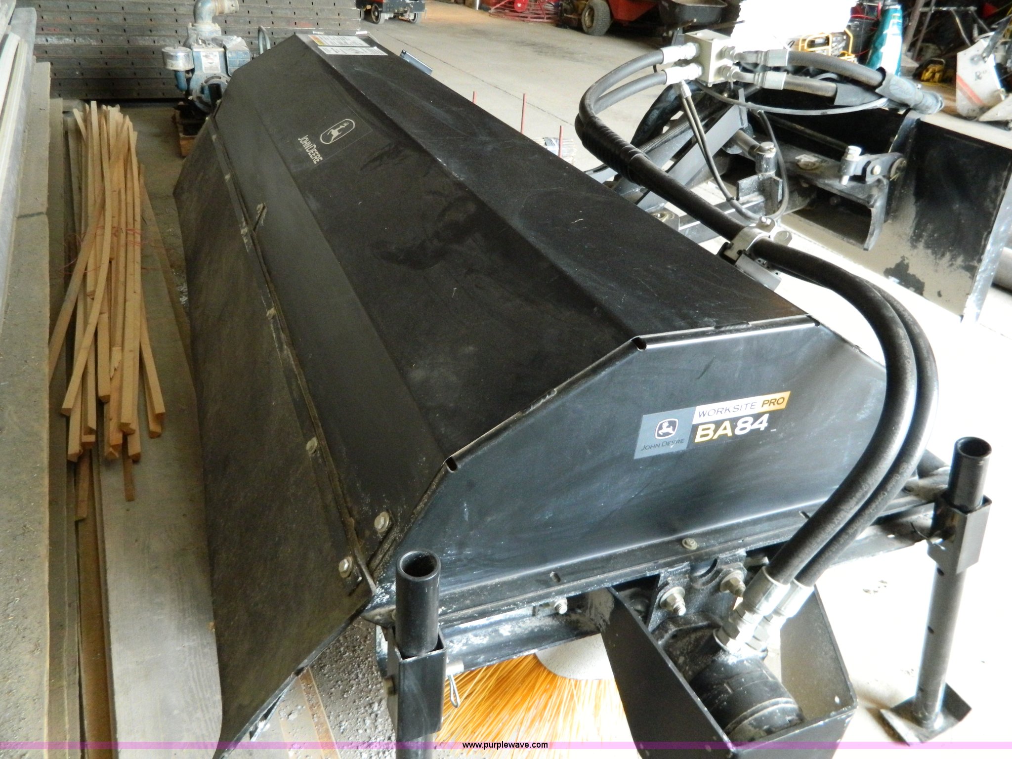 Purple Wave is selling a used Skid Steer Attach. in Kansas. This item is a John Deere BA84 skid steer broom with the following: 84"W, Hydraulic drive